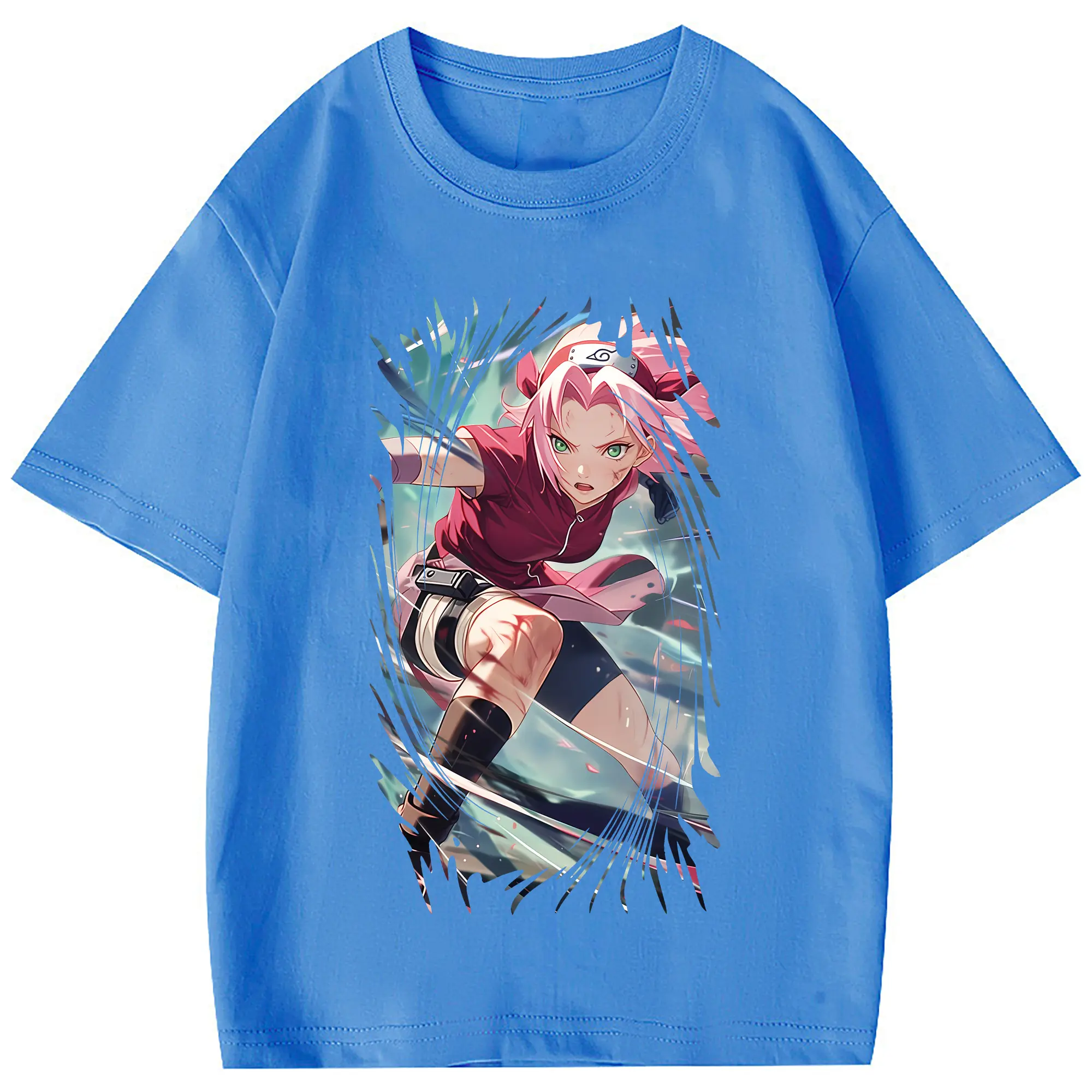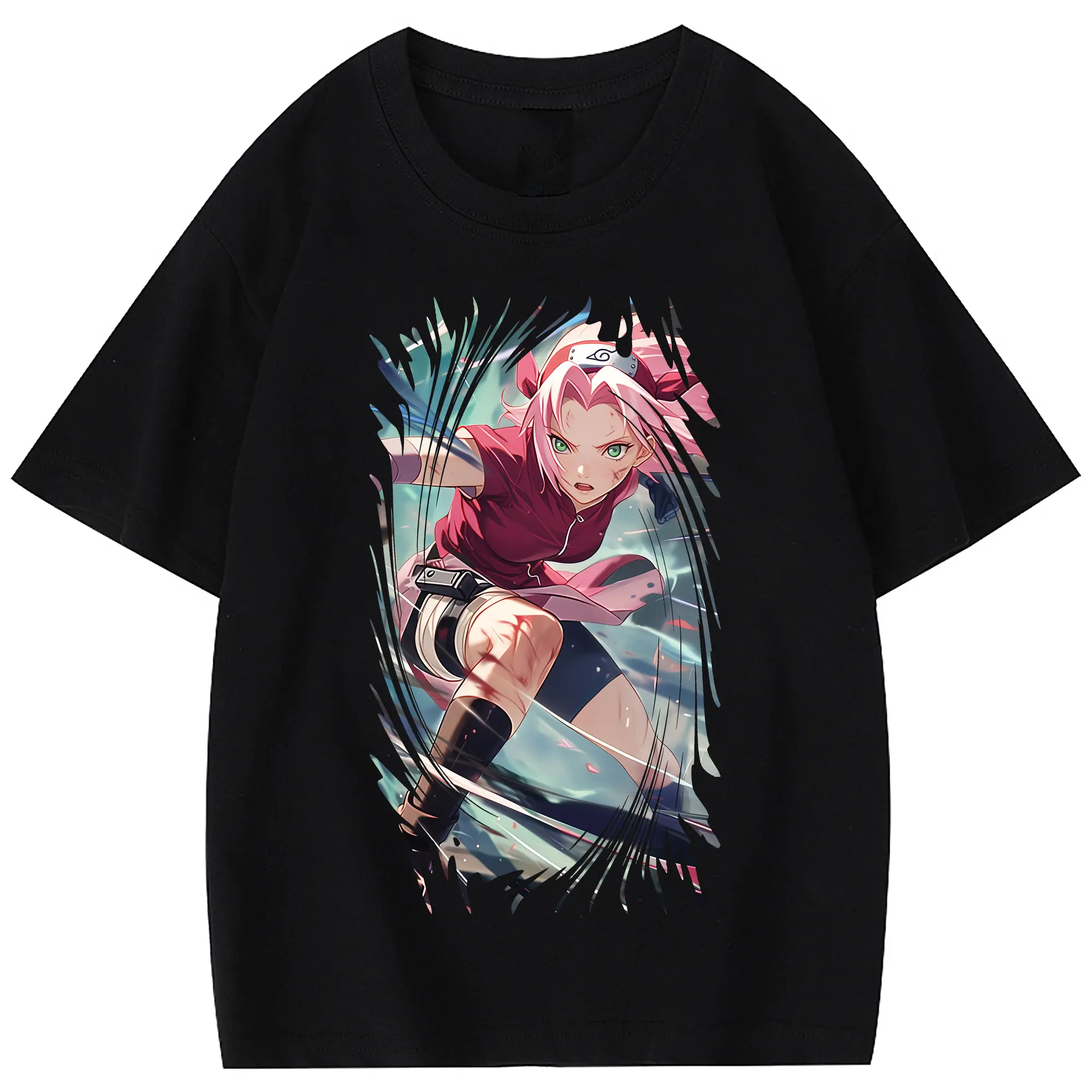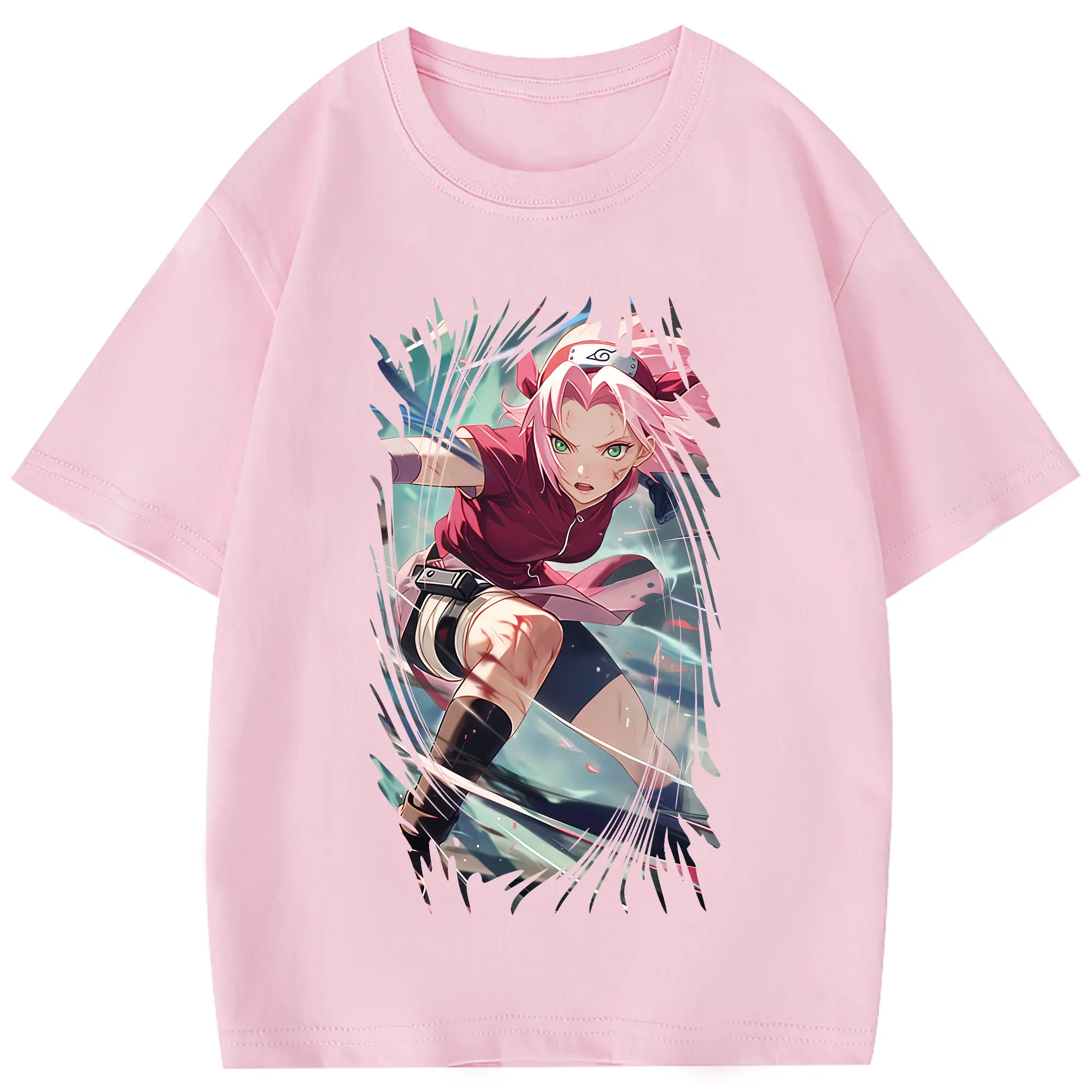 ナルト グッズ はるの さくら - 綿100% 半袖Tシャツ ・ フロントプリント ・ 快適 通気性 ・ 日常使い 散歩 スポーツ用