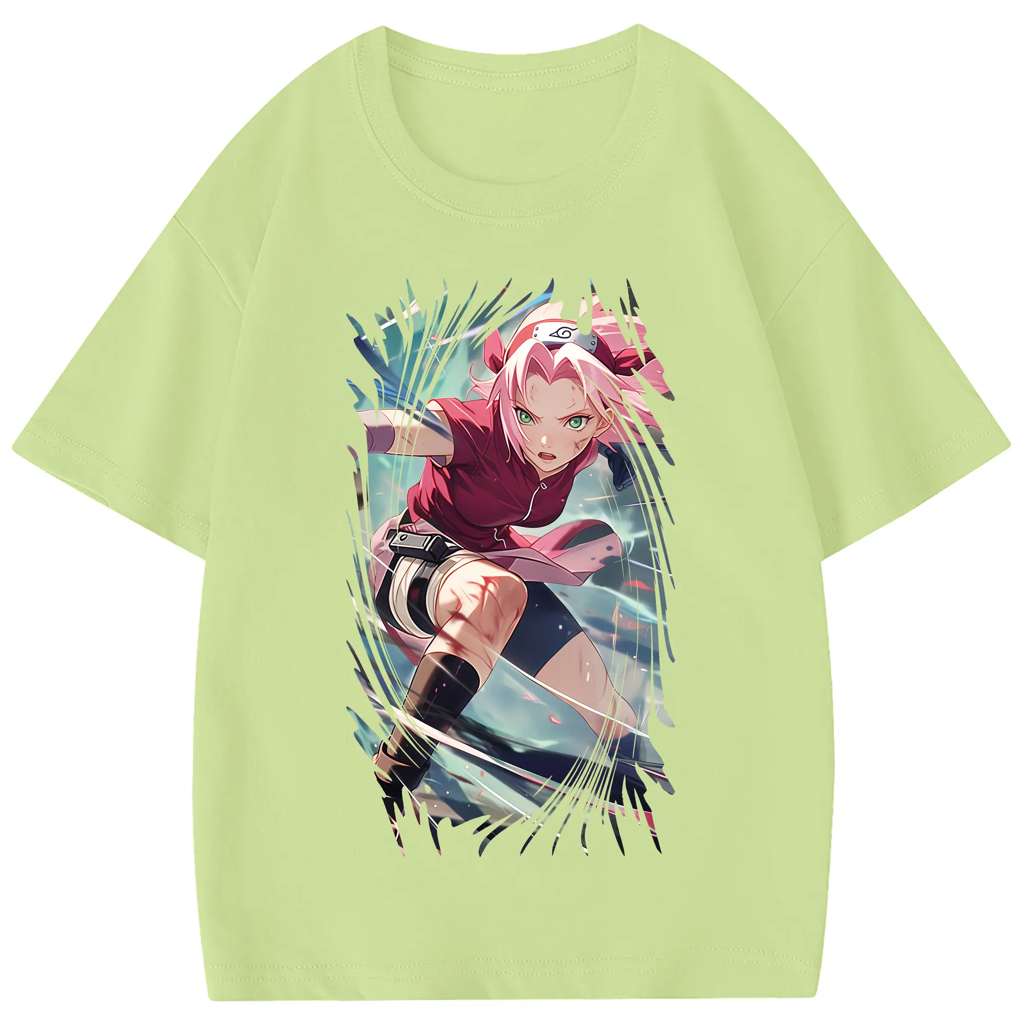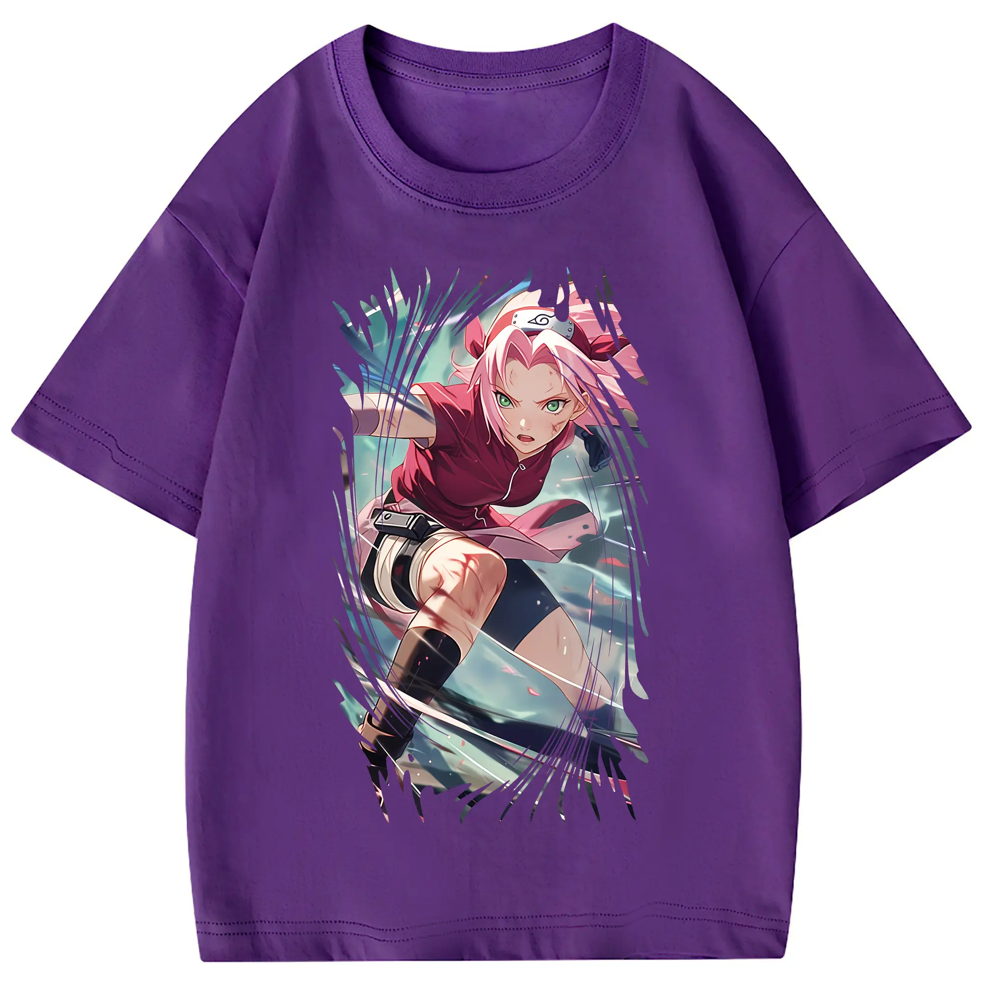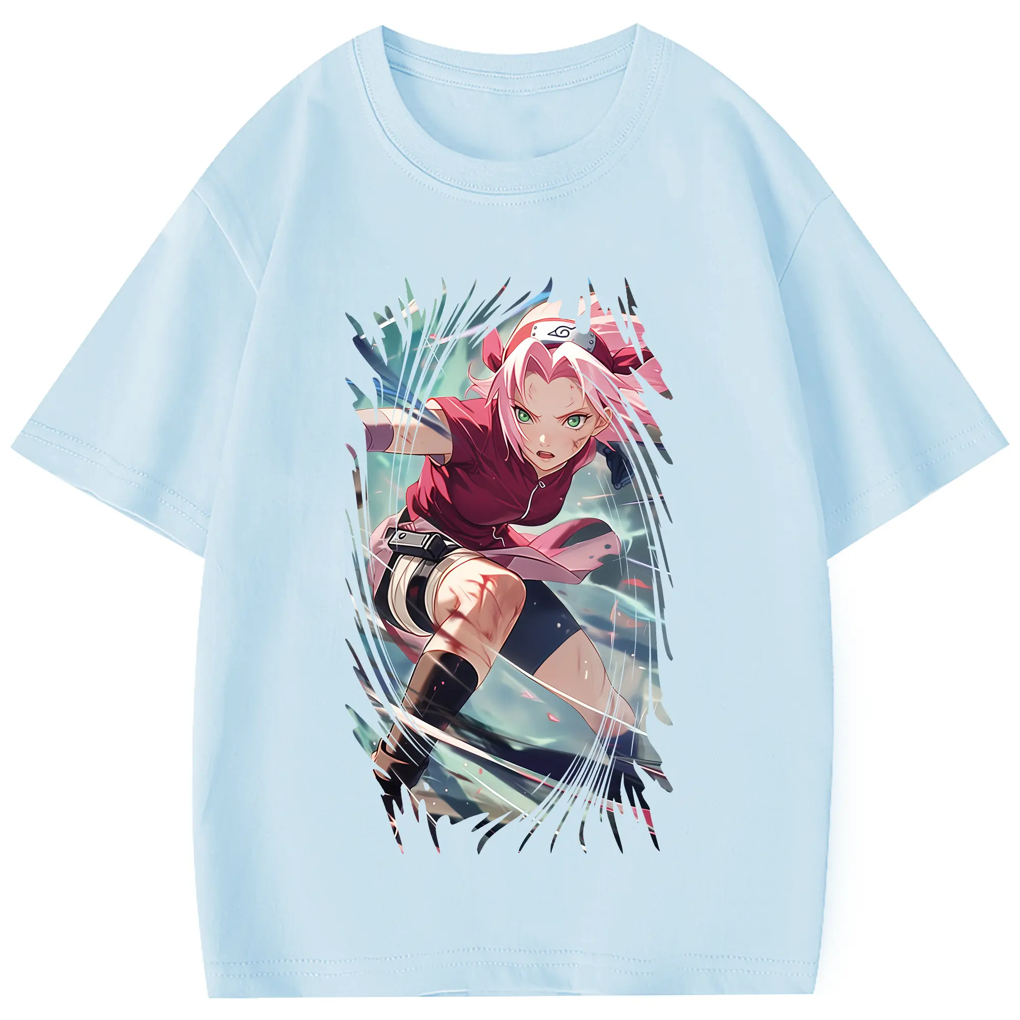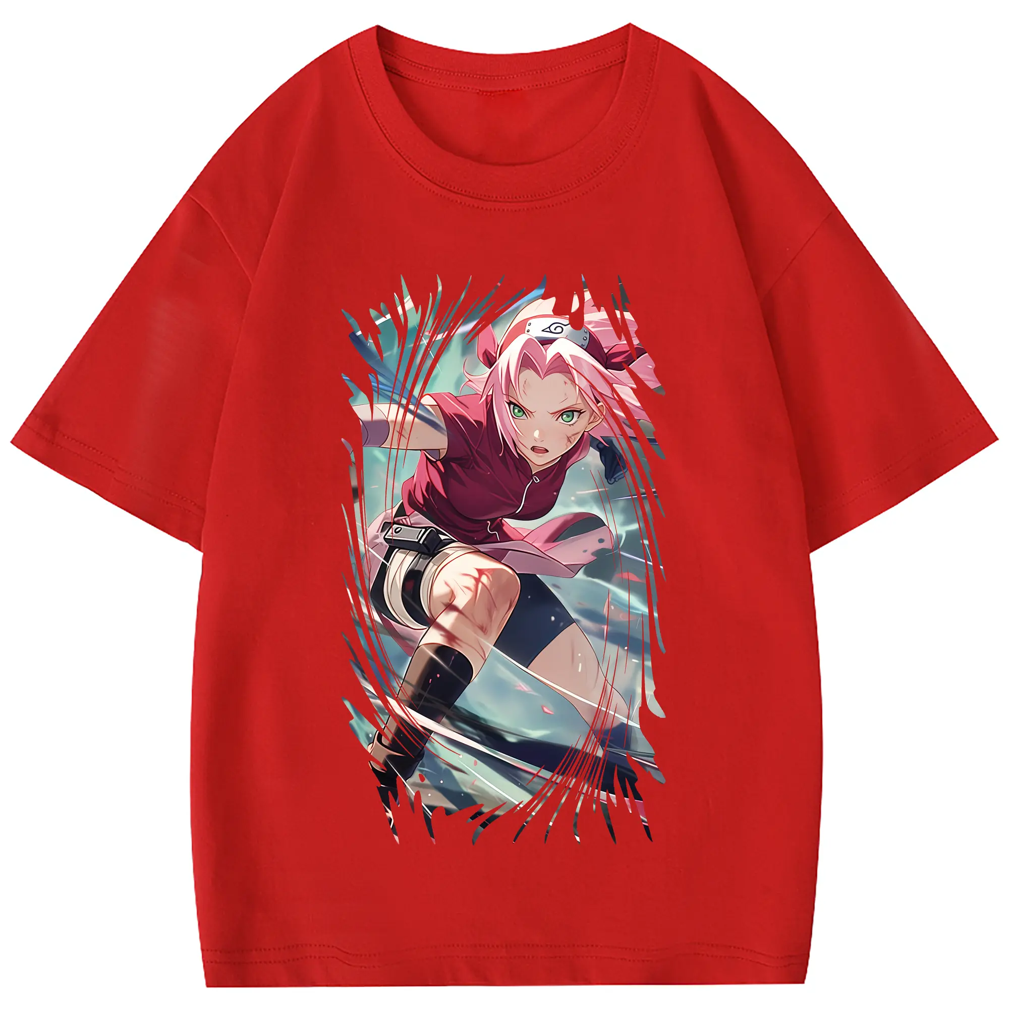 ナルト グッズ はるの さくら - 綿100% 半袖Tシャツ ・ フロントプリント ・ 快適 通気性 ・ 日常使い 散歩 スポーツ用