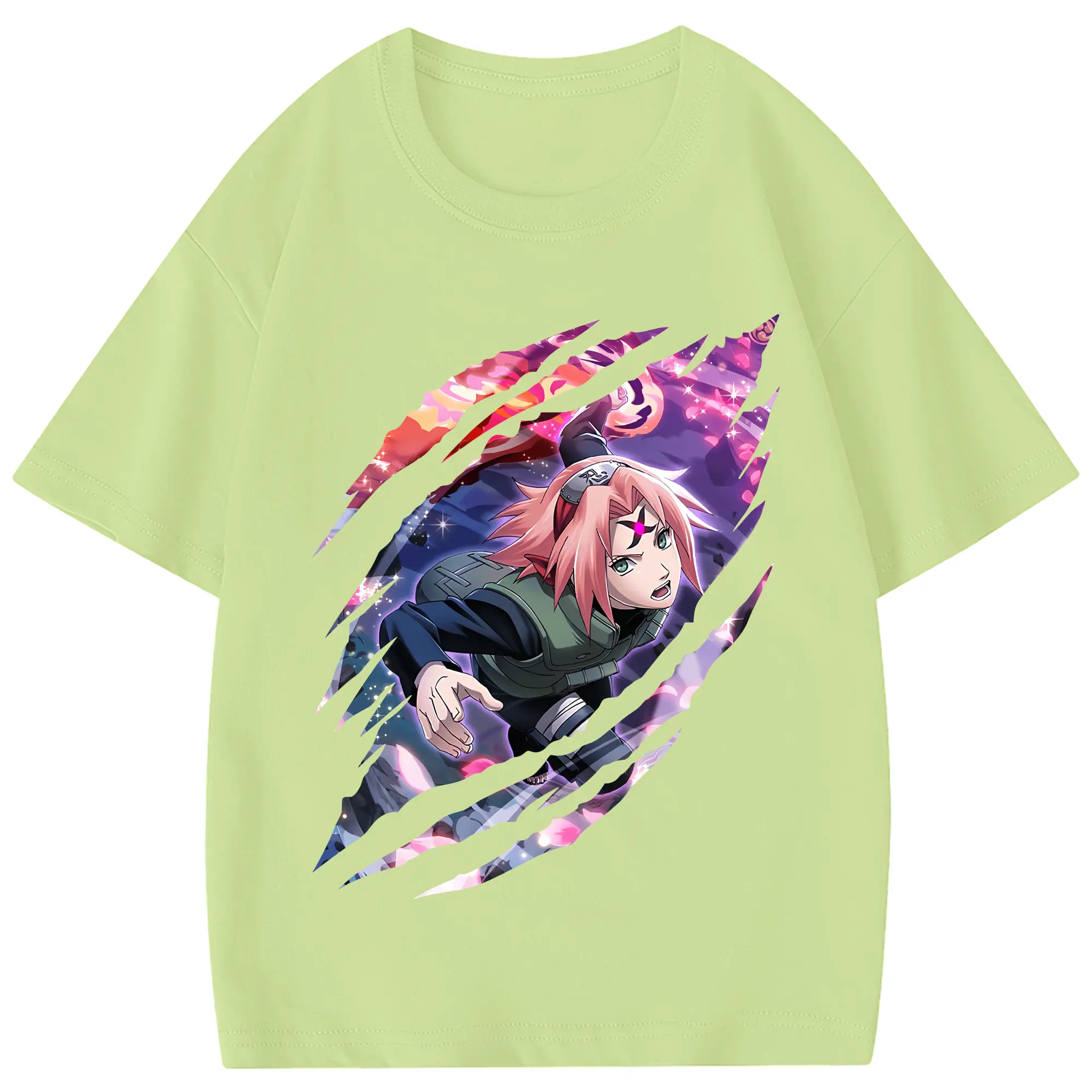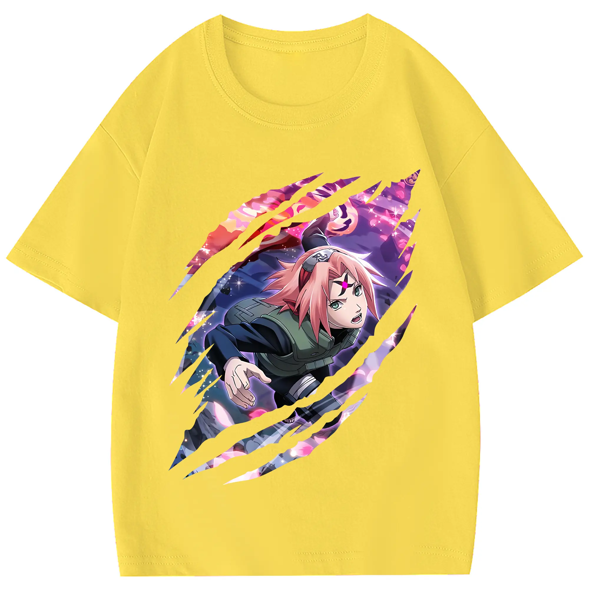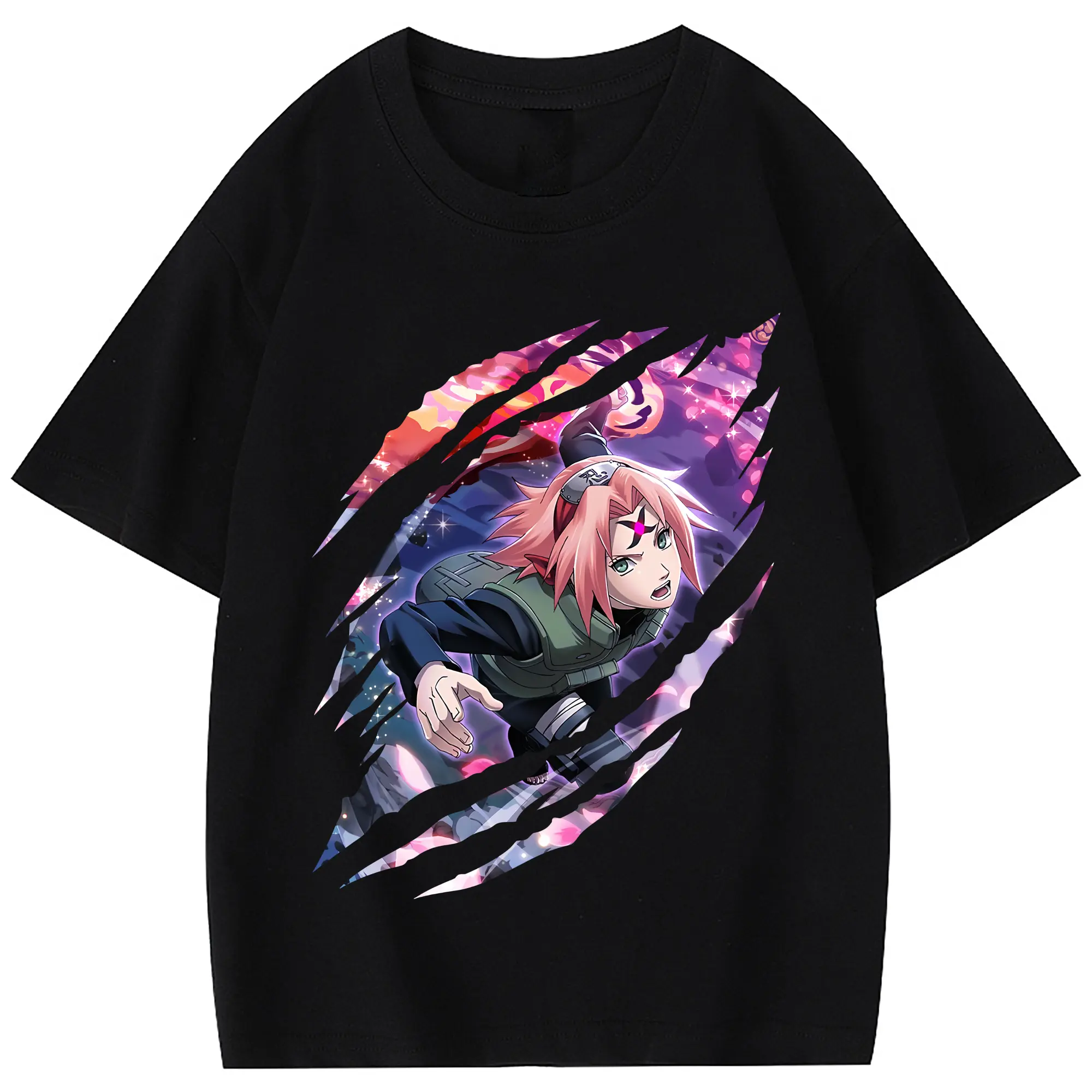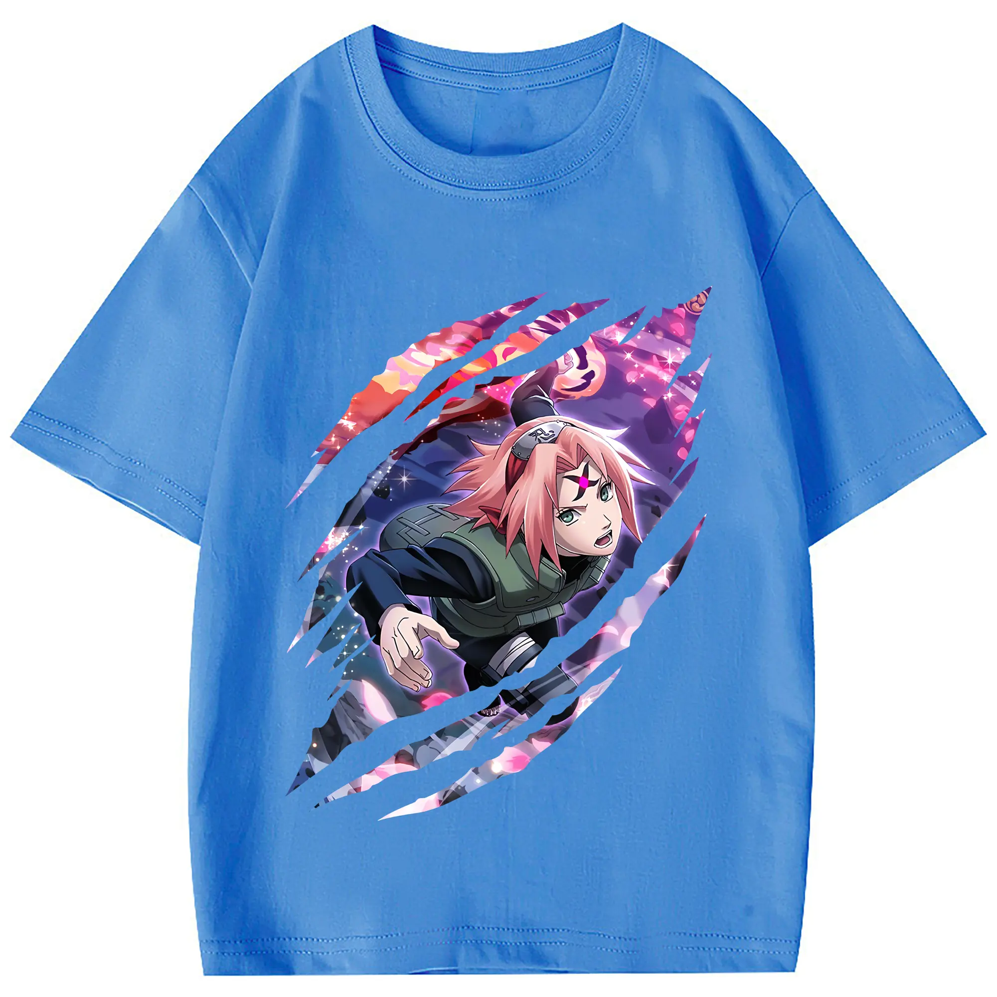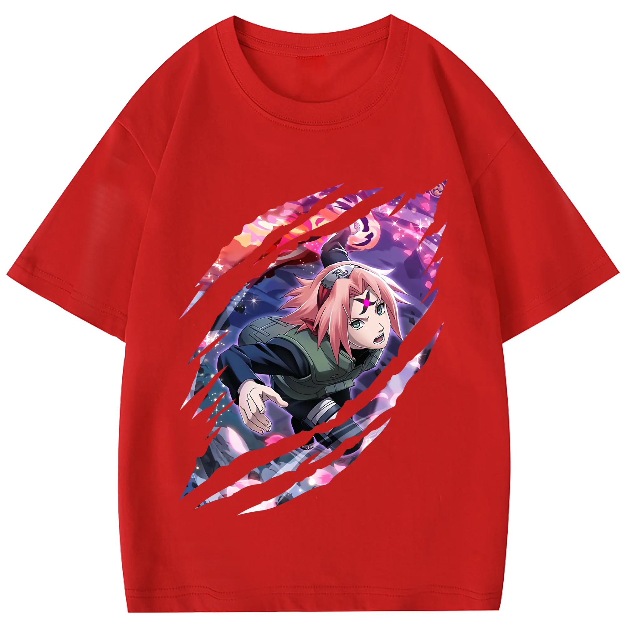 ナルト グッズ はるの さくら - 綿100% 半袖Tシャツ ・ フロントプリント ・ 快適 通気性 ・ 日常使い 散歩 スポーツ用