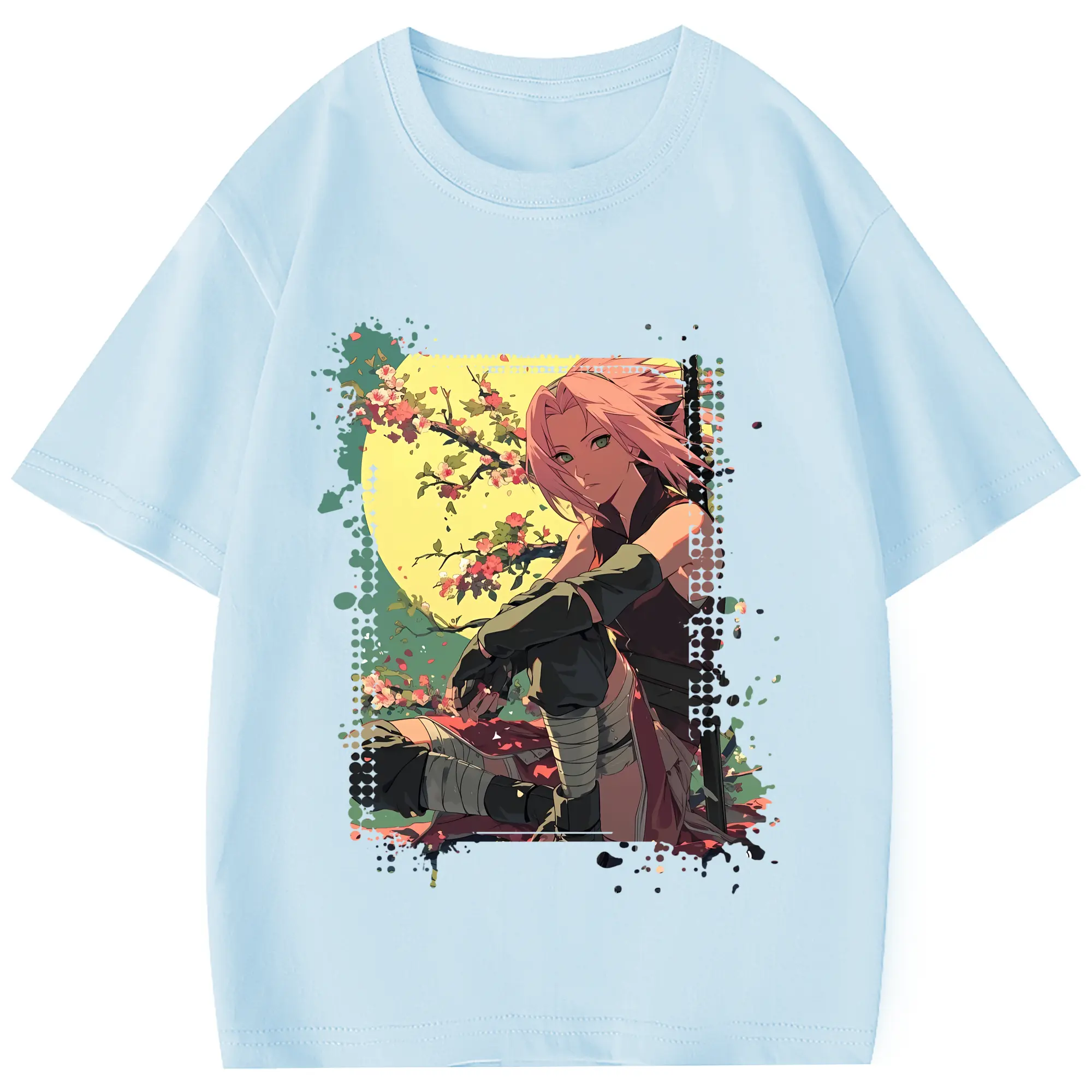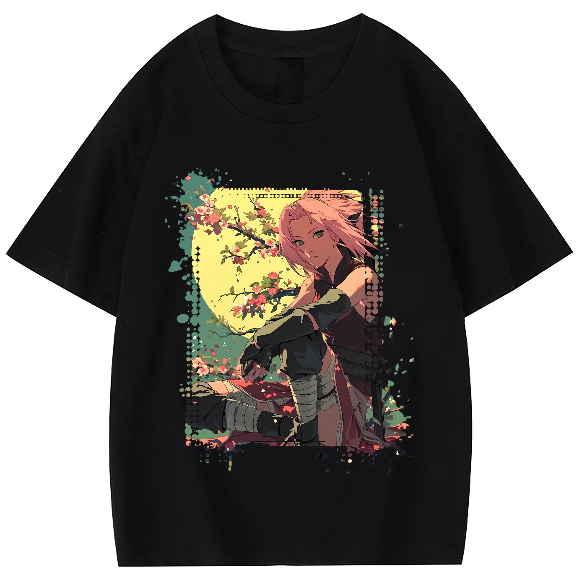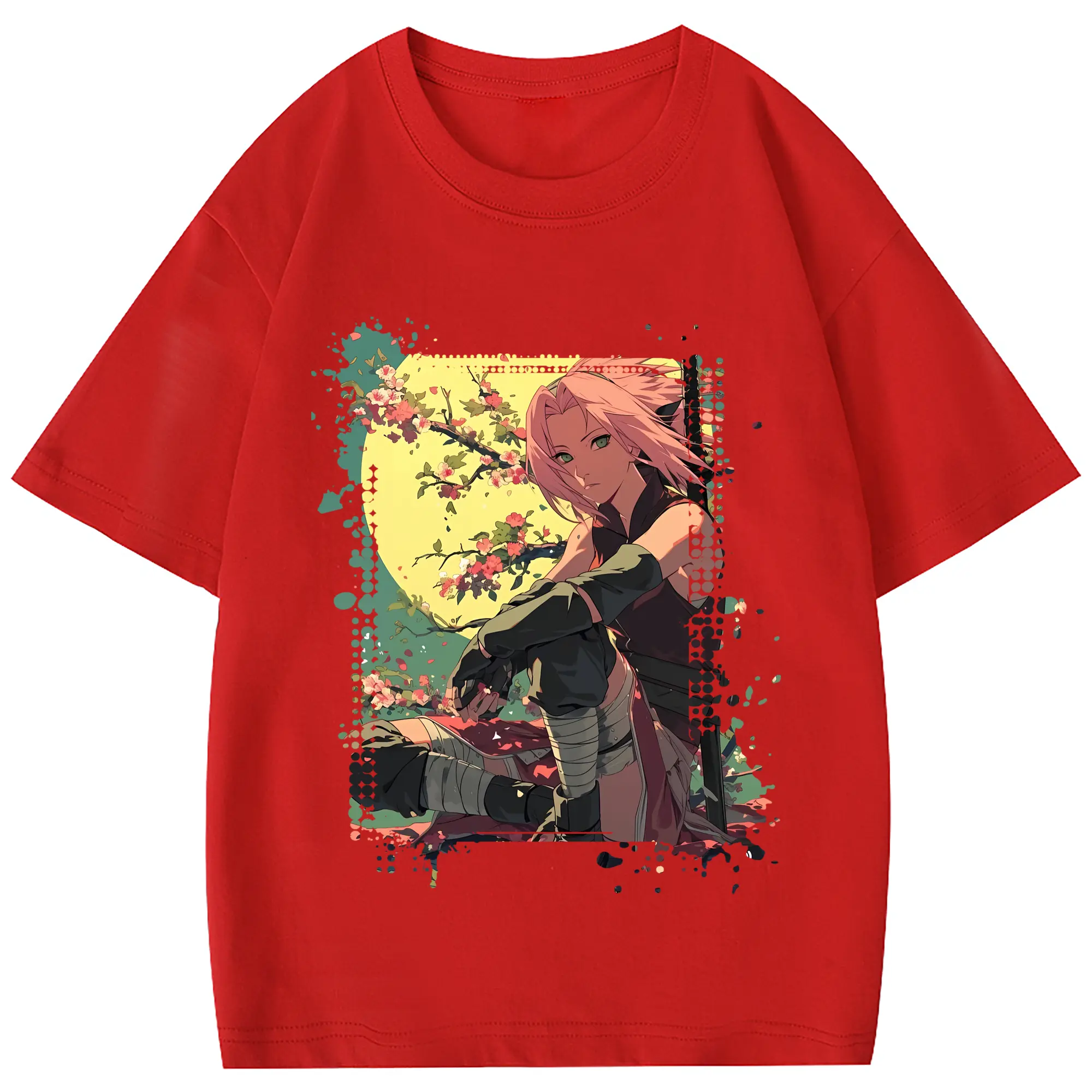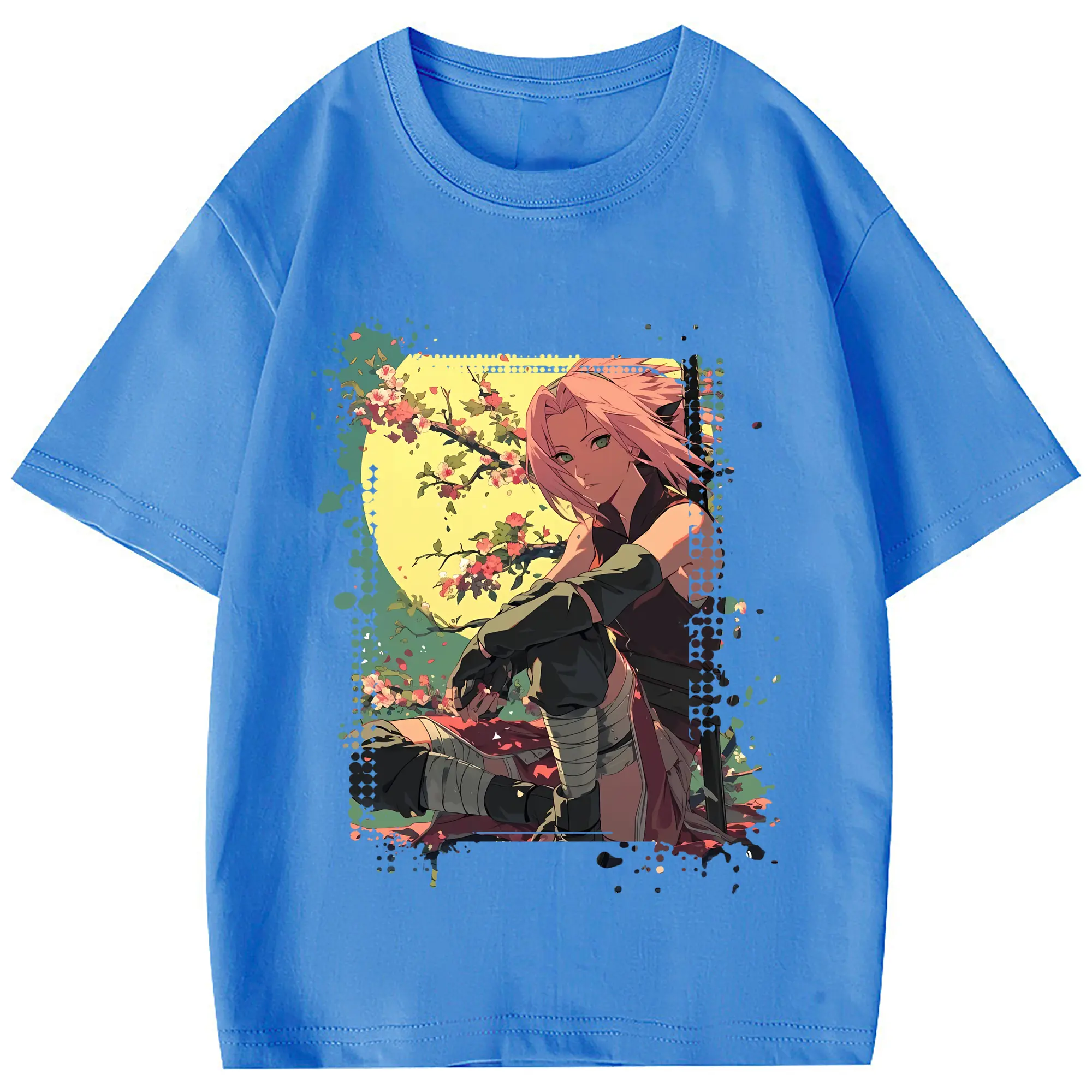 ナルト グッズ はるの さくら - 綿100% 半袖Tシャツ ・ フロントプリント ・ 快適 通気性 ・ 日常使い 散歩 スポーツ用