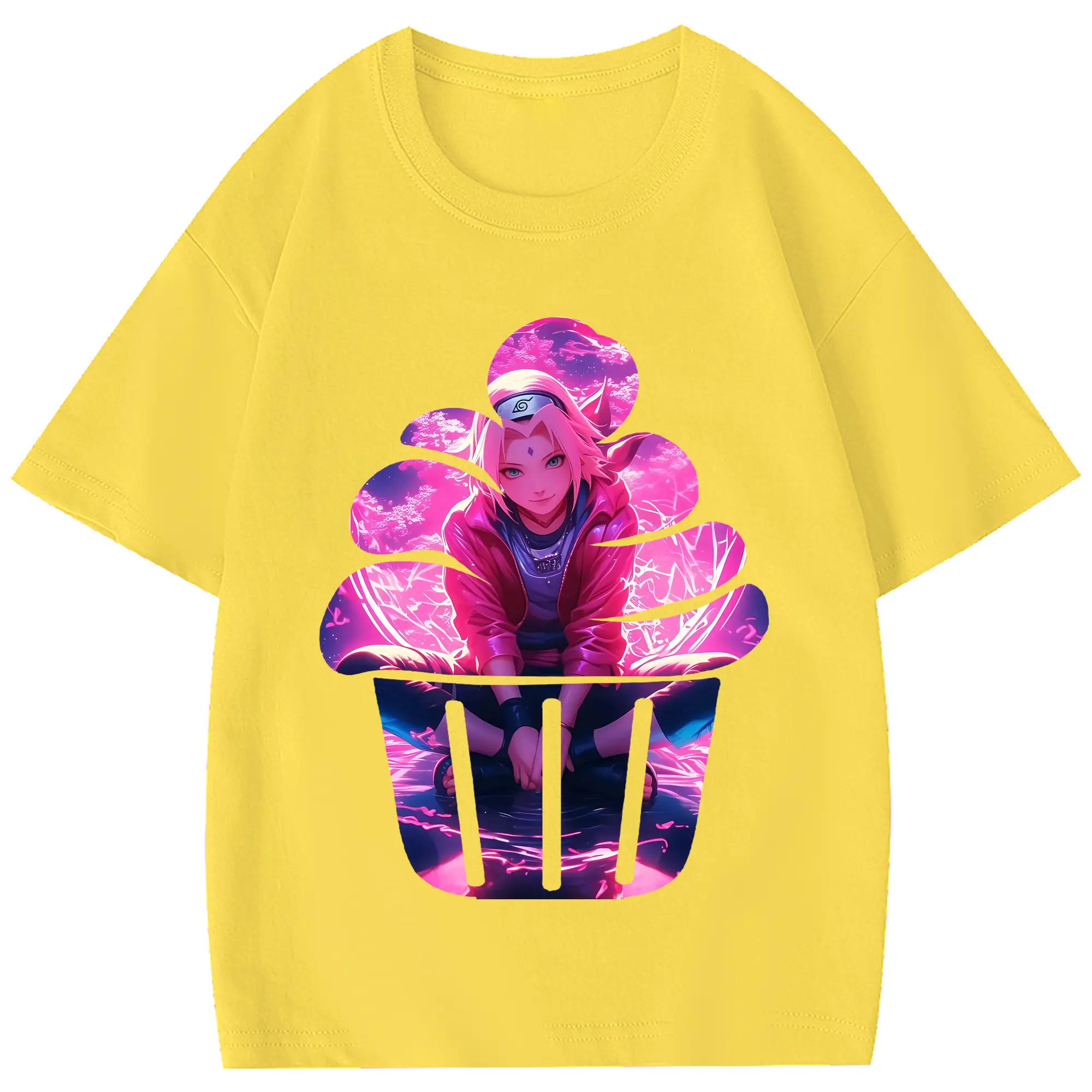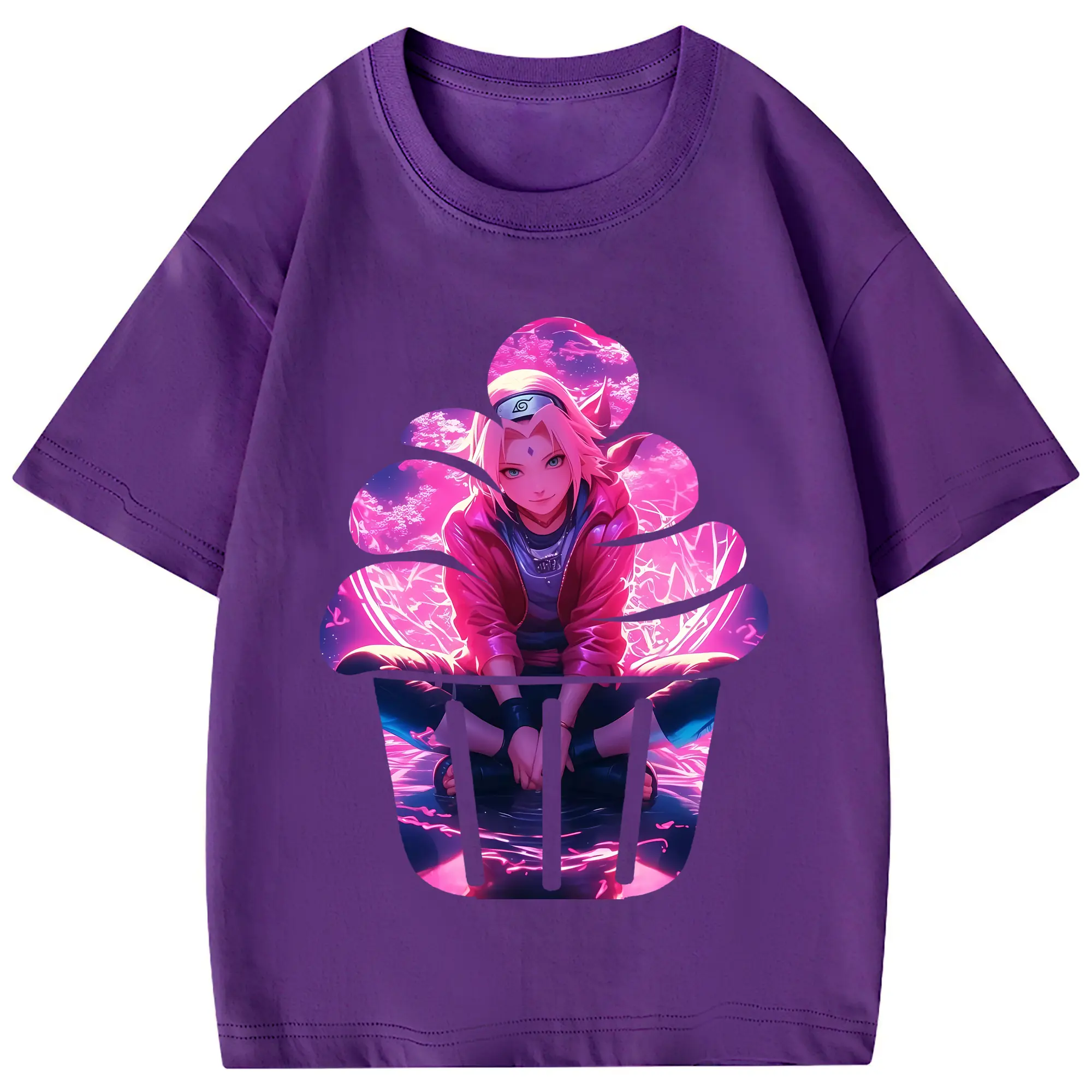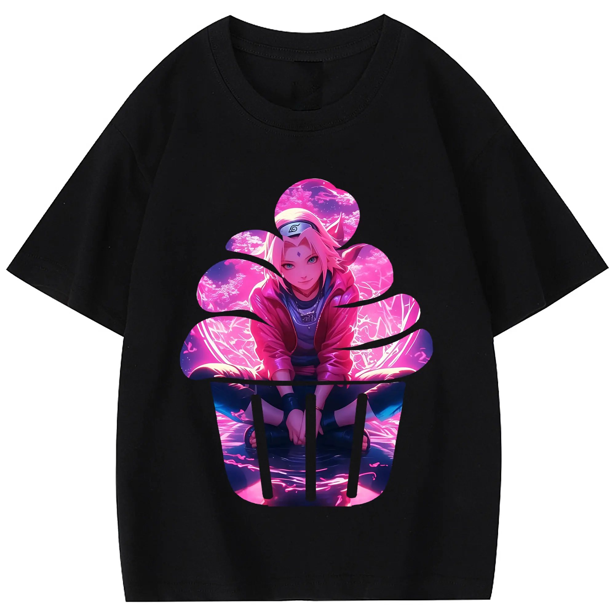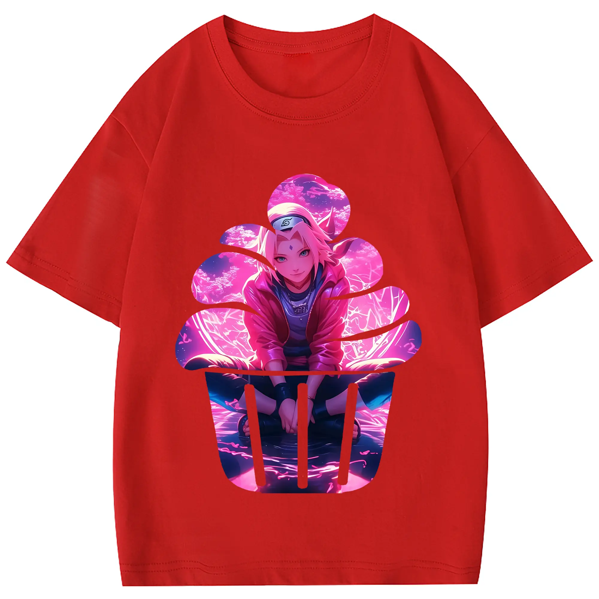 ナルト グッズ はるの さくら - 綿100% 半袖Tシャツ ・ フロントプリント ・ 快適 通気性 ・ 日常使い 散歩 スポーツ用