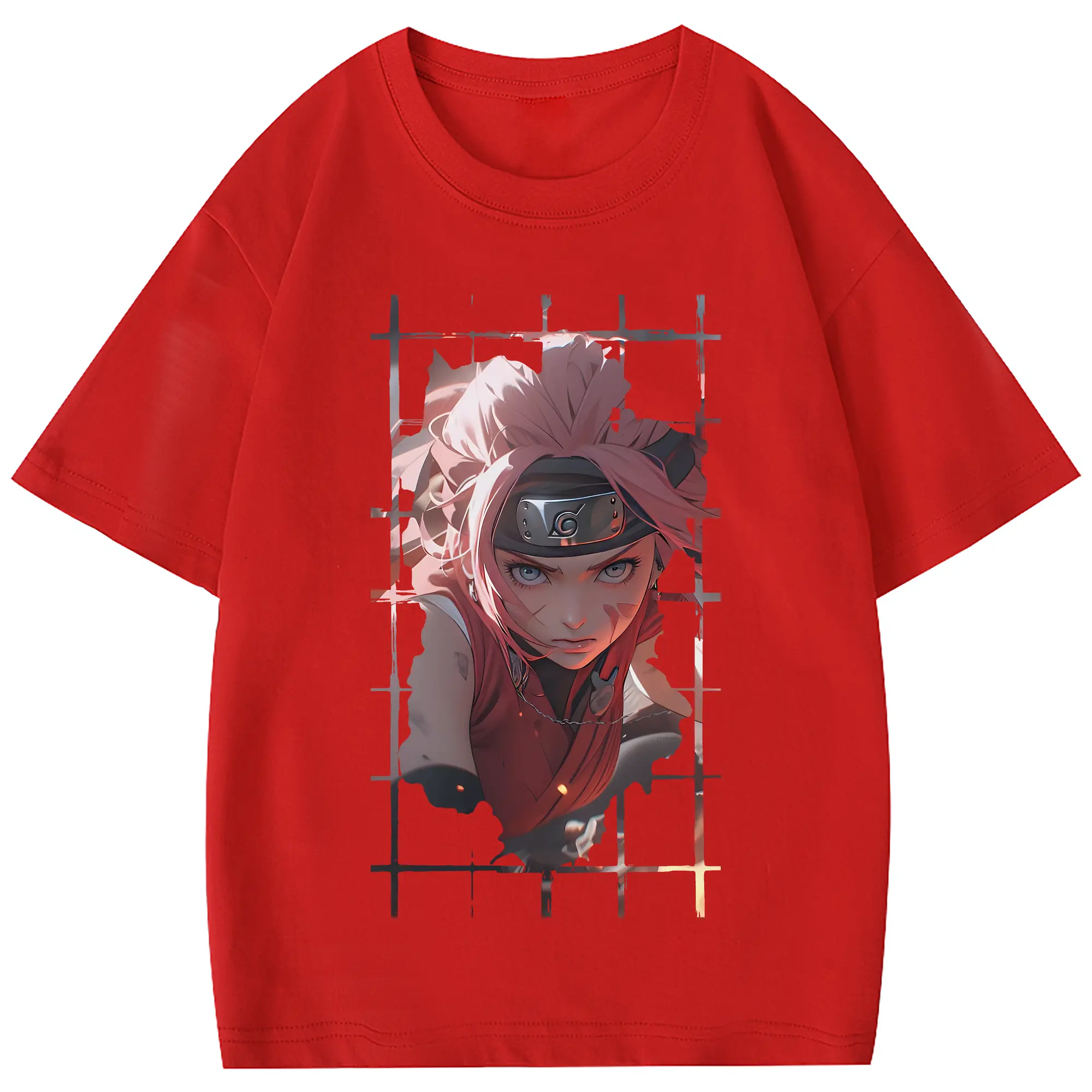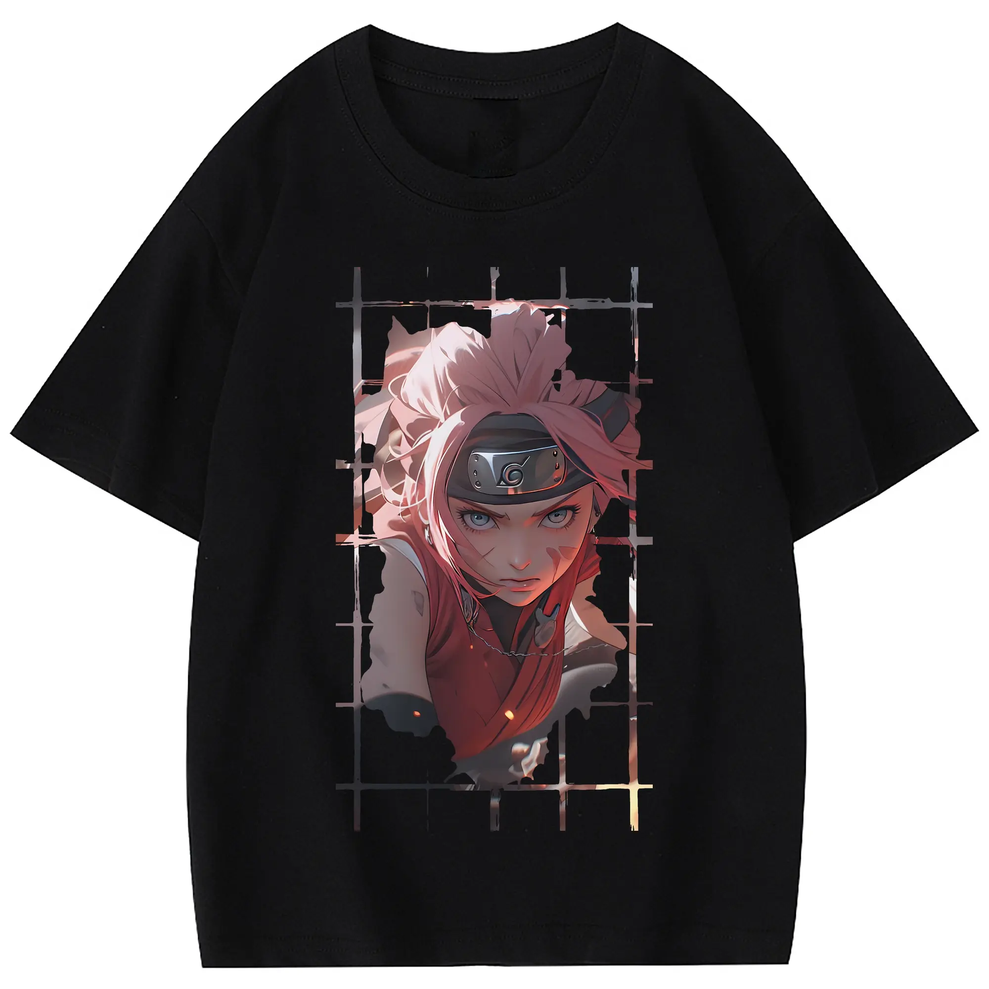 ナルト グッズ はるの さくら - 綿100% 半袖Tシャツ ・ フロントプリント ・ 快適 通気性 ・ 日常使い 散歩 スポーツ用