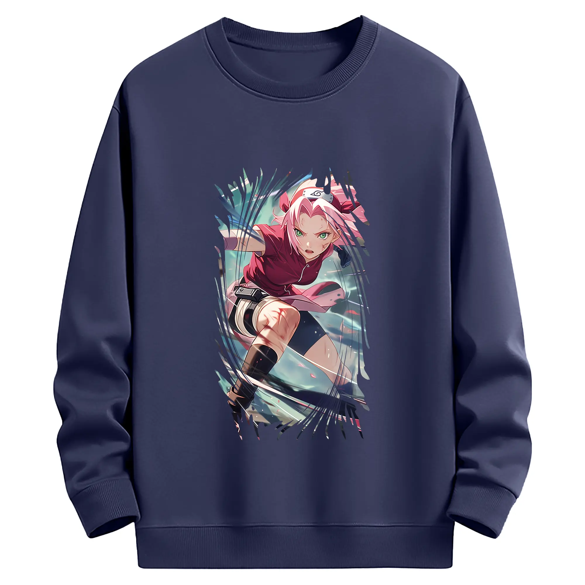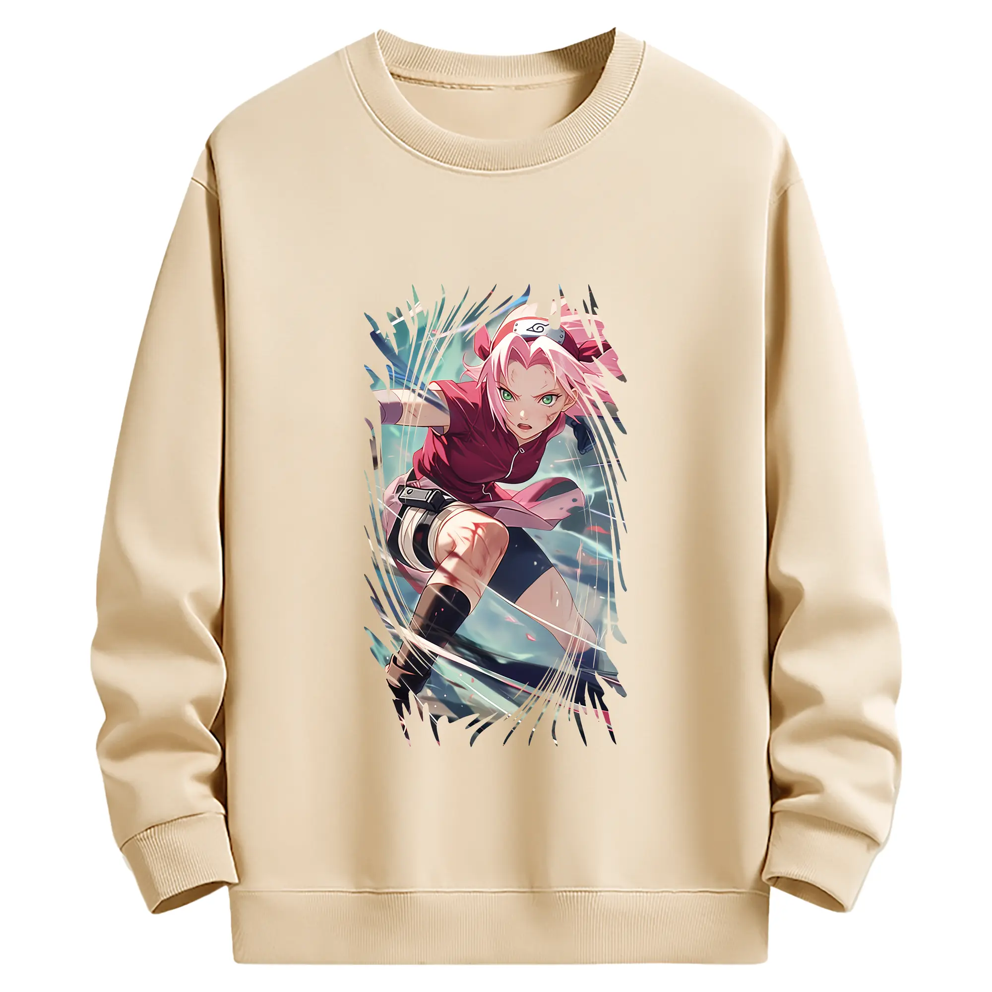 ナルト グッズ はるの さくら - 薄手 クルーネック スウェット 裏毛260g · ポリエステル 春秋向け カジュアル 男女兼用 · トレーナー デイリー スポーツ 散歩に最適