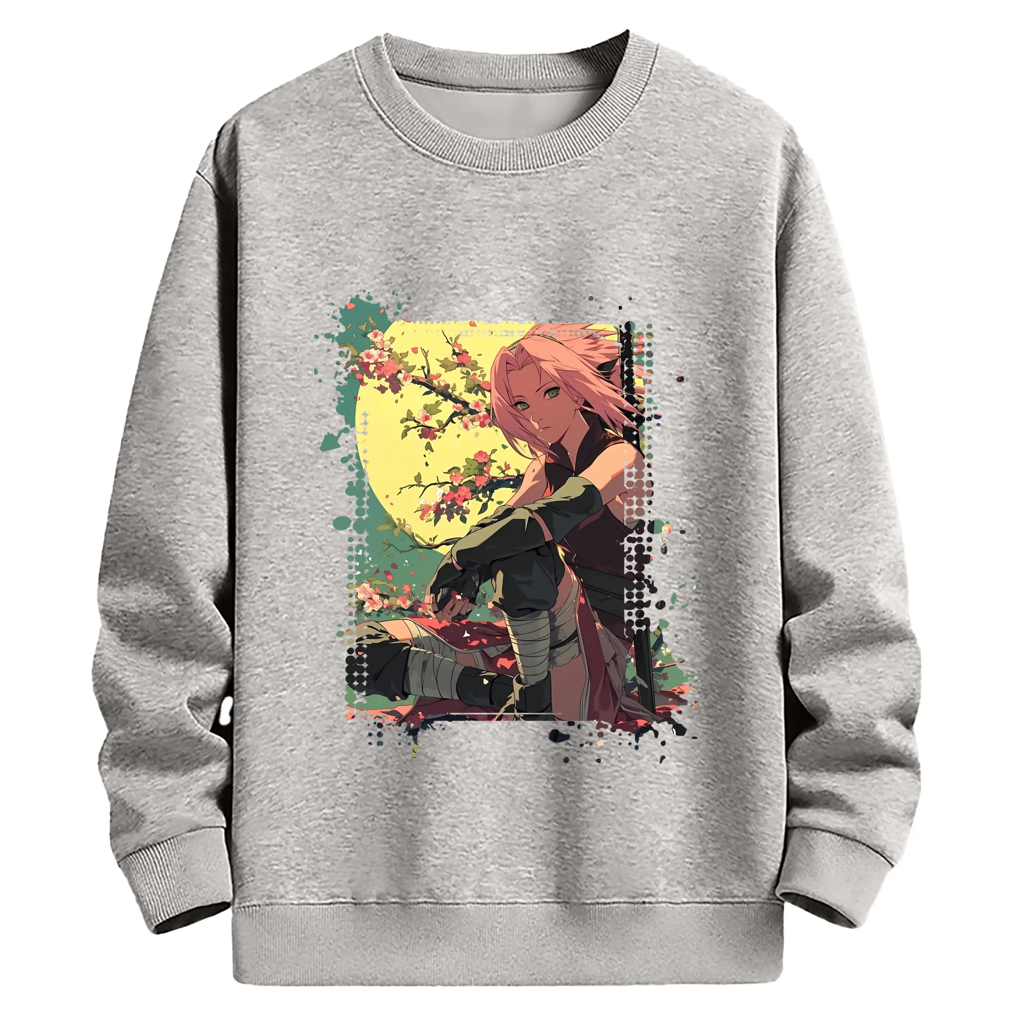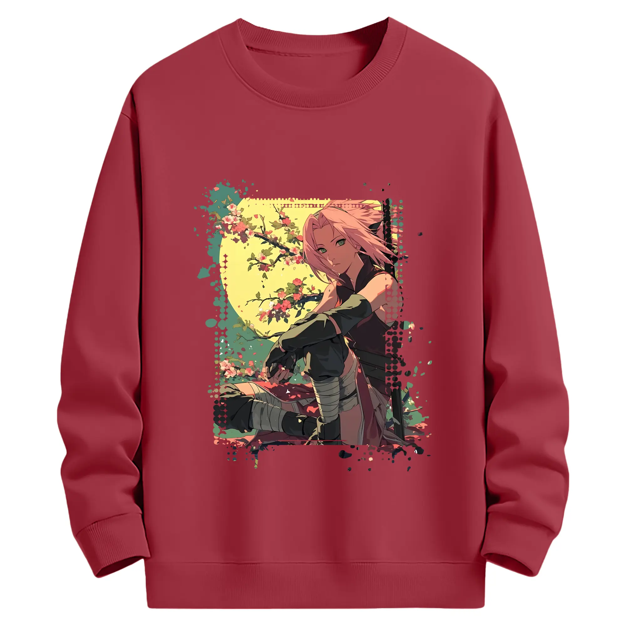 ナルト グッズ はるの さくら - 薄手 クルーネック スウェット 裏毛260g · ポリエステル 春秋向け カジュアル 男女兼用 · トレーナー デイリー スポーツ 散歩に最適