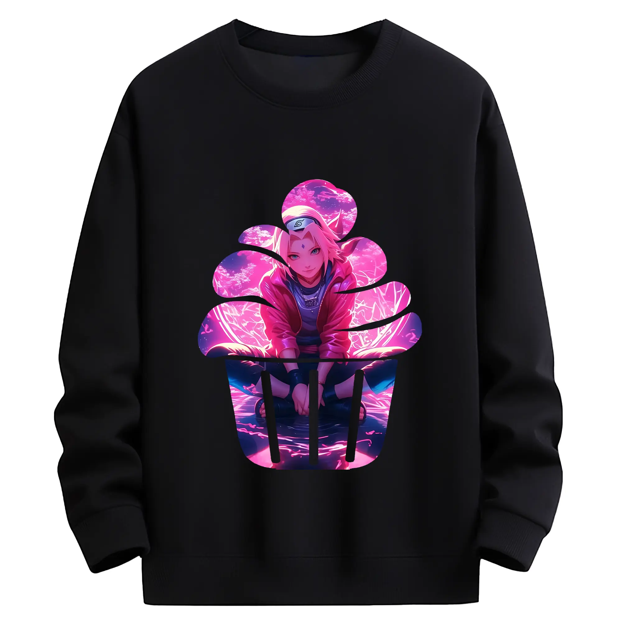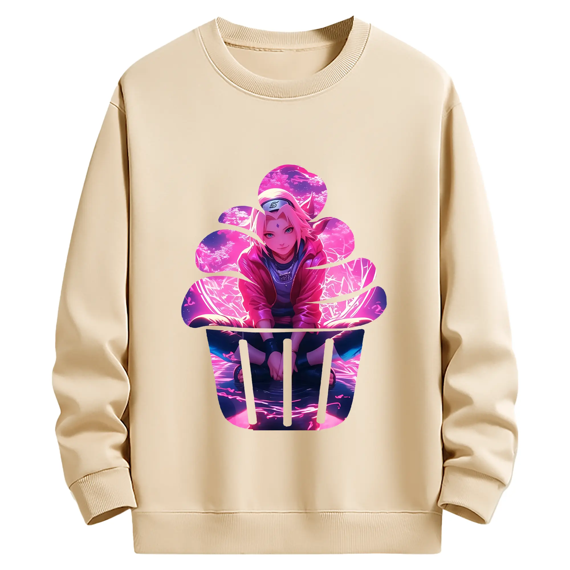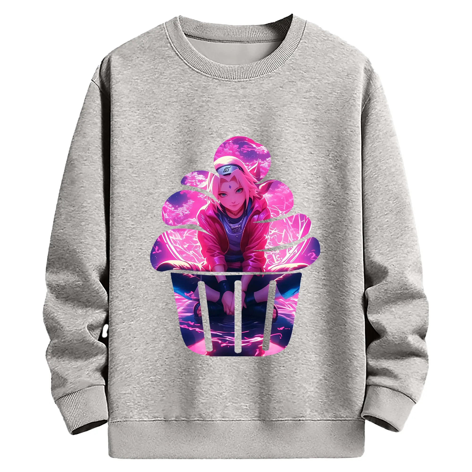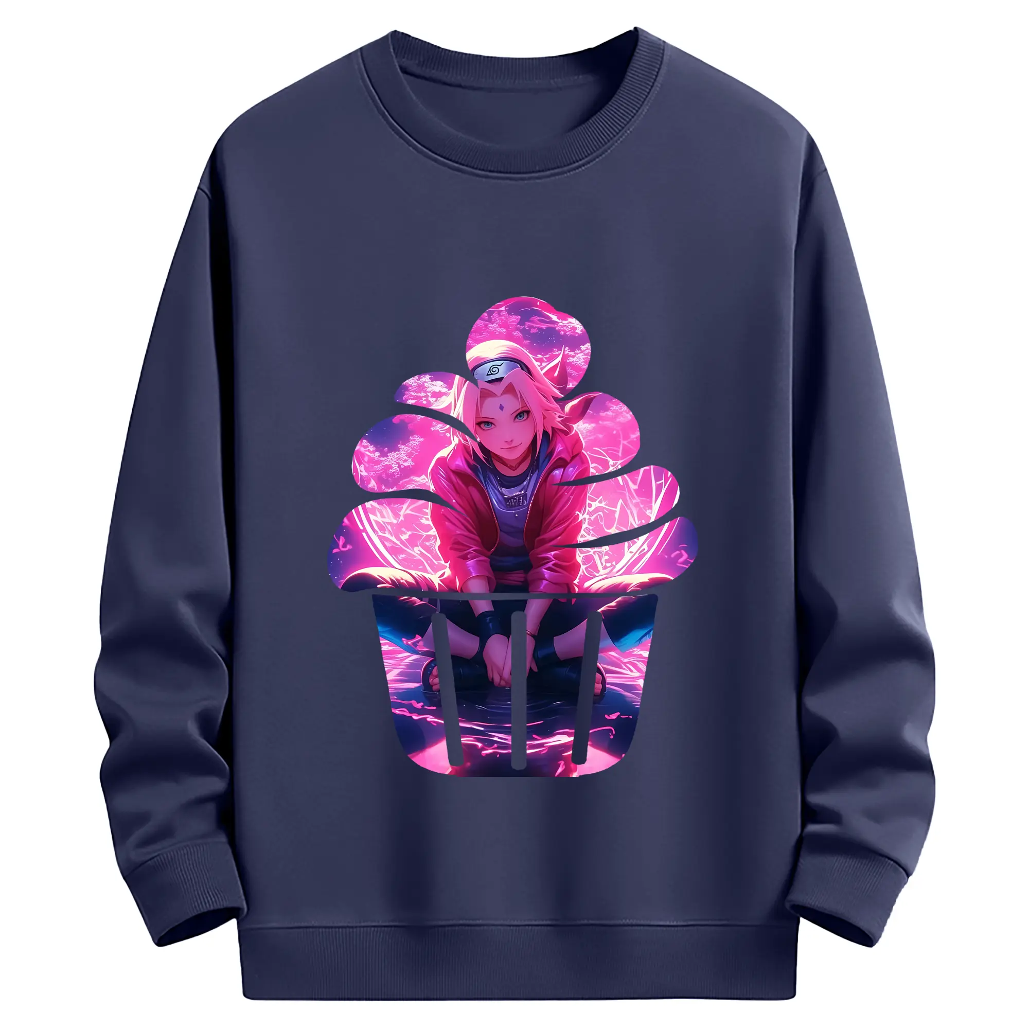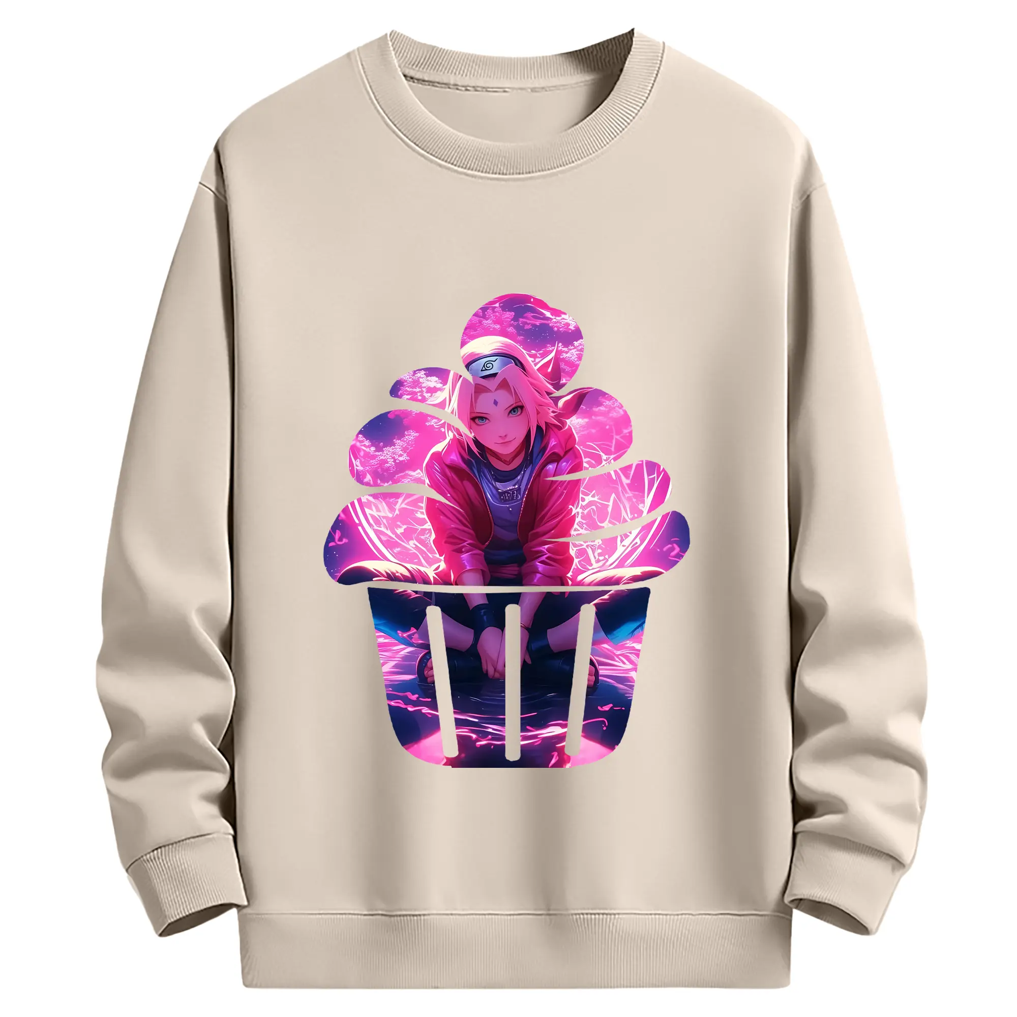 ナルト グッズ はるの さくら - 薄手 クルーネック スウェット 裏毛260g · ポリエステル 春秋向け カジュアル 男女兼用 · トレーナー デイリー スポーツ 散歩に最適