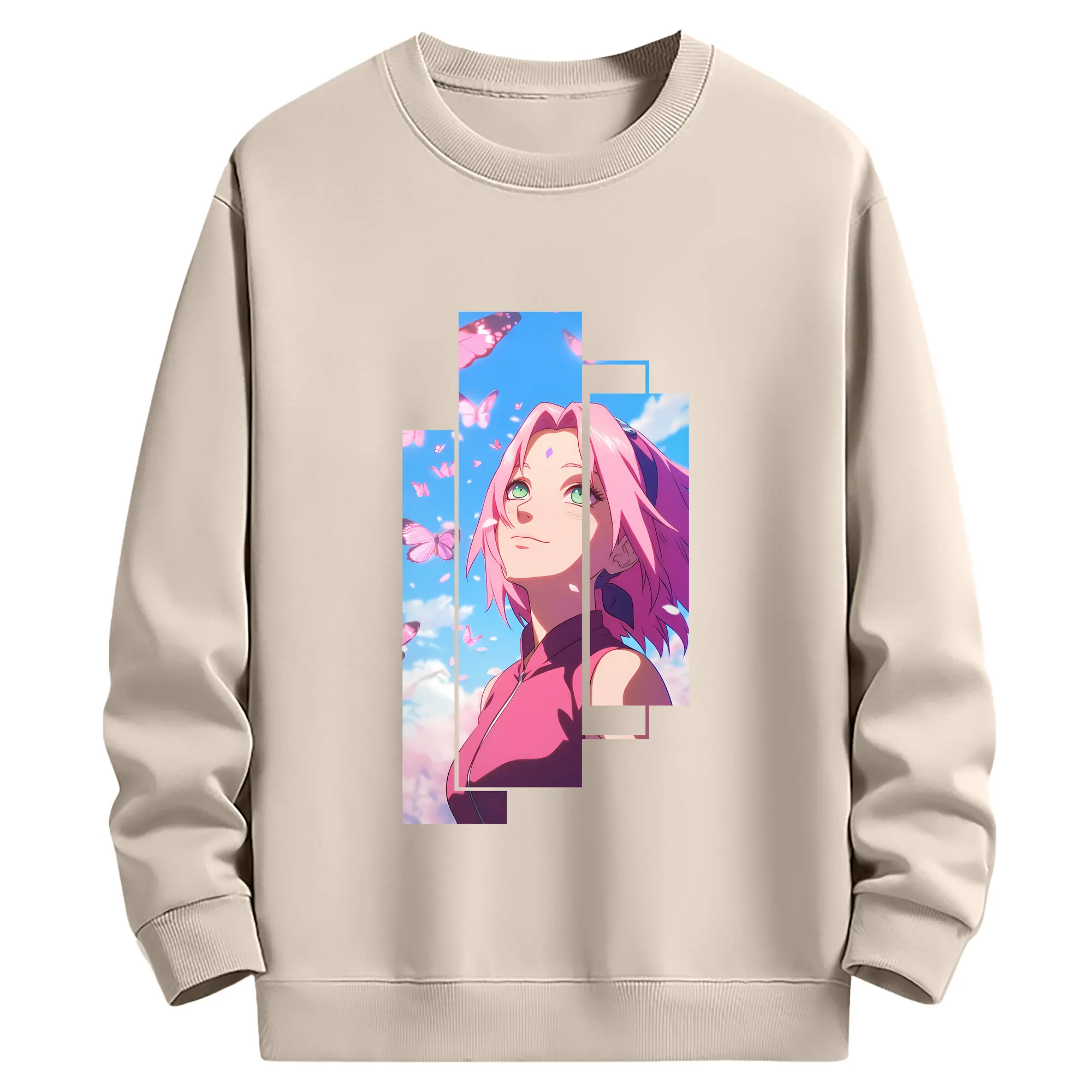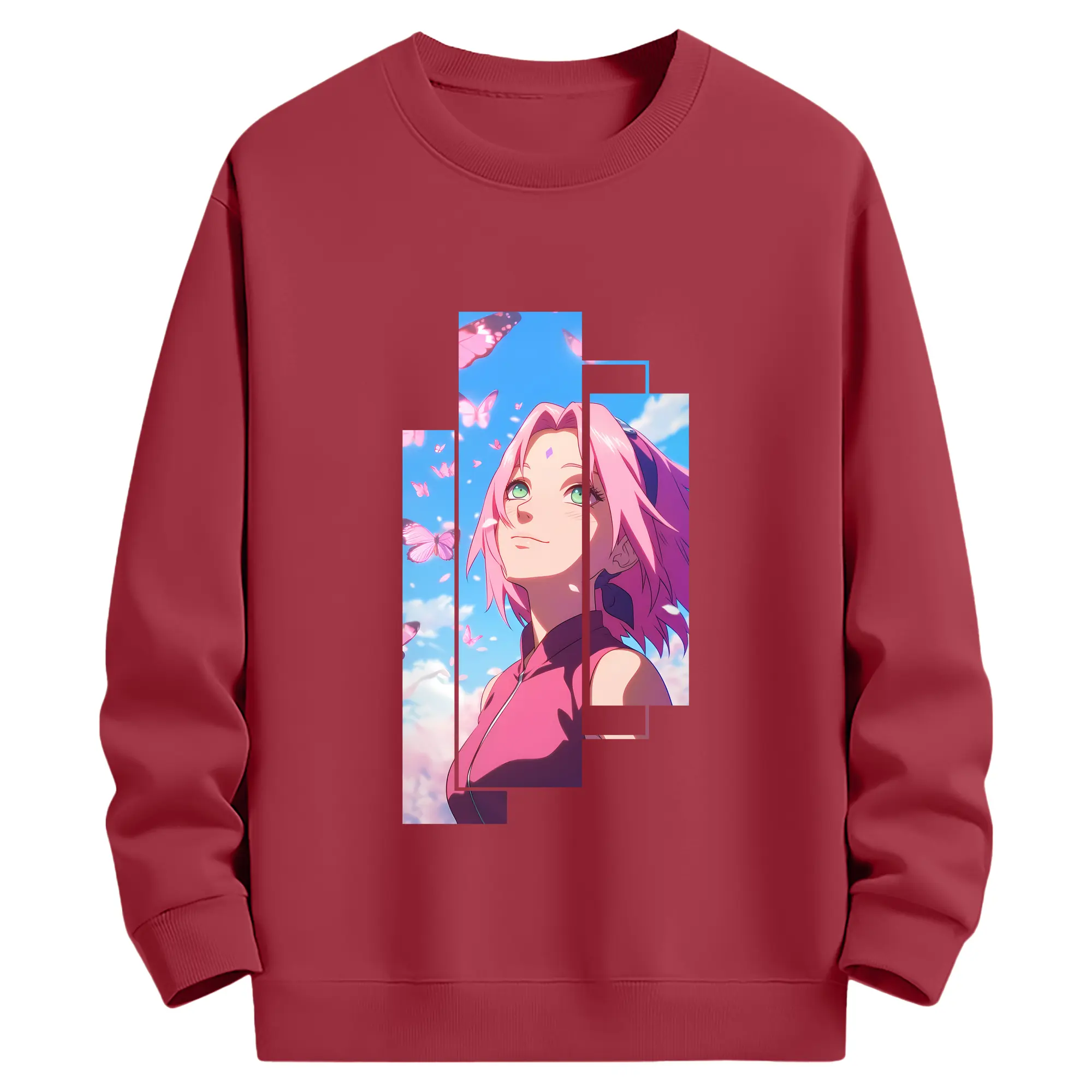 ナルト グッズ はるの さくら - 薄手 クルーネック スウェット 裏毛260g · ポリエステル 春秋向け カジュアル 男女兼用 · トレーナー デイリー スポーツ 散歩に最適