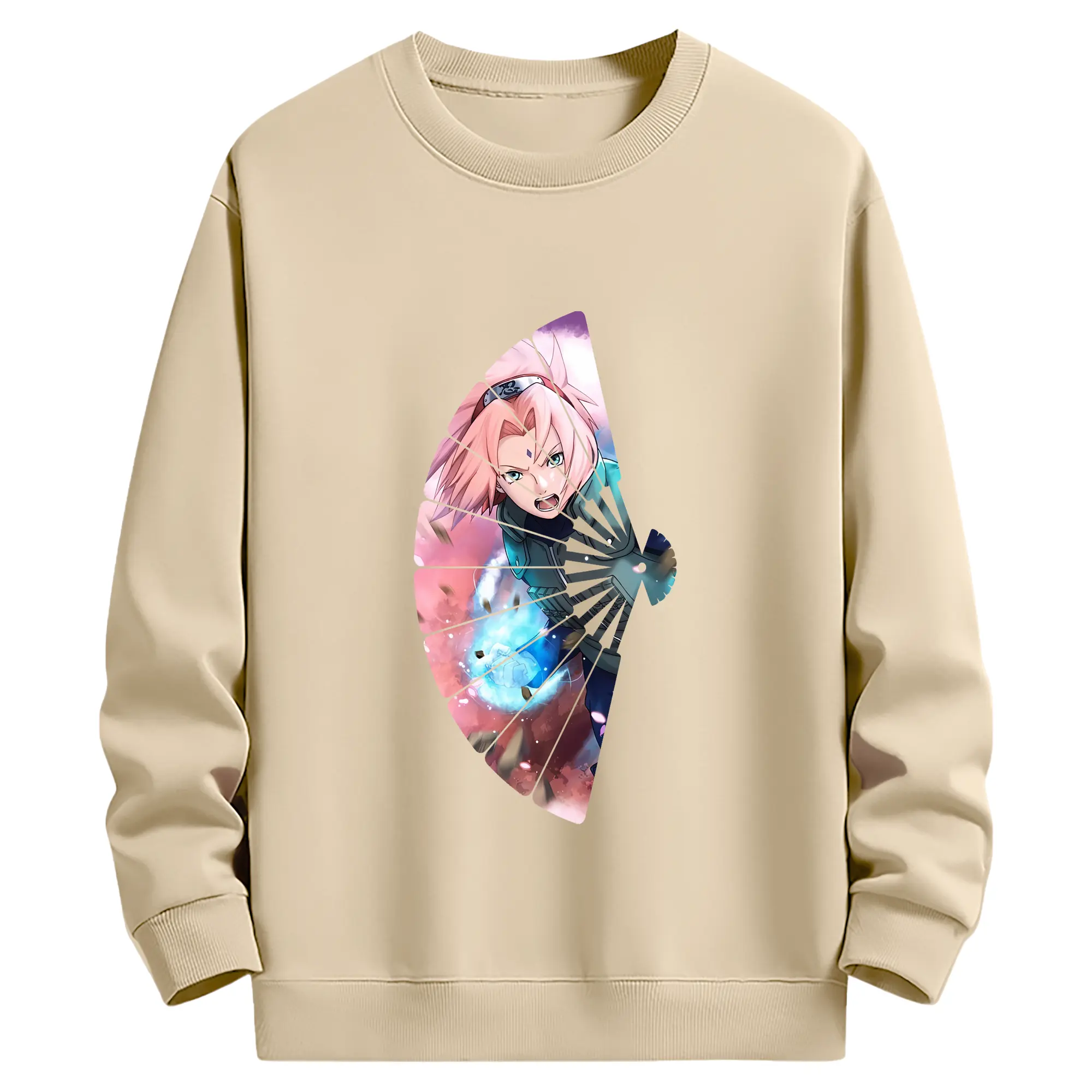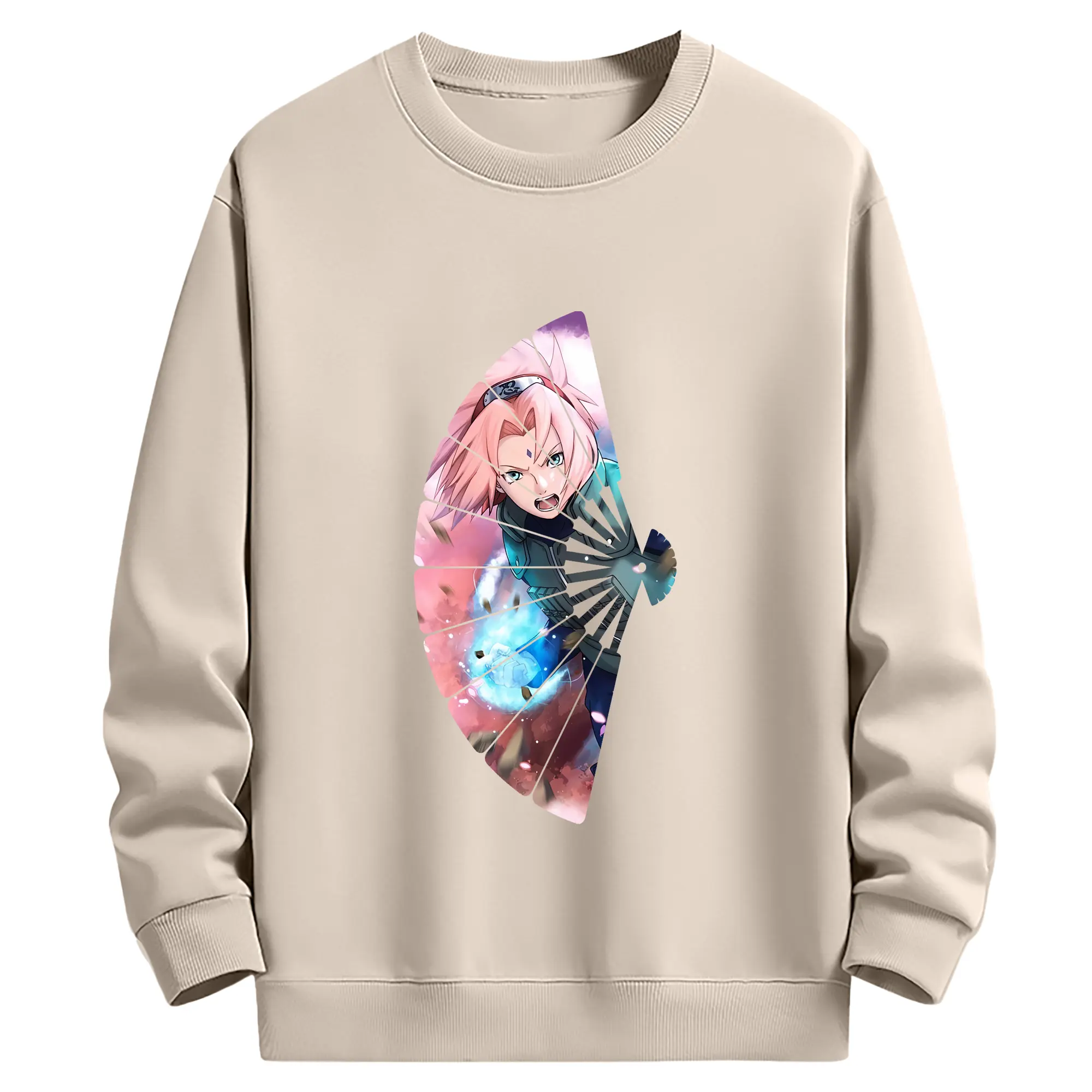 ナルト グッズ はるの さくら - 薄手 クルーネック スウェット 裏毛260g · ポリエステル 春秋向け カジュアル 男女兼用 · トレーナー デイリー スポーツ 散歩に最適