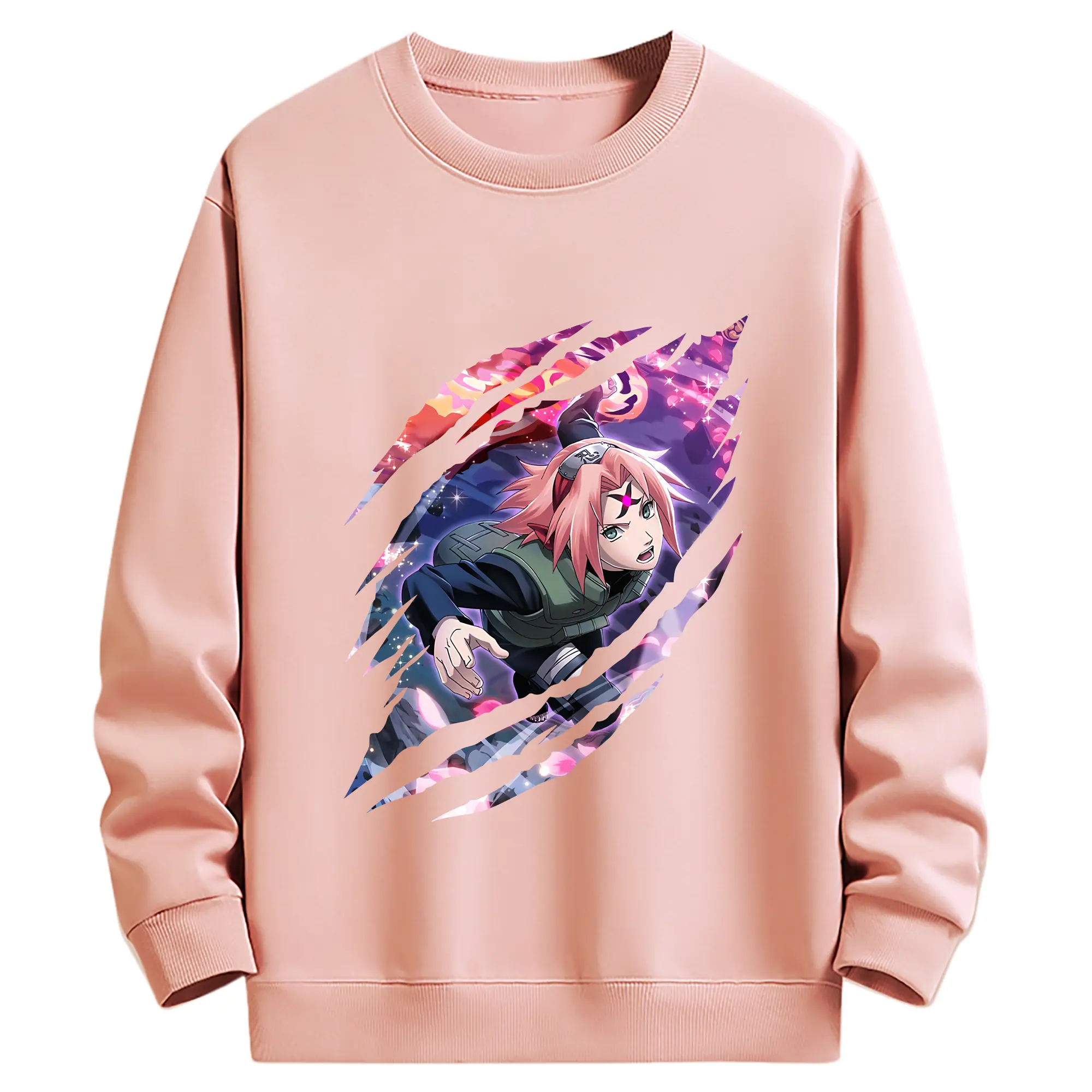ナルト グッズ はるの さくら - 薄手 クルーネック スウェット 裏毛260g · ポリエステル 春秋向け カジュアル 男女兼用 · トレーナー デイリー スポーツ 散歩に最適