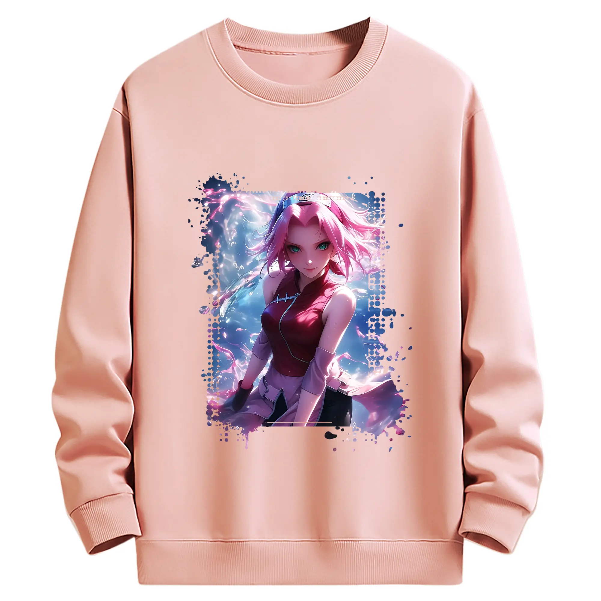 ナルト グッズ はるの さくら - 薄手 クルーネック スウェット 裏毛260g · ポリエステル 春秋向け カジュアル 男女兼用 · トレーナー デイリー スポーツ 散歩に最適