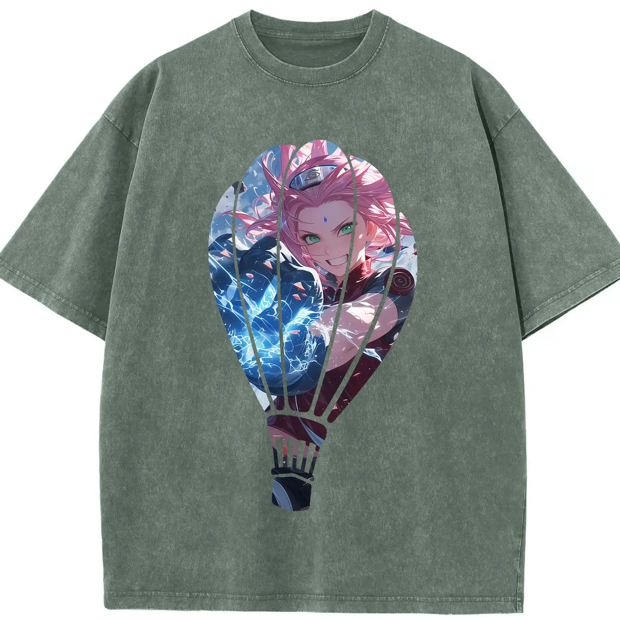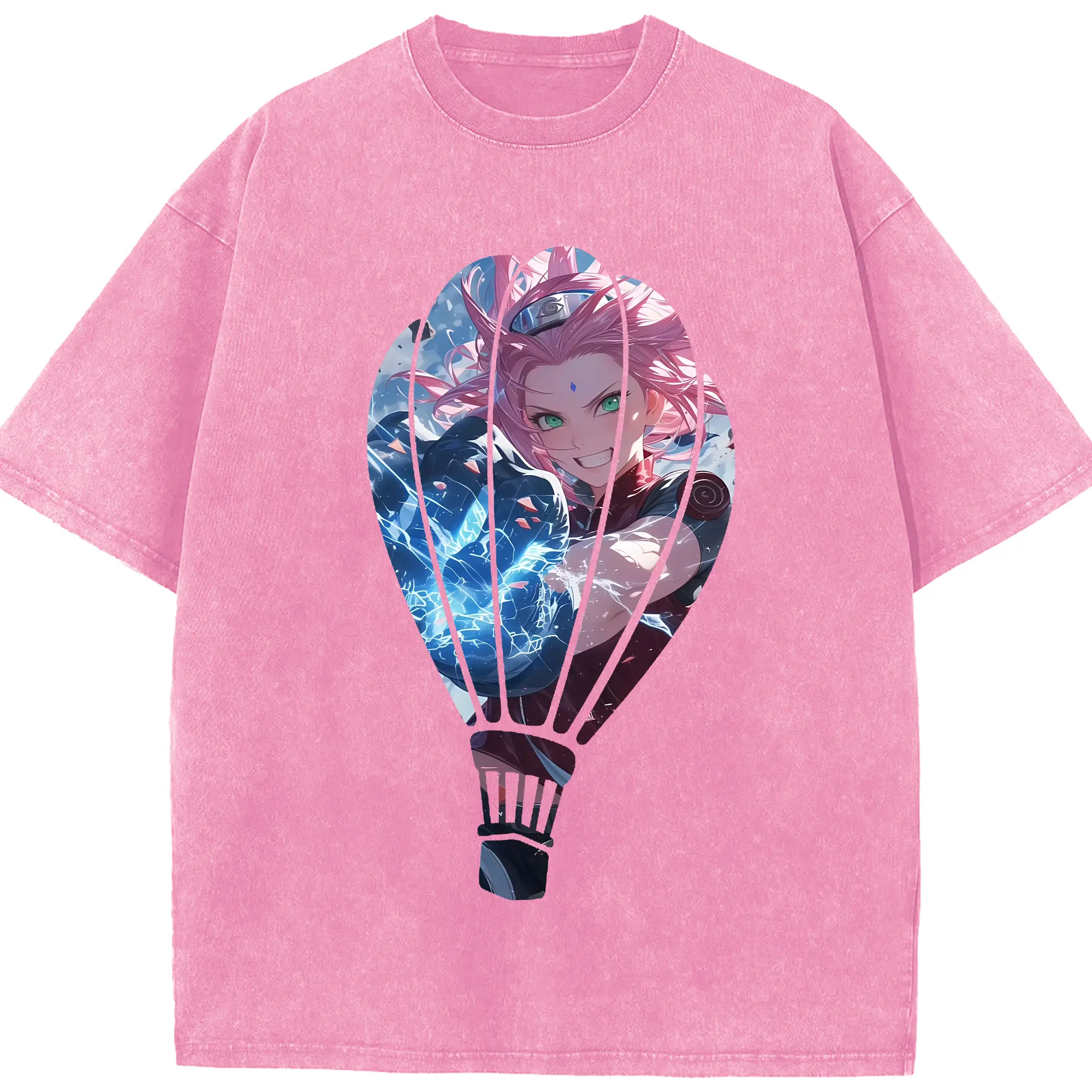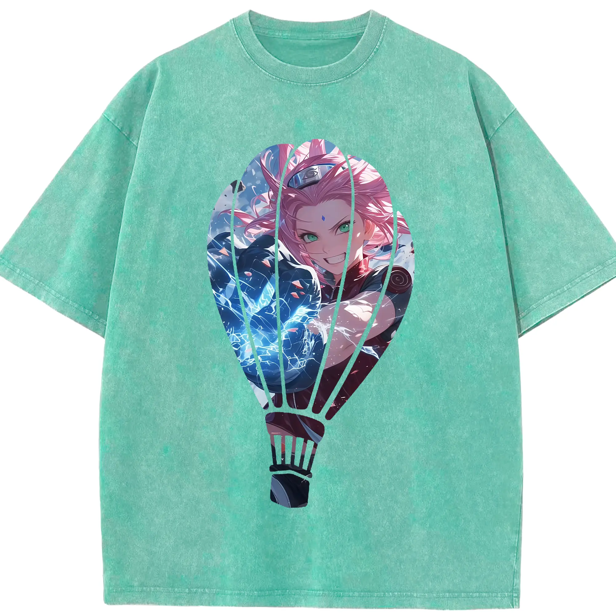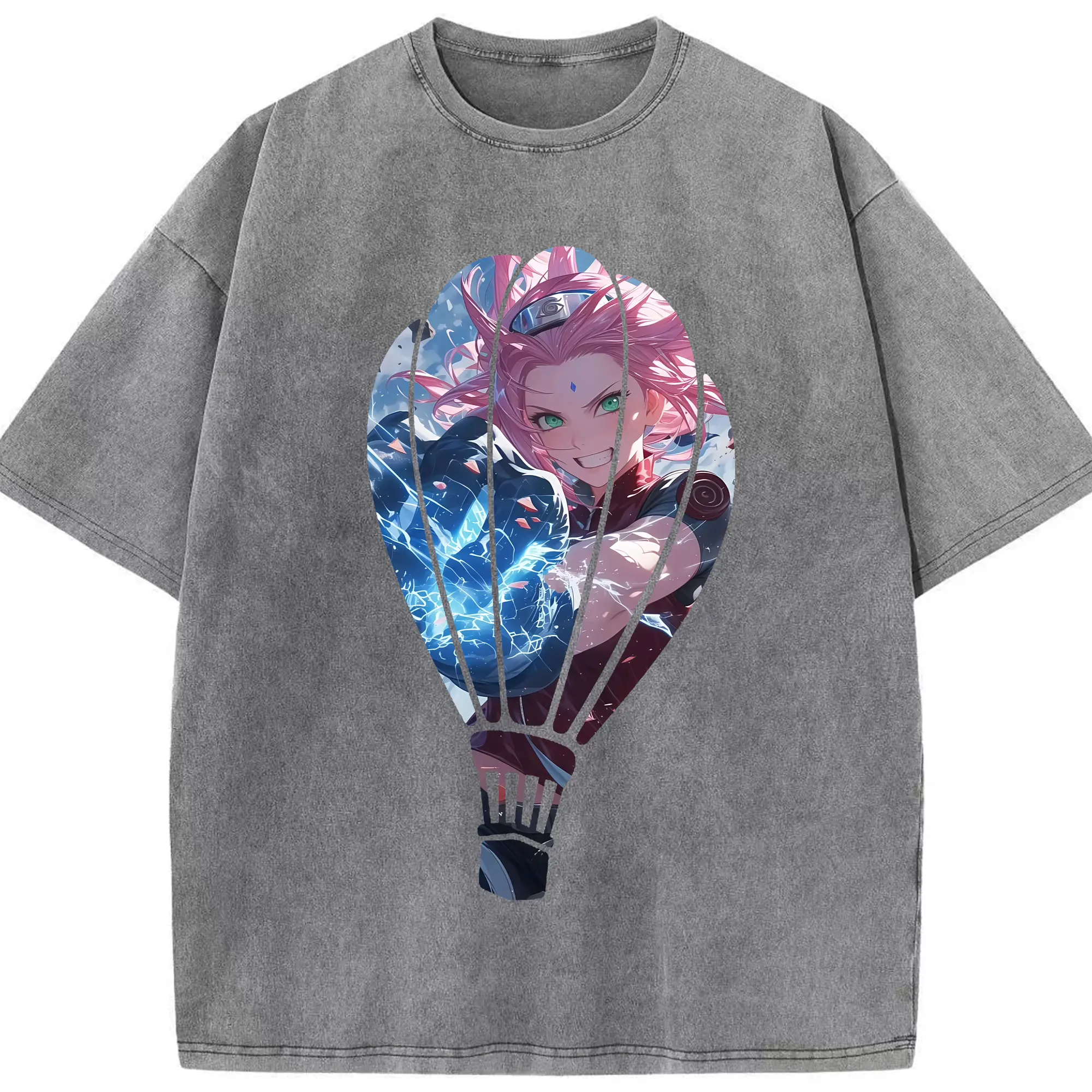 ナルト グッズ はるの さくら - 綿100% ヴィンテージ風 半袖Tシャツ ・ フロントプリント ・ 柔らか肌触り ・ 通気性 快適 ・ スポーツ カジュアル 外出用