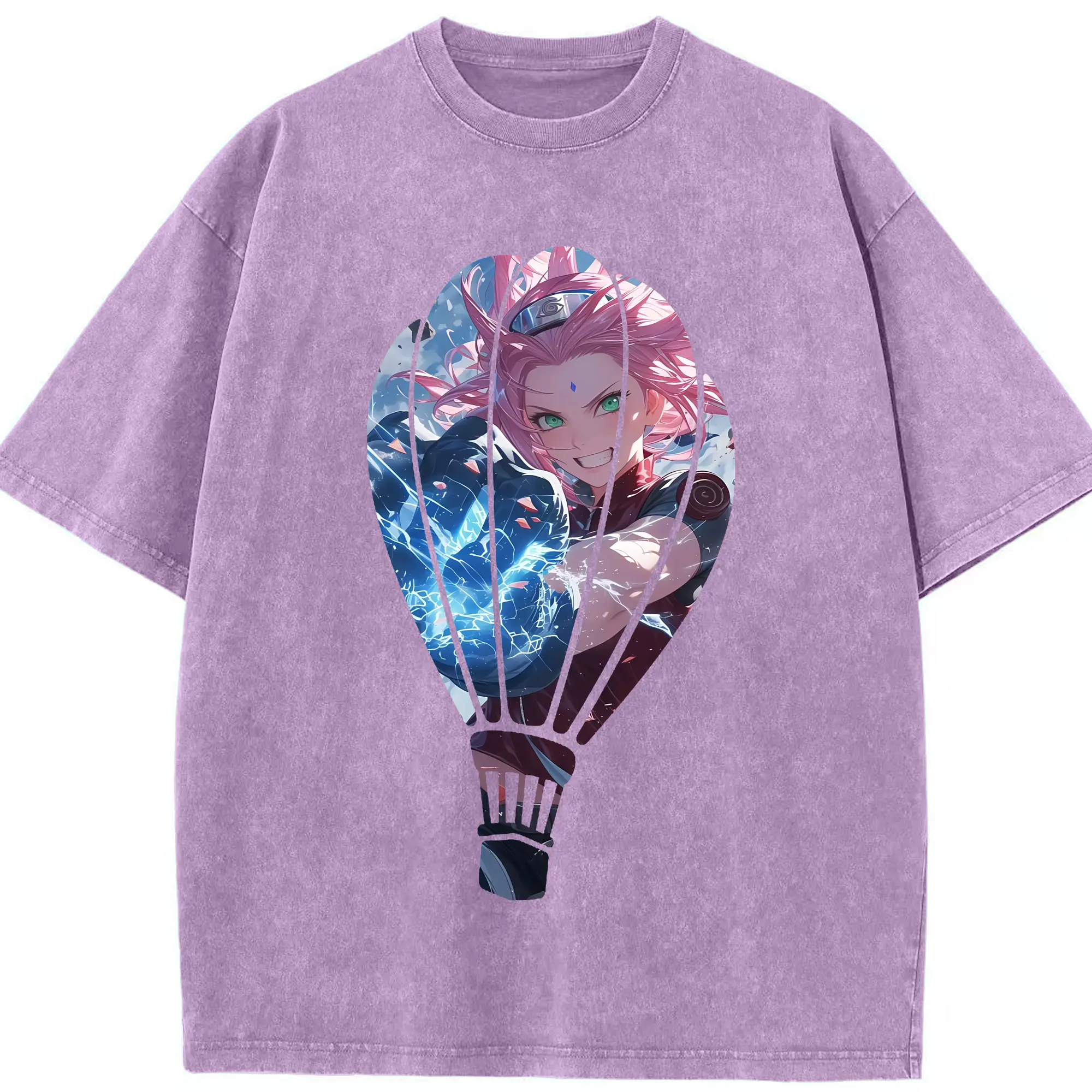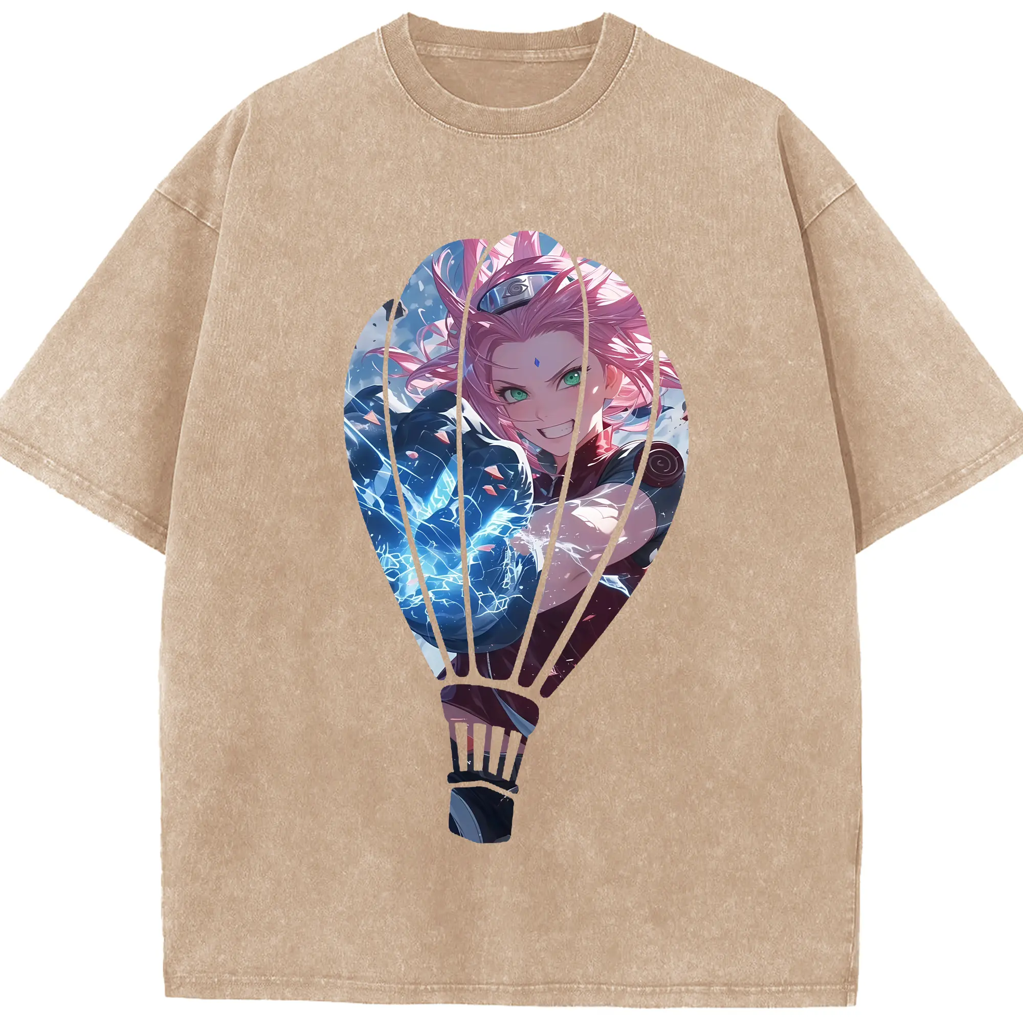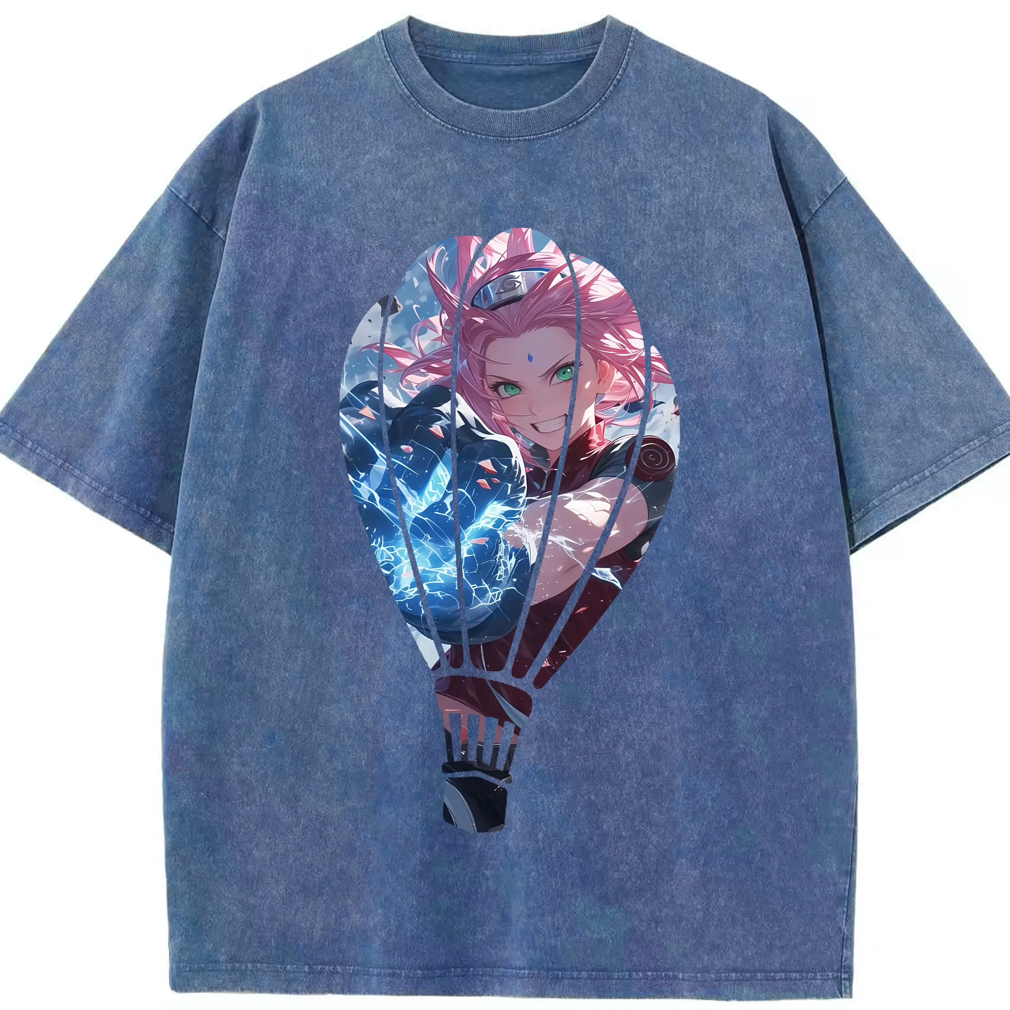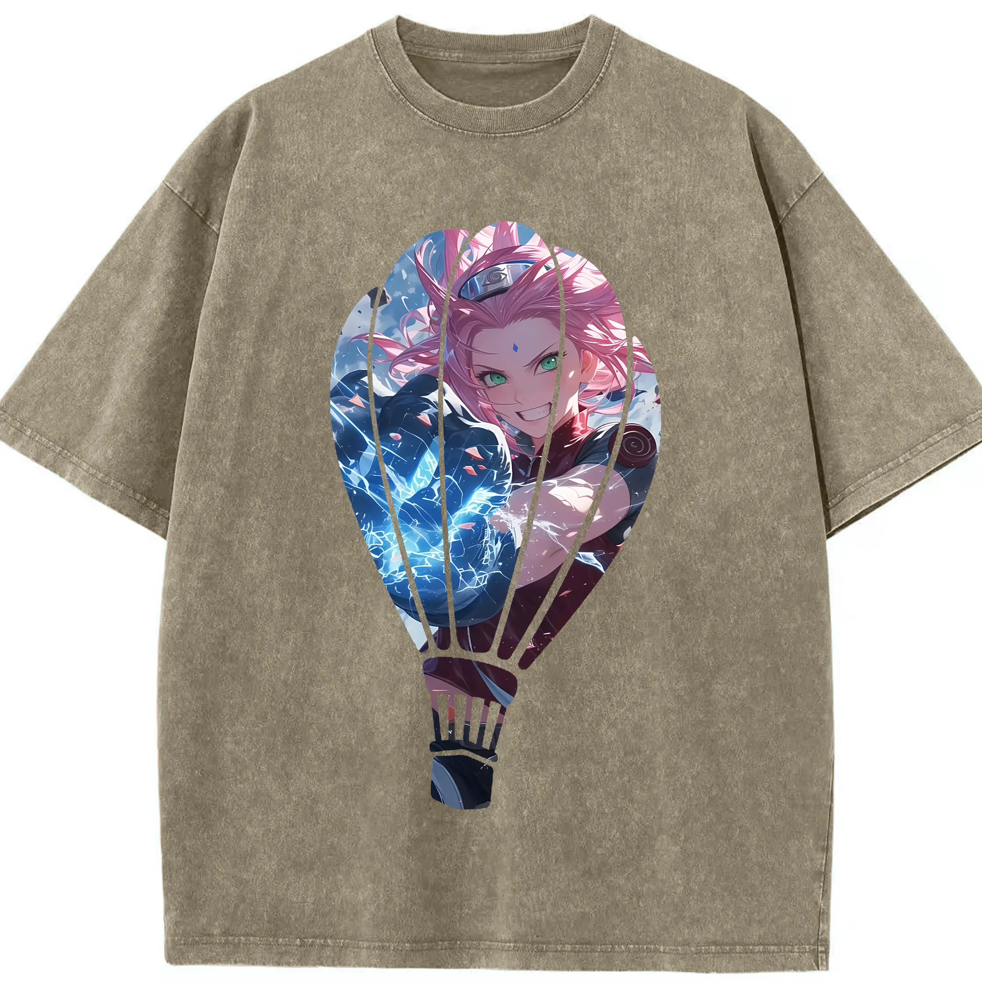 ナルト グッズ はるの さくら - 綿100% ヴィンテージ風 半袖Tシャツ ・ フロントプリント ・ 柔らか肌触り ・ 通気性 快適 ・ スポーツ カジュアル 外出用