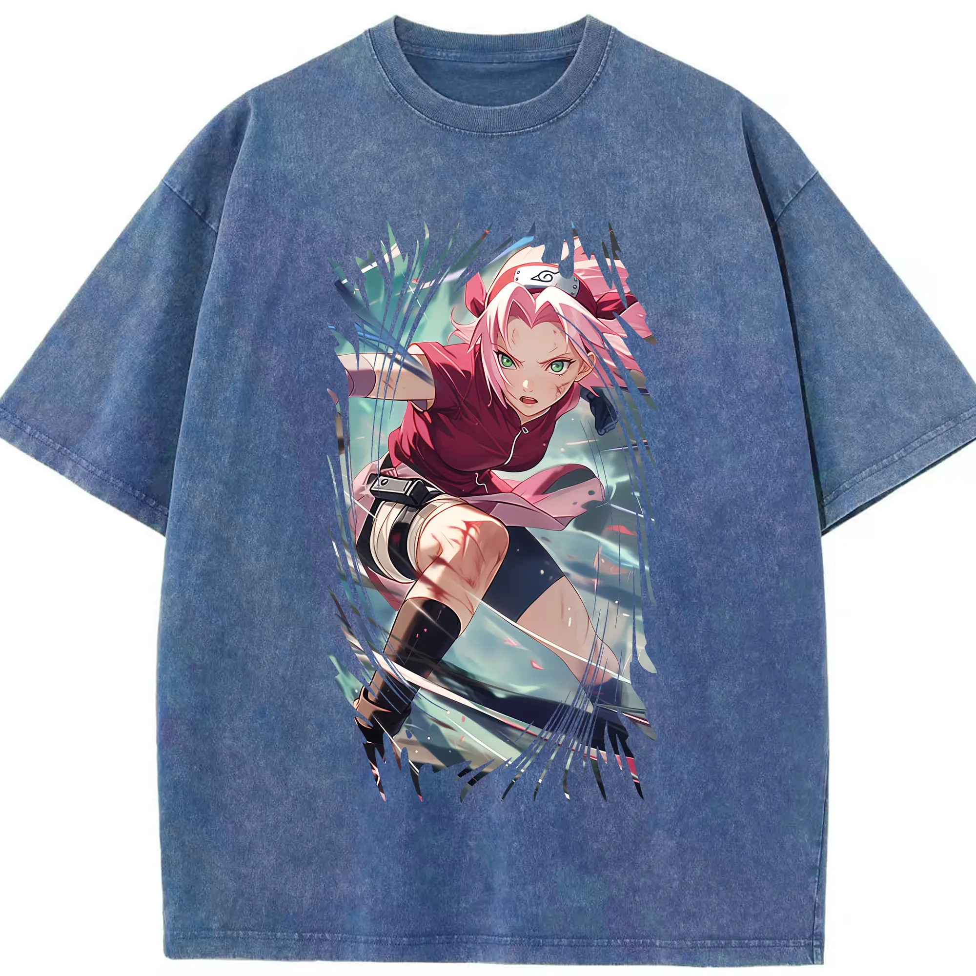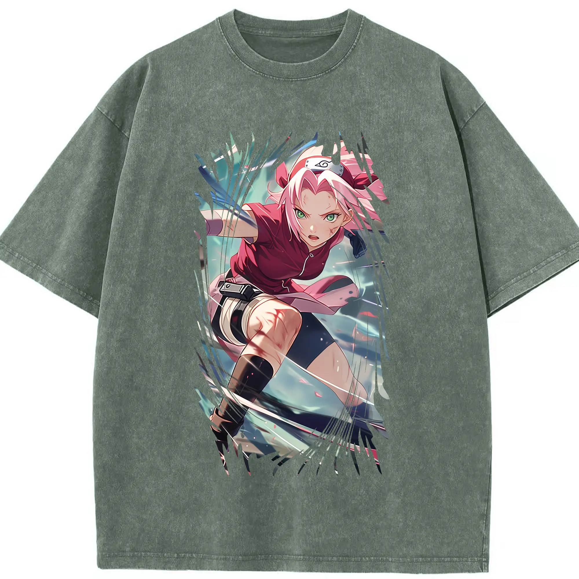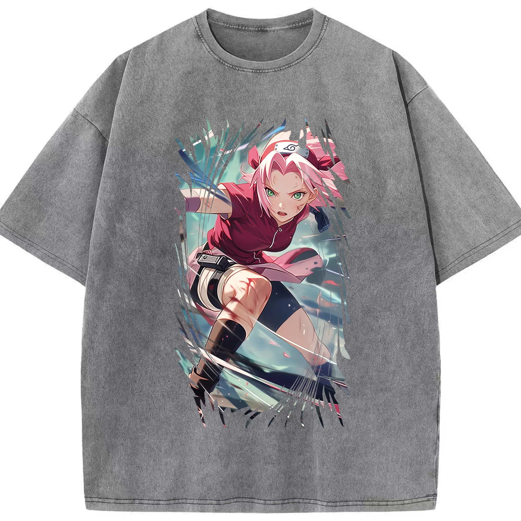 ナルト グッズ はるの さくら - 綿100% ヴィンテージ風 半袖Tシャツ ・ 背面プリント ・ 柔らか肌触り ・ 通気性 快適 ・ スポーツ カジュアル 外出用