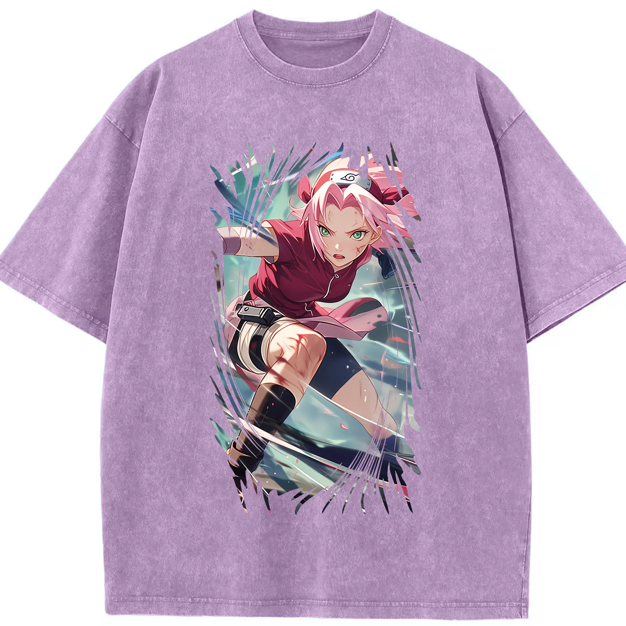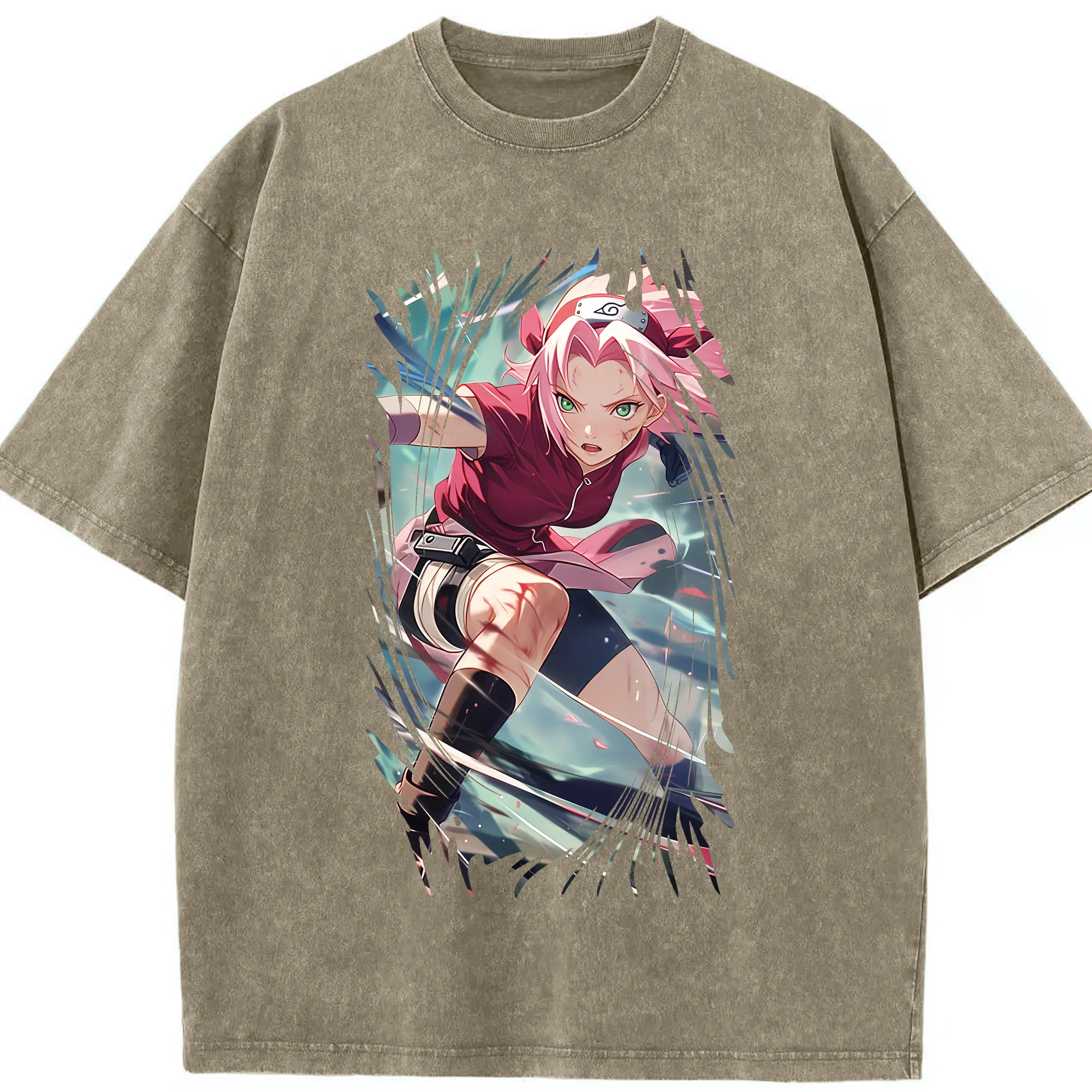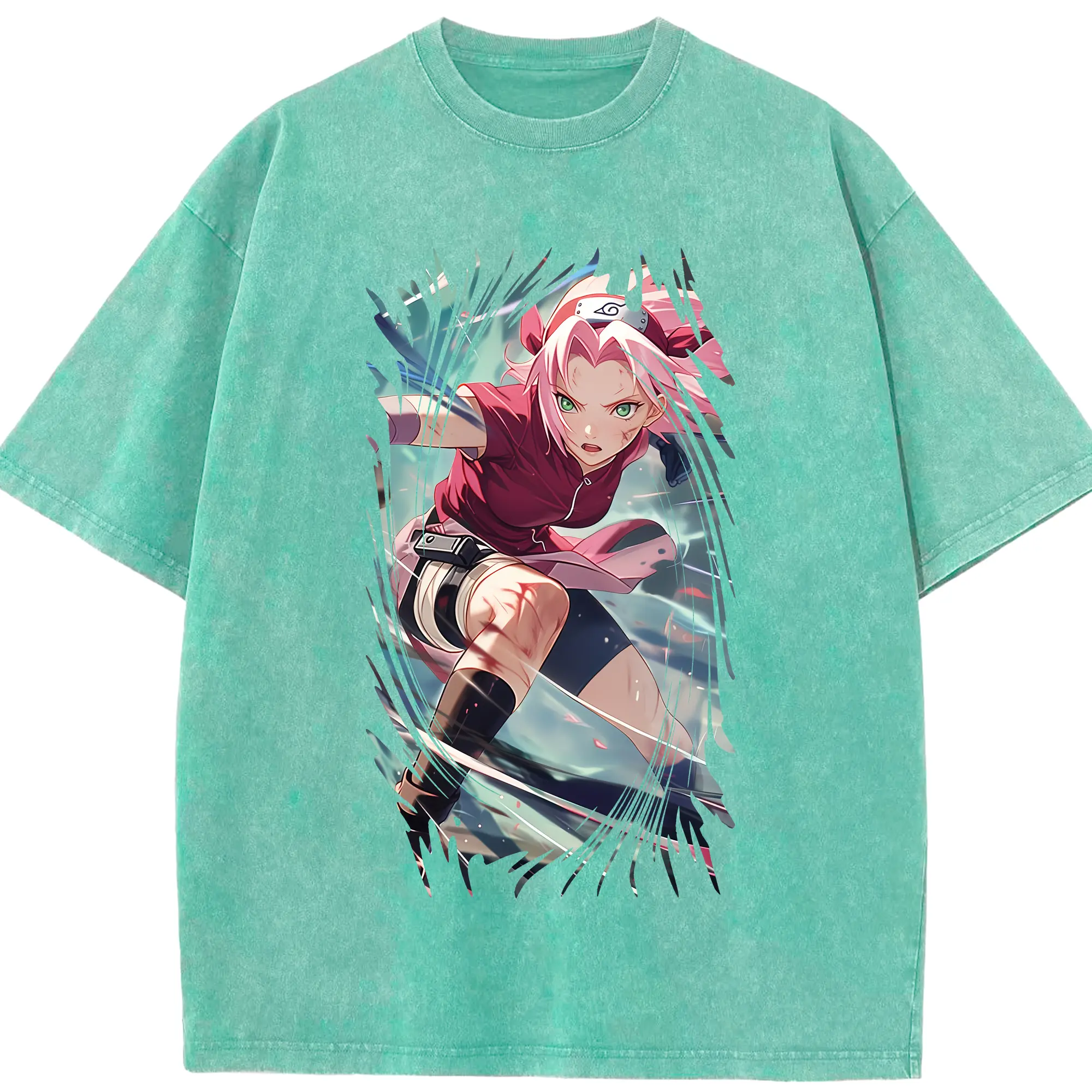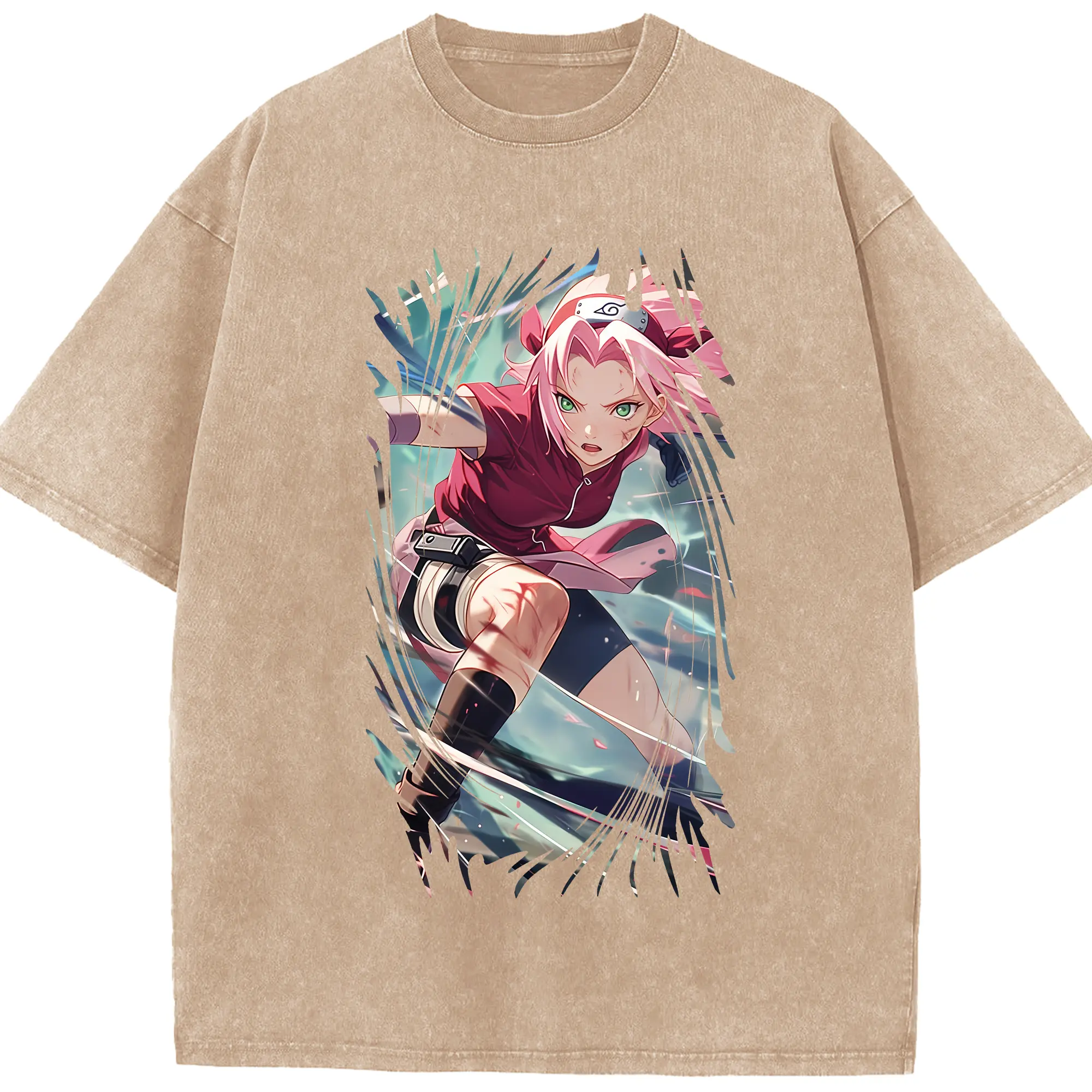 ナルト グッズ はるの さくら - 綿100% ヴィンテージ風 半袖Tシャツ ・ 背面プリント ・ 柔らか肌触り ・ 通気性 快適 ・ スポーツ カジュアル 外出用