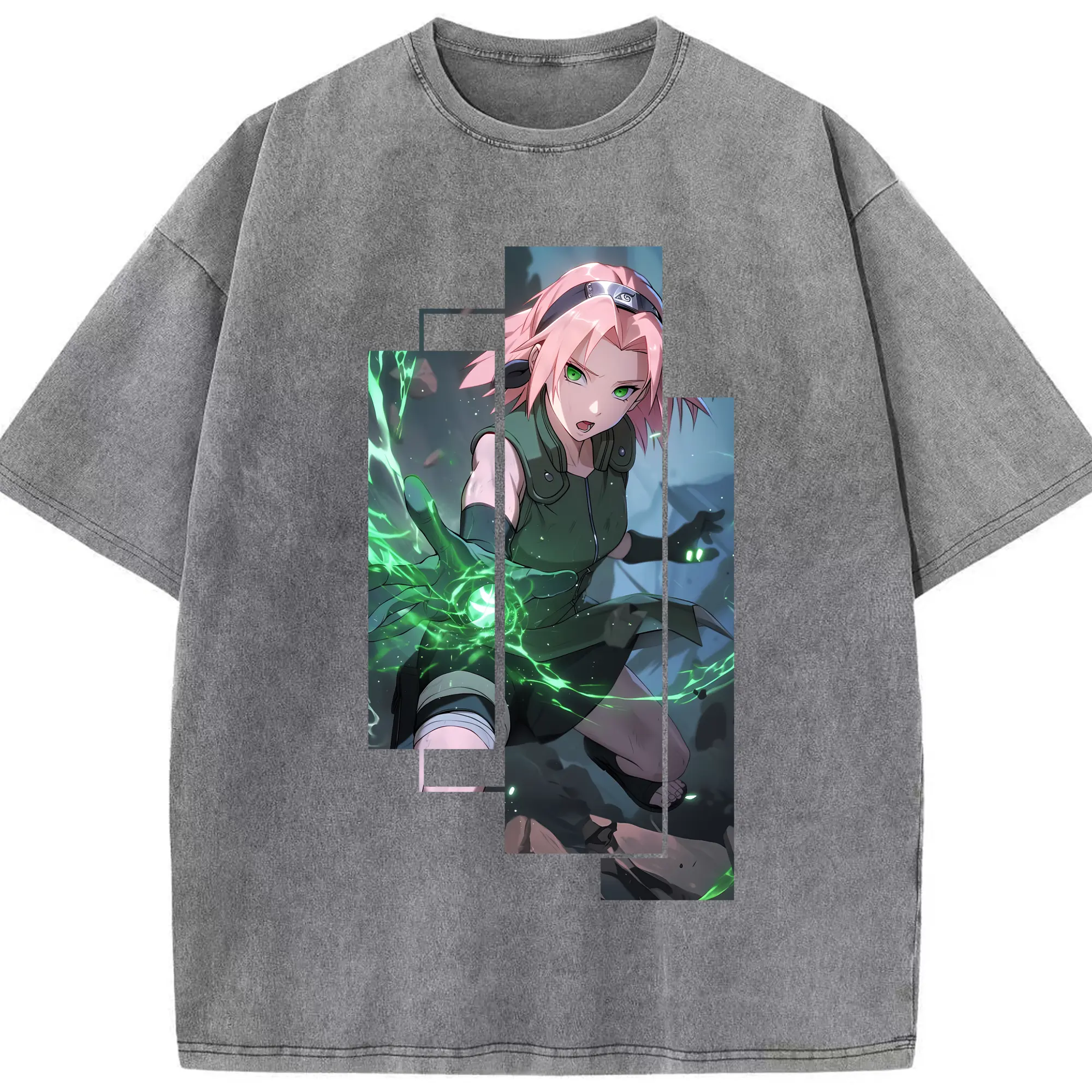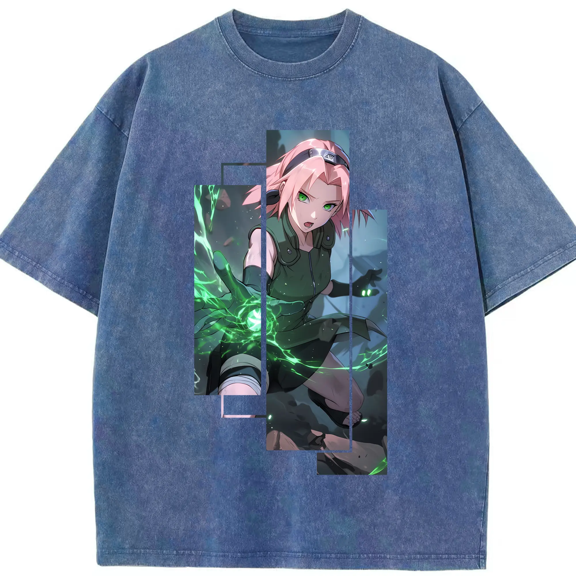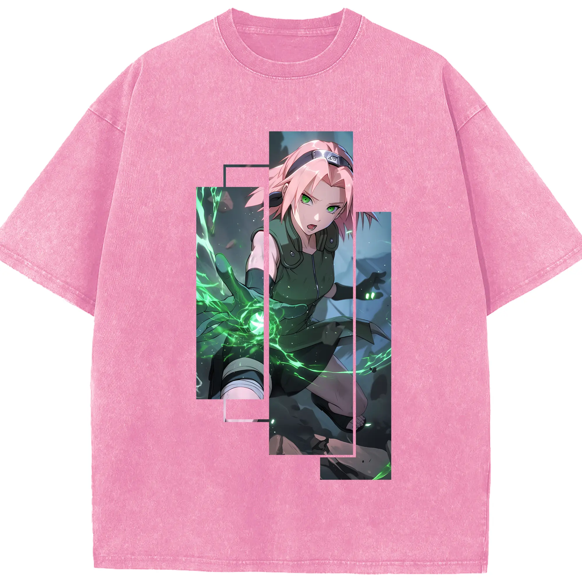 ナルト グッズ はるの さくら - 綿100% ヴィンテージ風 半袖Tシャツ ・ 背面プリント ・ 柔らか肌触り ・ 通気性 快適 ・ スポーツ カジュアル 外出用