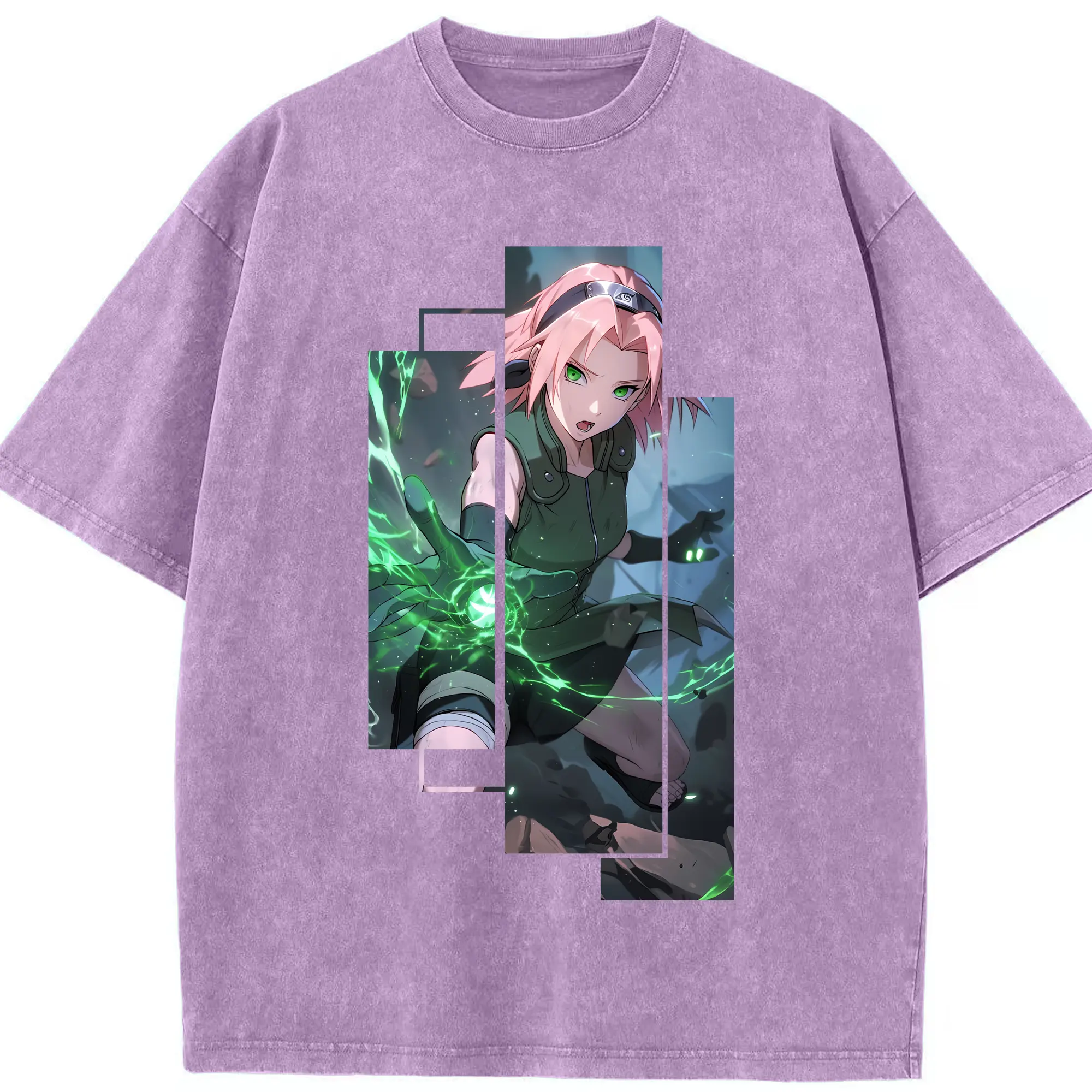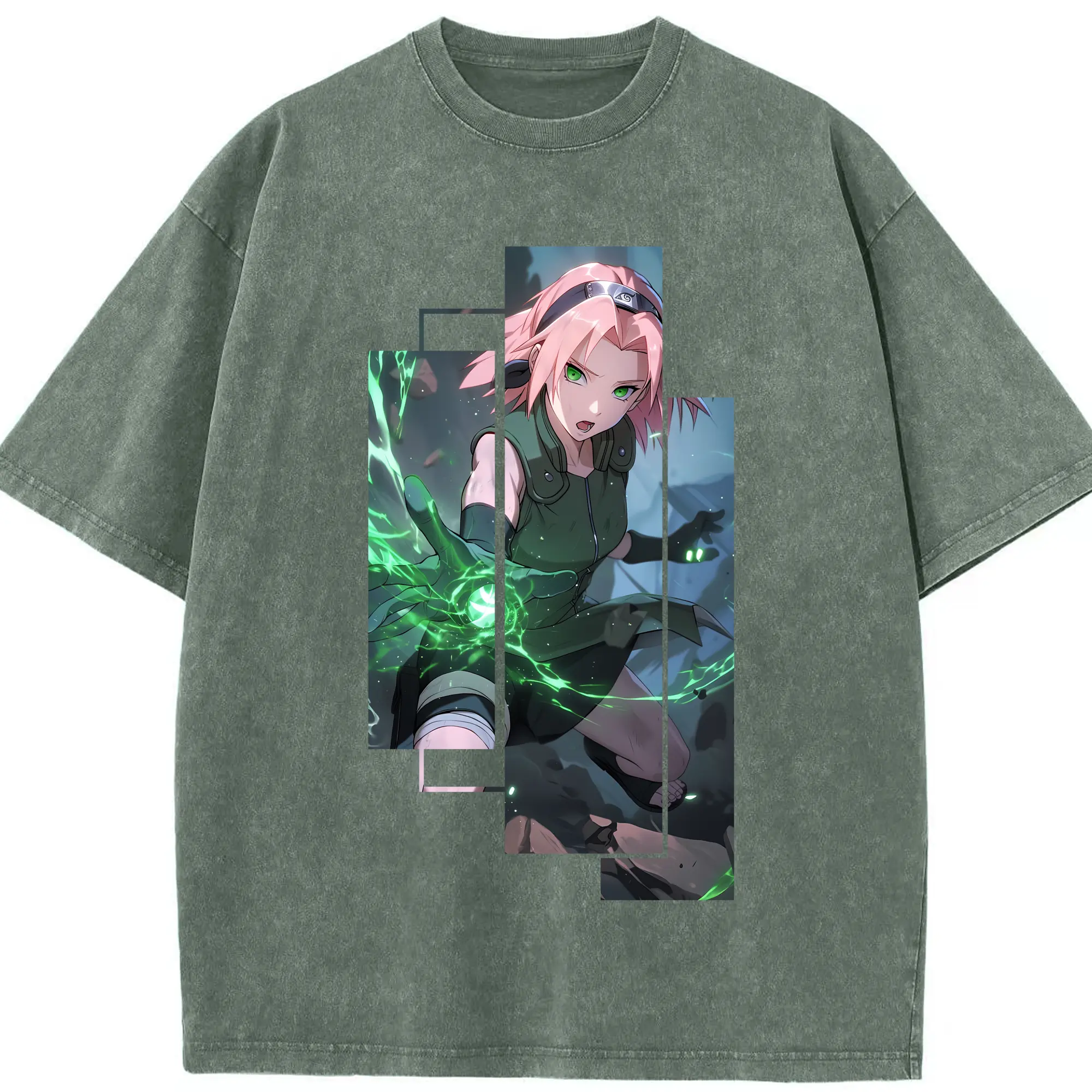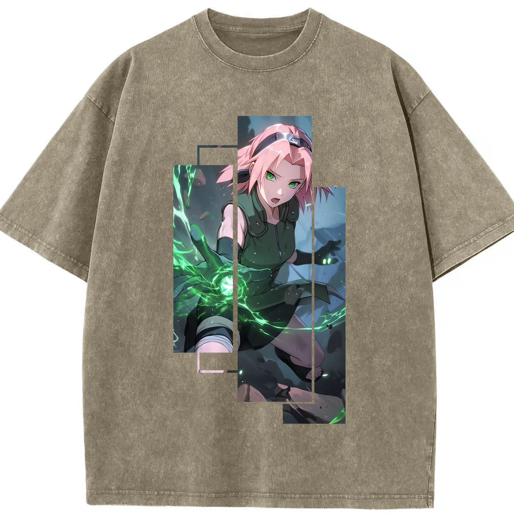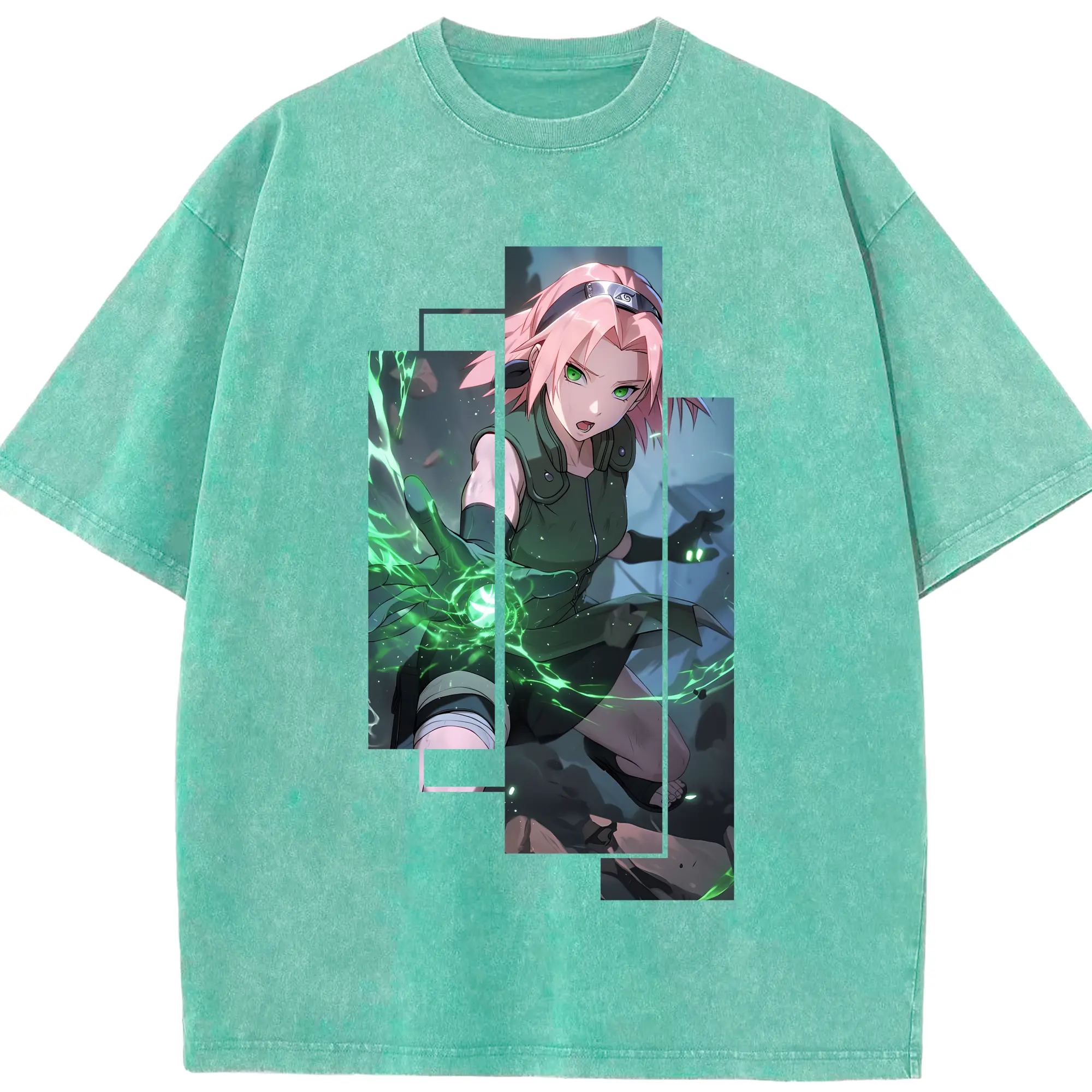 ナルト グッズ はるの さくら - 綿100% ヴィンテージ風 半袖Tシャツ ・ 背面プリント ・ 柔らか肌触り ・ 通気性 快適 ・ スポーツ カジュアル 外出用