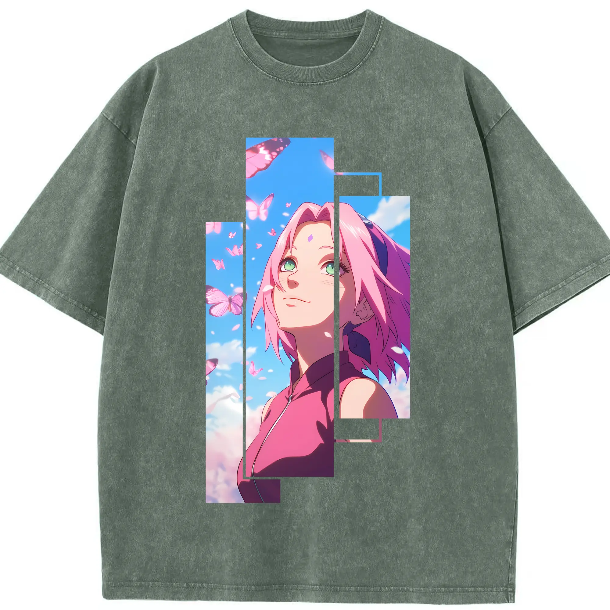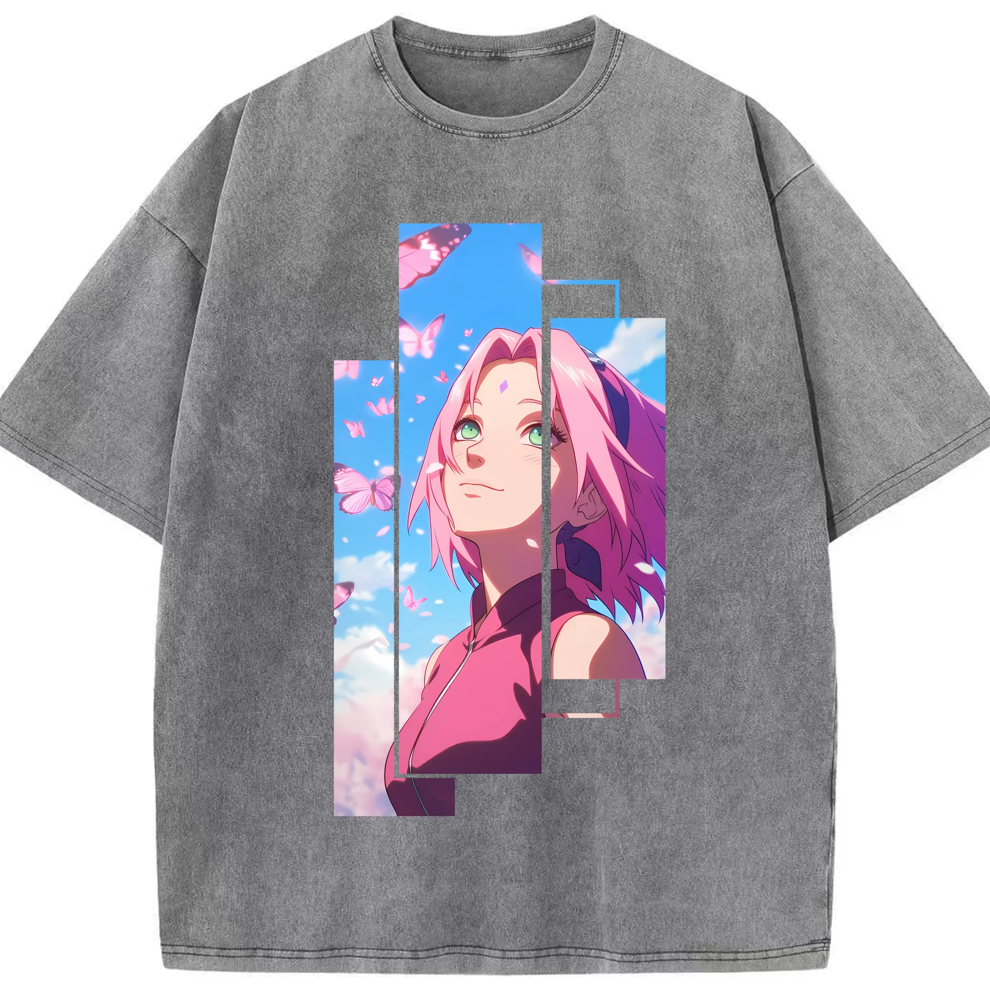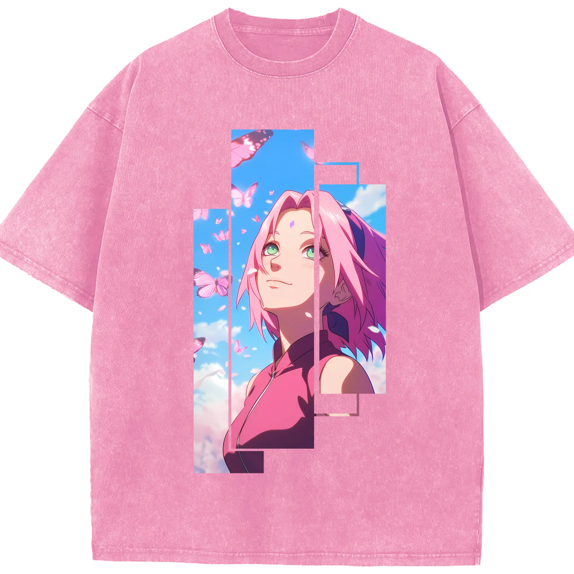 ナルト グッズ はるの さくら - 綿100% ヴィンテージ風 半袖Tシャツ ・ 背面プリント ・ 柔らか肌触り ・ 通気性 快適 ・ スポーツ カジュアル 外出用