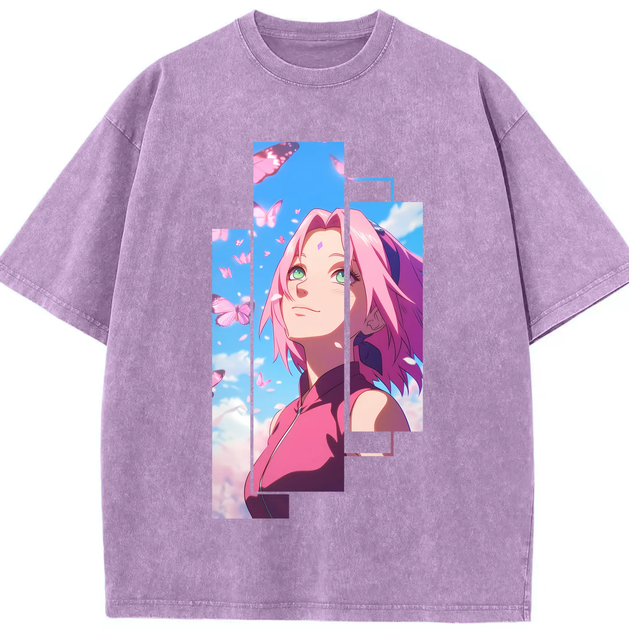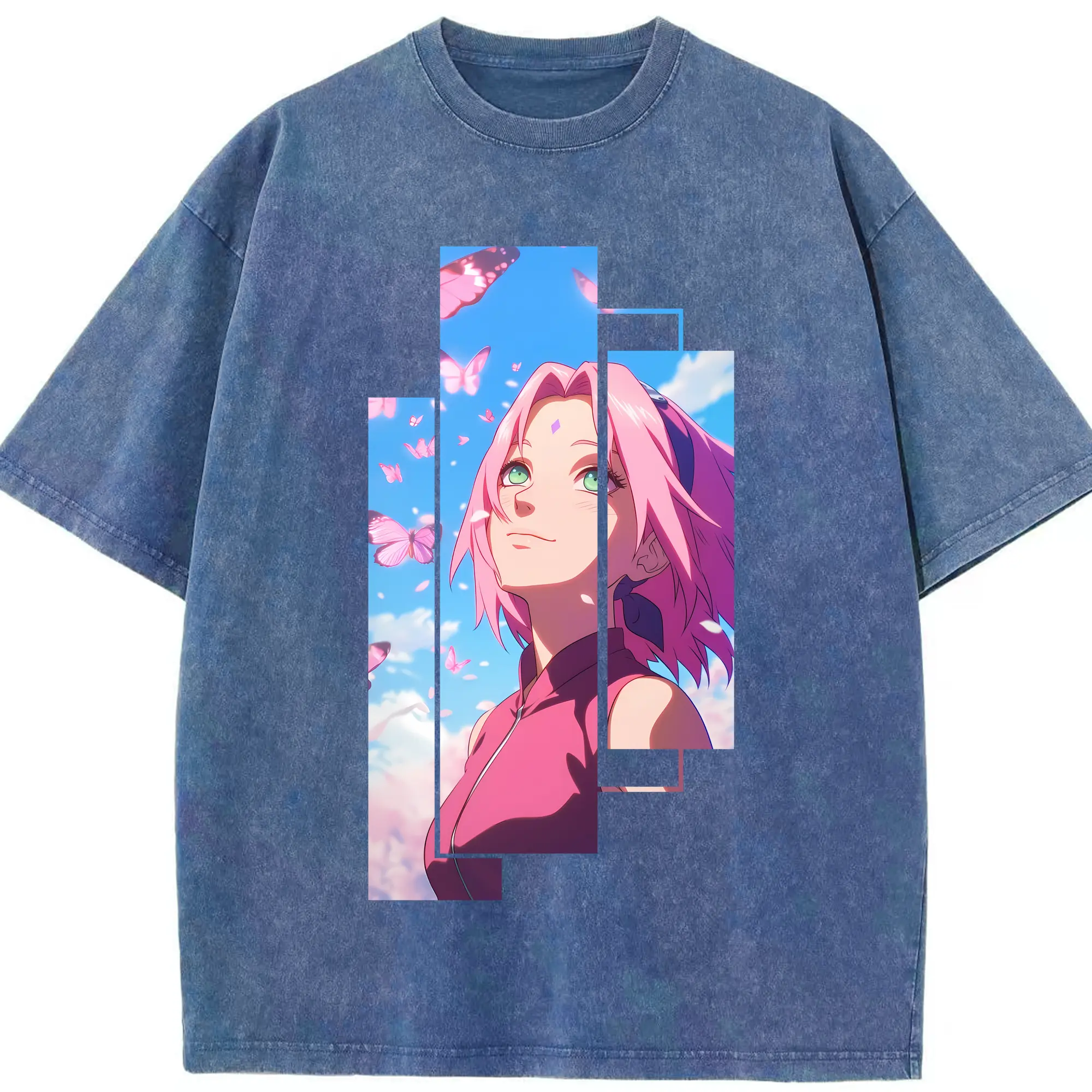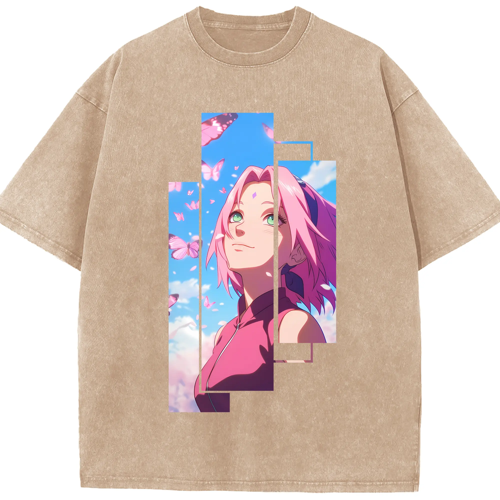 ナルト グッズ はるの さくら - 綿100% ヴィンテージ風 半袖Tシャツ ・ 背面プリント ・ 柔らか肌触り ・ 通気性 快適 ・ スポーツ カジュアル 外出用