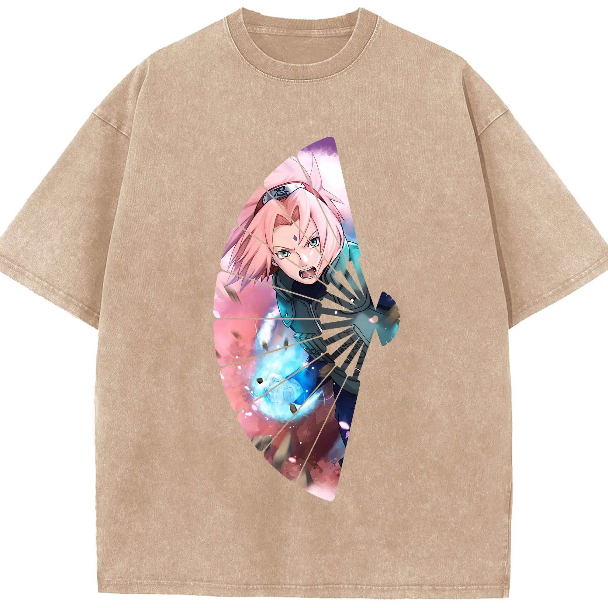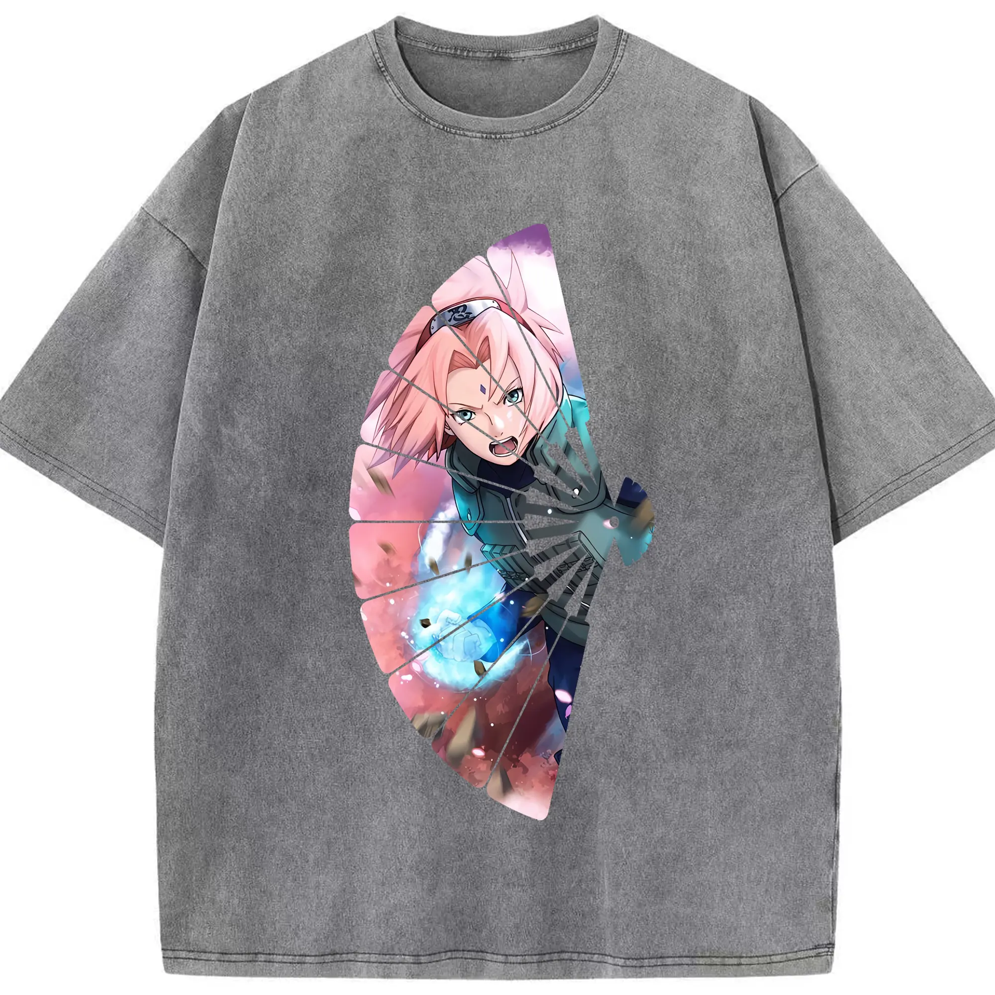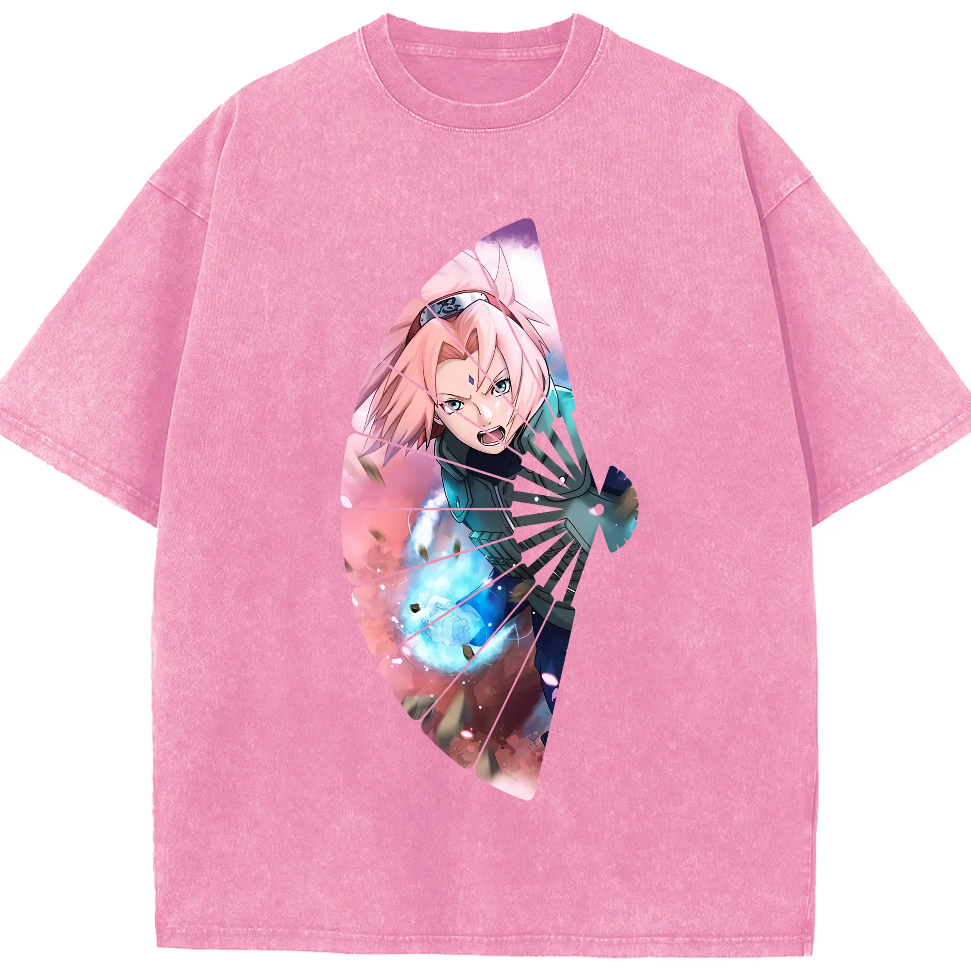 ナルト グッズ はるの さくら - 綿100% ヴィンテージ風 半袖Tシャツ ・ 背面プリント ・ 柔らか肌触り ・ 通気性 快適 ・ スポーツ カジュアル 外出用
