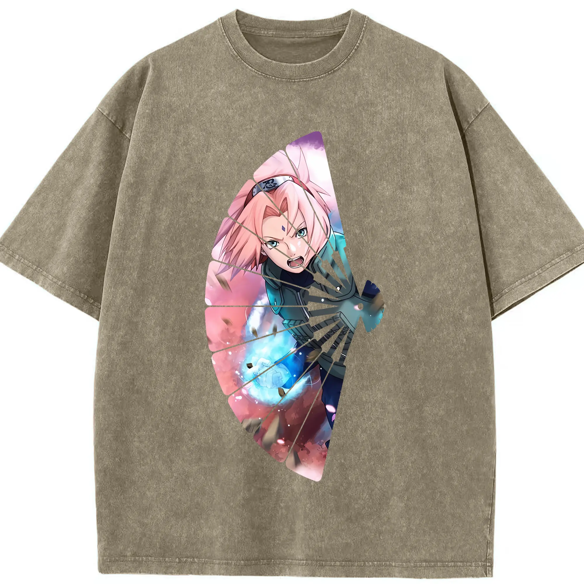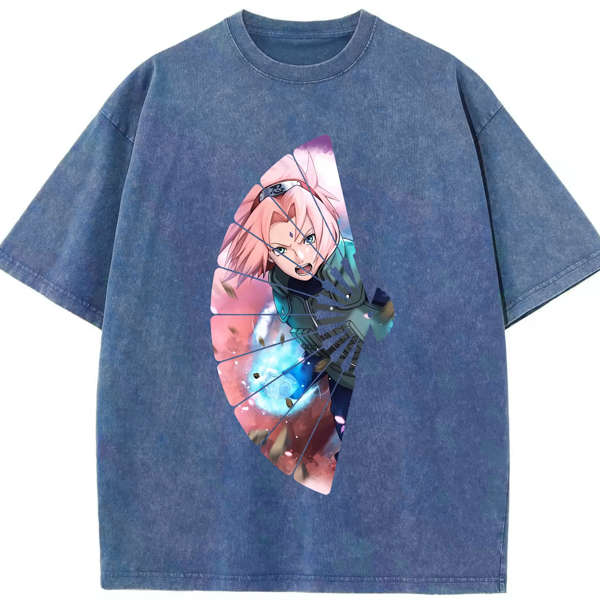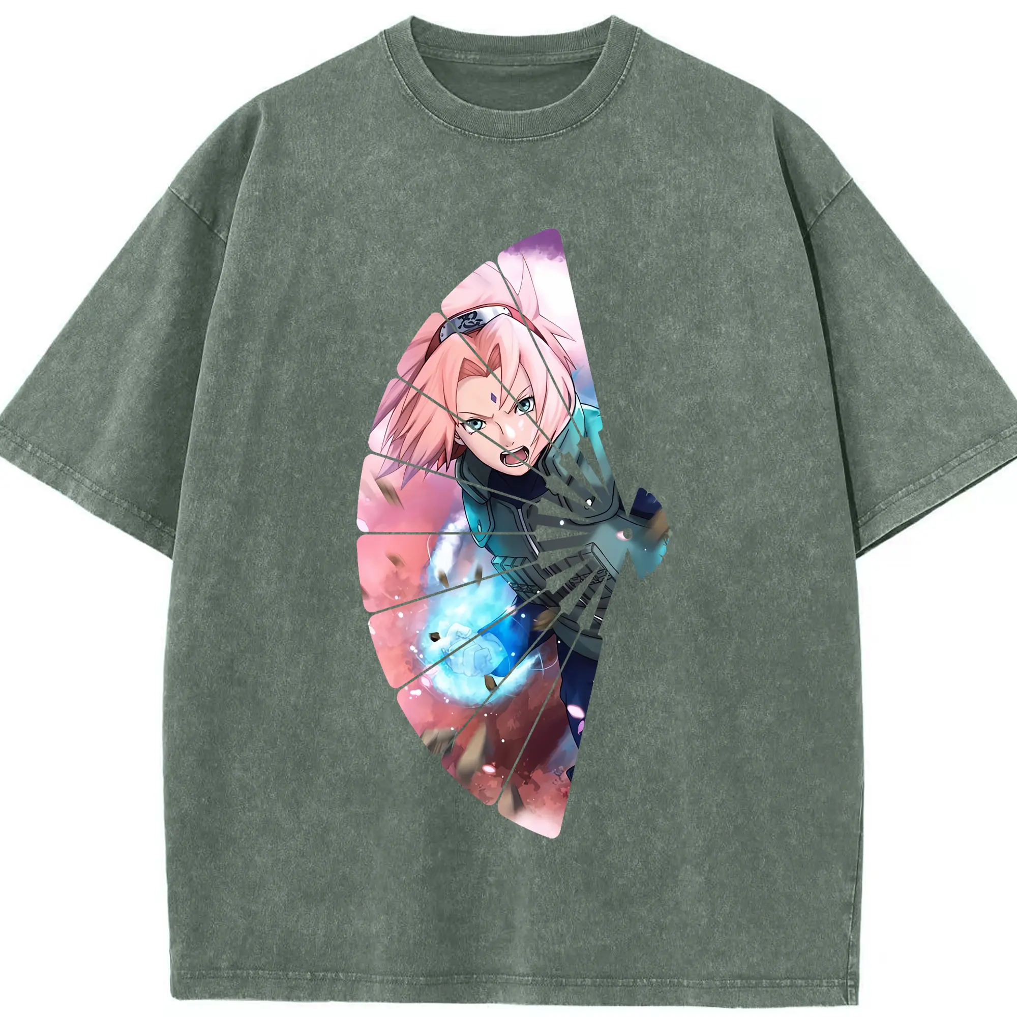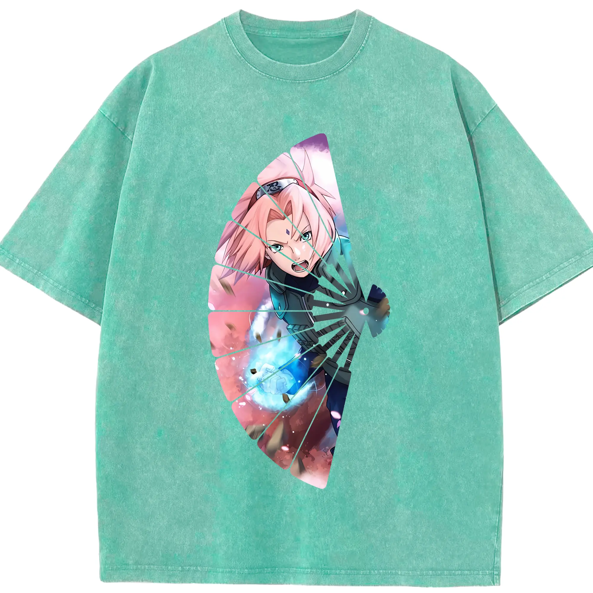 ナルト グッズ はるの さくら - 綿100% ヴィンテージ風 半袖Tシャツ ・ 背面プリント ・ 柔らか肌触り ・ 通気性 快適 ・ スポーツ カジュアル 外出用