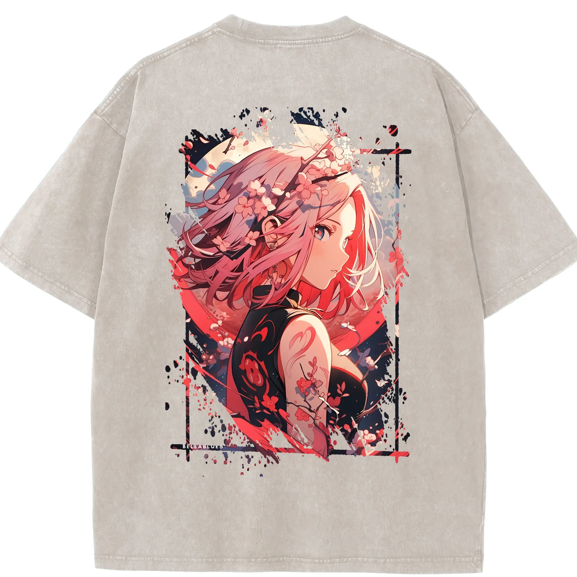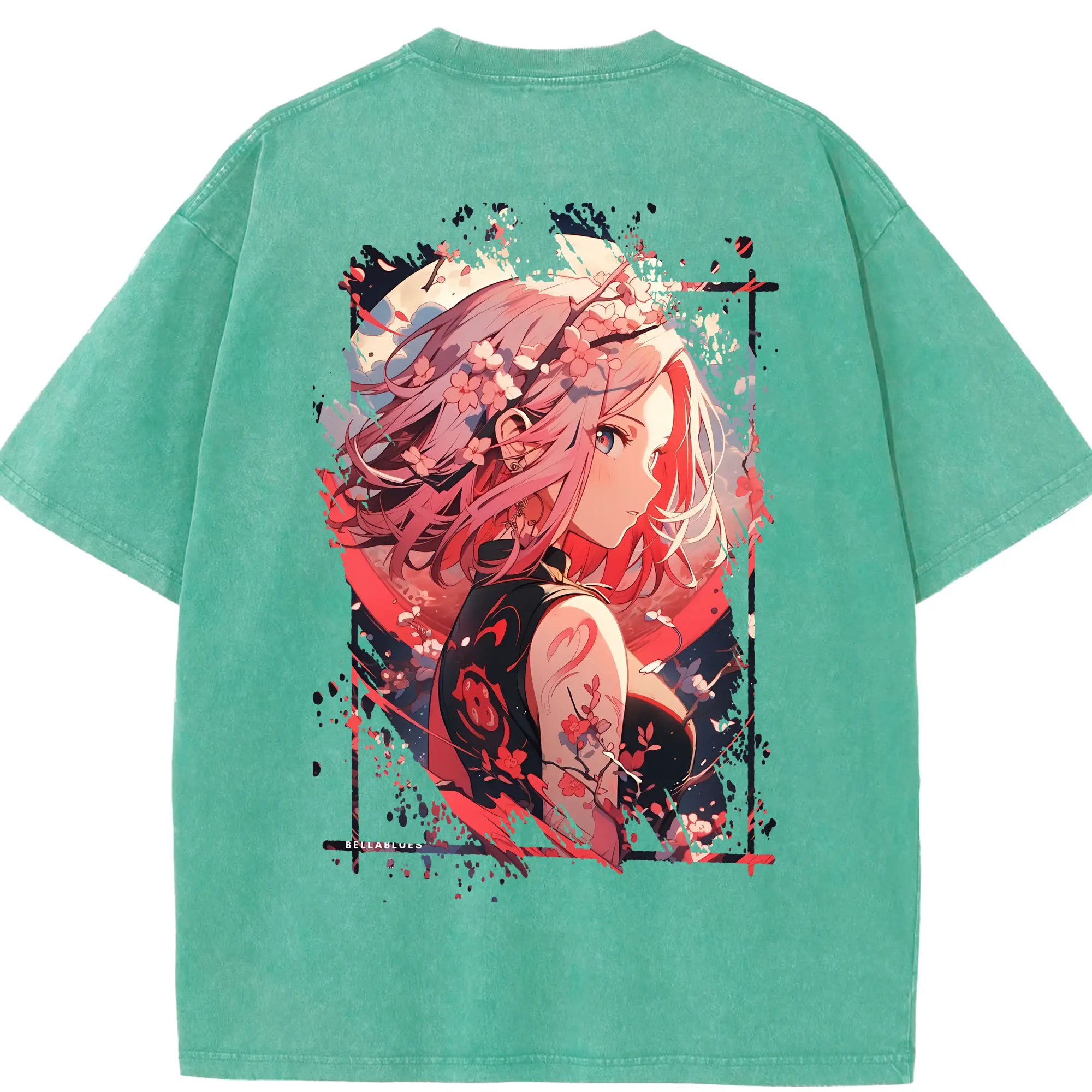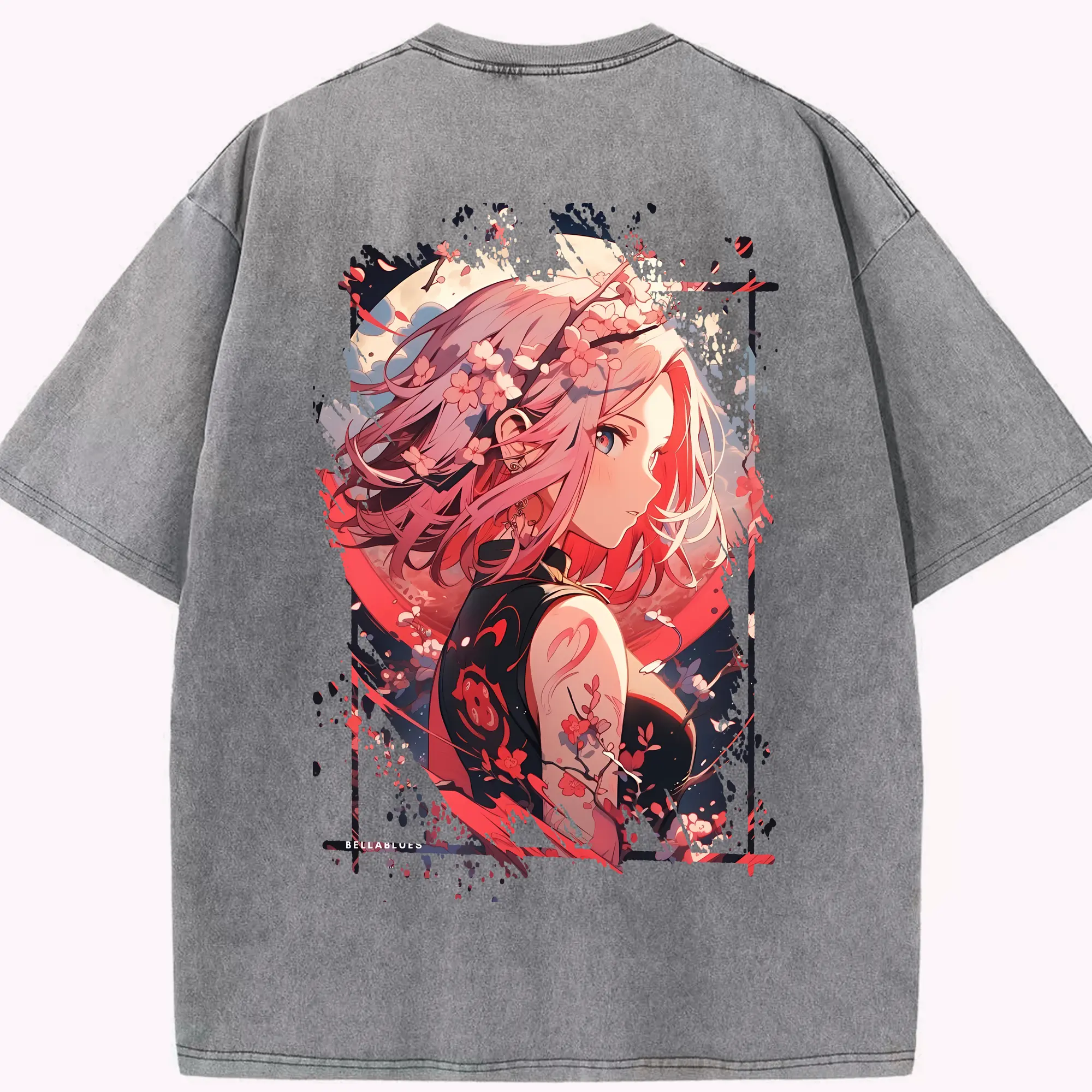 ナルト グッズ はるの さくら - 綿100% ヴィンテージ風 半袖Tシャツ ・ フロントプリント ・ 柔らか肌触り ・ 通気性 快適 ・ スポーツ カジュアル 外出用