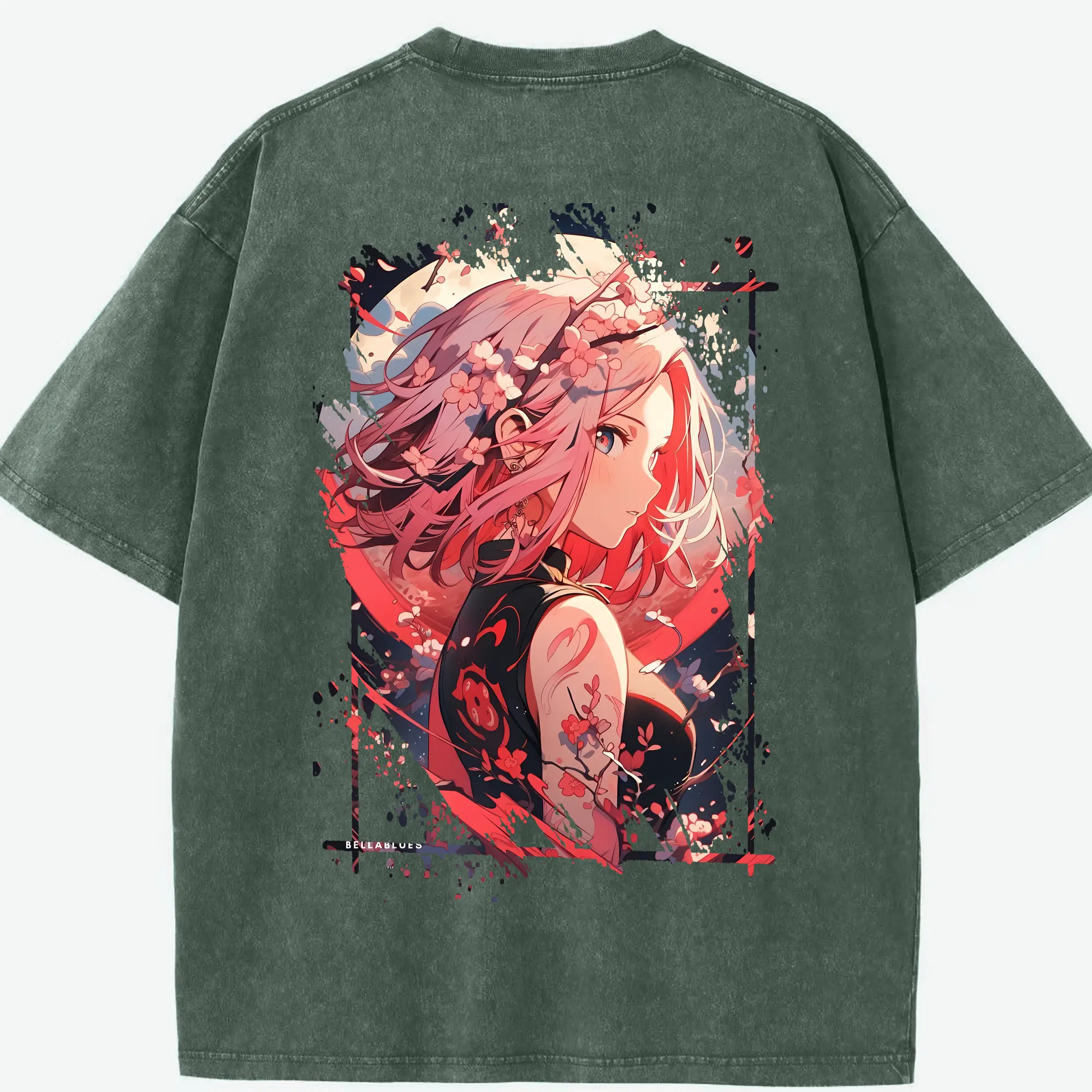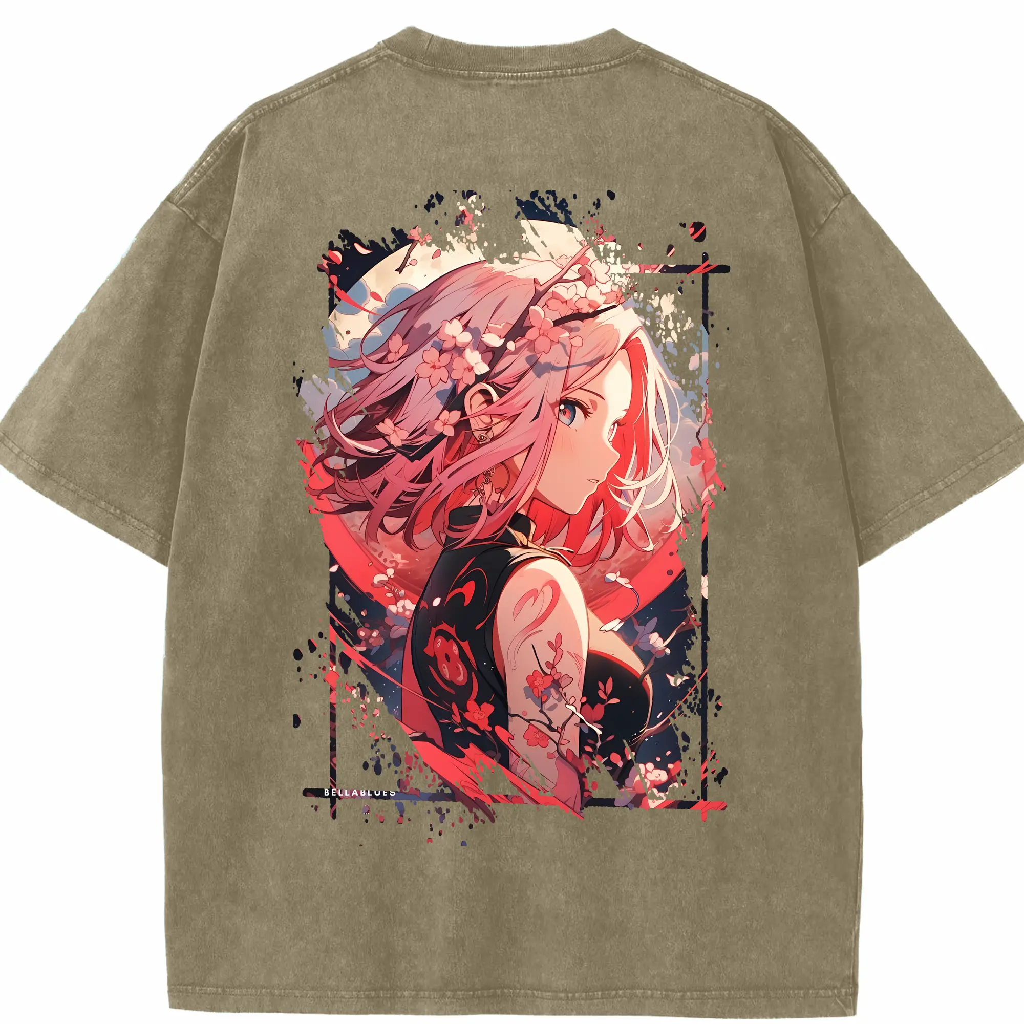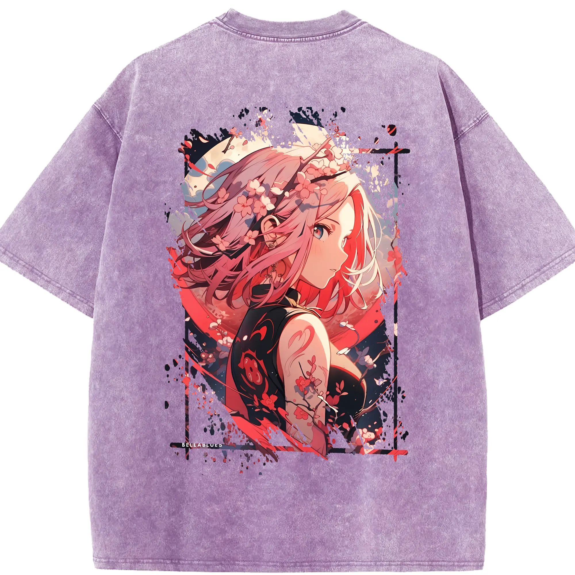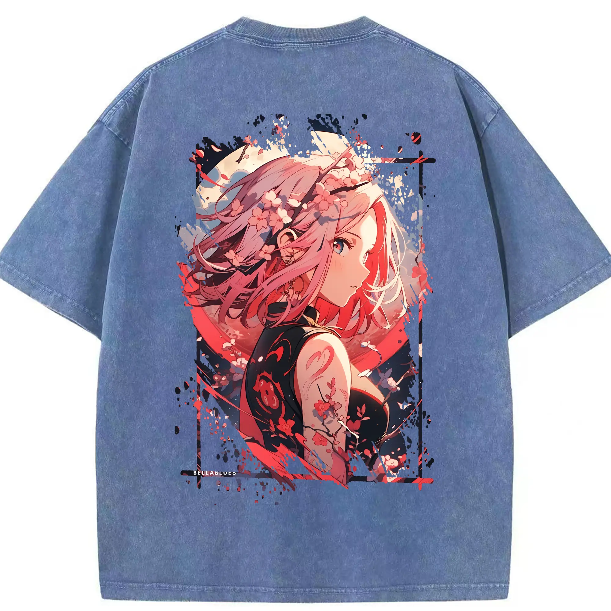 ナルト グッズ はるの さくら - 綿100% ヴィンテージ風 半袖Tシャツ ・ フロントプリント ・ 柔らか肌触り ・ 通気性 快適 ・ スポーツ カジュアル 外出用