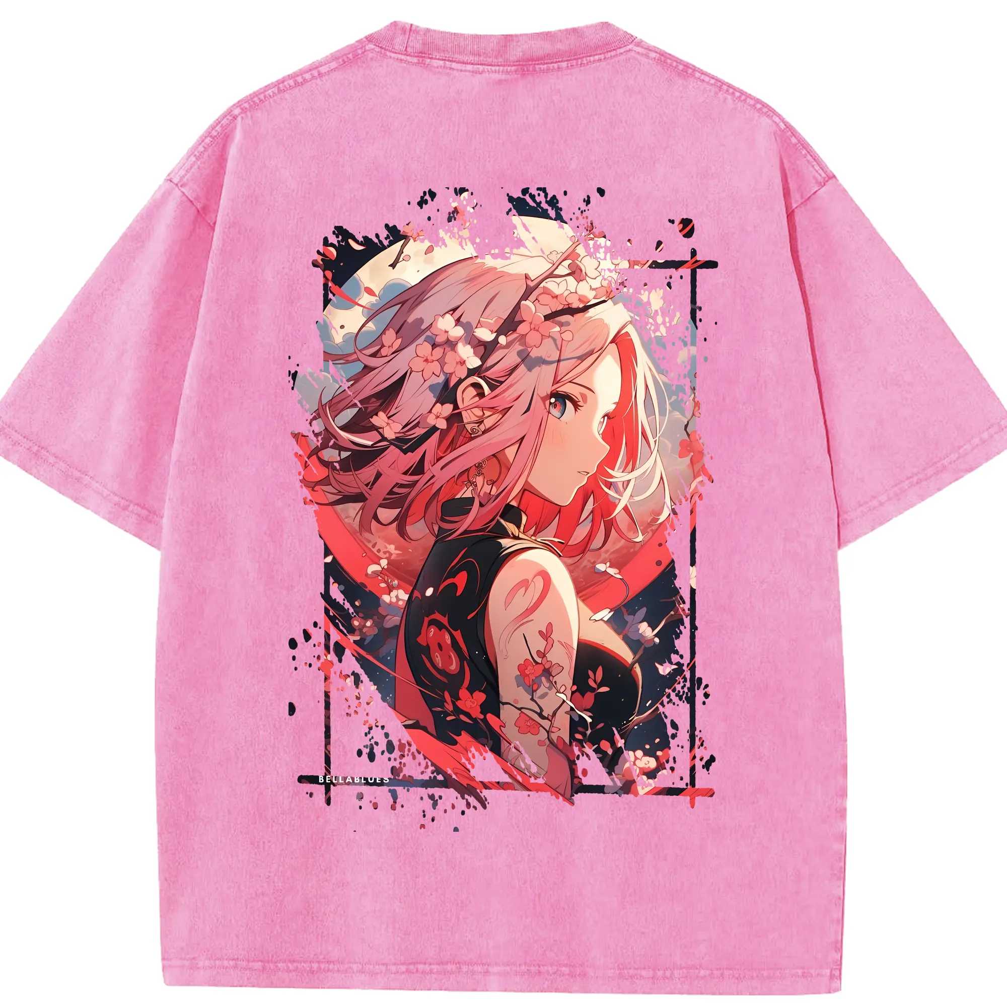 ナルト グッズ はるの さくら - 綿100% 半袖Tシャツ ・ バックプリント ・ 快適 通気性 ・ 日常使い 散歩 スポーツ用