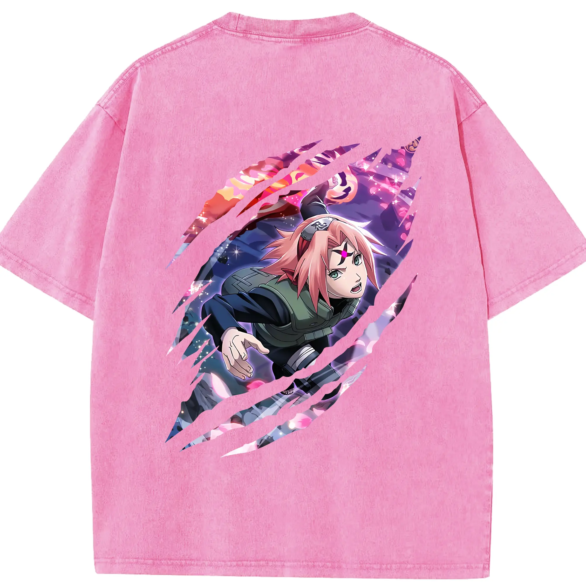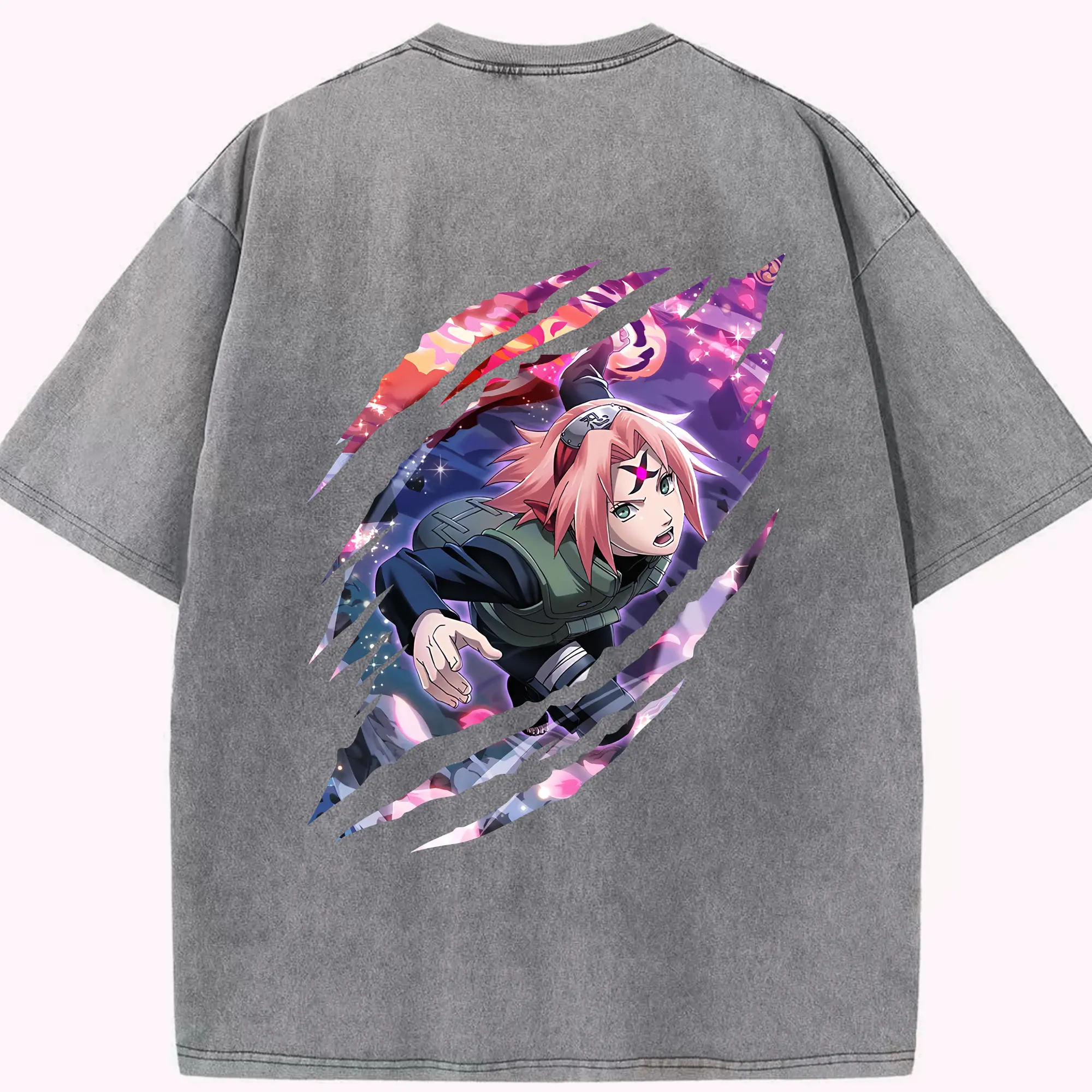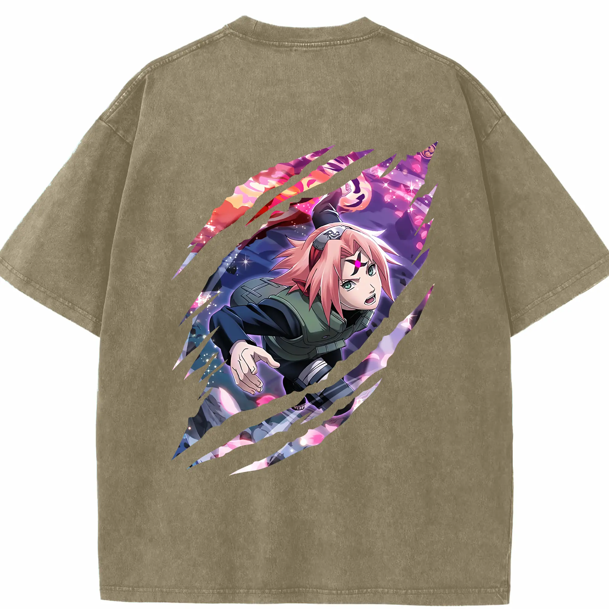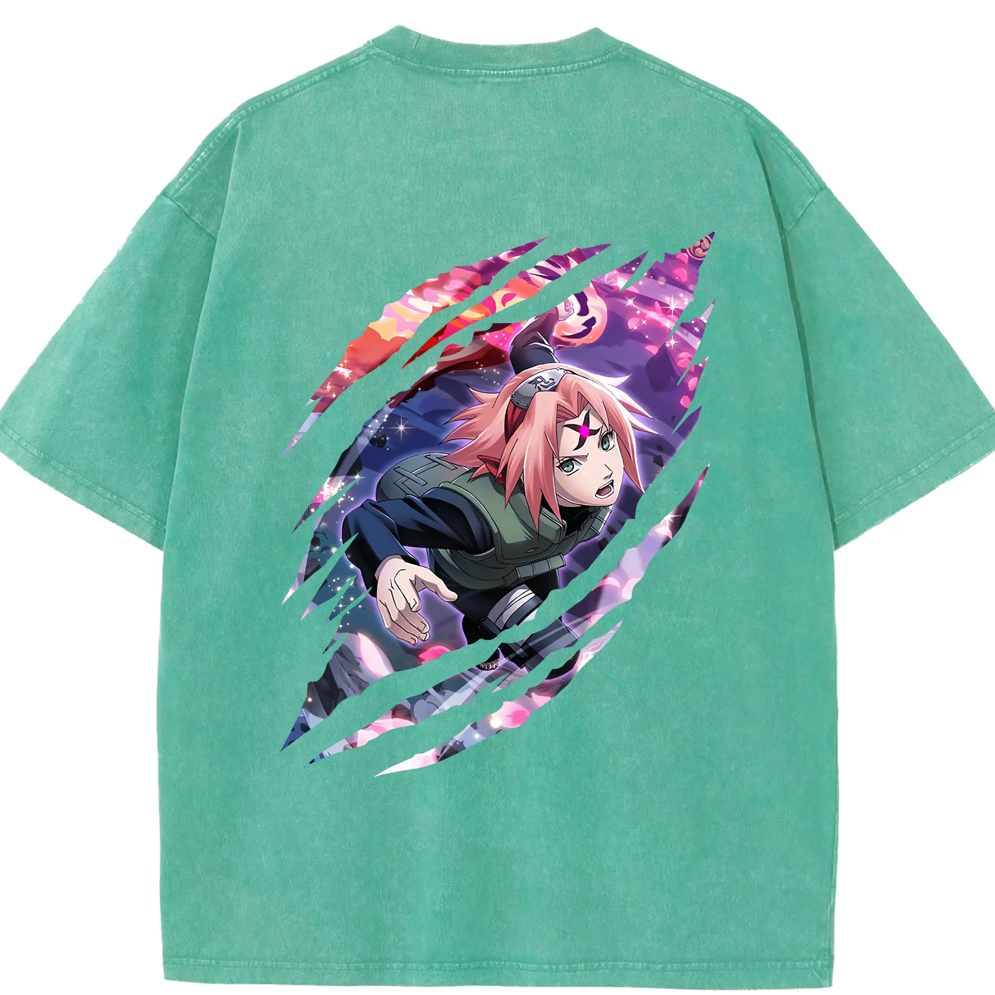 ナルト グッズ はるの さくら - 綿100% ヴィンテージ風 半袖Tシャツ ・ フロントプリント ・ 柔らか肌触り ・ 通気性 快適 ・ スポーツ カジュアル 外出用