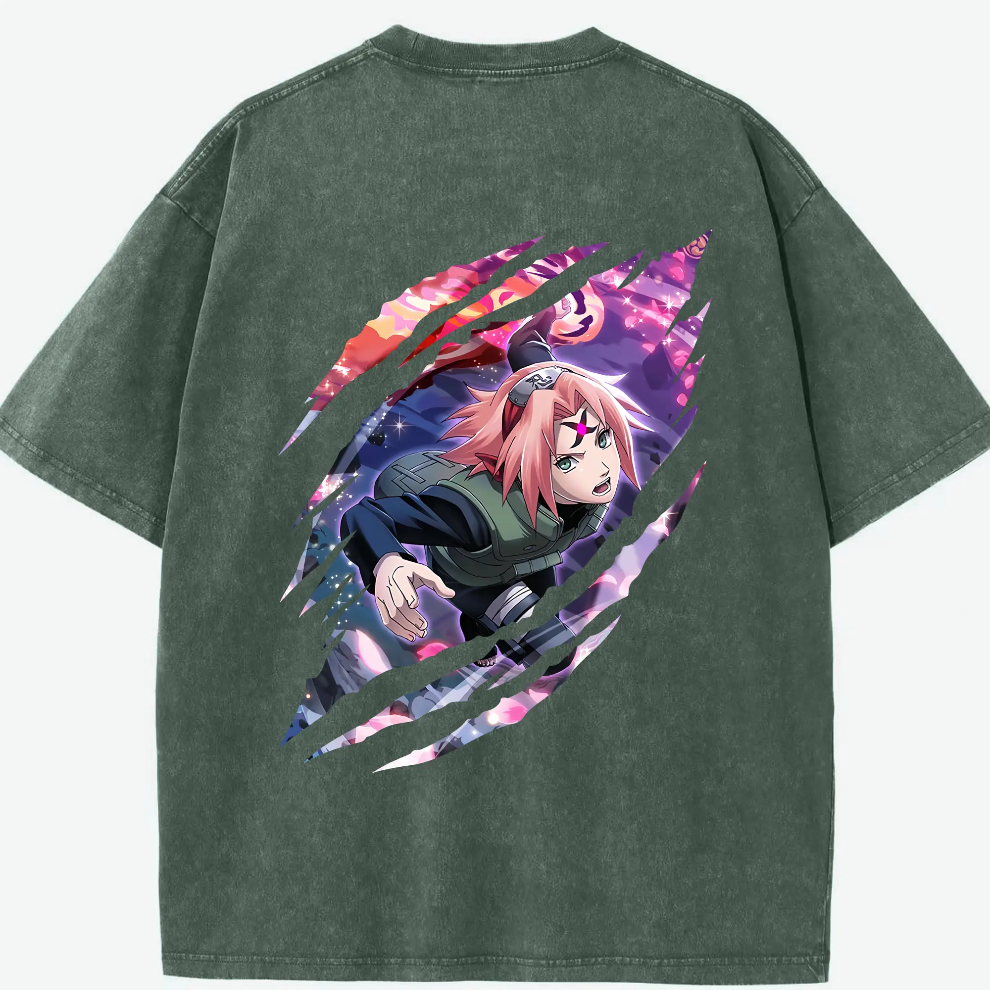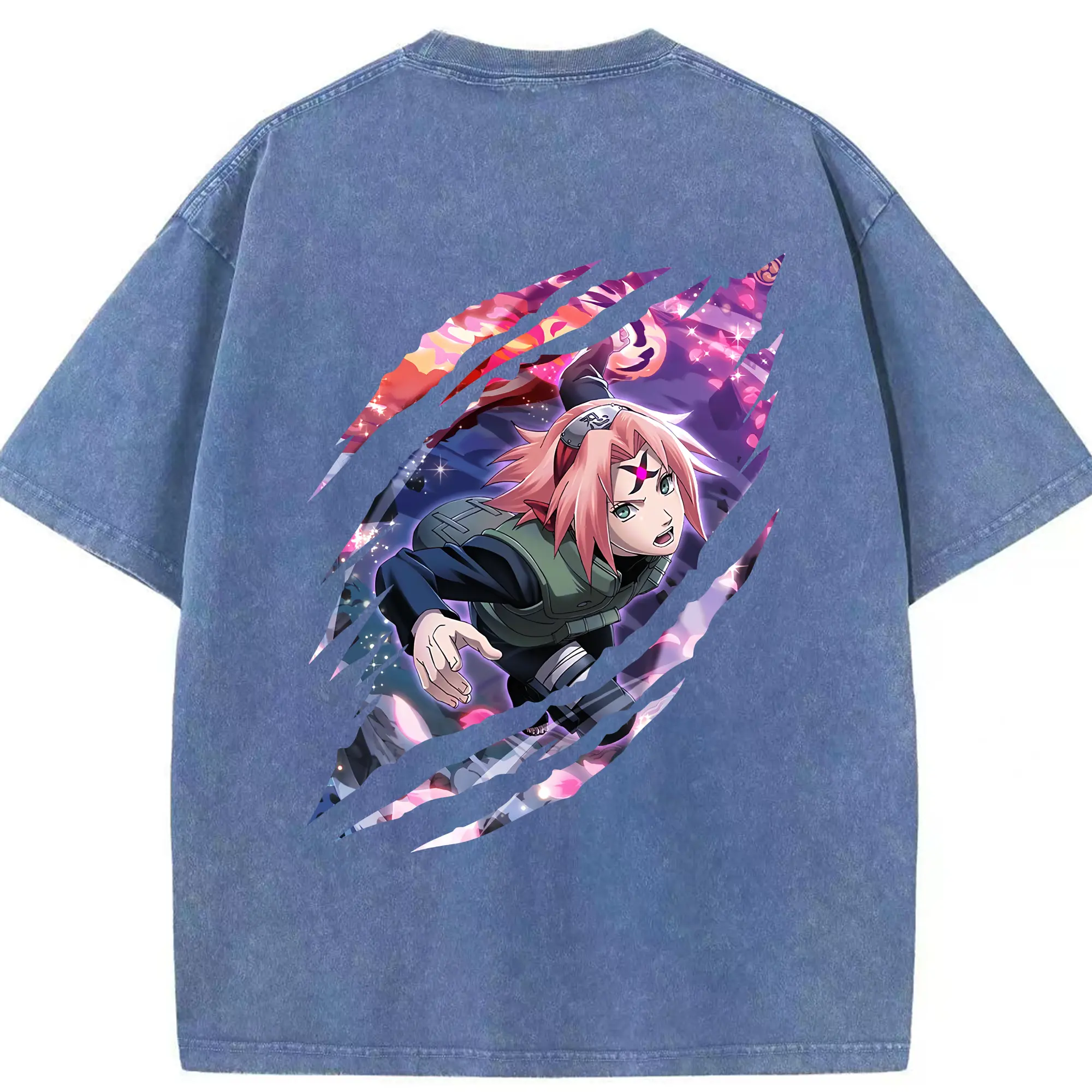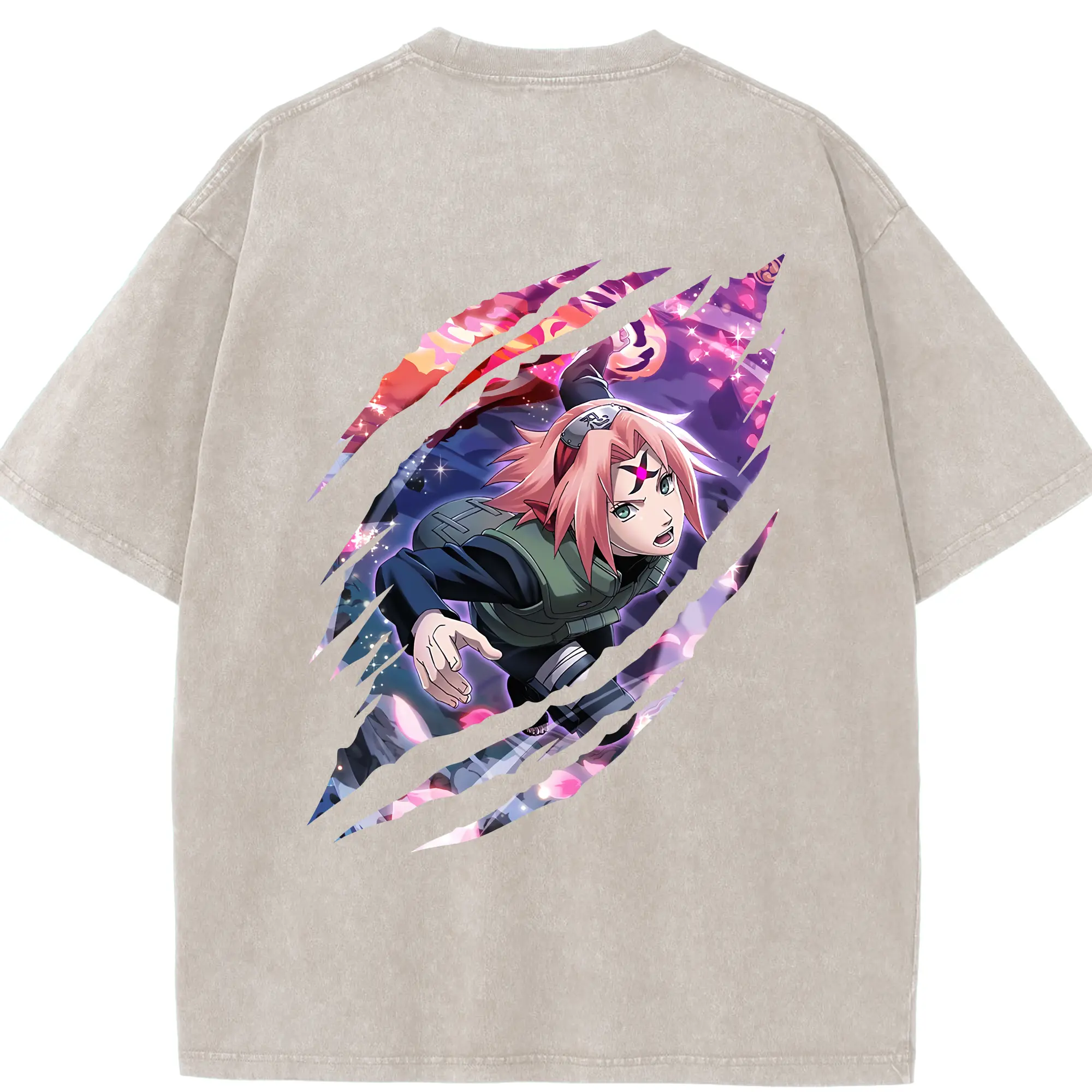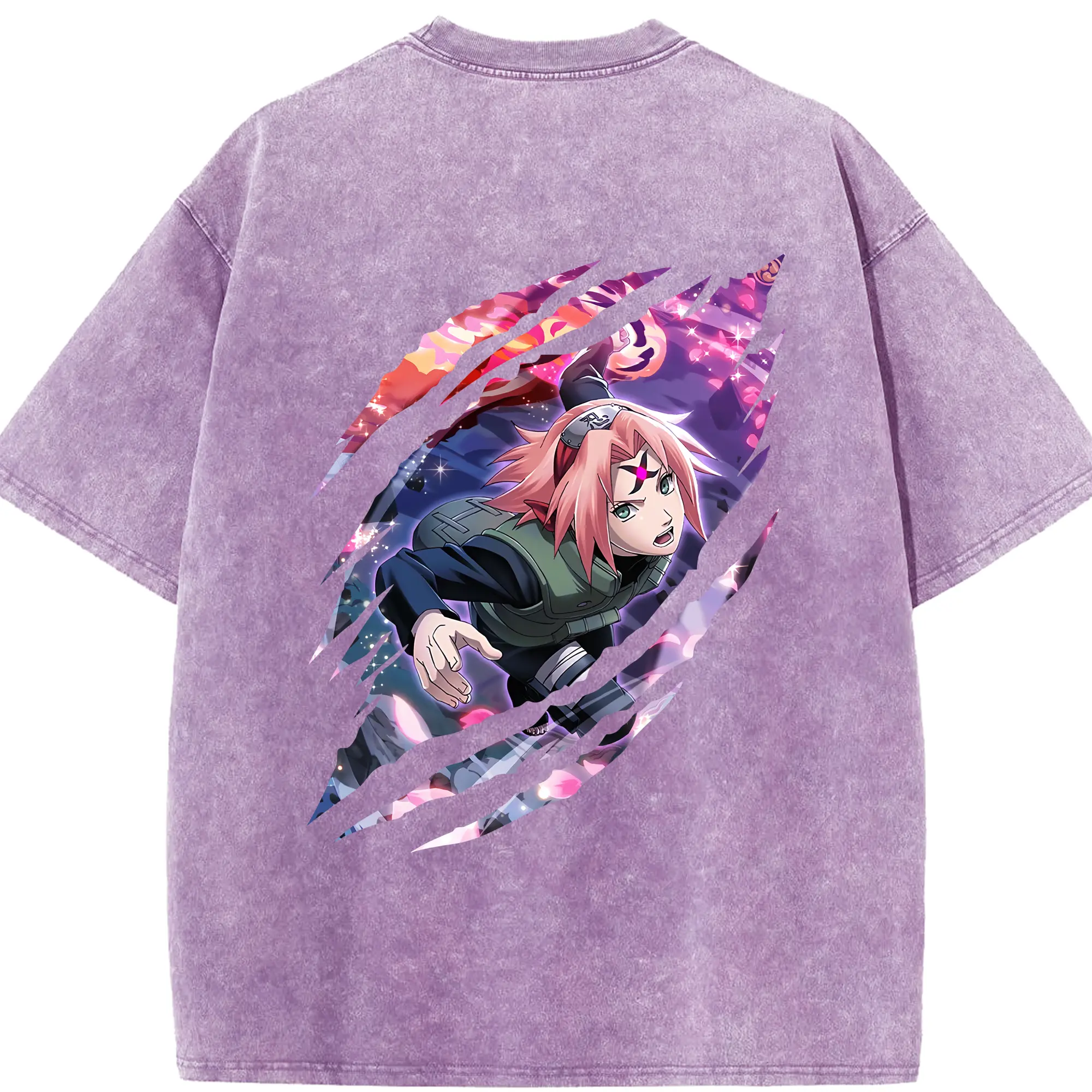 ナルト グッズ はるの さくら - 綿100% ヴィンテージ風 半袖Tシャツ ・ フロントプリント ・ 柔らか肌触り ・ 通気性 快適 ・ スポーツ カジュアル 外出用