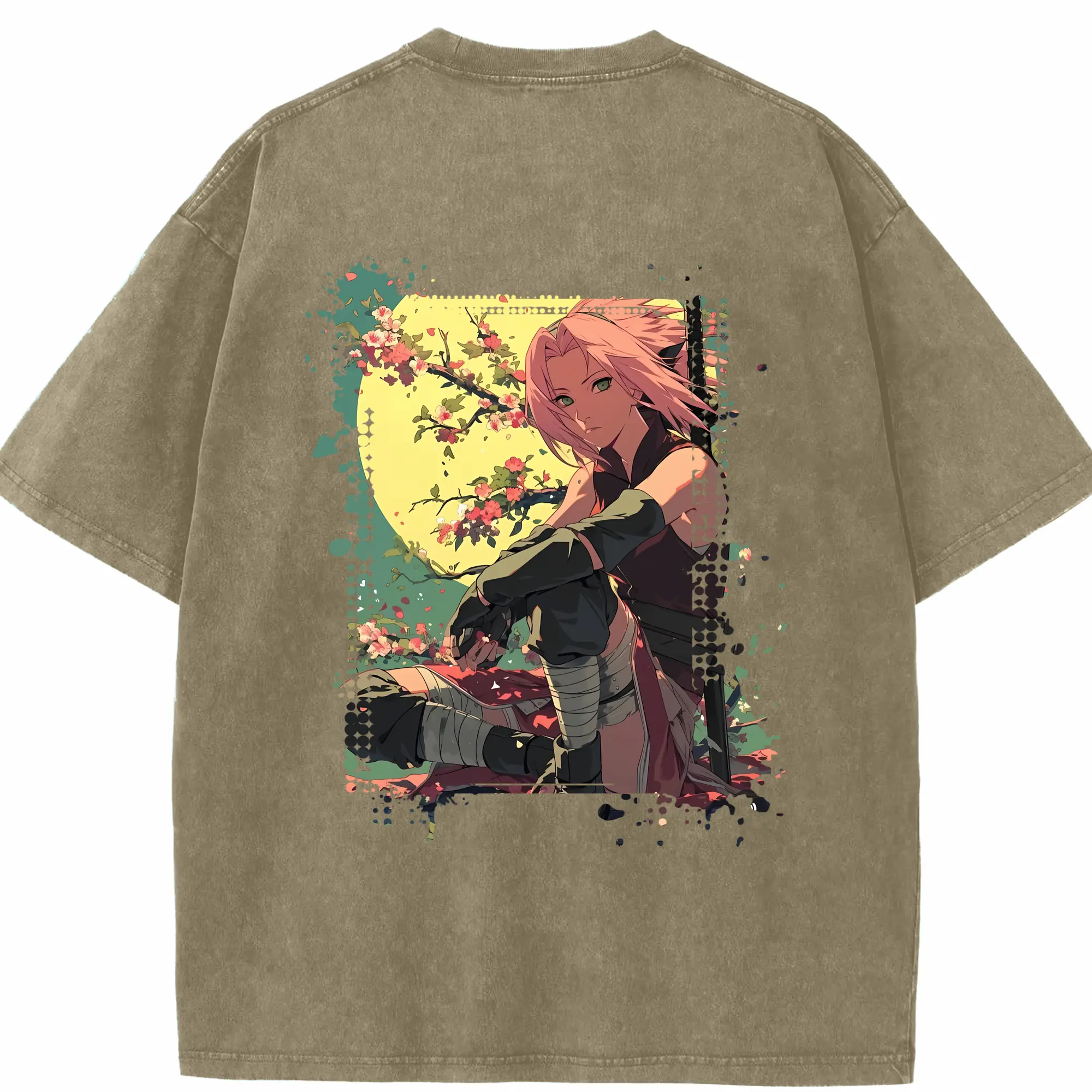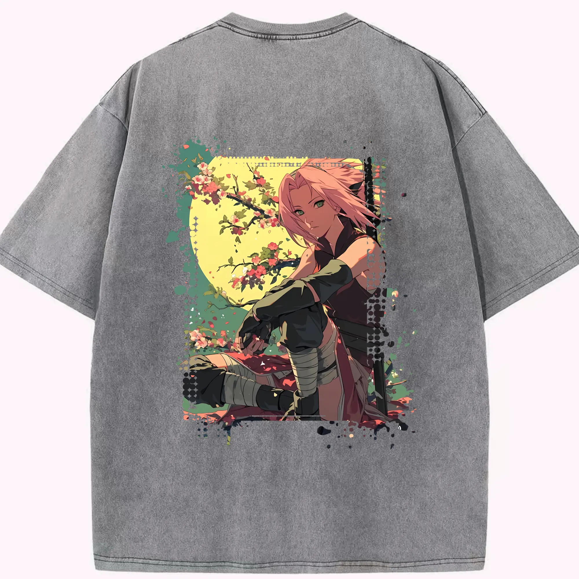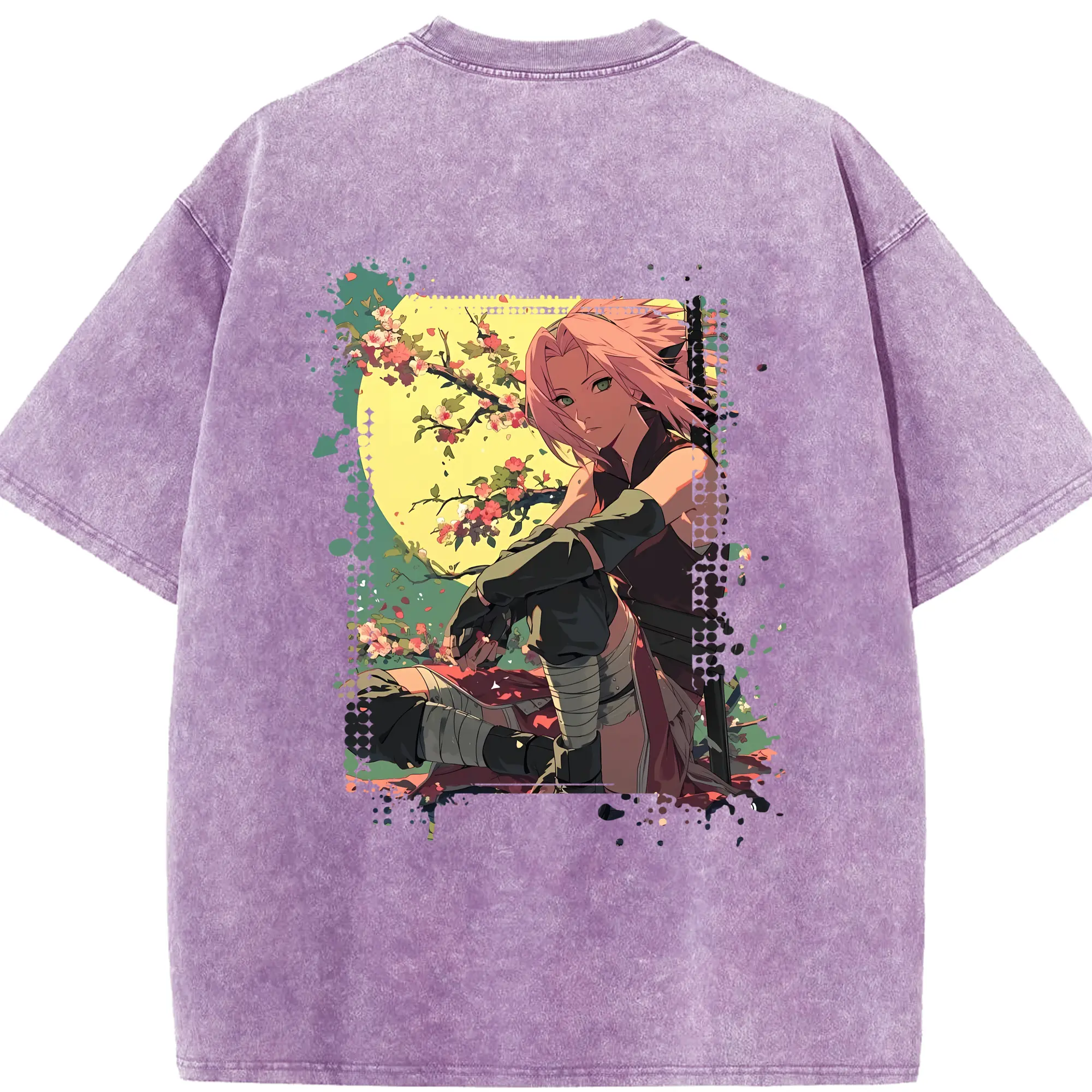 ナルト グッズ はるの さくら - 綿100% ヴィンテージ風 半袖Tシャツ ・ フロントプリント ・ 柔らか肌触り ・ 通気性 快適 ・ スポーツ カジュアル 外出用