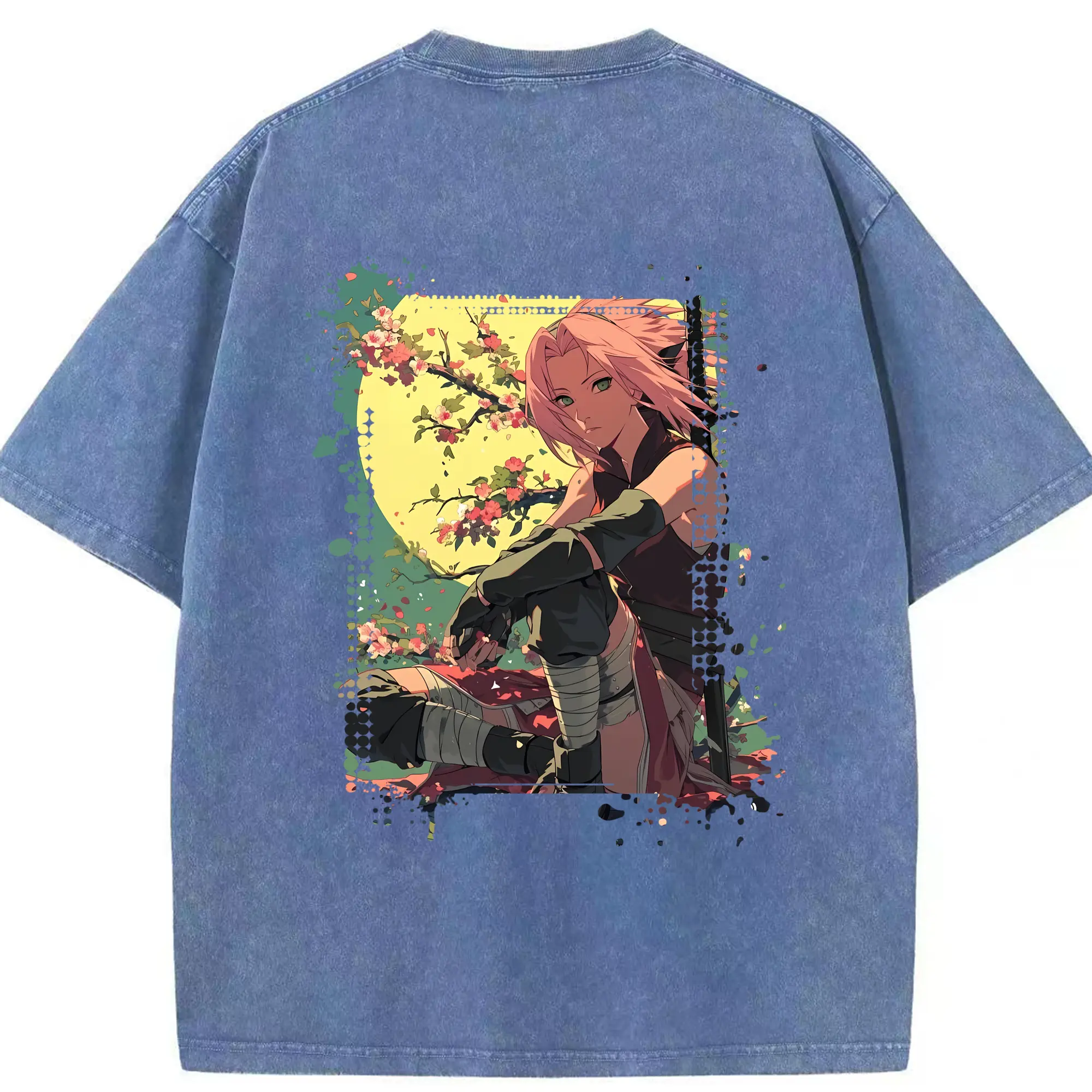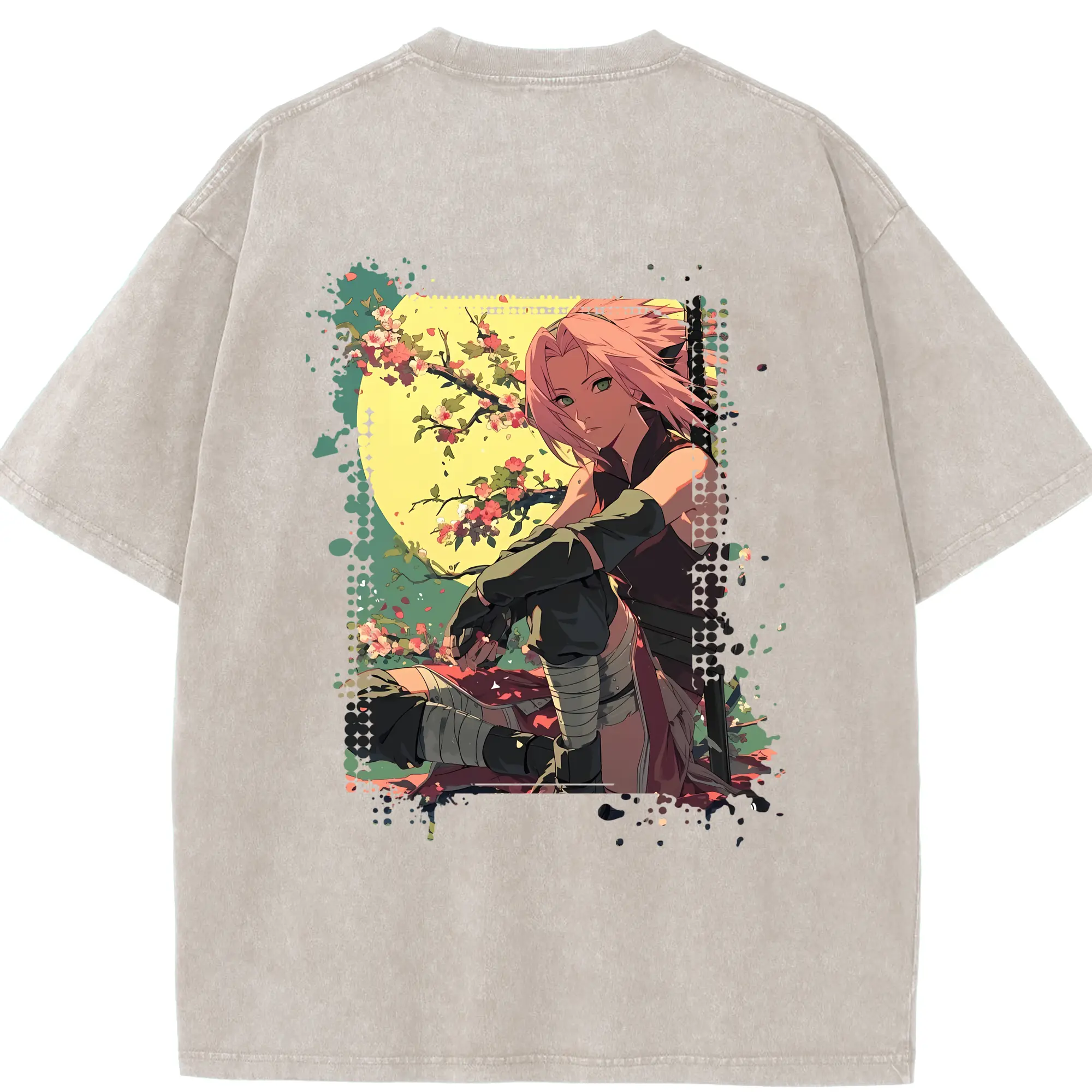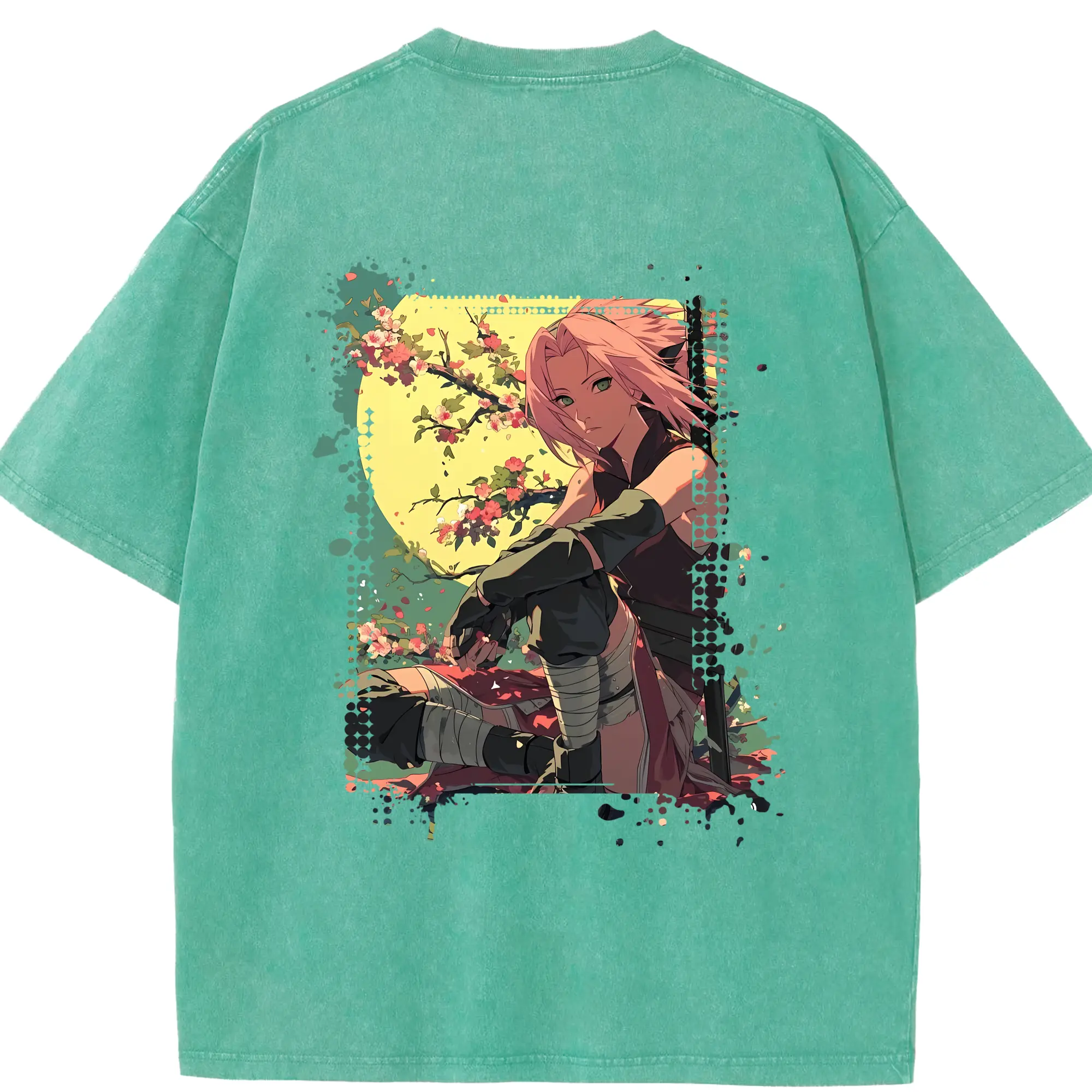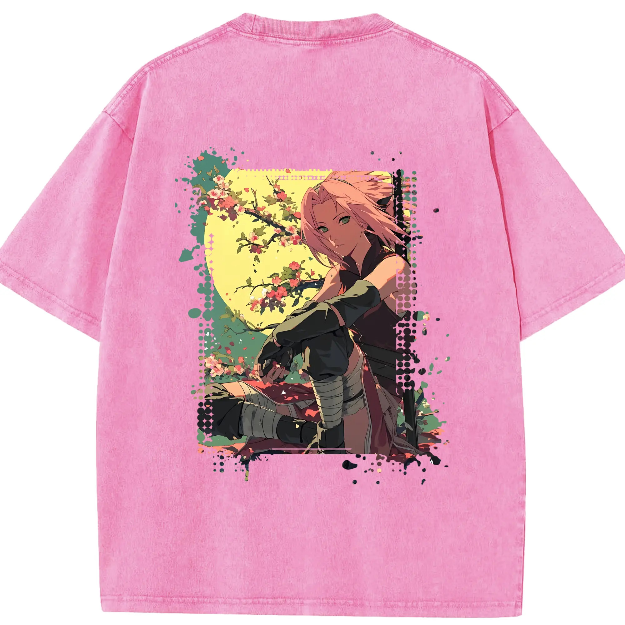 ナルト グッズ はるの さくら - 綿100% ヴィンテージ風 半袖Tシャツ ・ フロントプリント ・ 柔らか肌触り ・ 通気性 快適 ・ スポーツ カジュアル 外出用