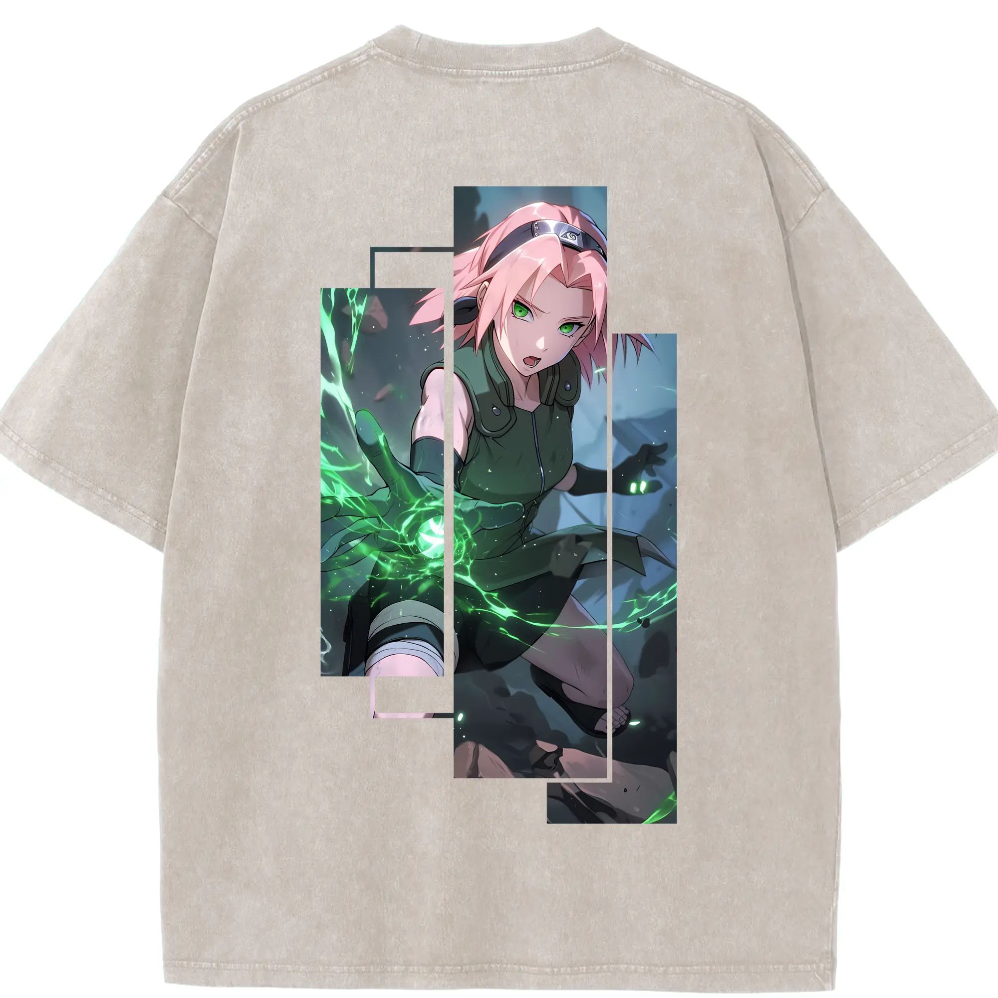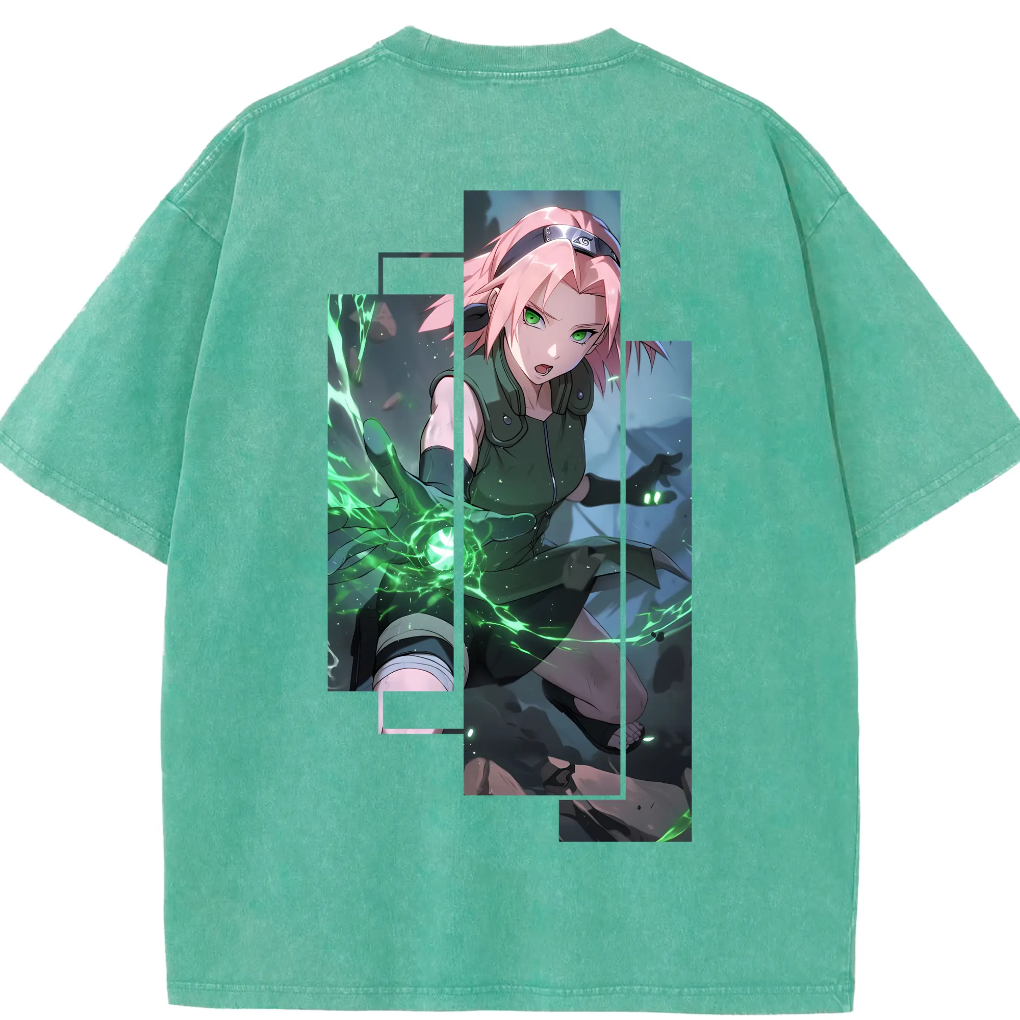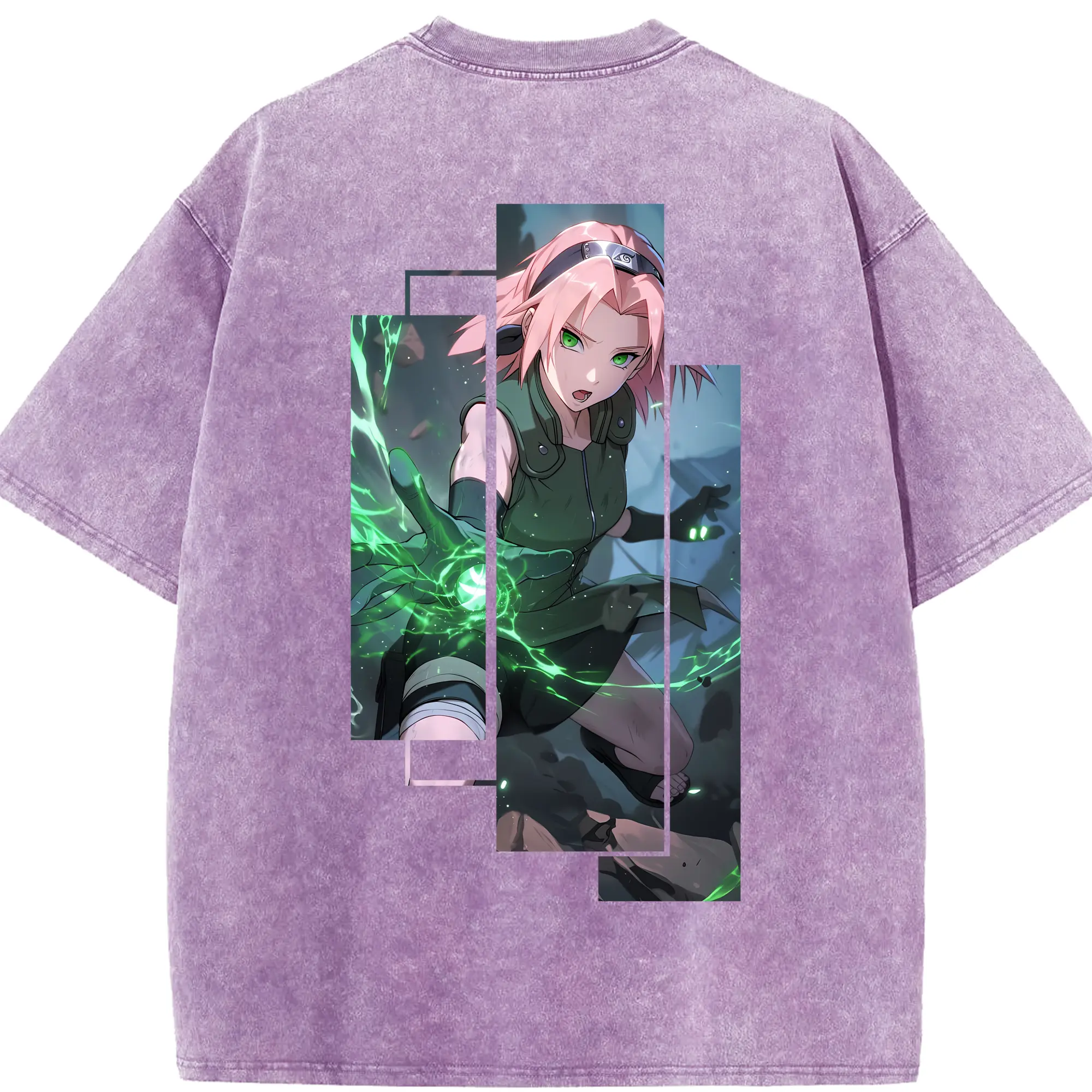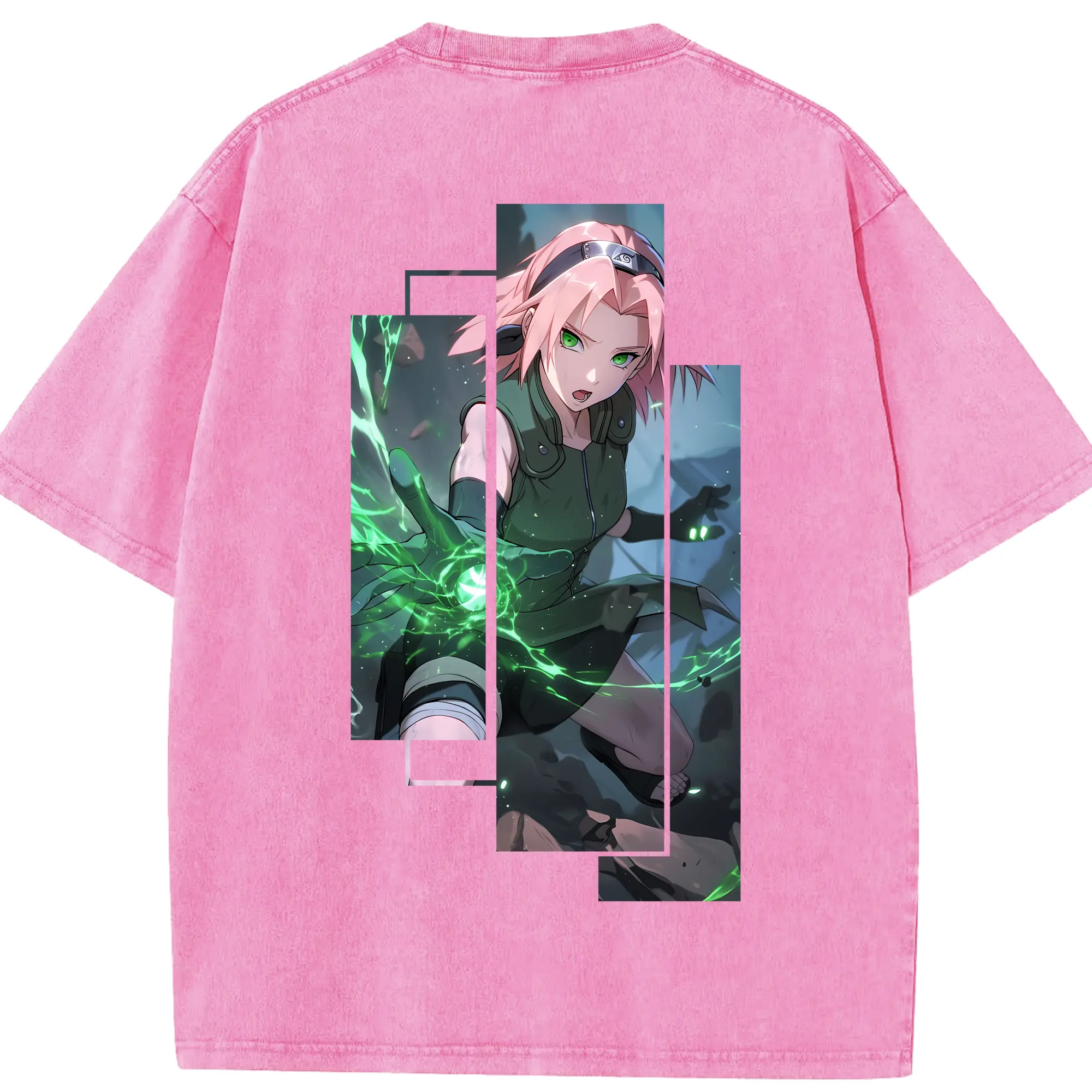 ナルト グッズ はるの さくら - 綿100% ヴィンテージ風 半袖Tシャツ ・ フロントプリント ・ 柔らか肌触り ・ 通気性 快適 ・ スポーツ カジュアル 外出用