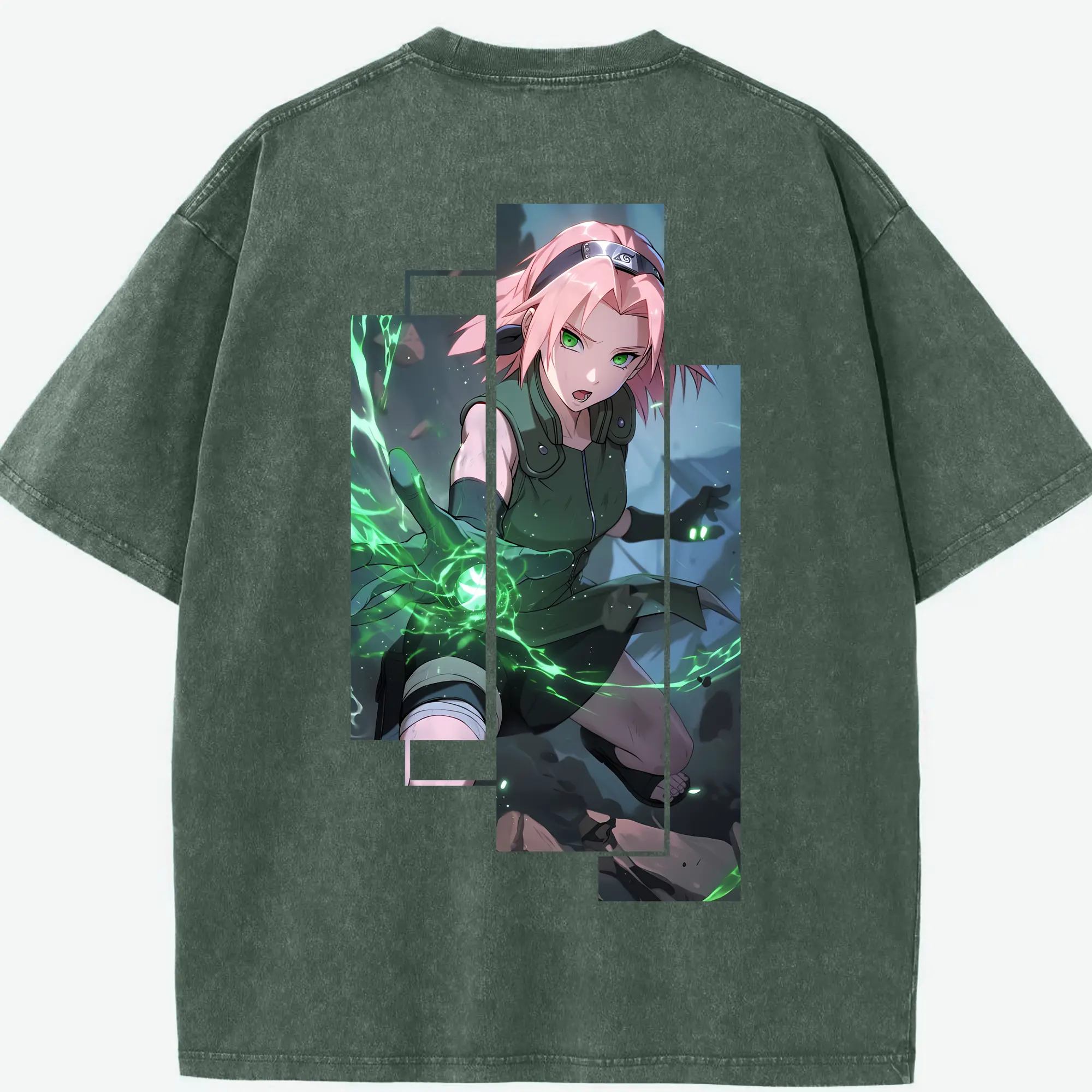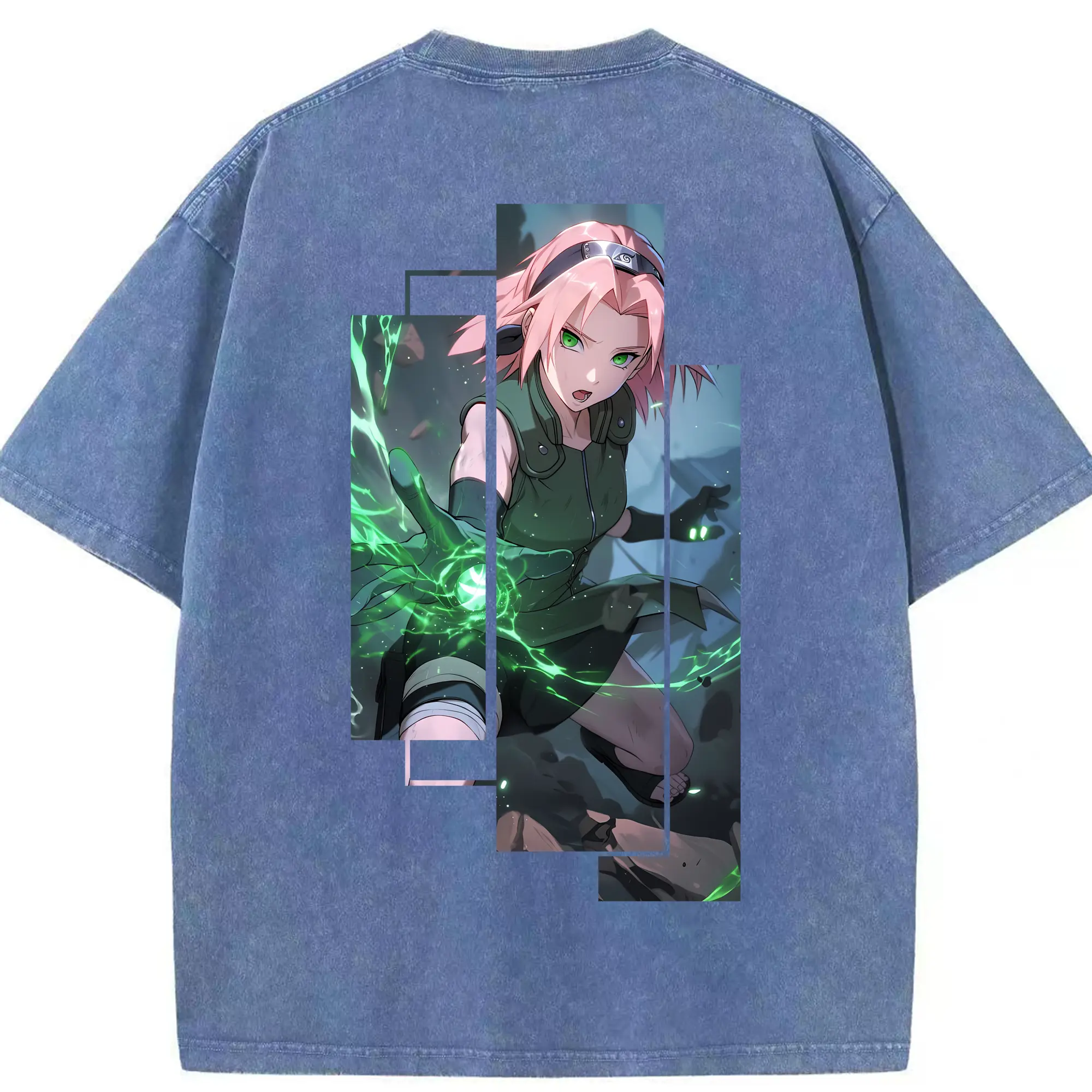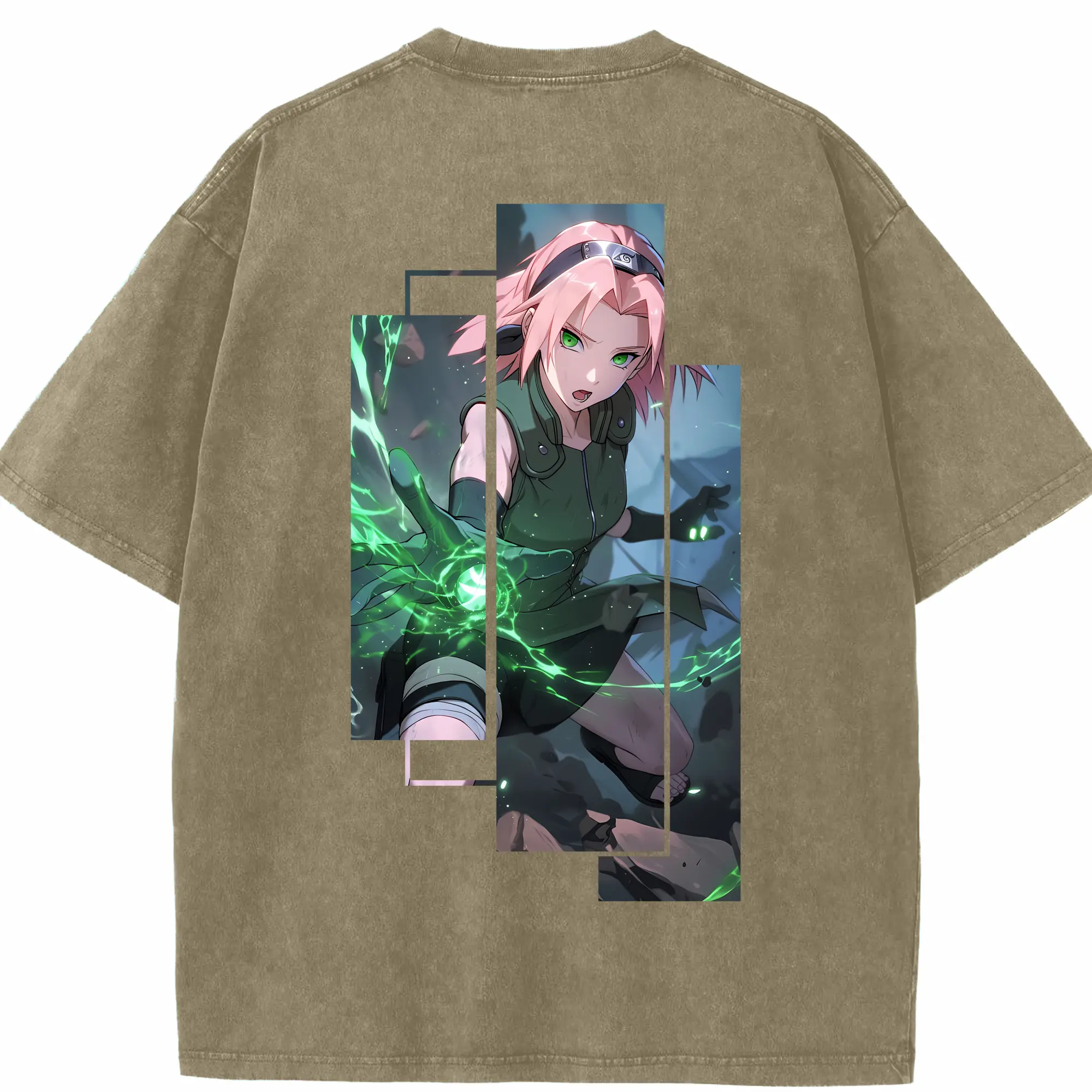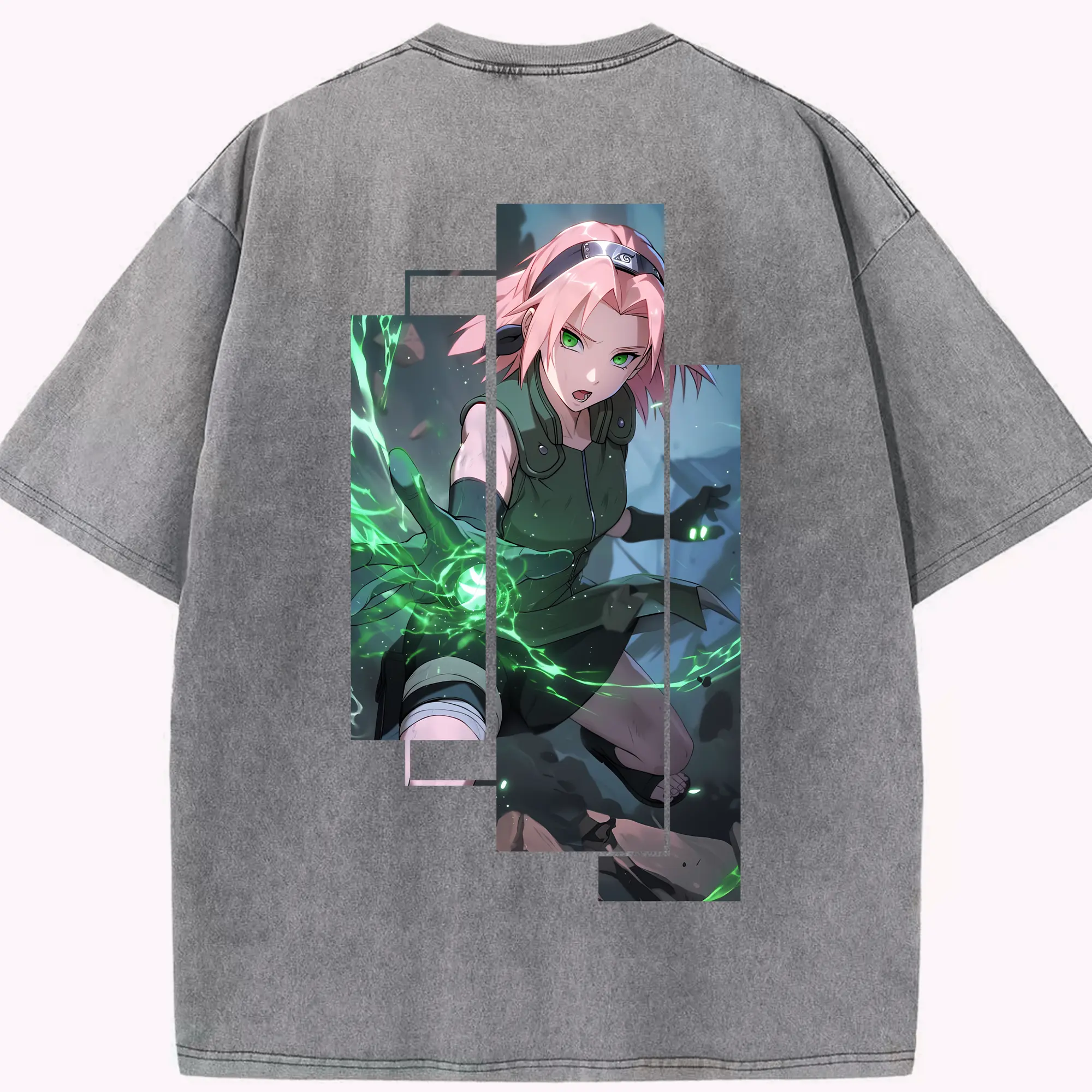ナルト グッズ はるの さくら - 綿100% ヴィンテージ風 半袖Tシャツ ・ フロントプリント ・ 柔らか肌触り ・ 通気性 快適 ・ スポーツ カジュアル 外出用