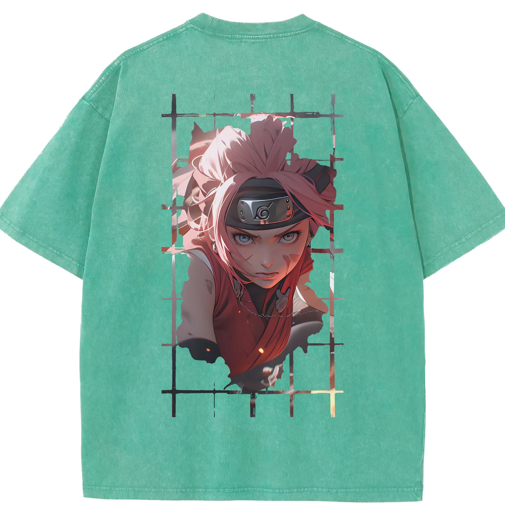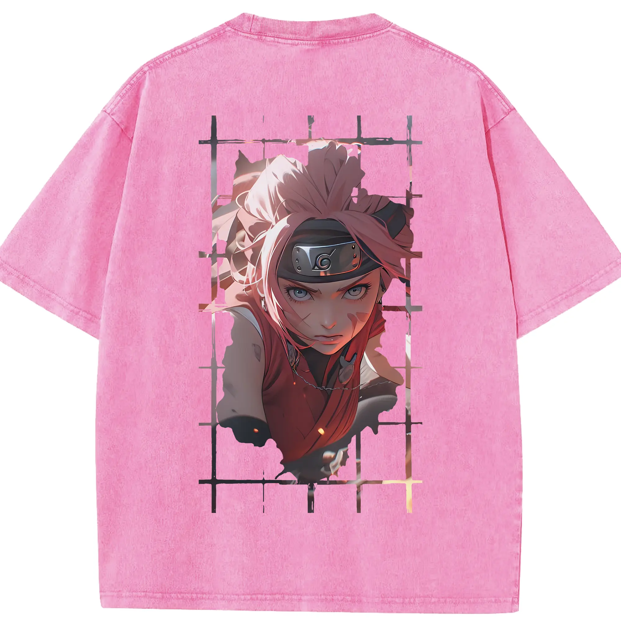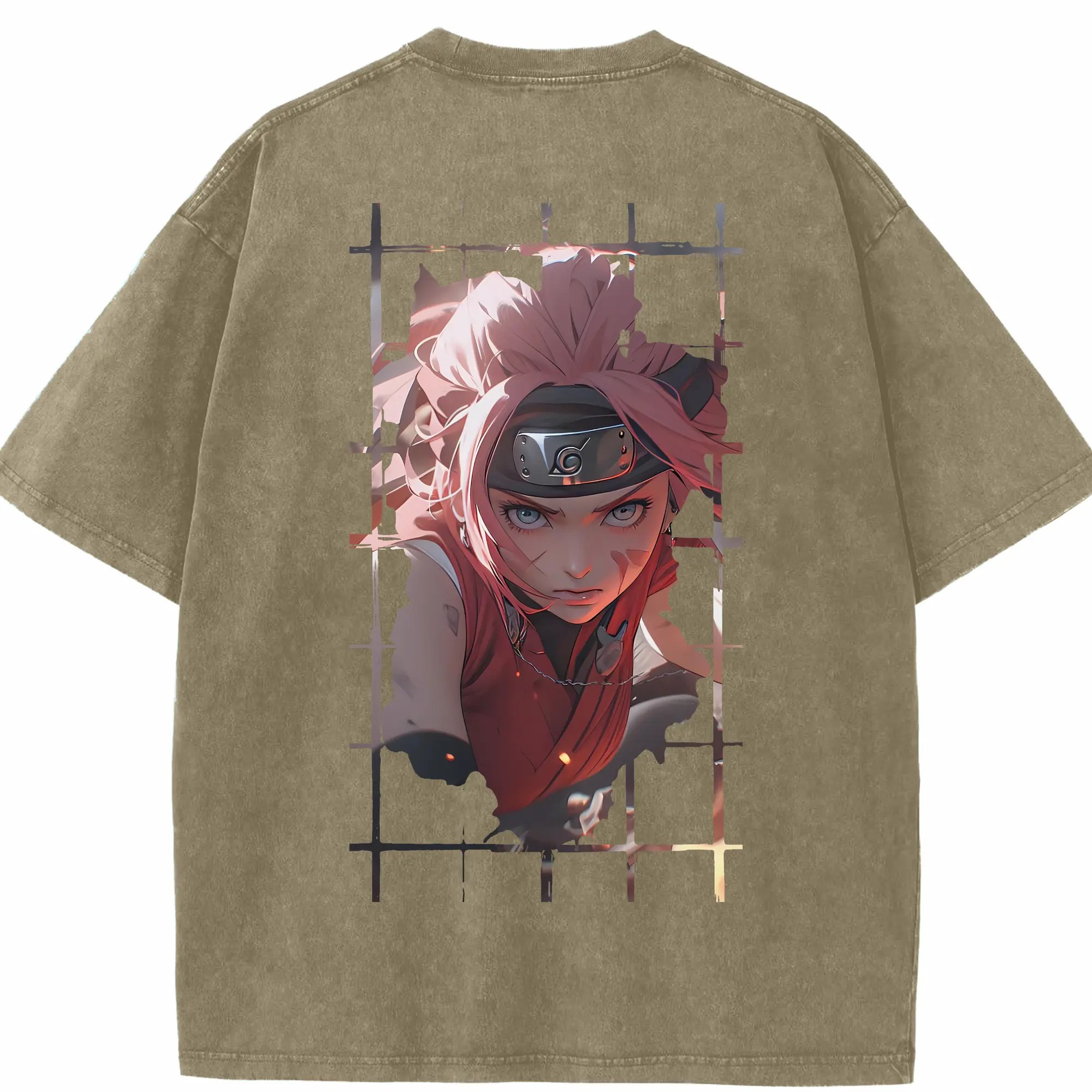 ナルト グッズ はるの さくら - 綿100% ヴィンテージ風 半袖Tシャツ ・ フロントプリント ・ 柔らか肌触り ・ 通気性 快適 ・ スポーツ カジュアル 外出用