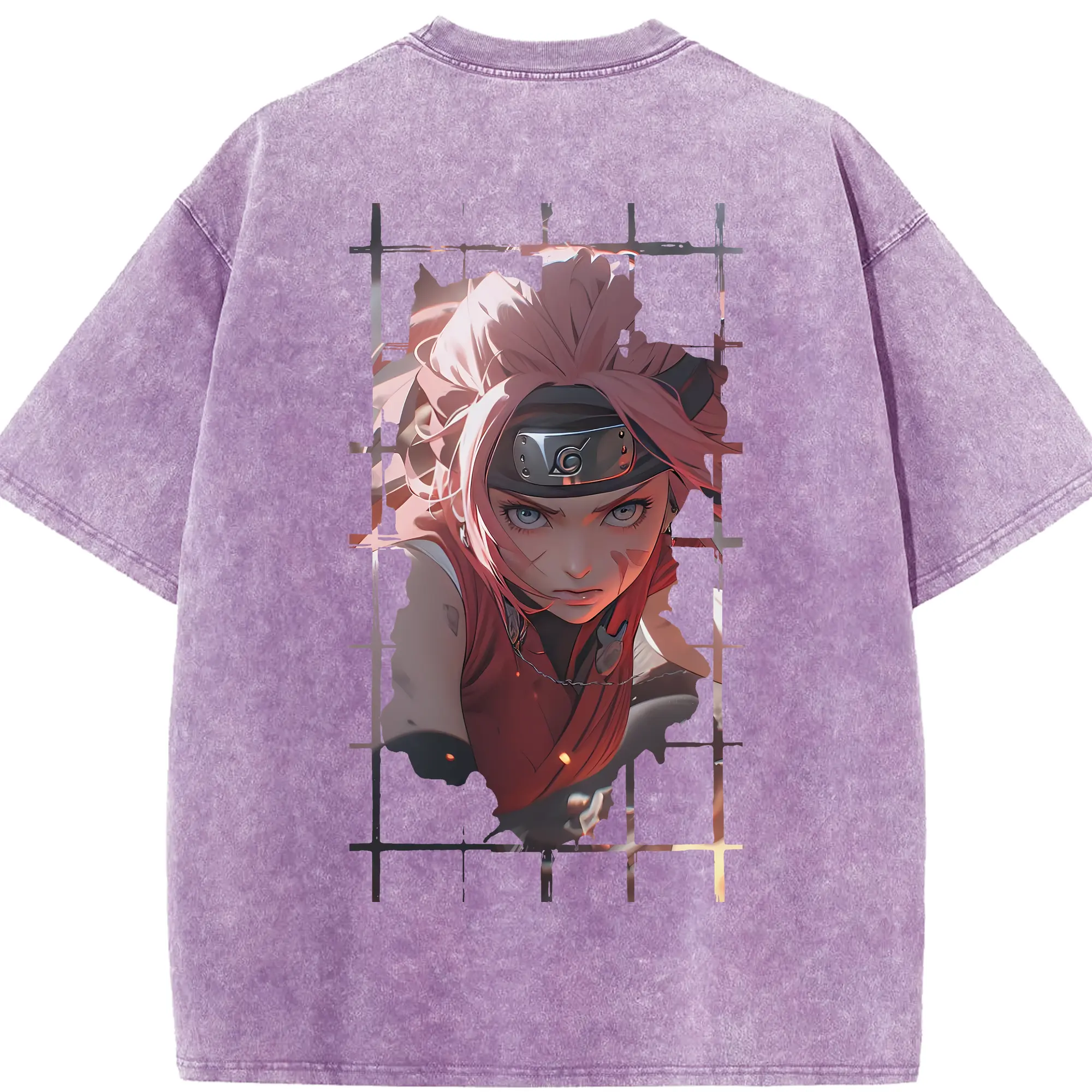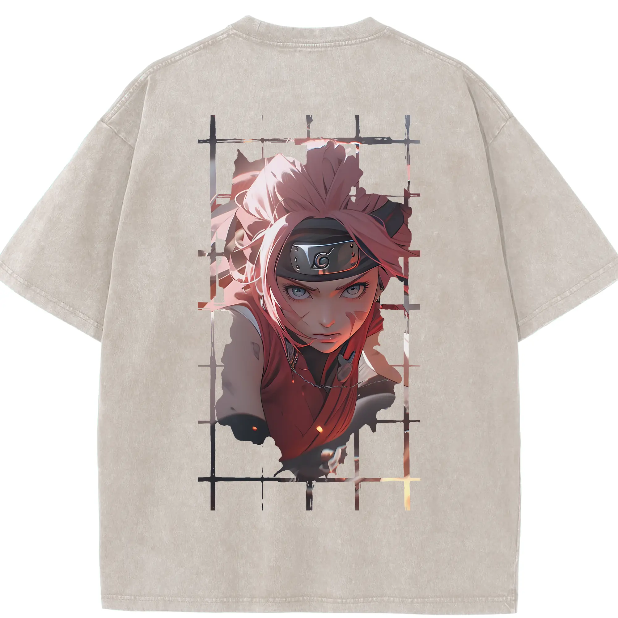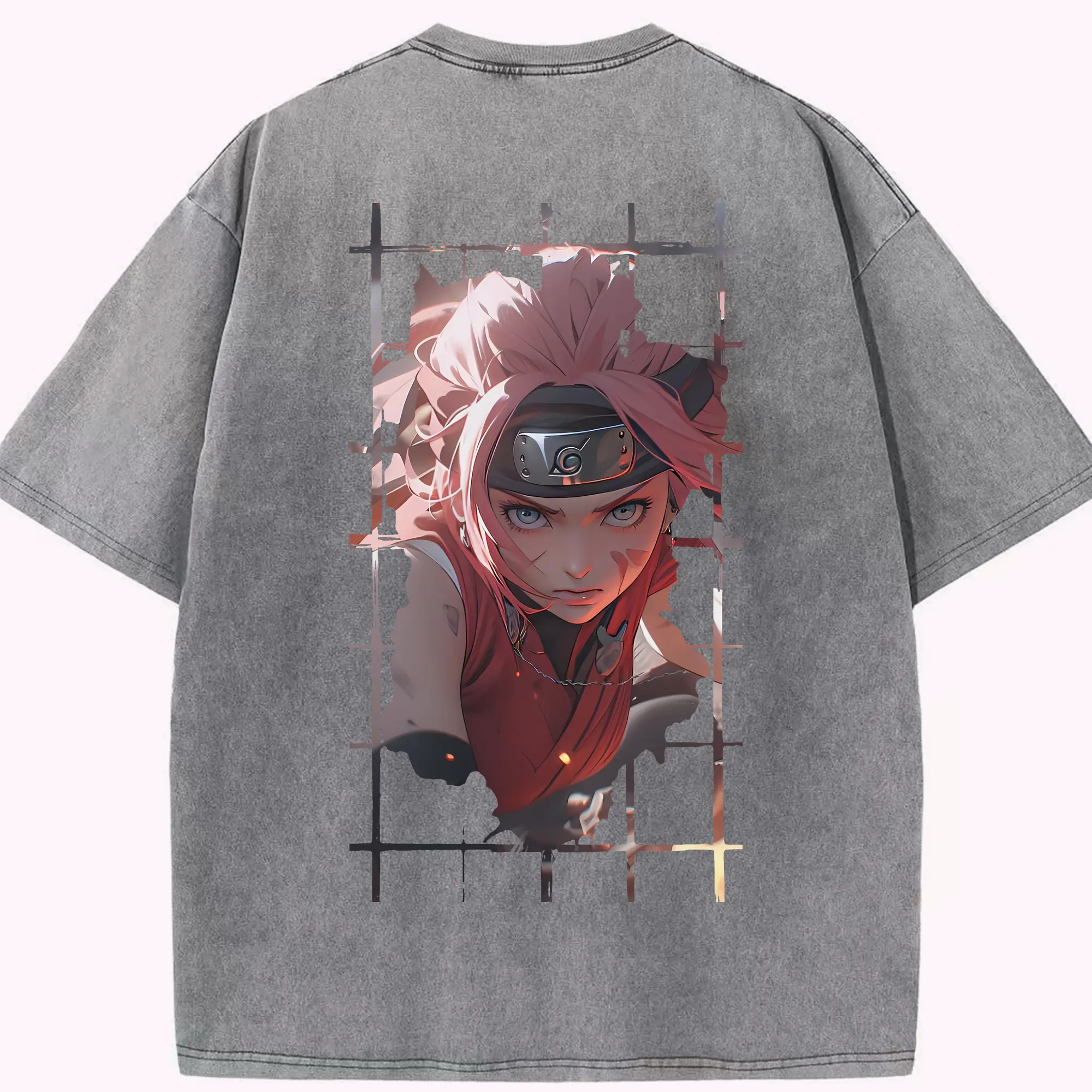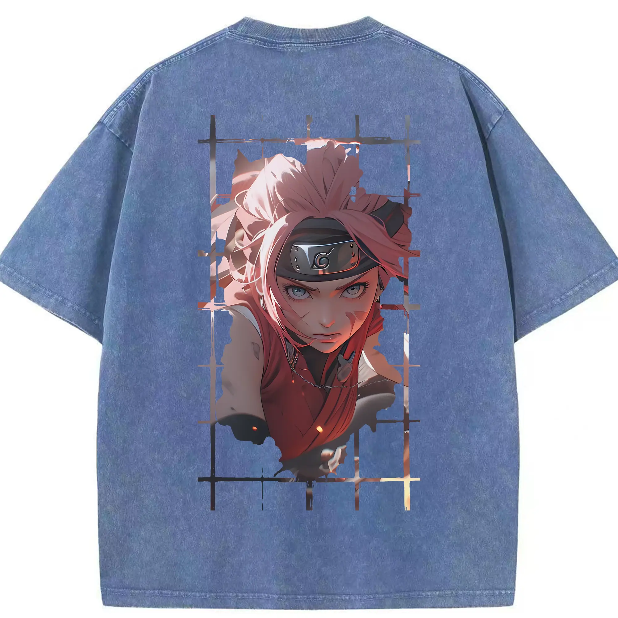 ナルト グッズ はるの さくら - 綿100% ヴィンテージ風 半袖Tシャツ ・ フロントプリント ・ 柔らか肌触り ・ 通気性 快適 ・ スポーツ カジュアル 外出用