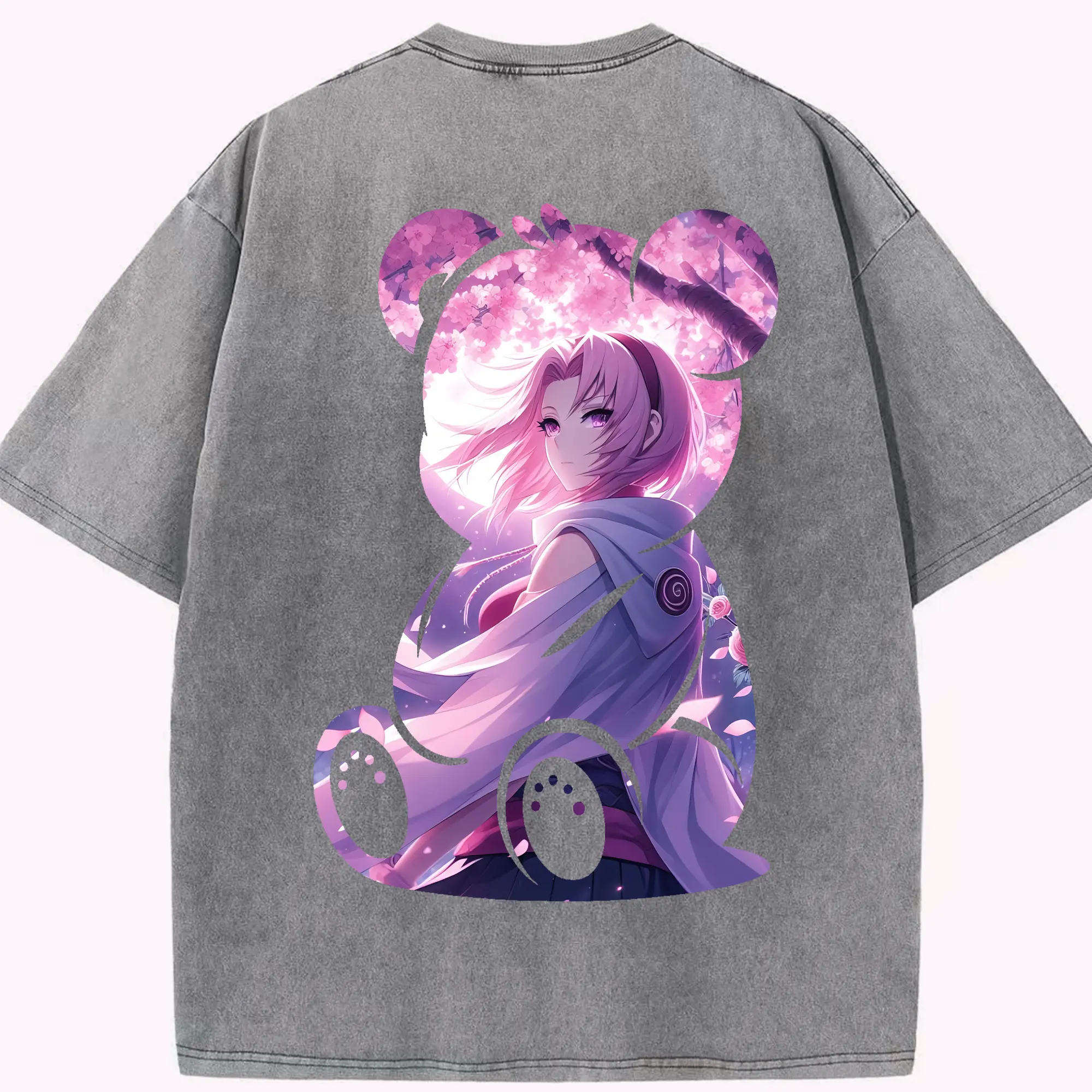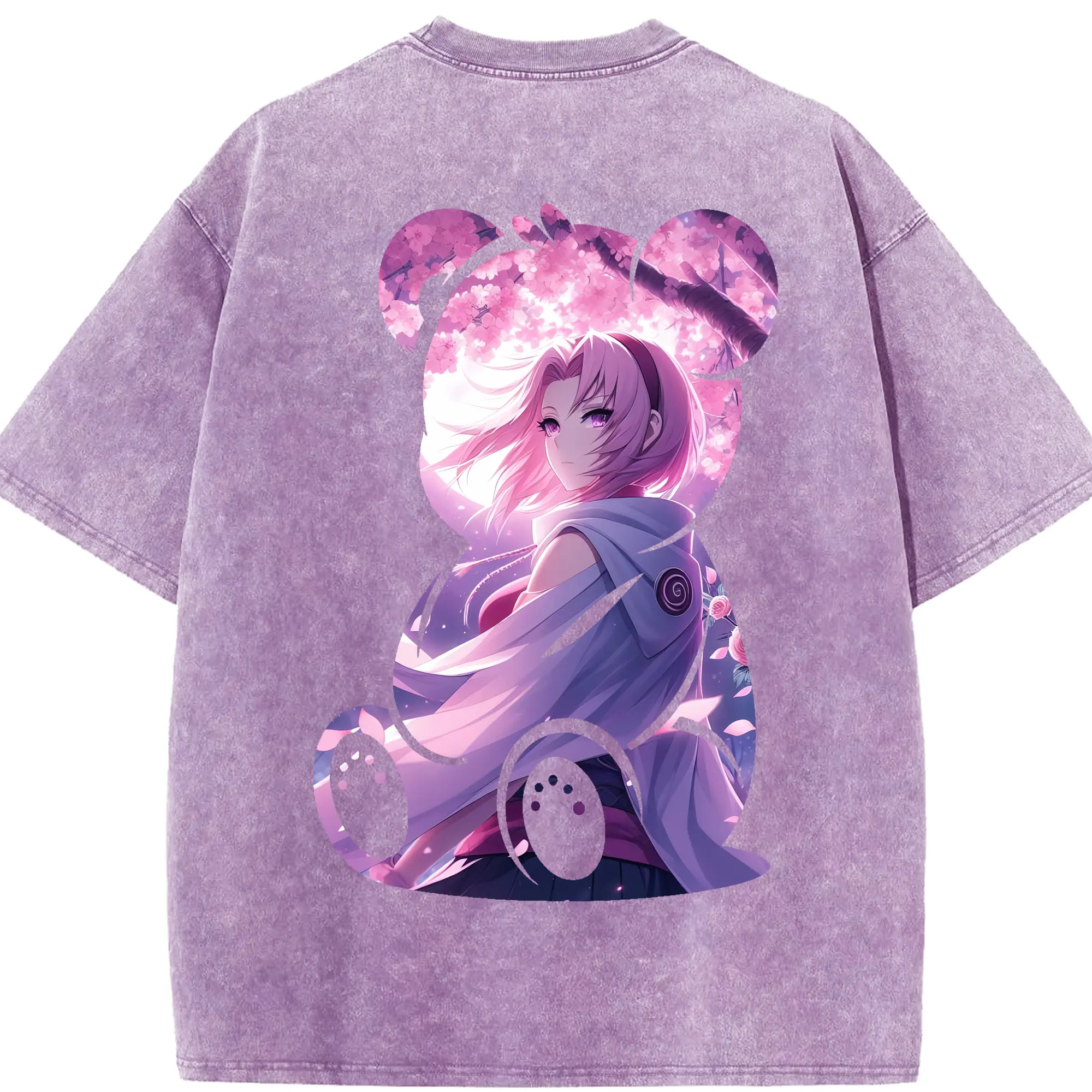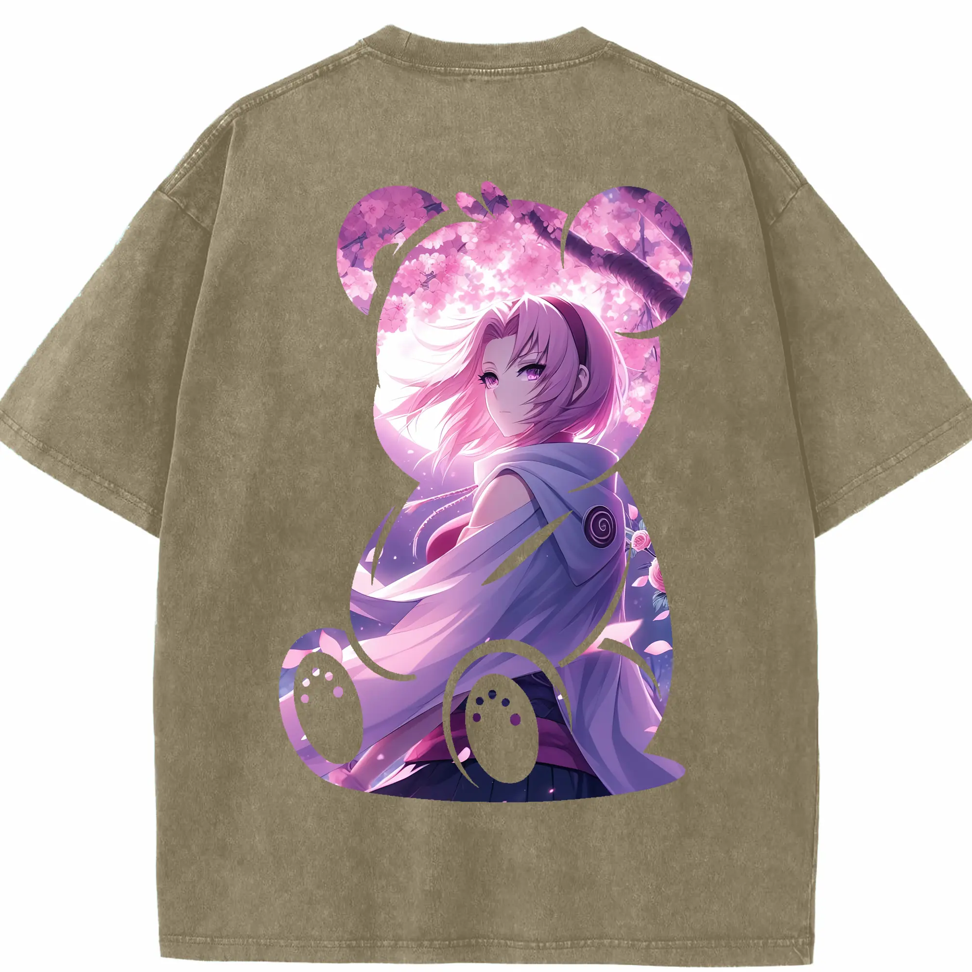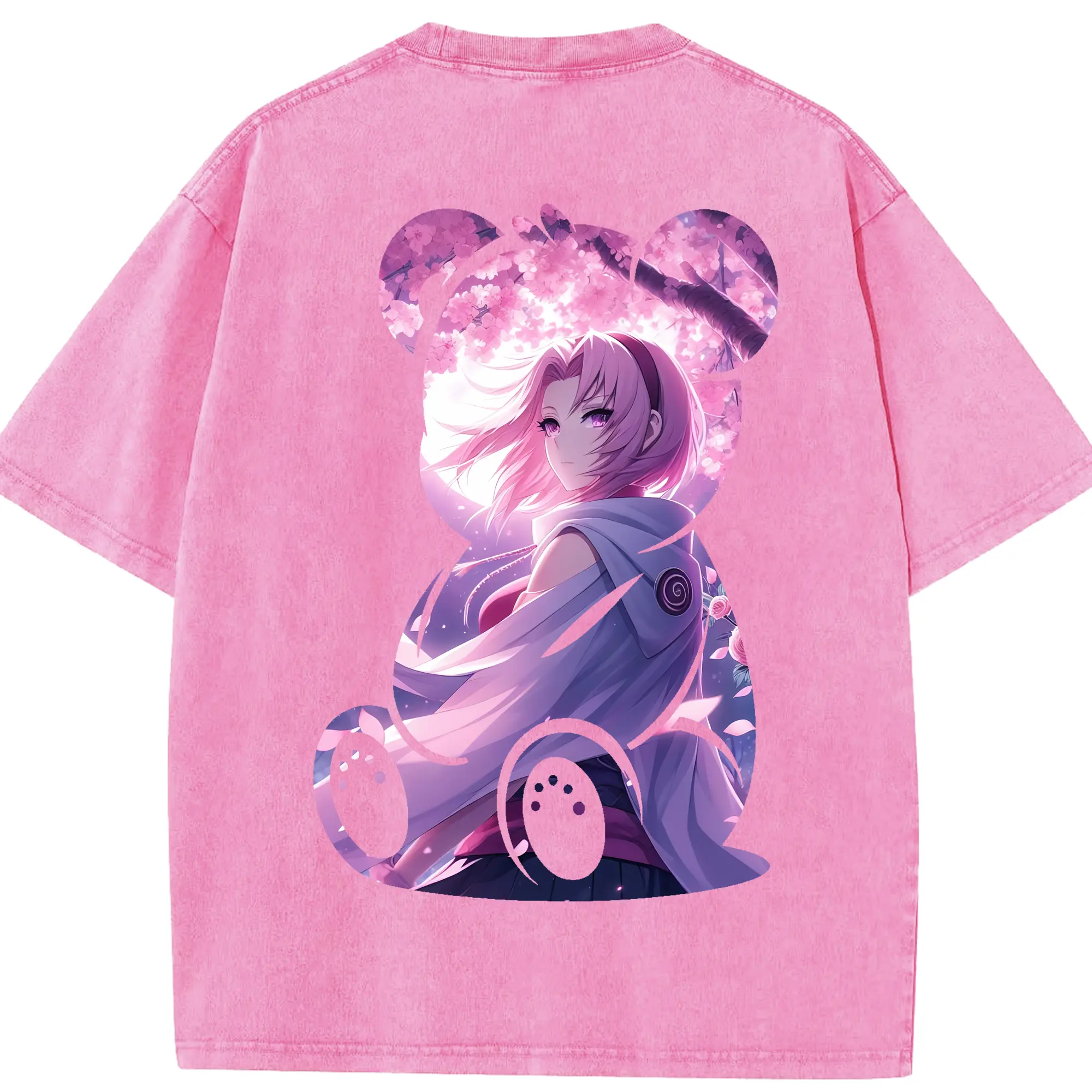 ナルト グッズ はるの さくら - 綿100% ヴィンテージ風 半袖Tシャツ ・ フロントプリント ・ 柔らか肌触り ・ 通気性 快適 ・ スポーツ カジュアル 外出用