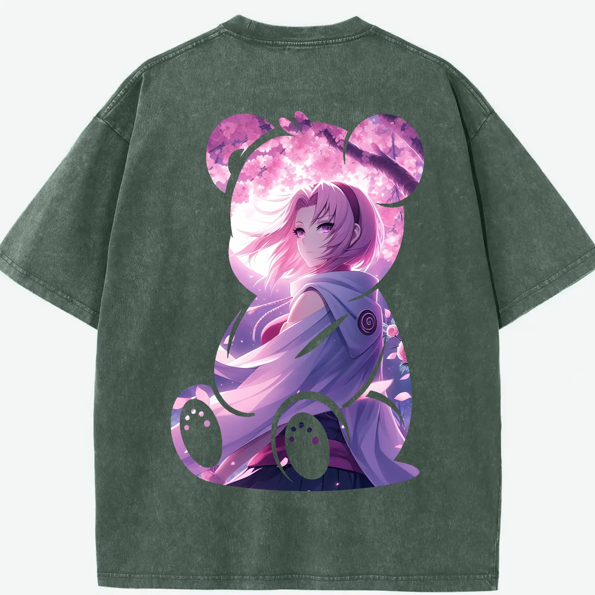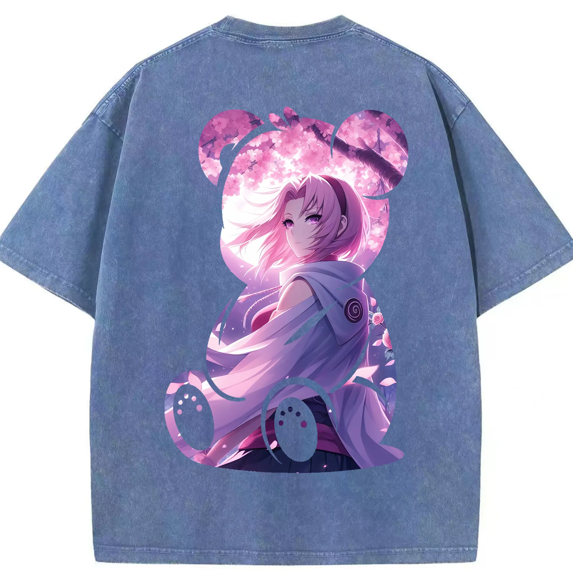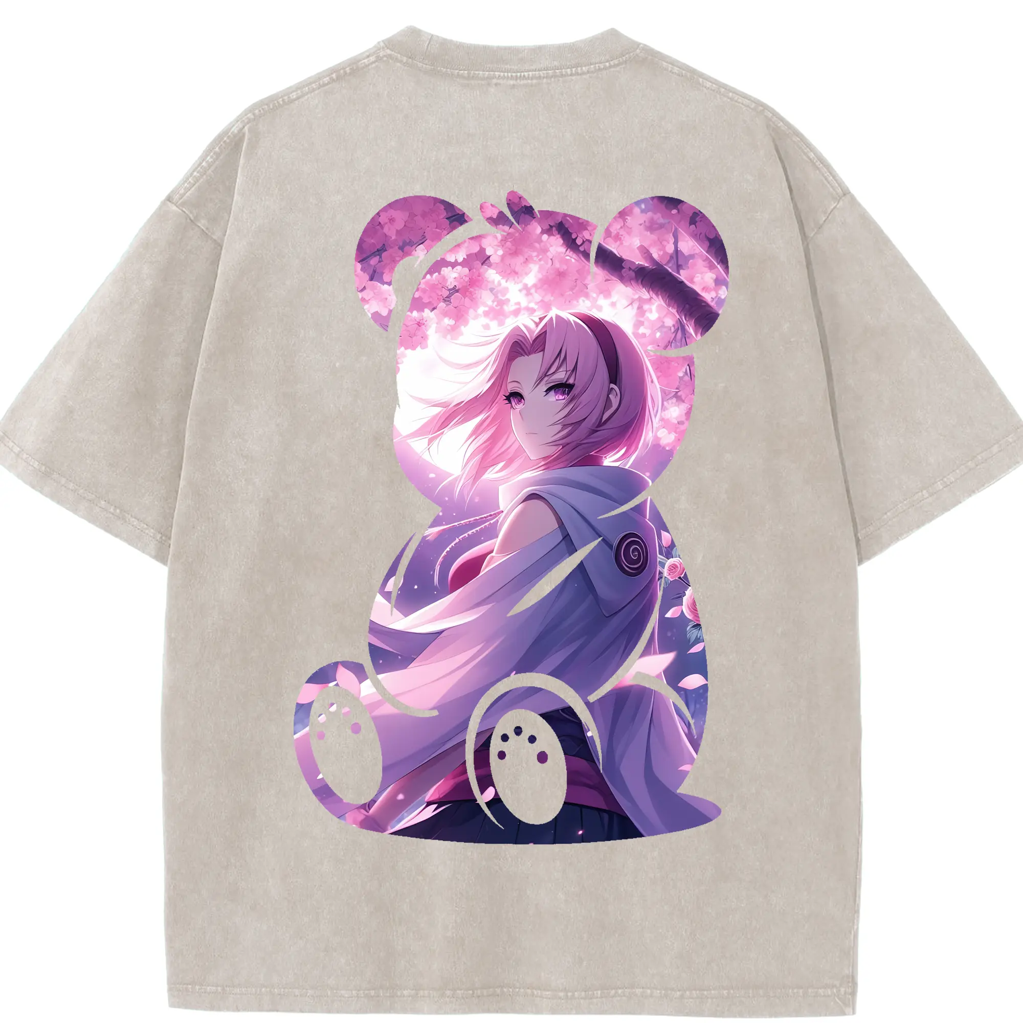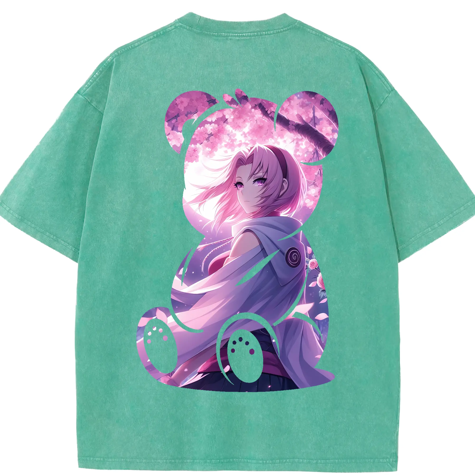 ナルト グッズ はるの さくら - 綿100% ヴィンテージ風 半袖Tシャツ ・ フロントプリント ・ 柔らか肌触り ・ 通気性 快適 ・ スポーツ カジュアル 外出用