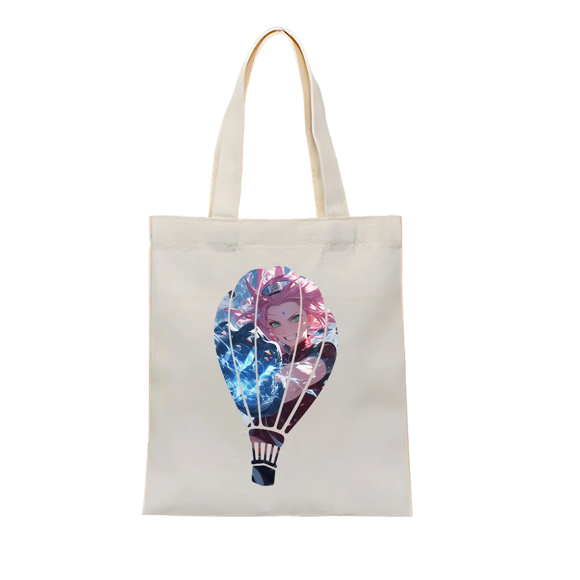ナルト グッズ はるの さくら - 縦型キャンバス手提げバッグ(トートバッグ) ・ キャンバス素材 ・ ショッピング用 ・ 軽量 丈夫 お手入れ簡単