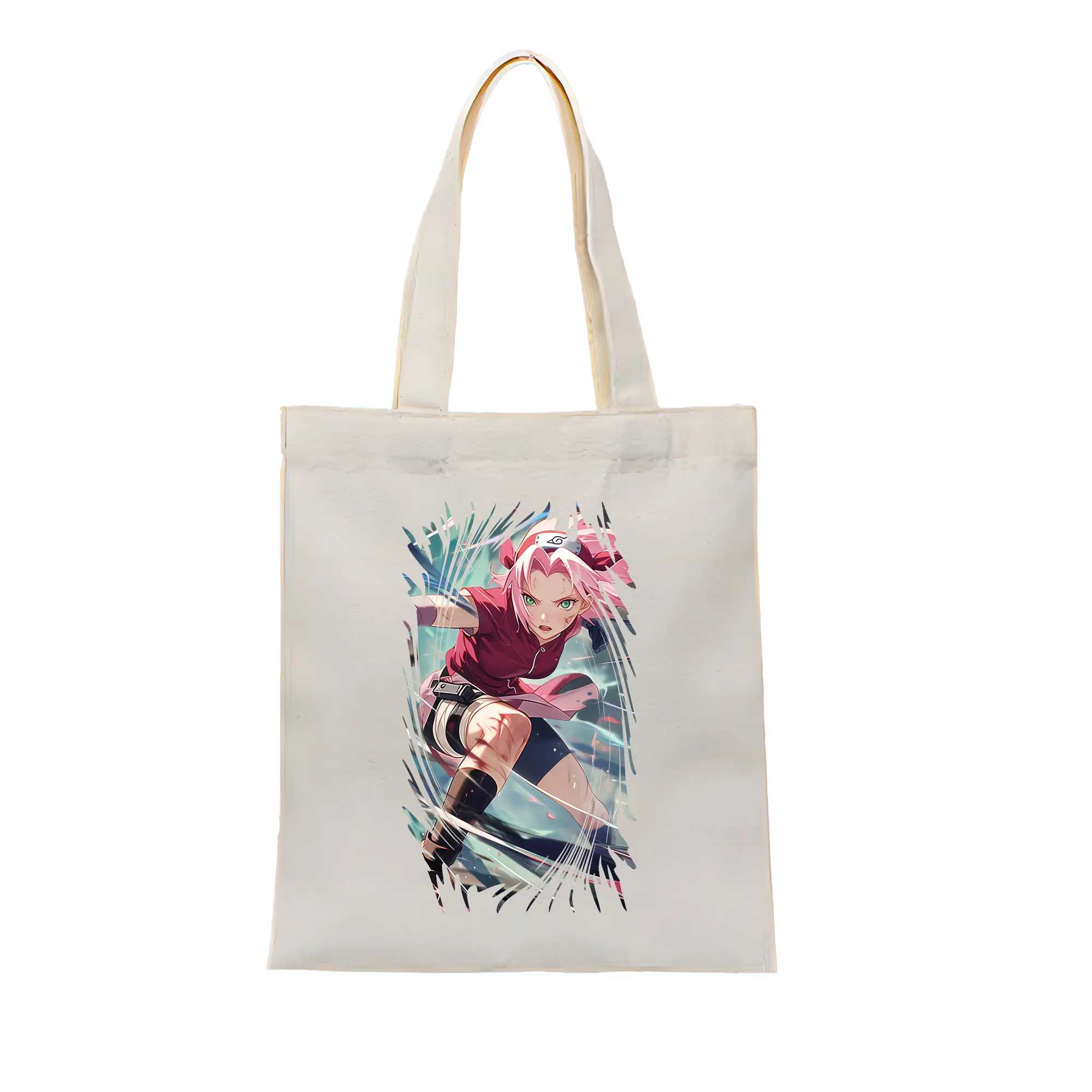 ナルト グッズ はるの さくら - 縦型キャンバス手提げバッグ(トートバッグ) ・ キャンバス素材 ・ ショッピング用 ・ 軽量 丈夫 お手入れ簡単