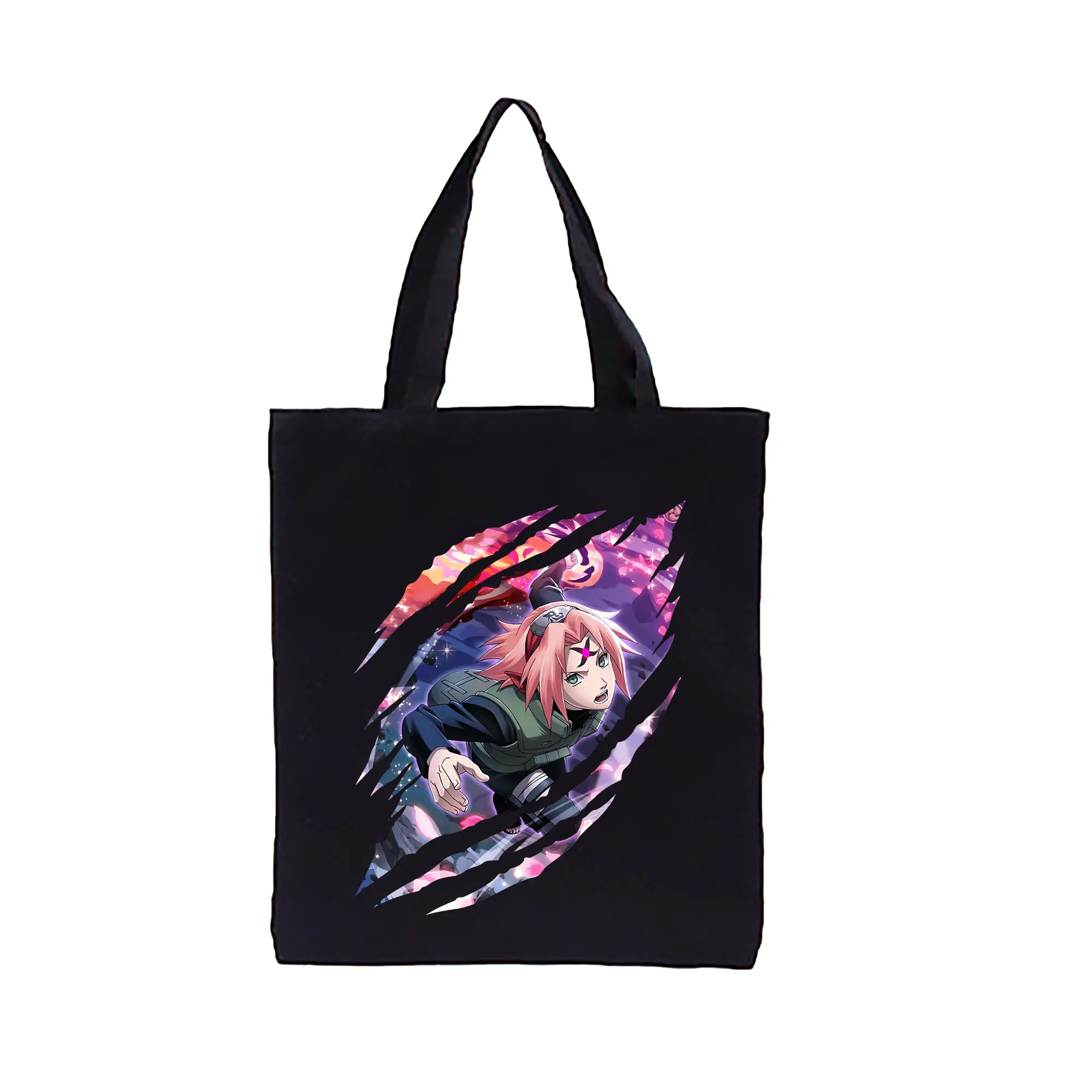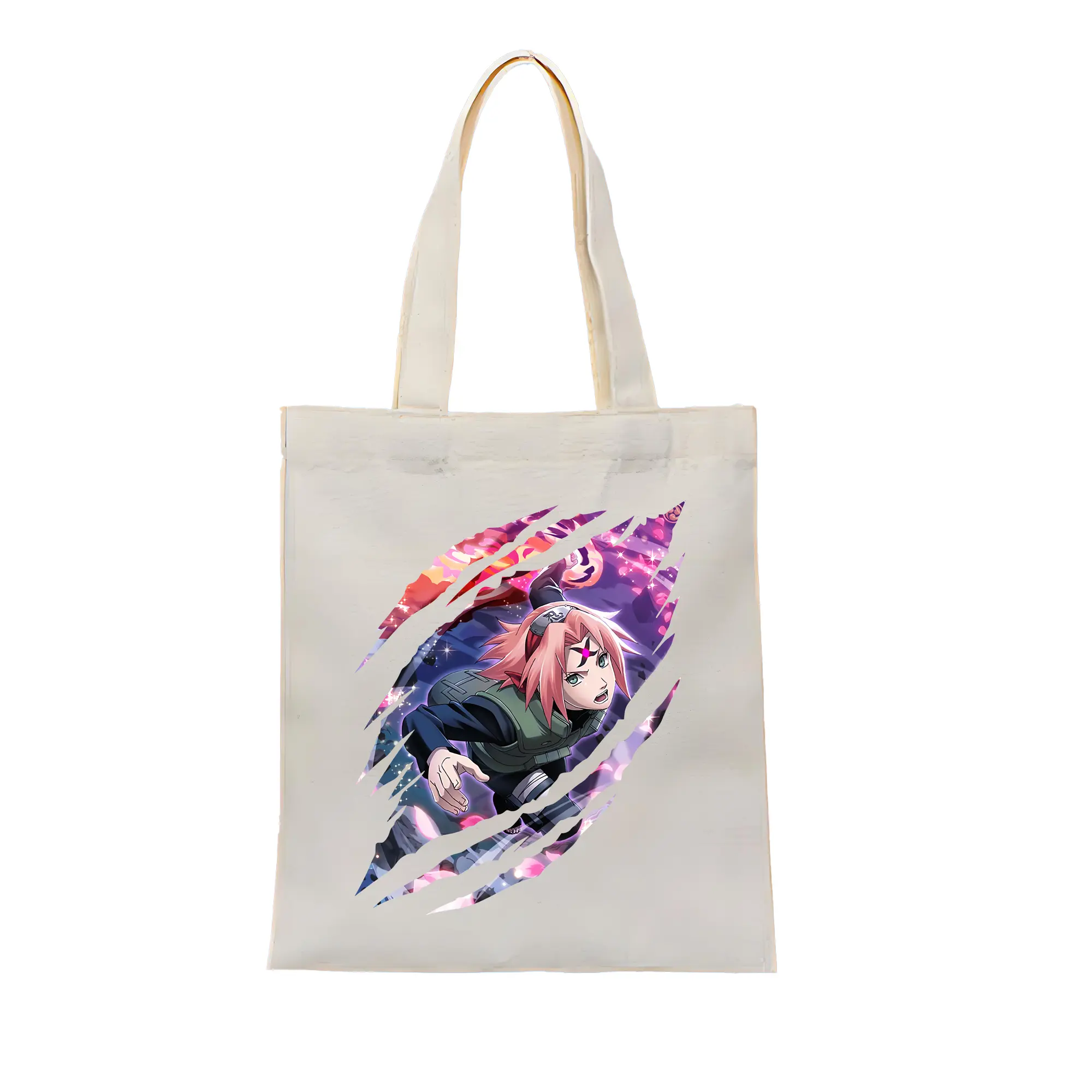 ナルト グッズ はるの さくら - 縦型キャンバス手提げバッグ(トートバッグ) ・ キャンバス素材 ・ ショッピング用 ・ 軽量 丈夫 お手入れ簡単