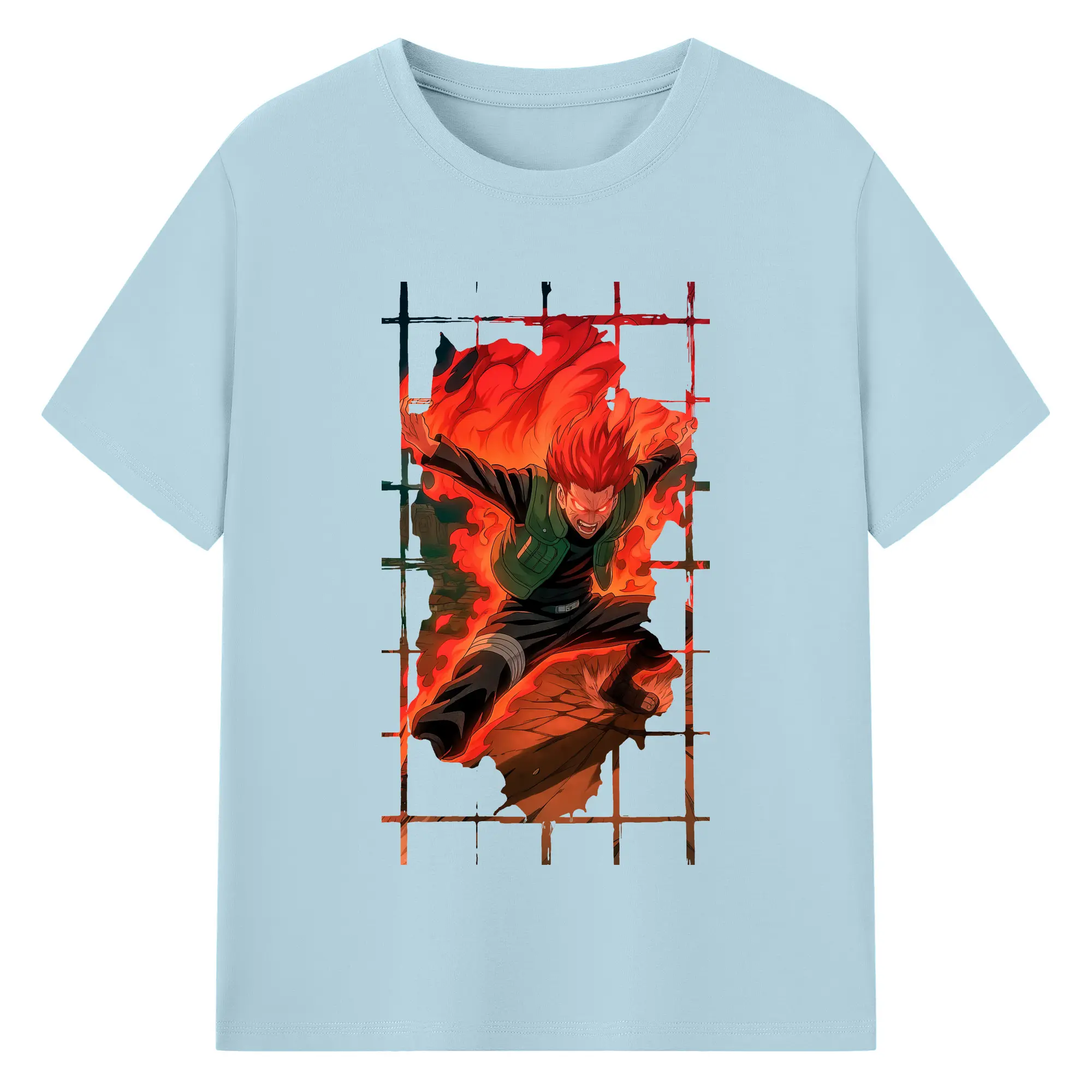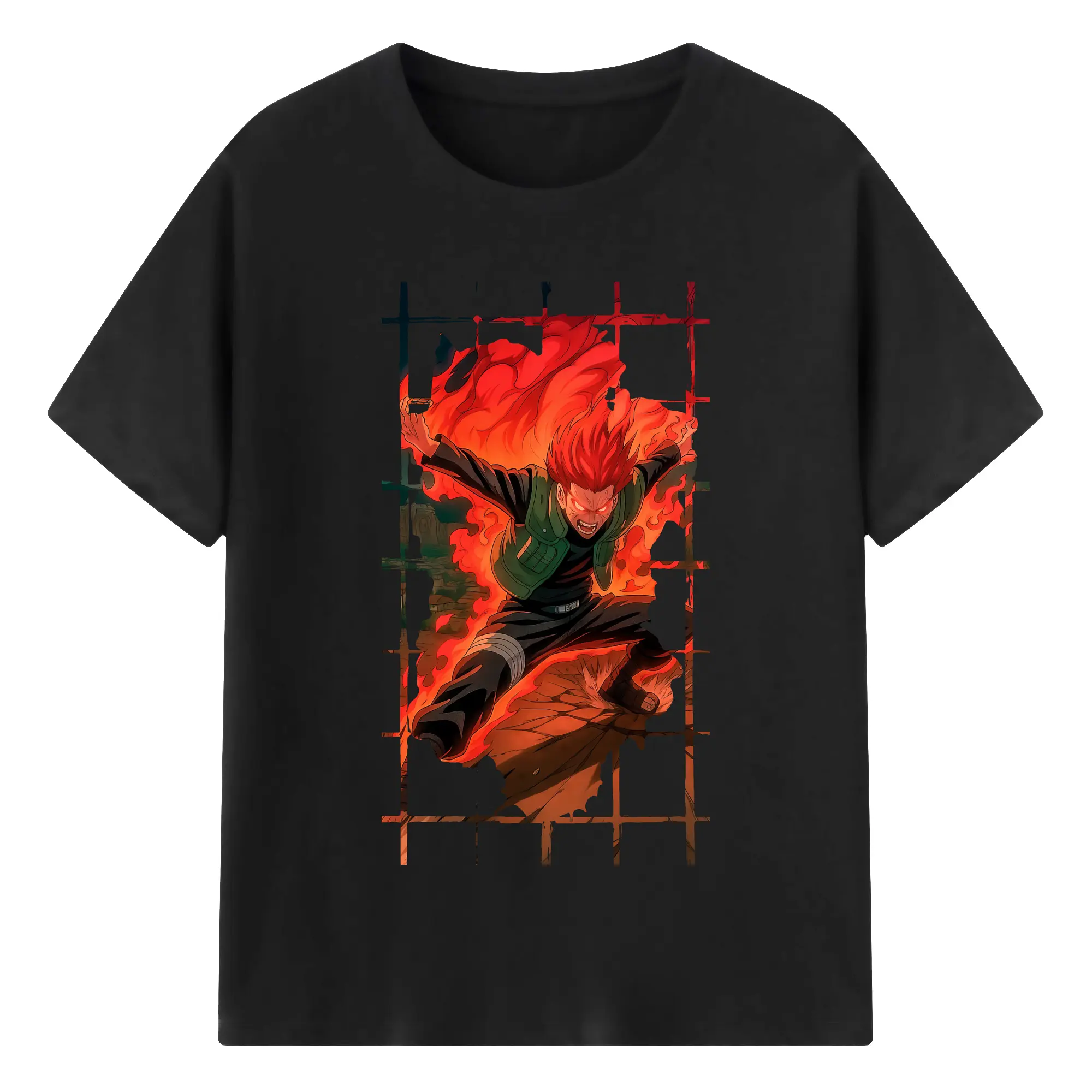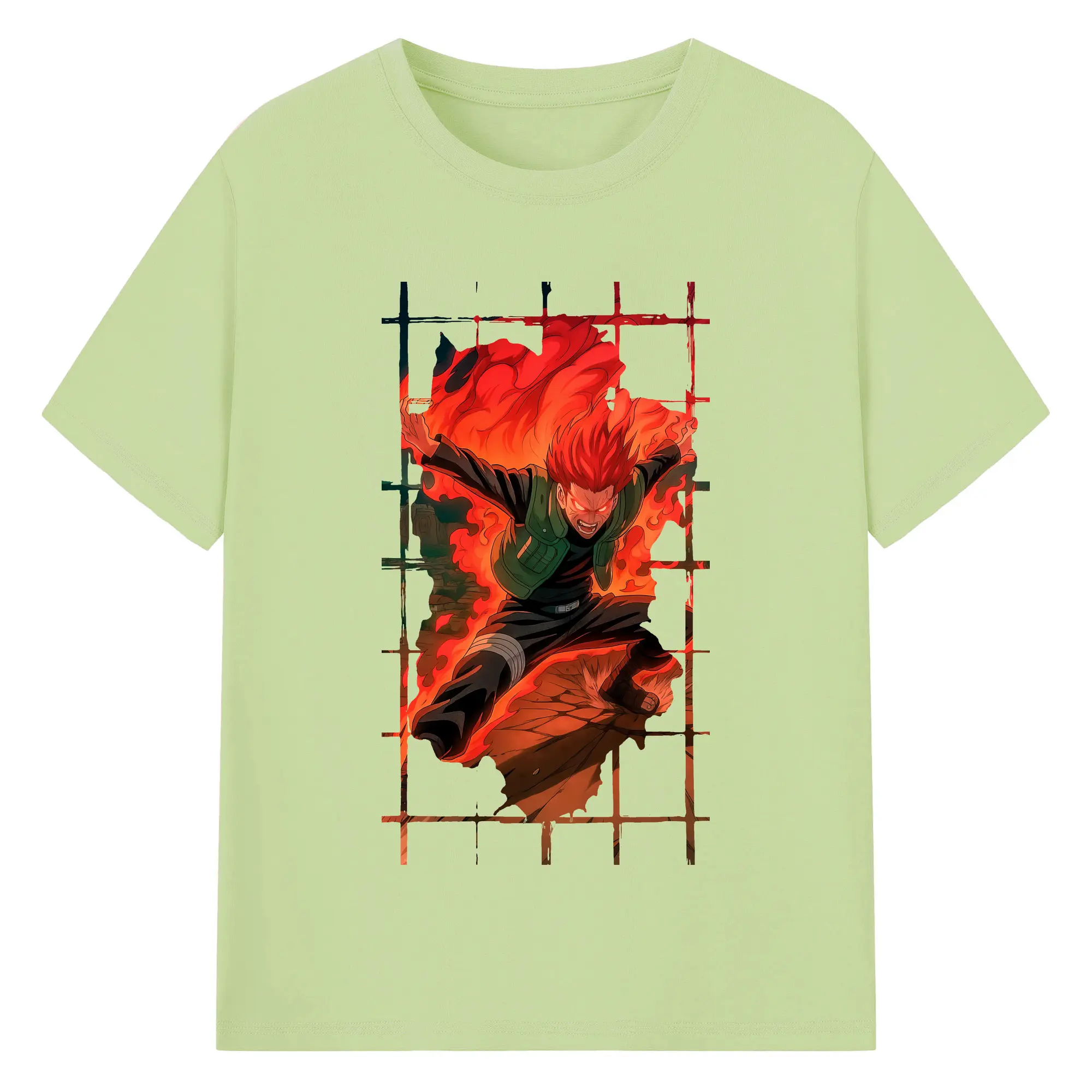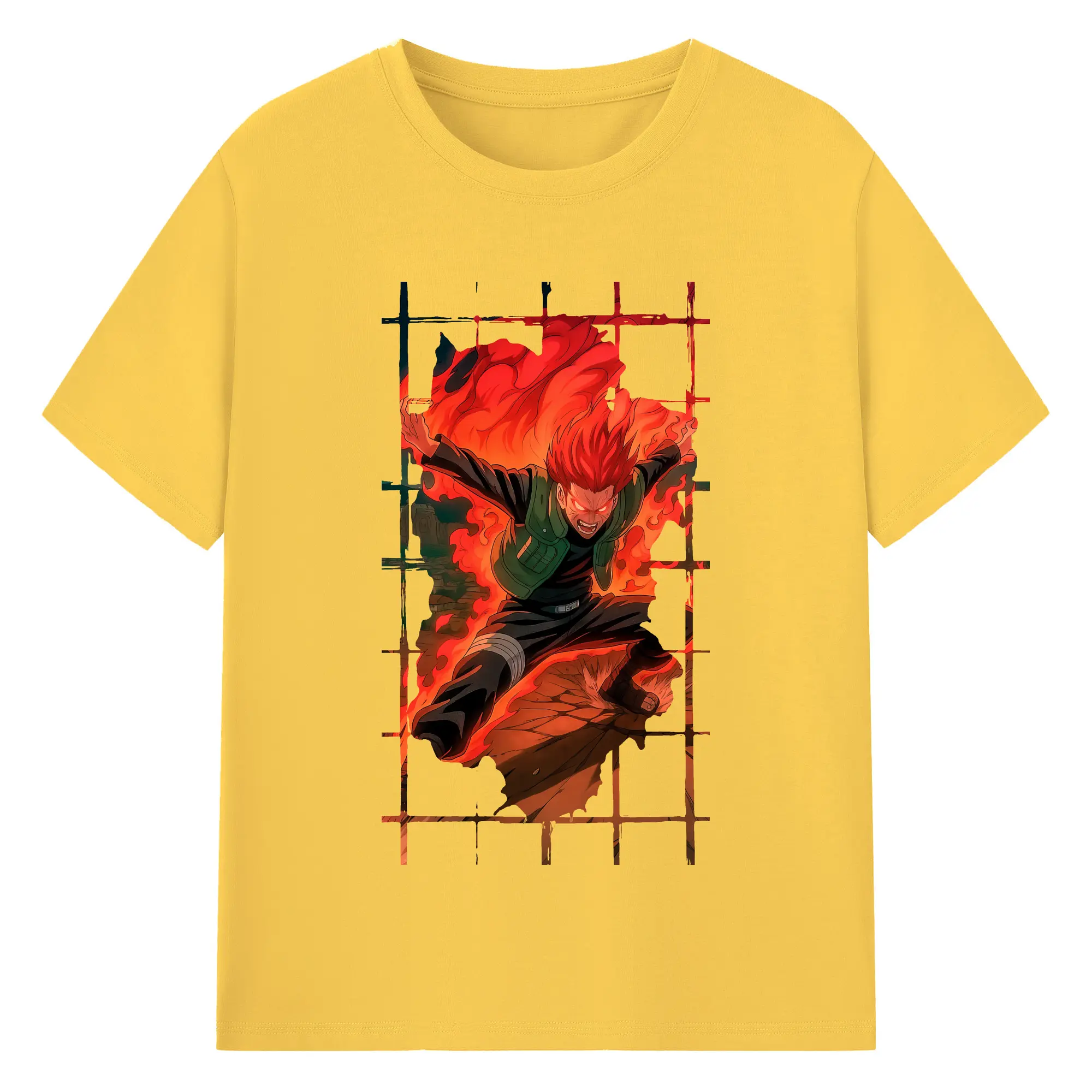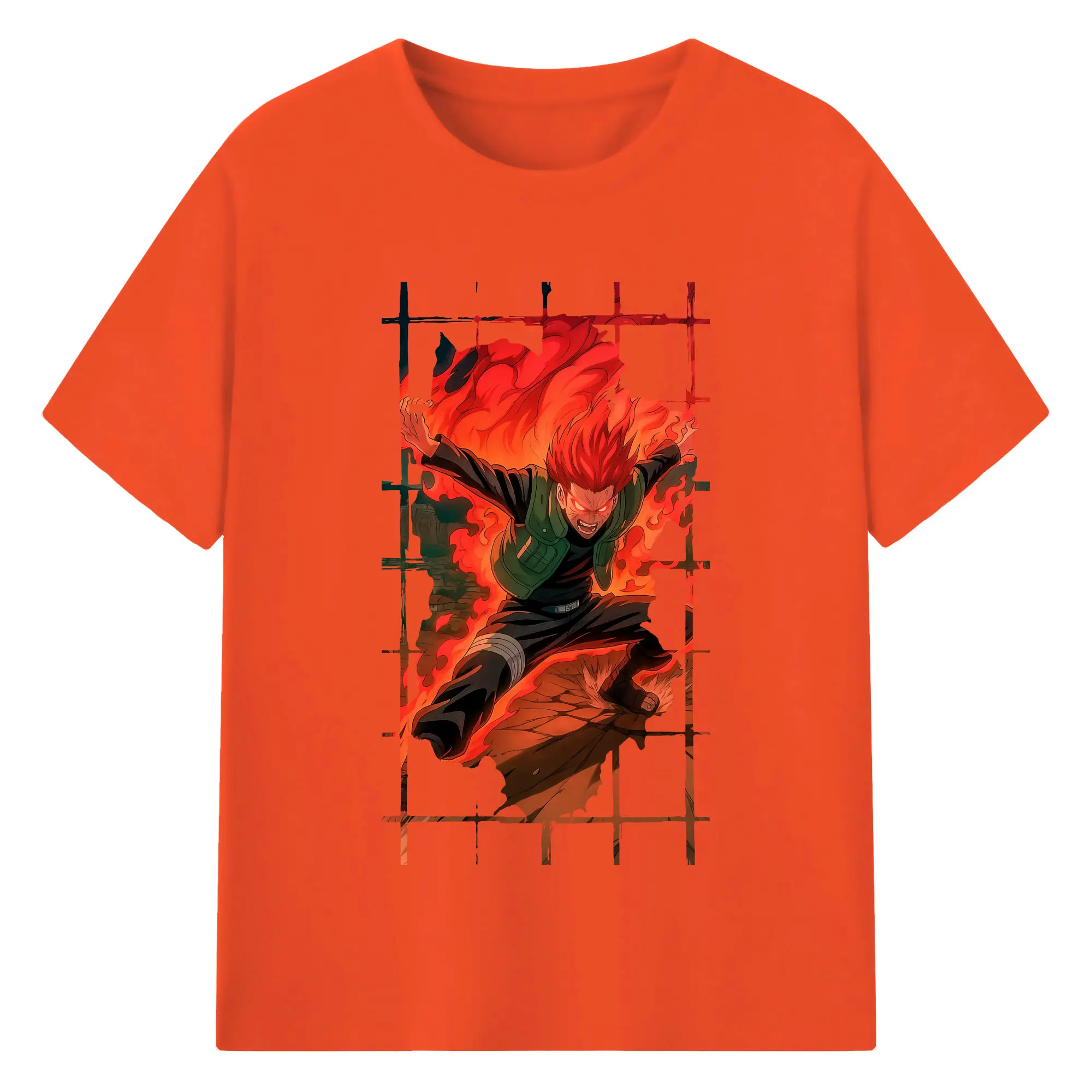ナルト グッズ マイト・ガイ - 綿100% 半袖Tシャツ ・ バックプリント ・ 快適 通気性 ・ 日常使い 散歩 スポーツ用