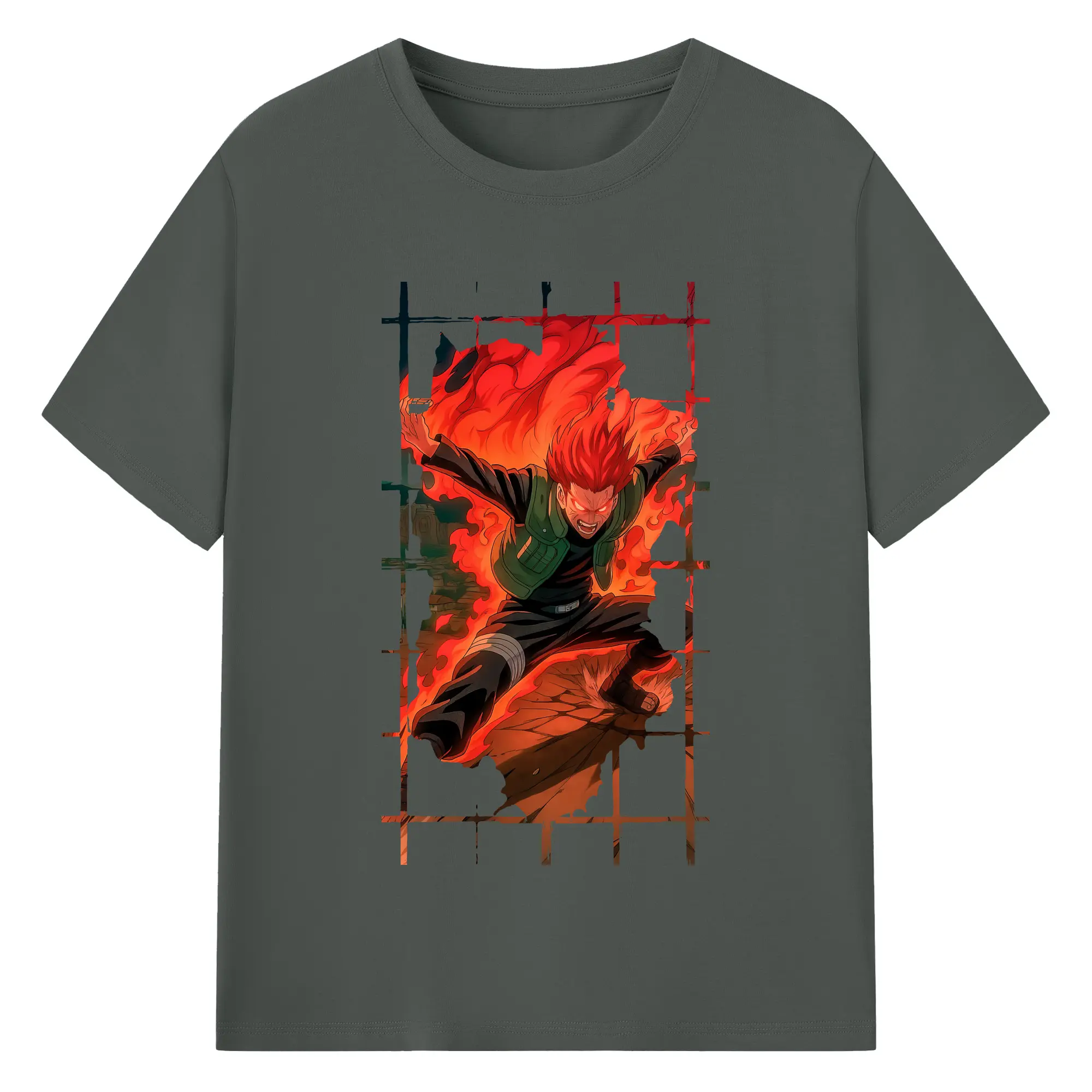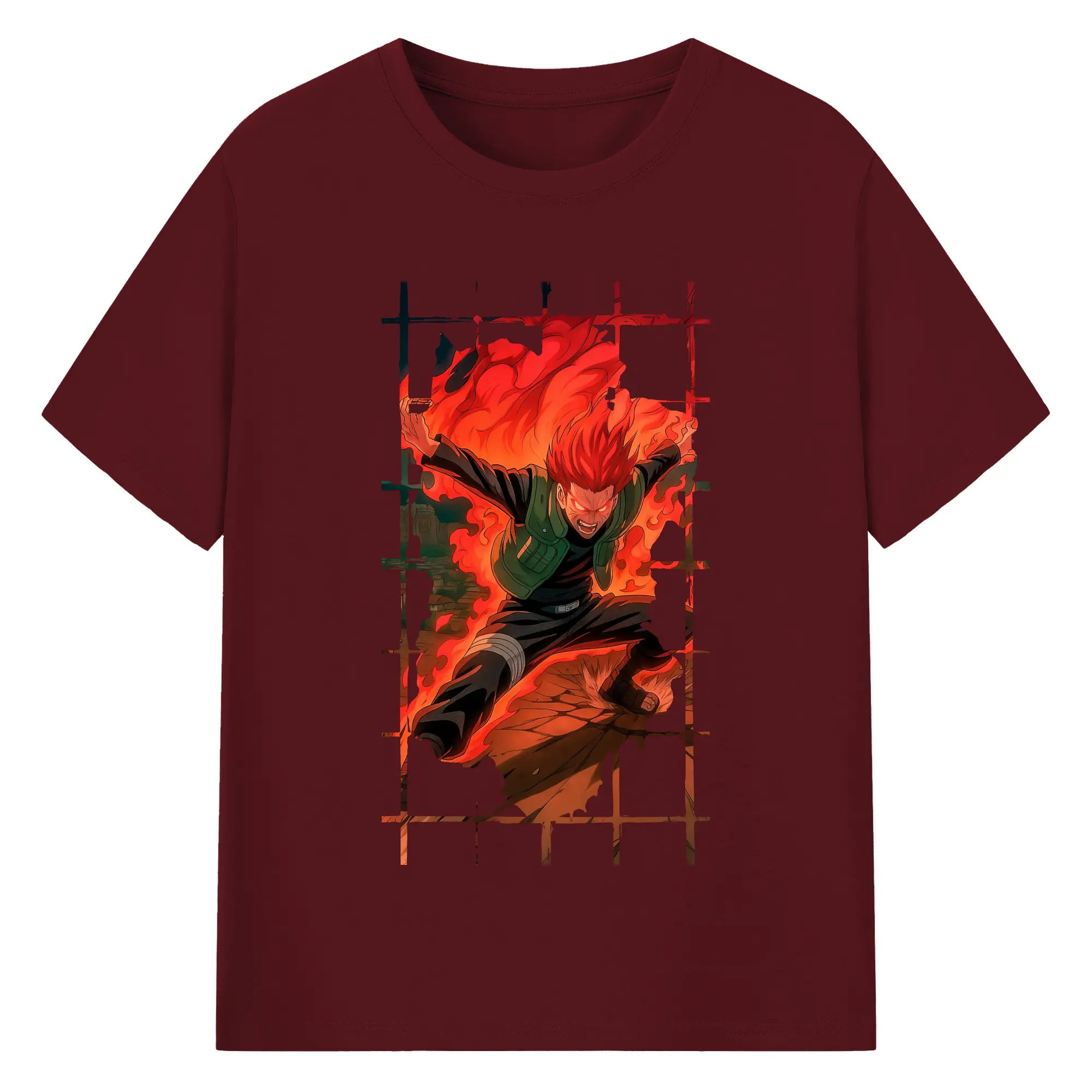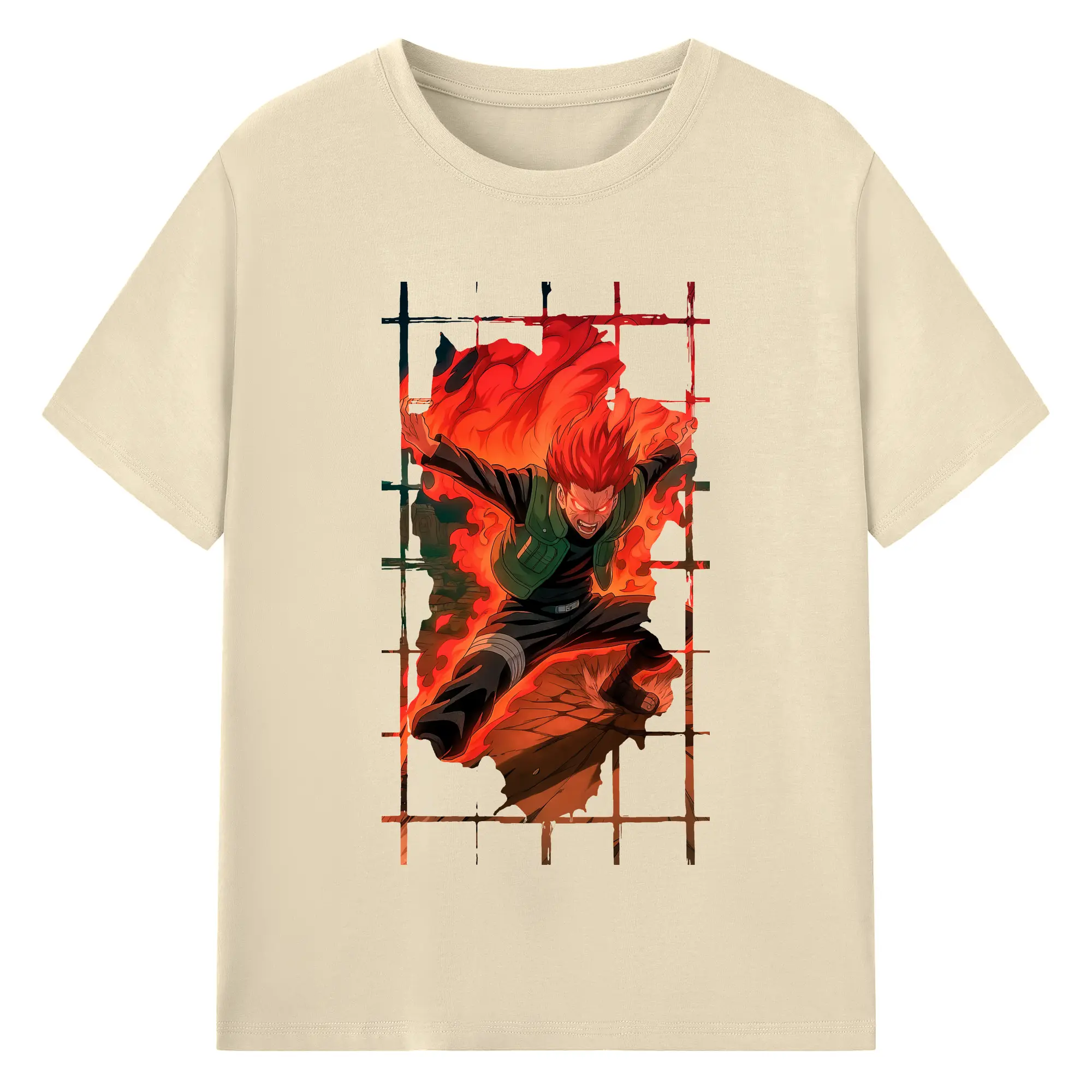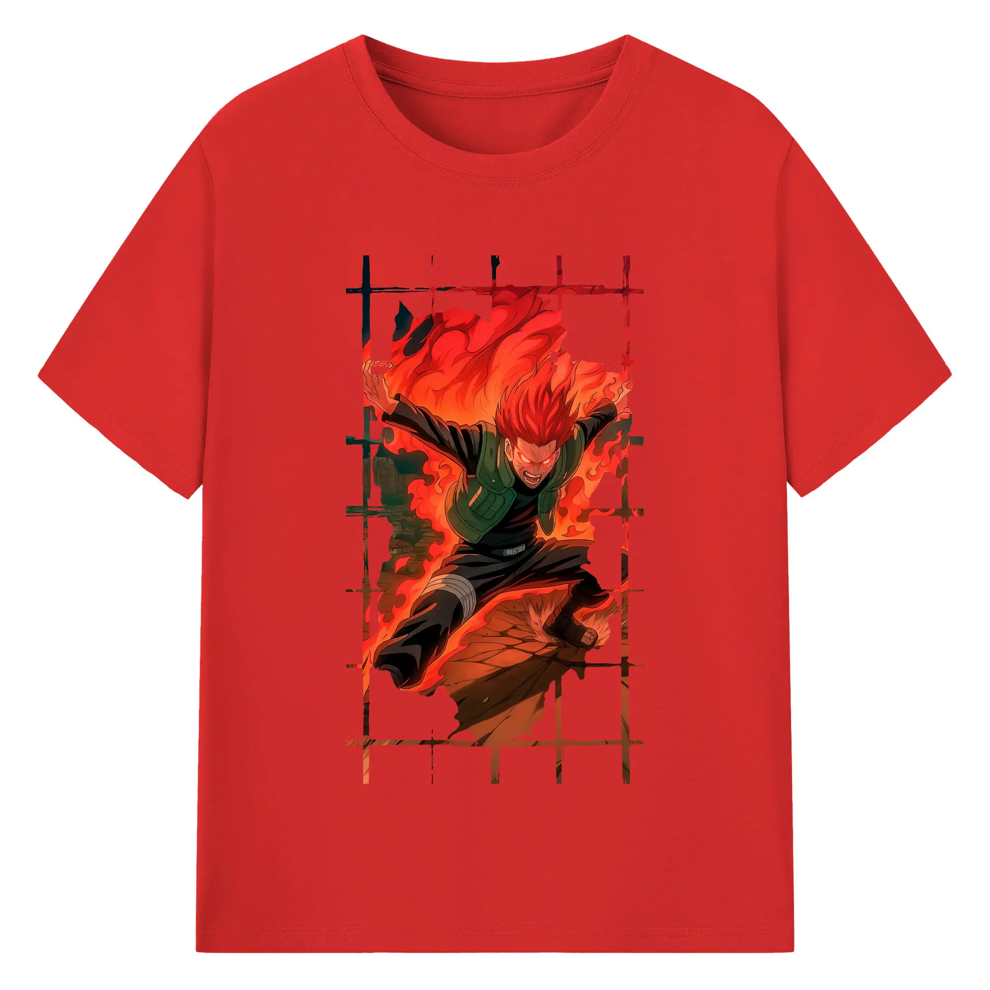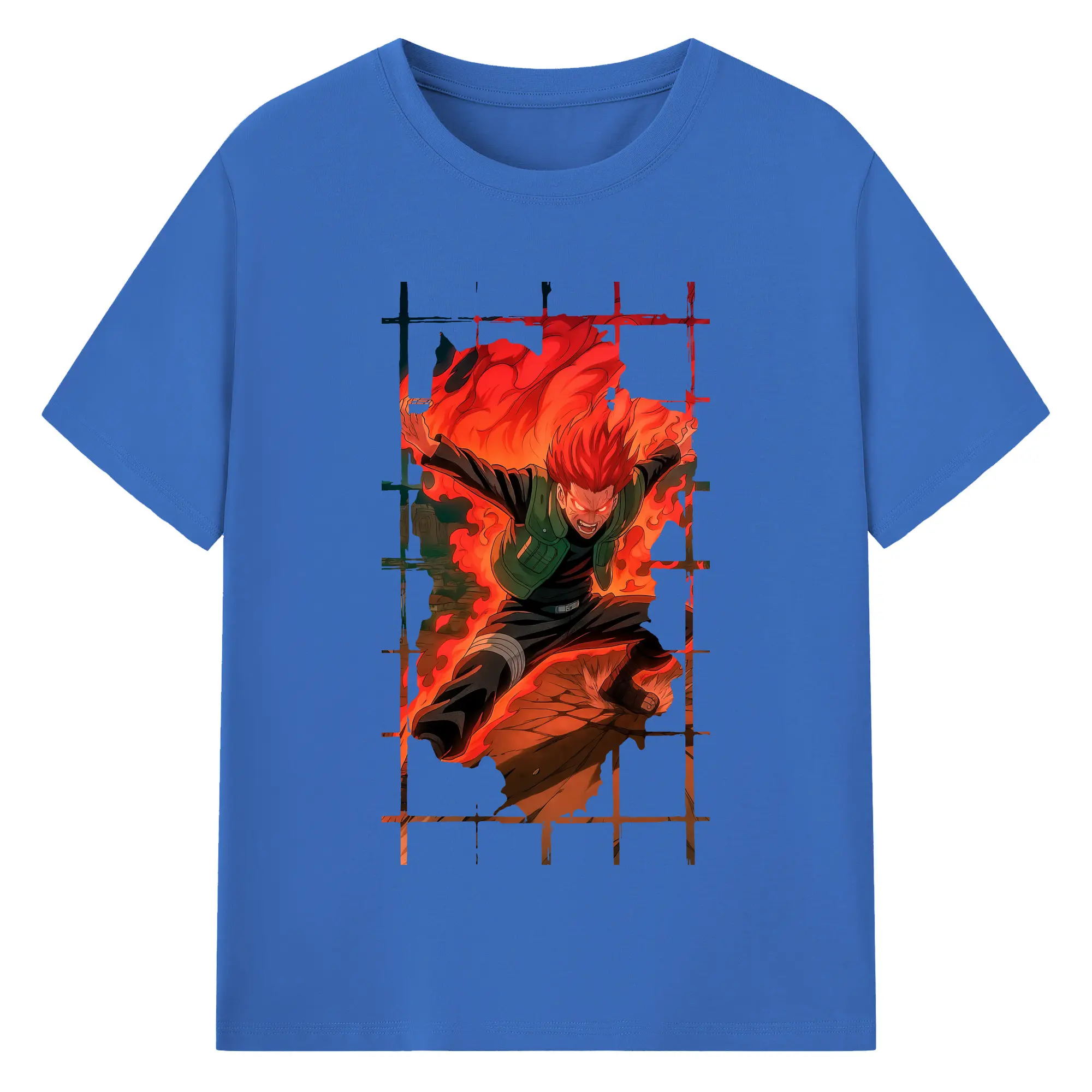 ナルト グッズ マイト・ガイ - 綿100% 半袖Tシャツ ・ バックプリント ・ 快適 通気性 ・ 日常使い 散歩 スポーツ用