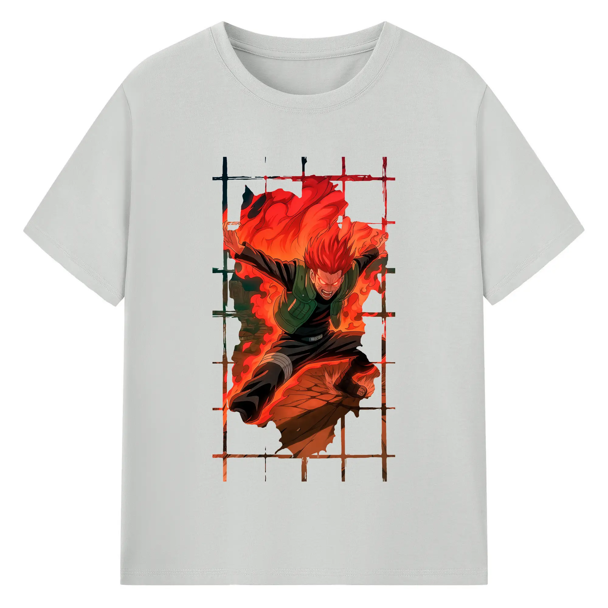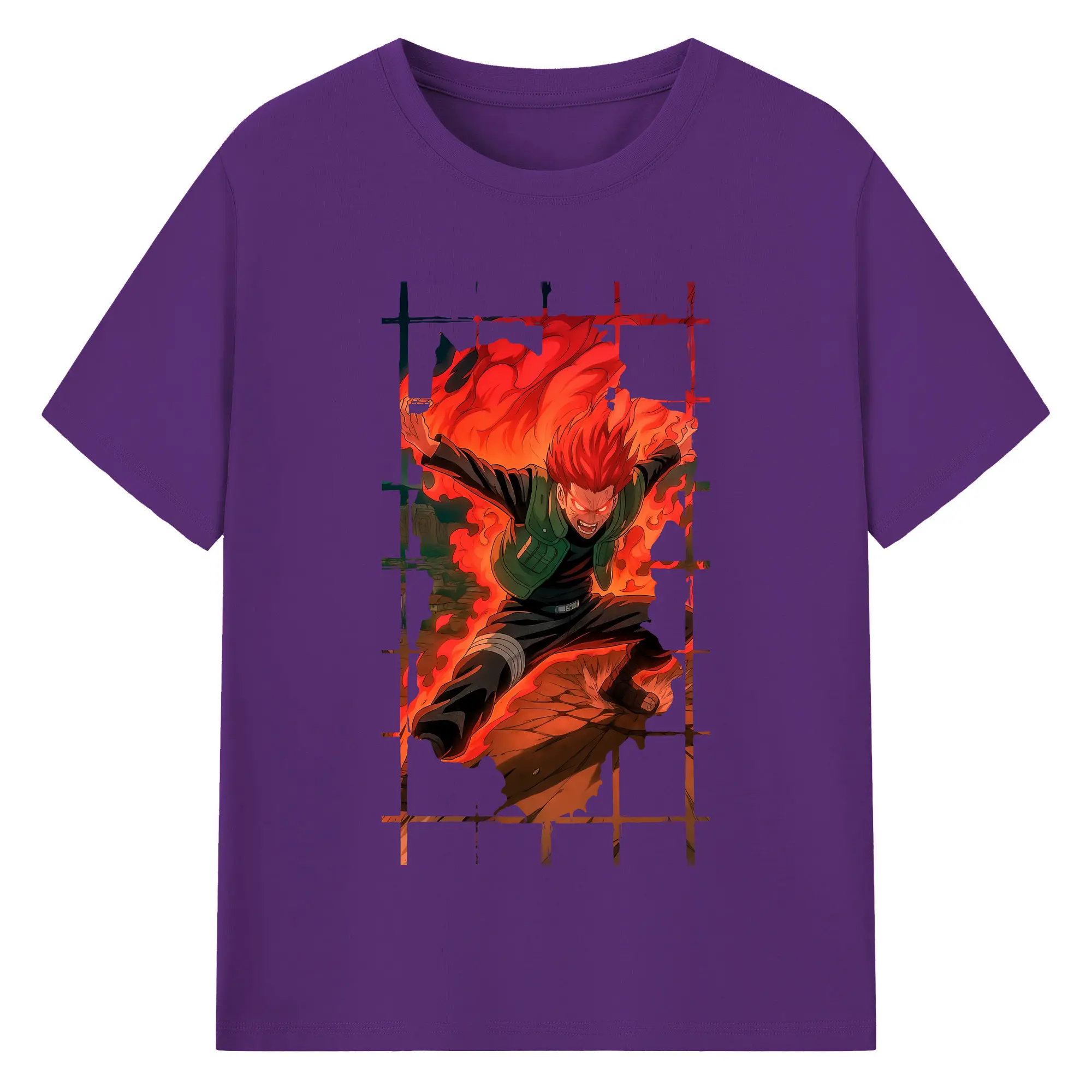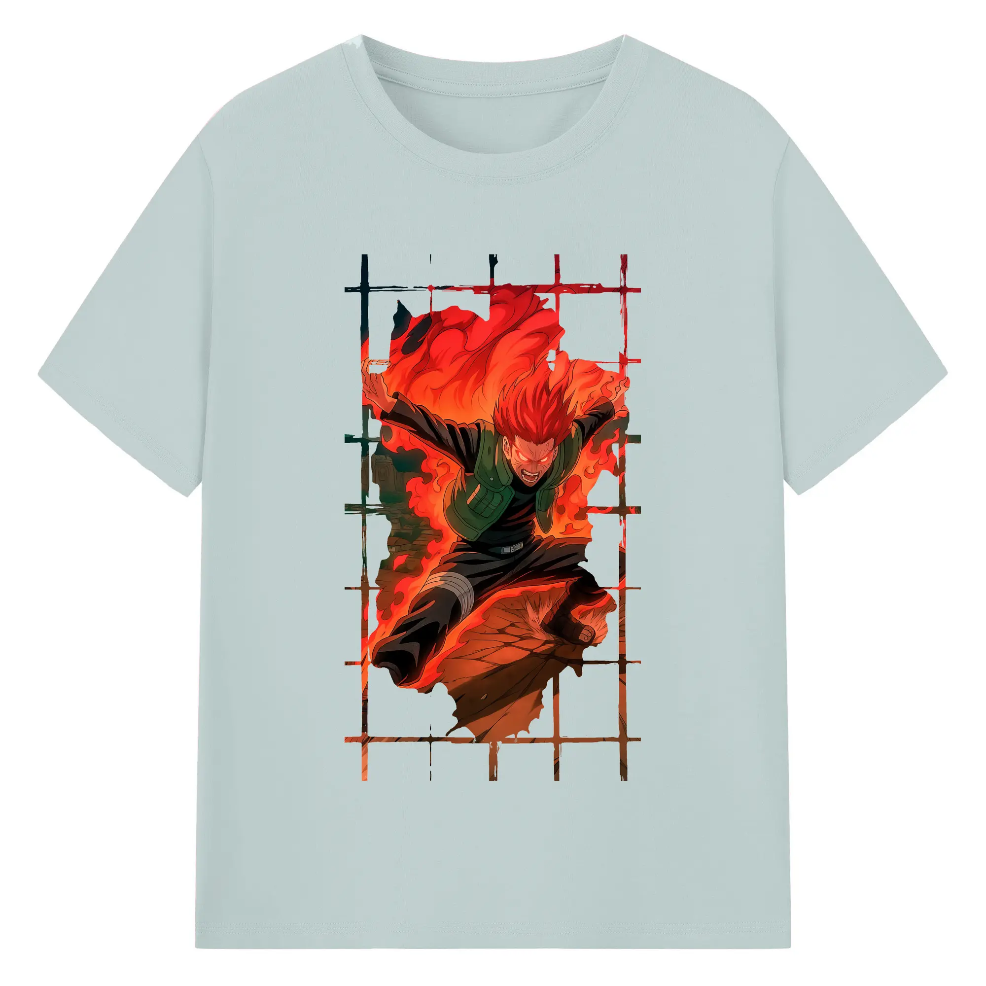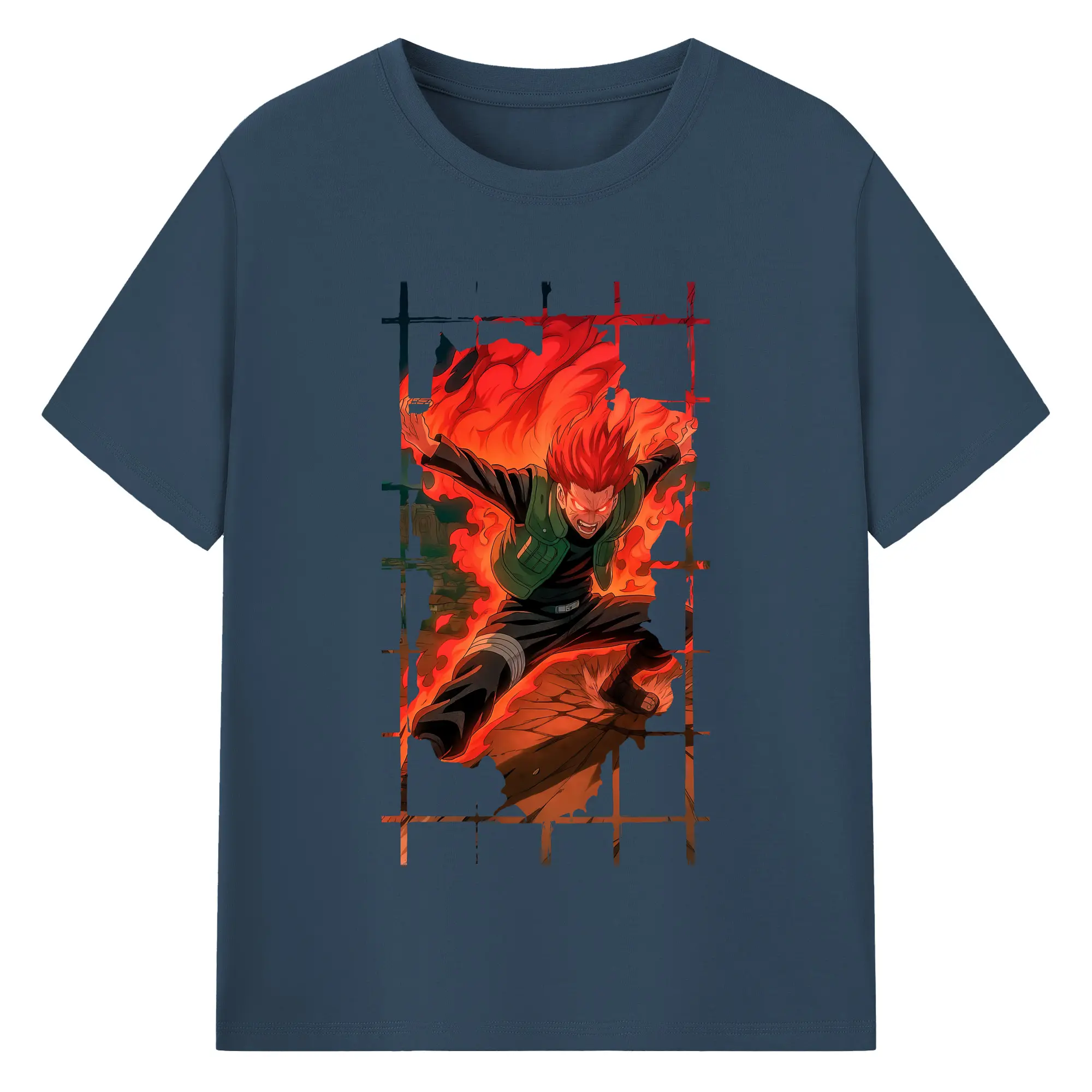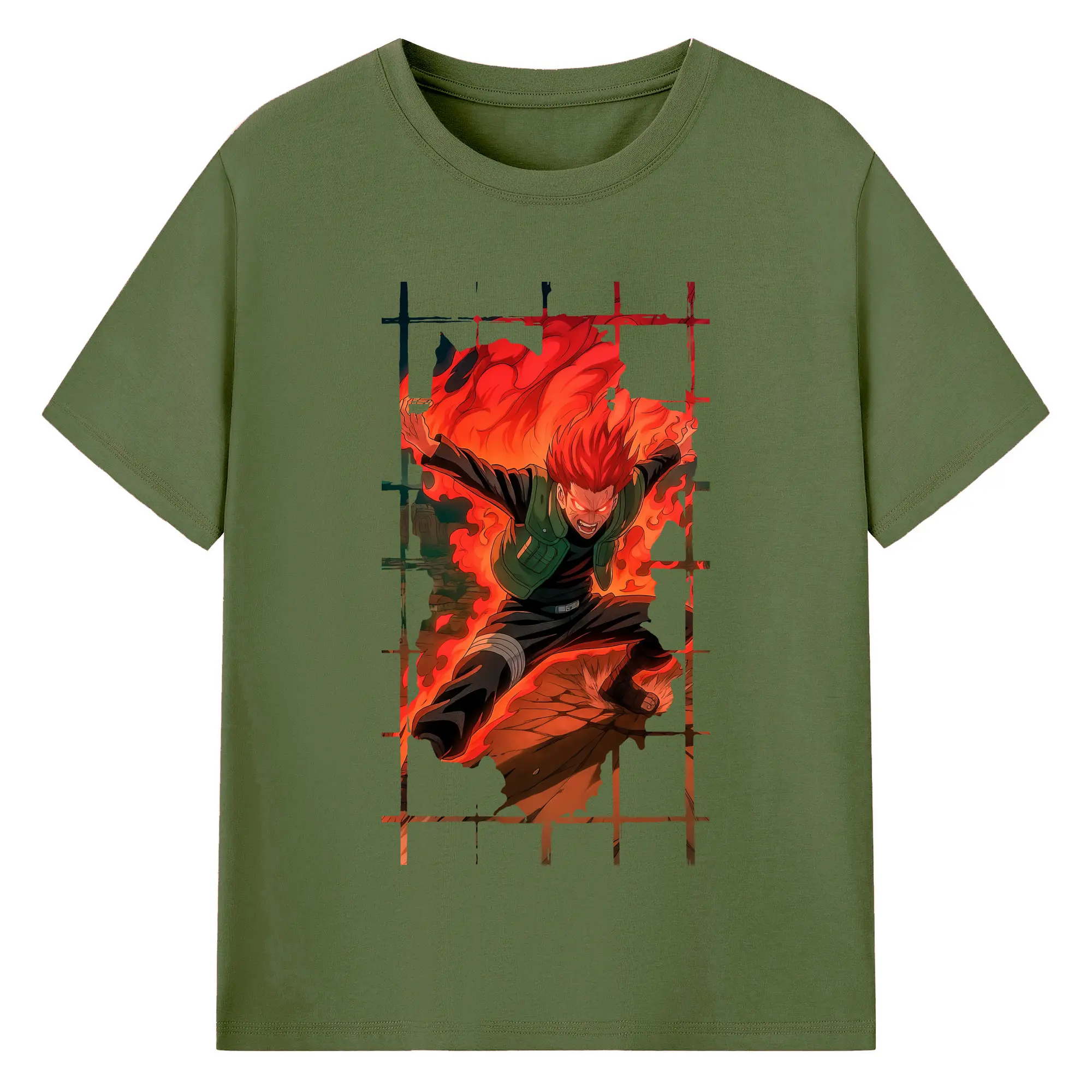 ナルト グッズ マイト・ガイ - 綿100% 半袖Tシャツ ・ バックプリント ・ 快適 通気性 ・ 日常使い 散歩 スポーツ用