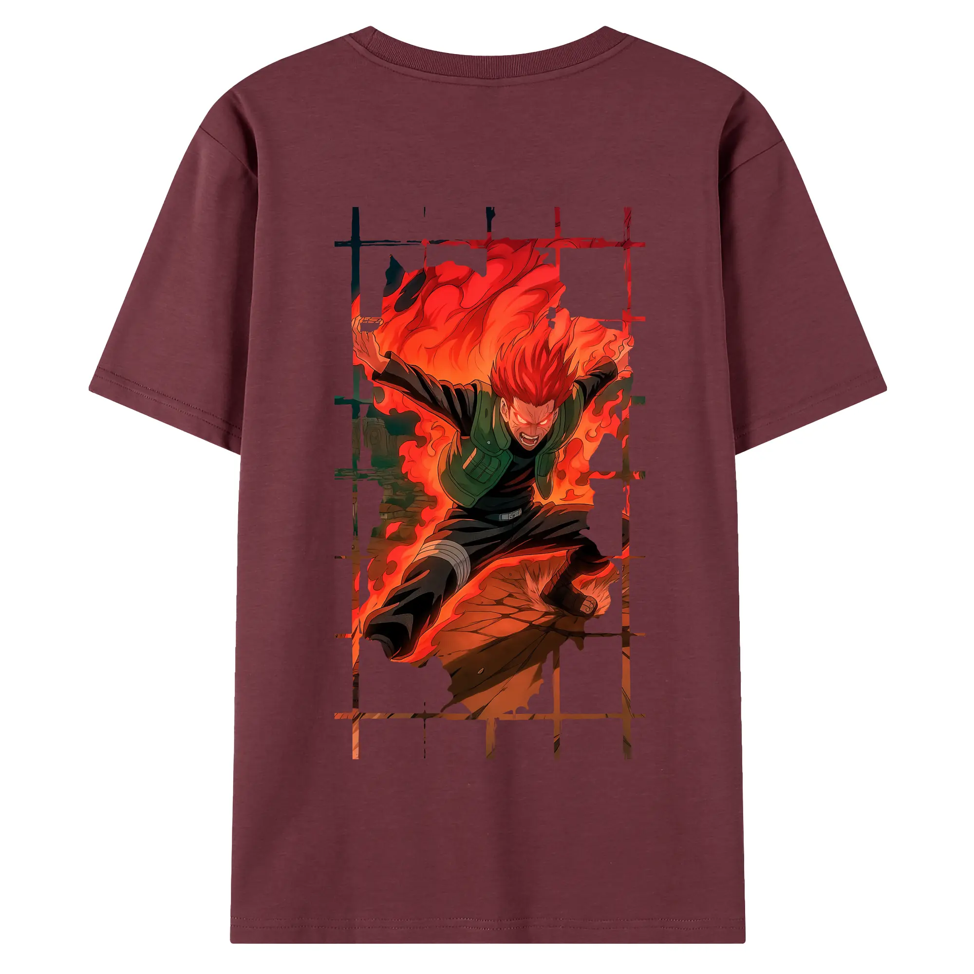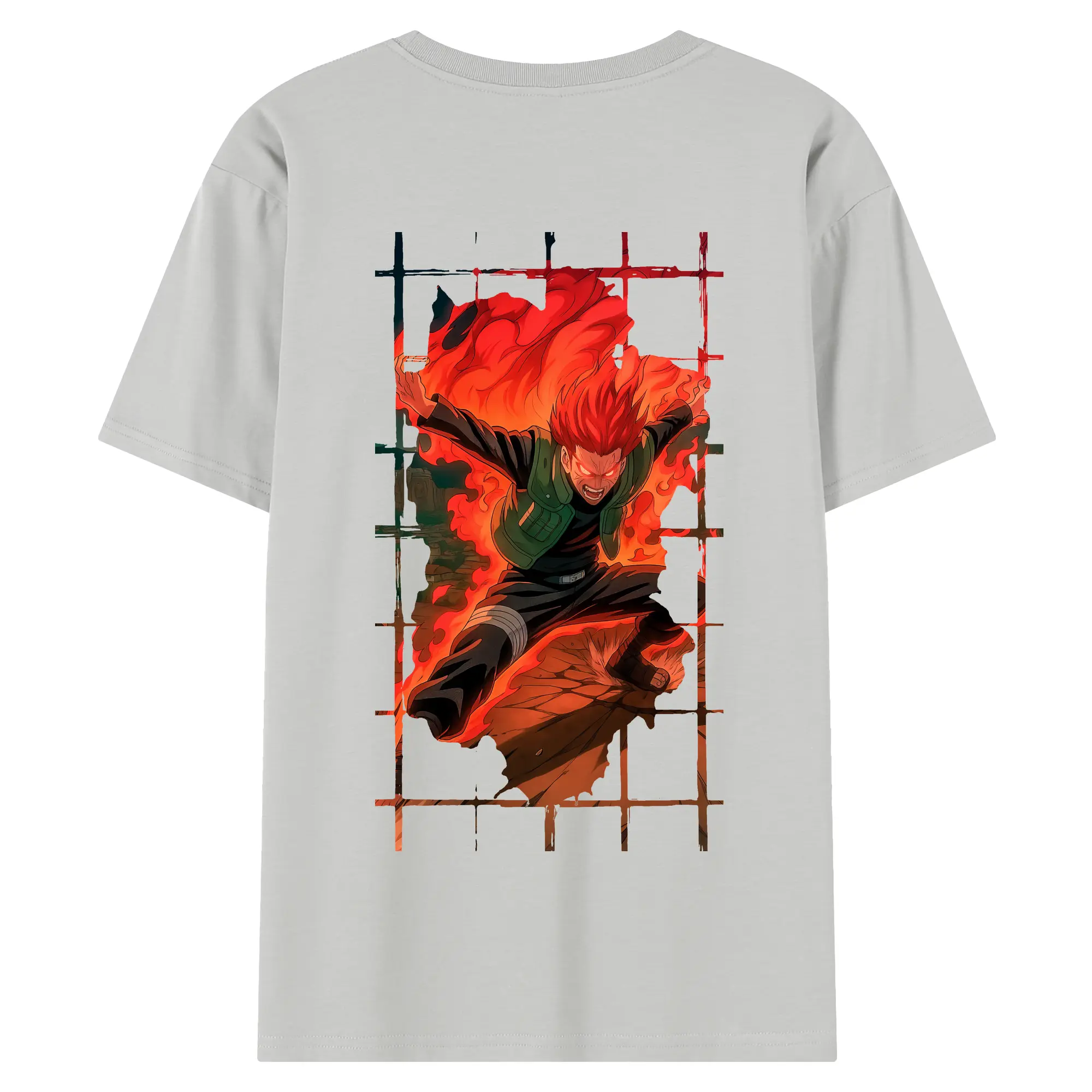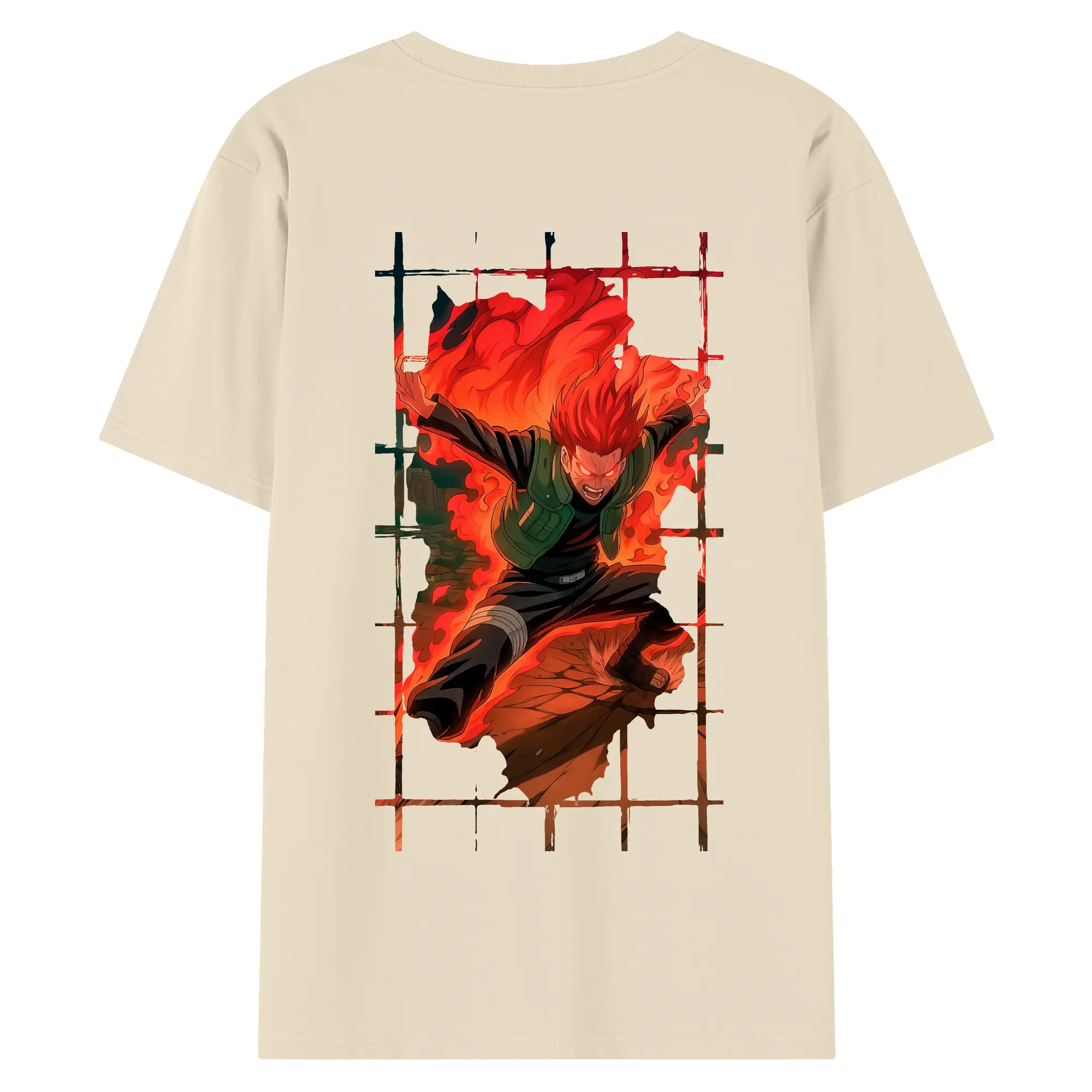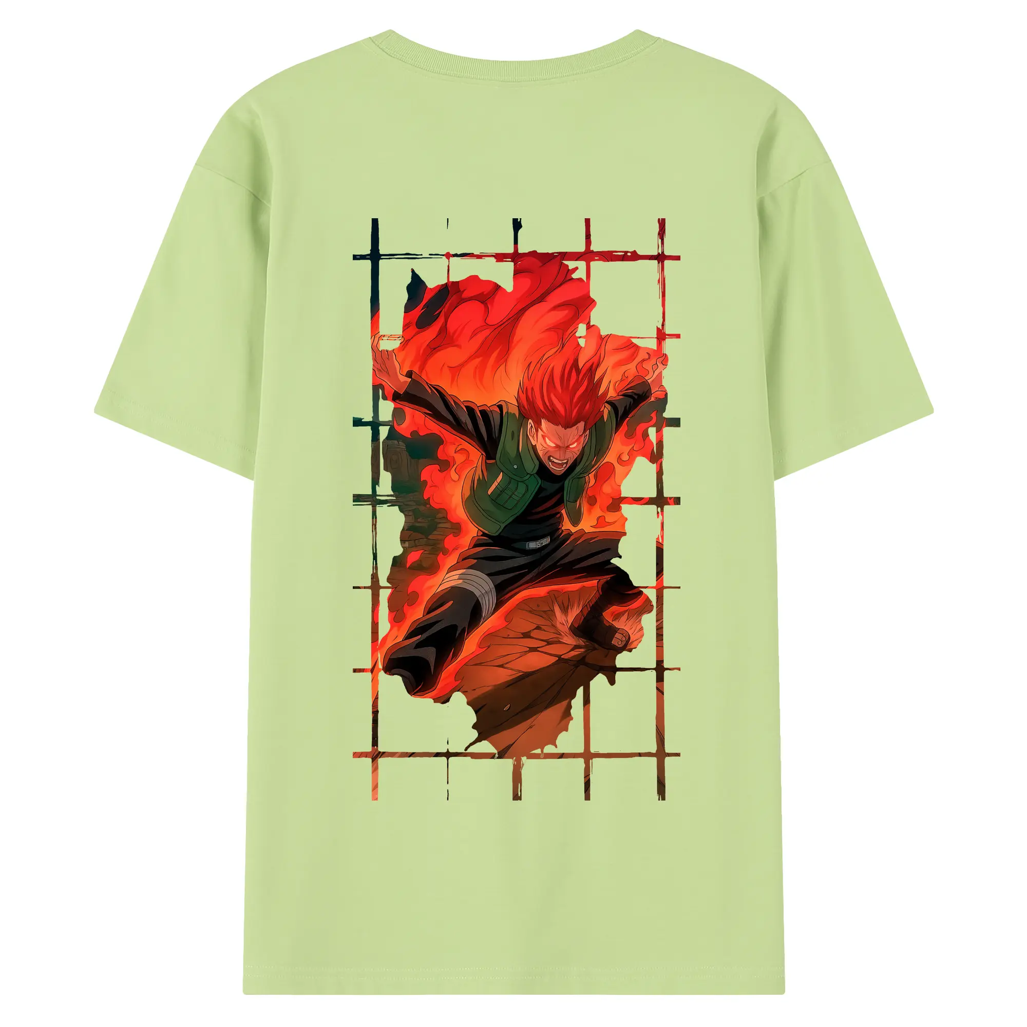 ナルト グッズ マイト・ガイ - 綿100% ヴィンテージ風 半袖Tシャツ ・ 背面プリント ・ 柔らか肌触り ・ 通気性 快適 ・ スポーツ カジュアル 外出用