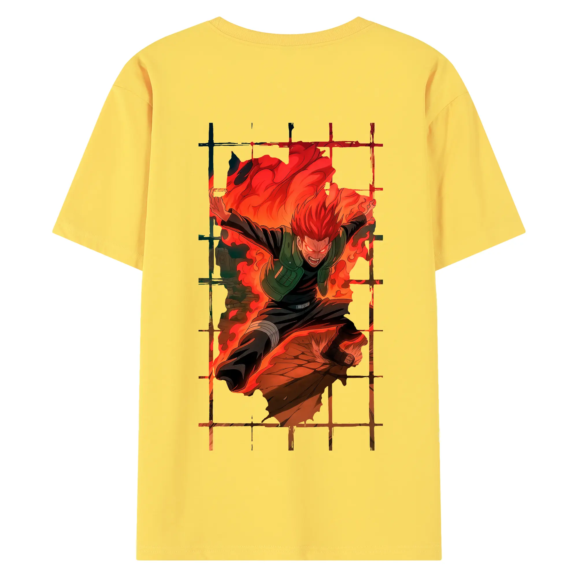 ナルト グッズ マイト・ガイ - 綿100% 半袖Tシャツ ・ フロントプリント ・ 快適 通気性 ・ 日常使い 散歩 スポーツ用
