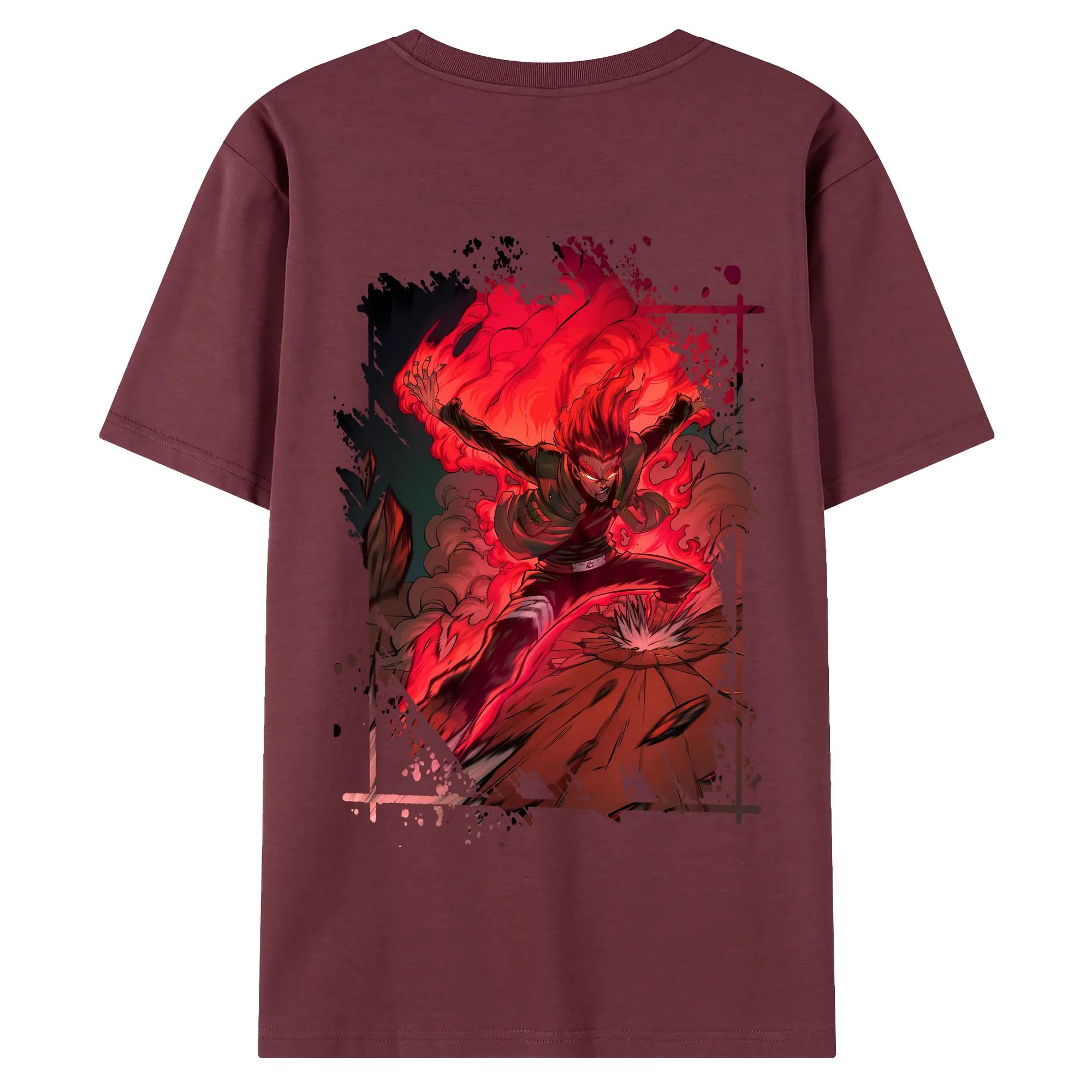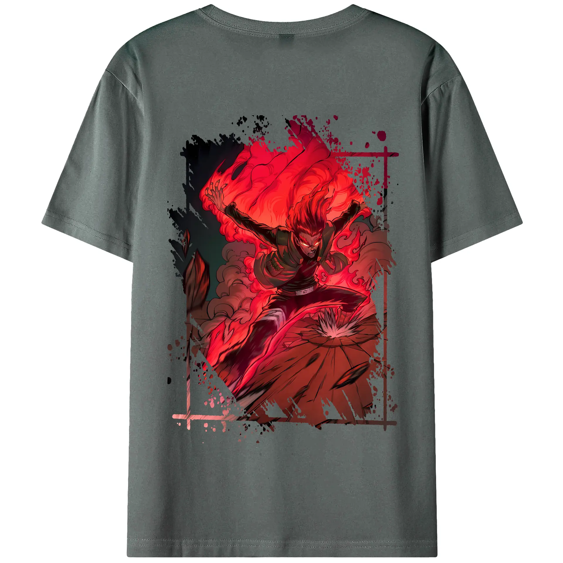 ナルト グッズ マイト・ガイ - 綿100% ヴィンテージ風 半袖Tシャツ ・ 背面プリント ・ 柔らか肌触り ・ 通気性 快適 ・ スポーツ カジュアル 外出用