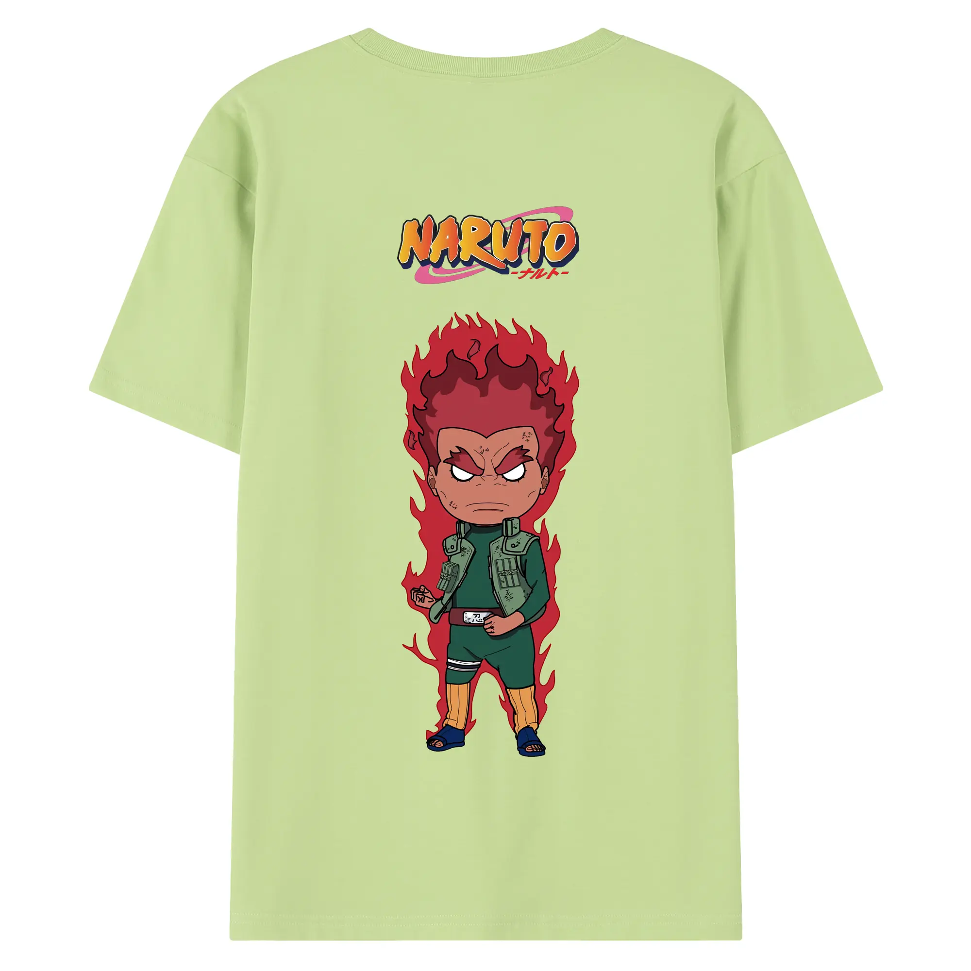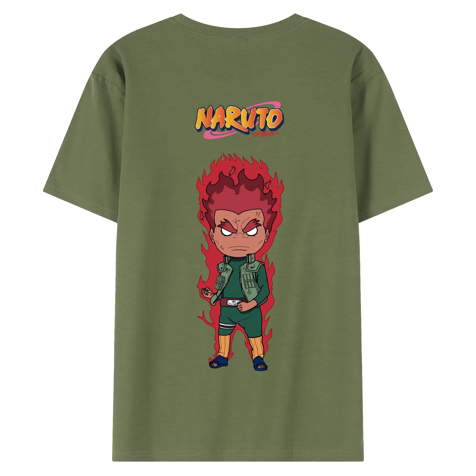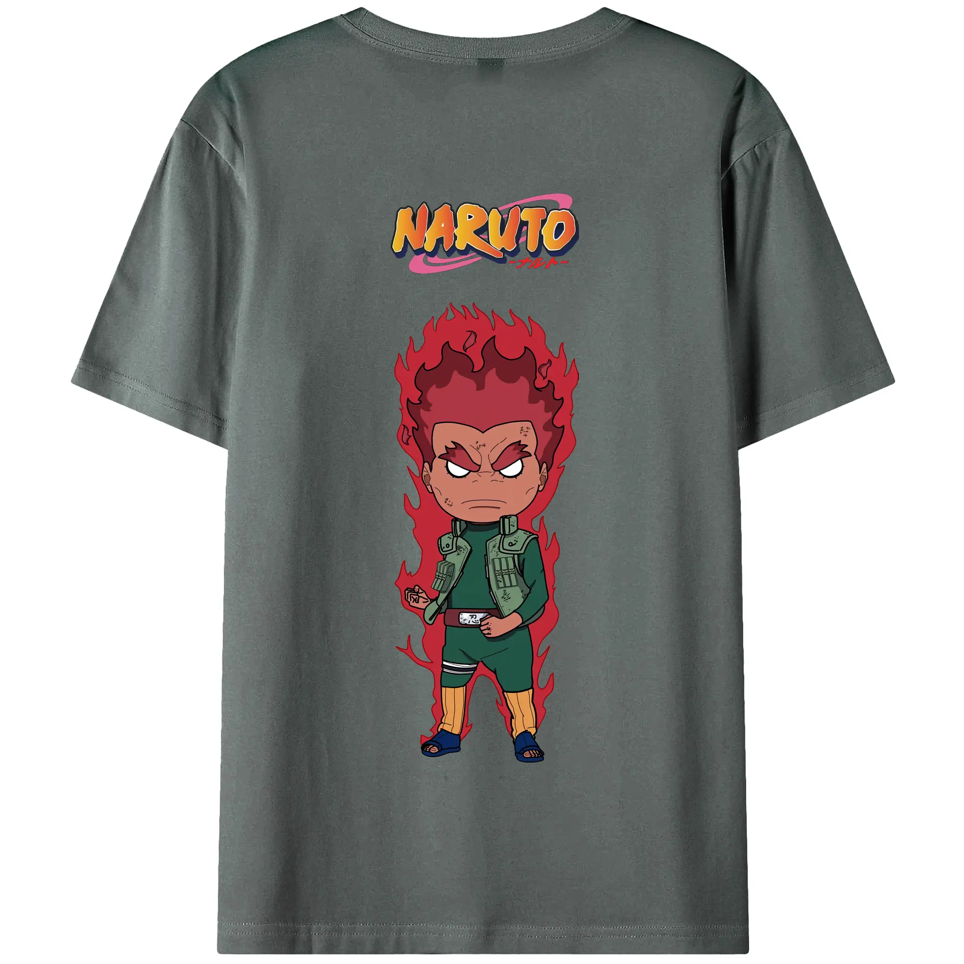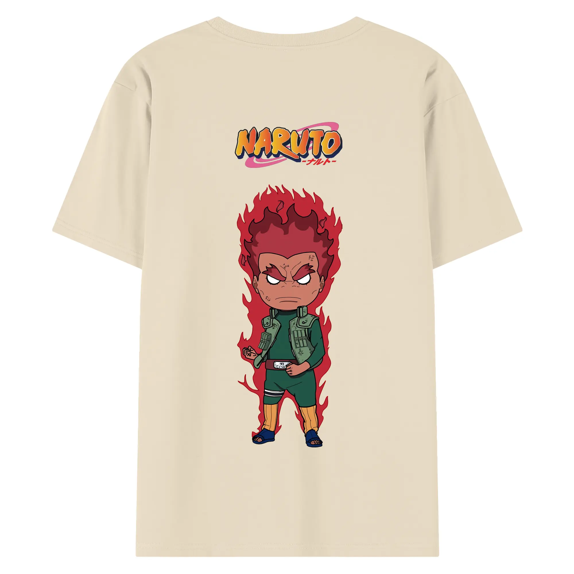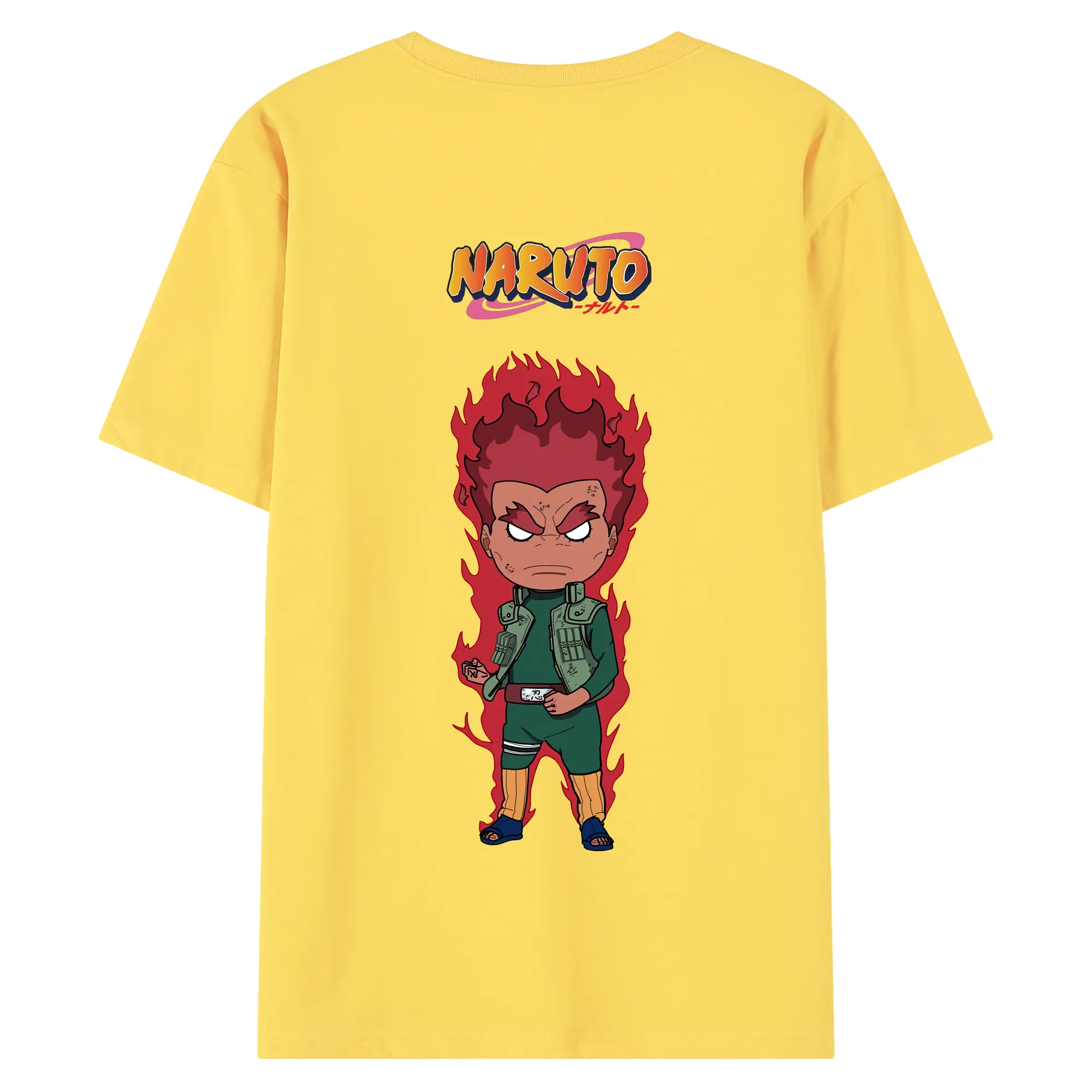 ナルト グッズ マイト・ガイ - 綿100% ヴィンテージ風 半袖Tシャツ ・ 背面プリント ・ 柔らか肌触り ・ 通気性 快適 ・ スポーツ カジュアル 外出用