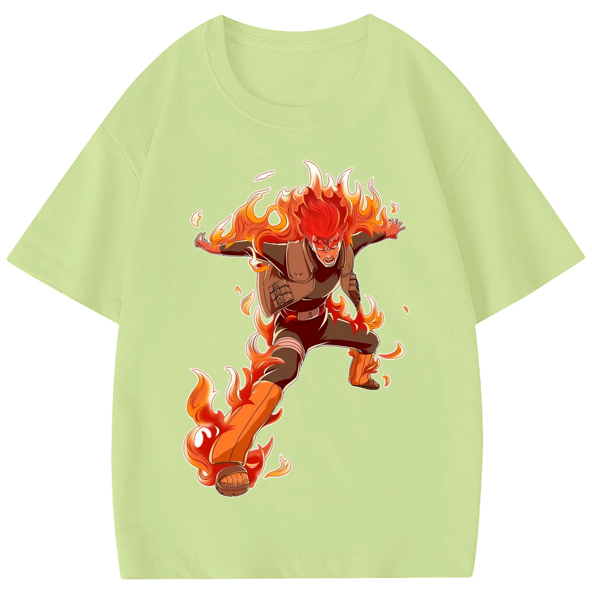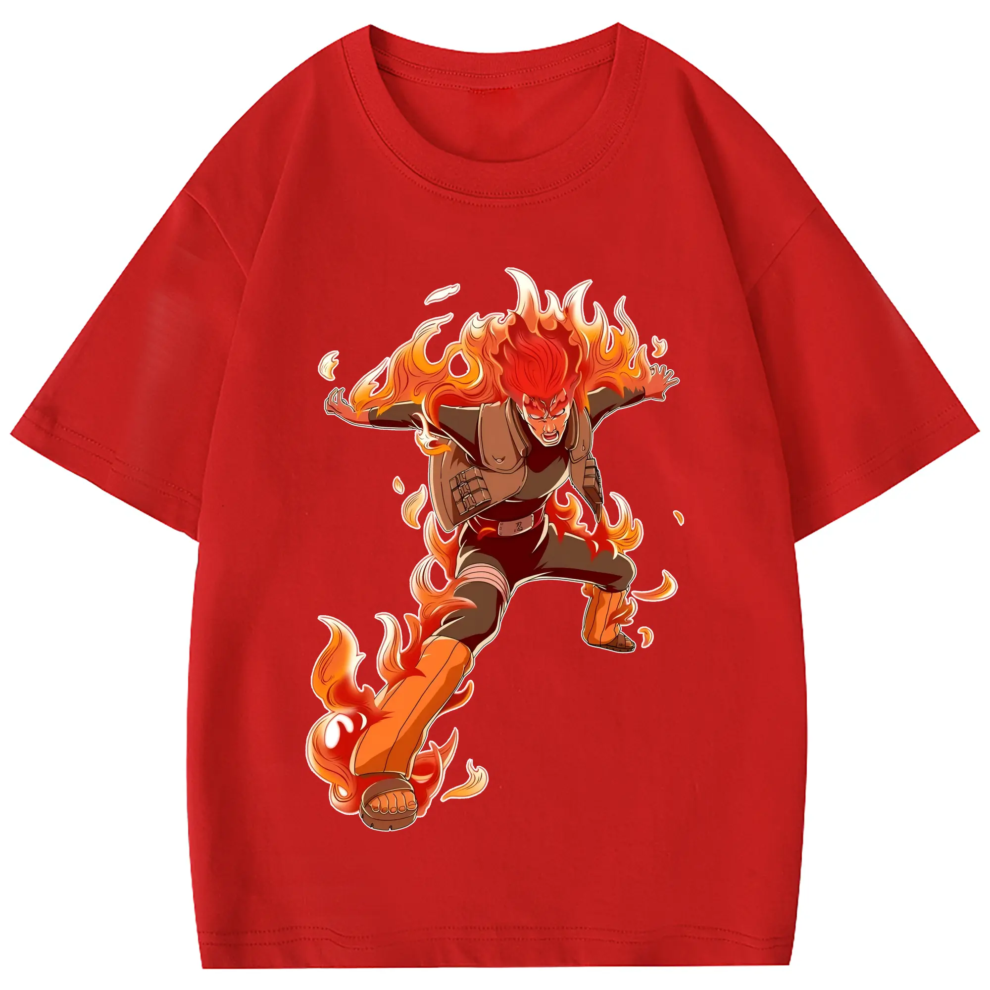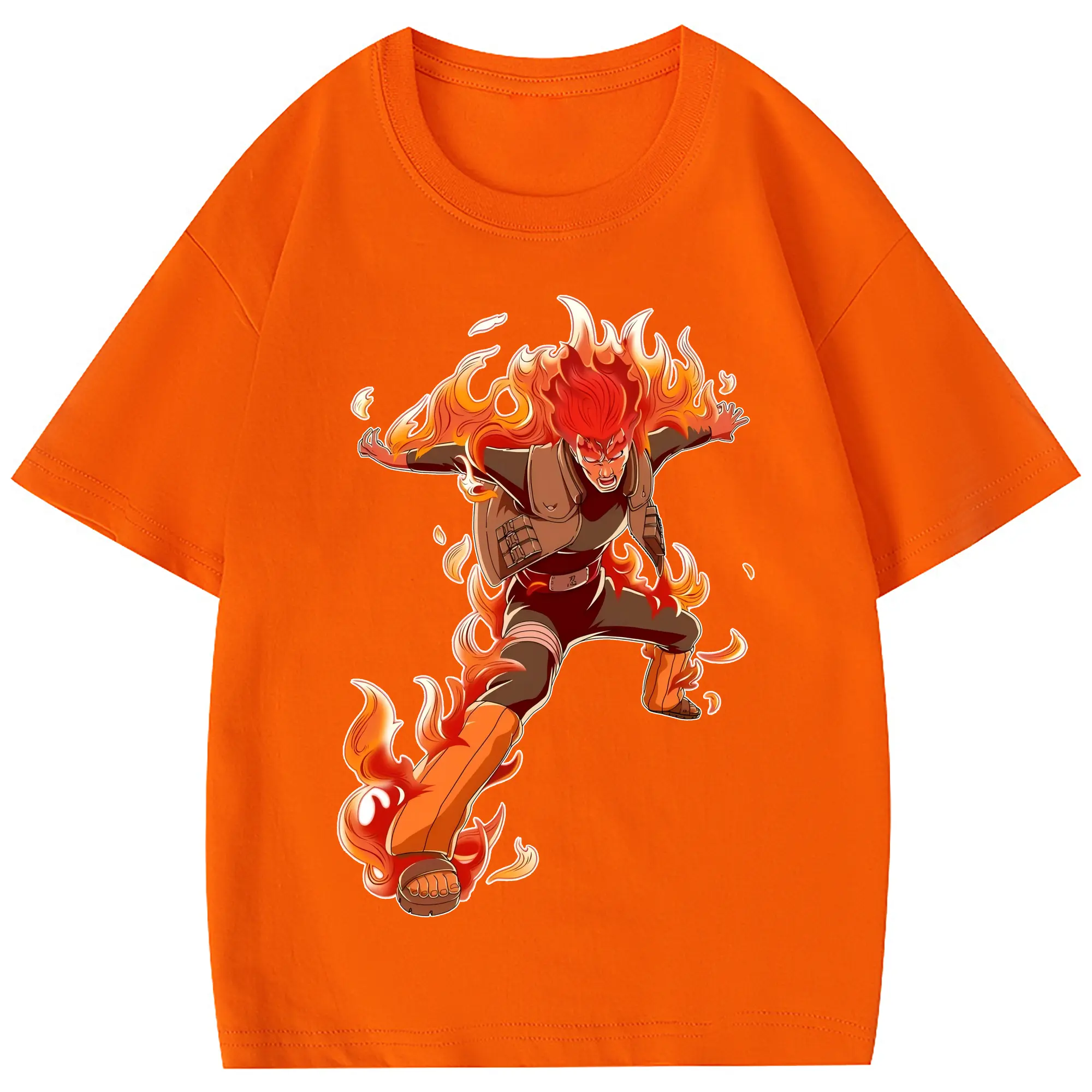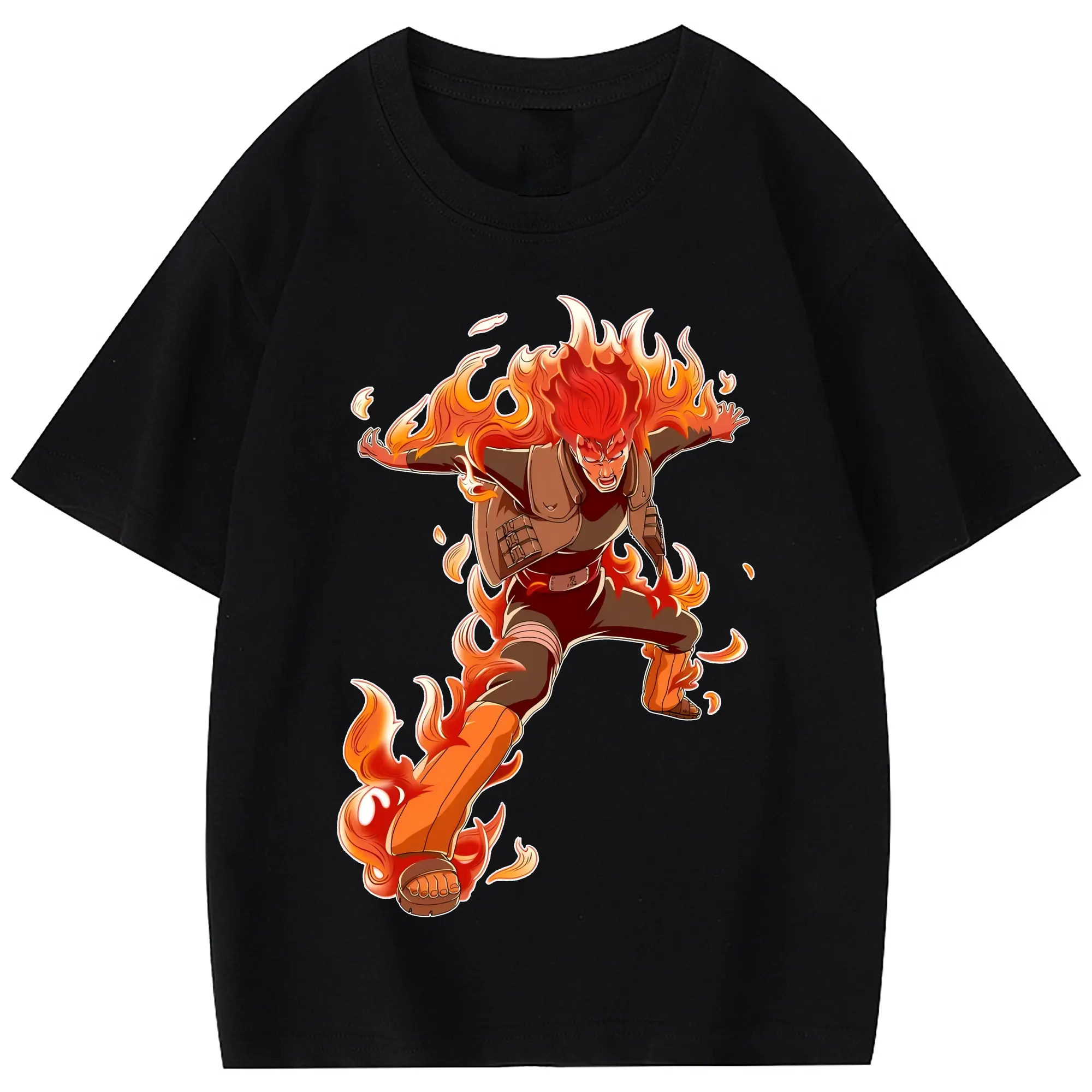 ナルト グッズ マイト・ガイ - 綿100% 半袖Tシャツ ・ フロントプリント ・ 快適 通気性 ・ 日常使い 散歩 スポーツ用