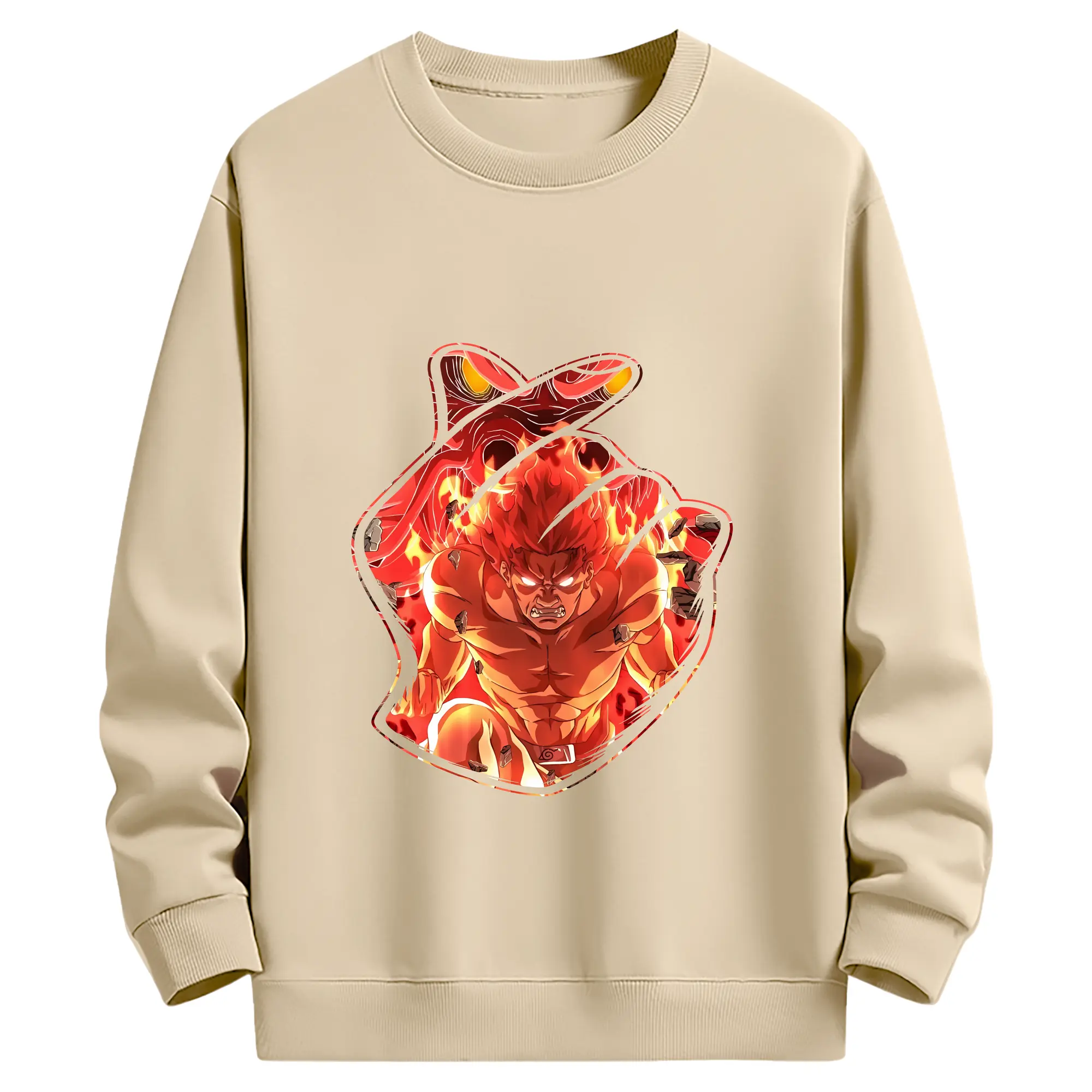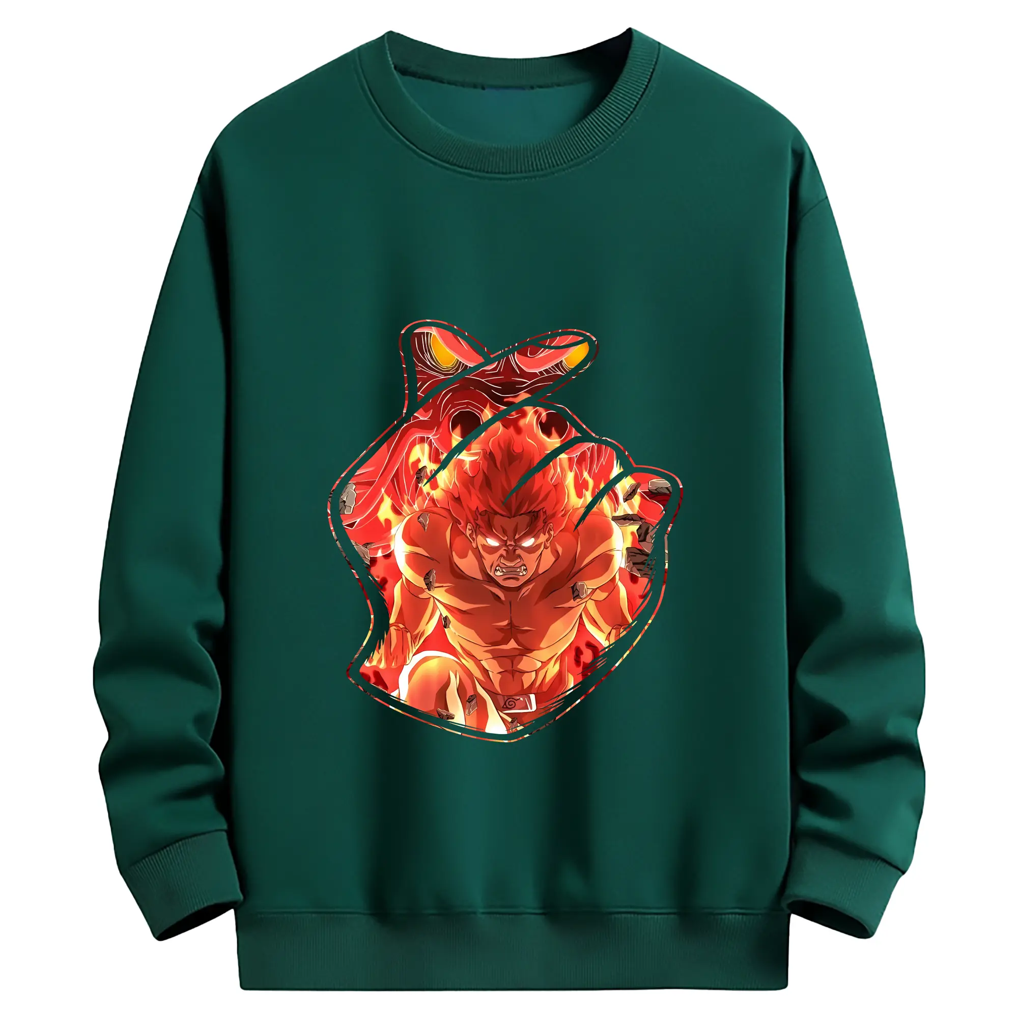 ナルト グッズ マイト・ガイ - 薄手 クルーネック スウェット 裏毛260g · ポリエステル 春秋向け カジュアル 男女兼用 · トレーナー デイリー スポーツ 散歩に最適