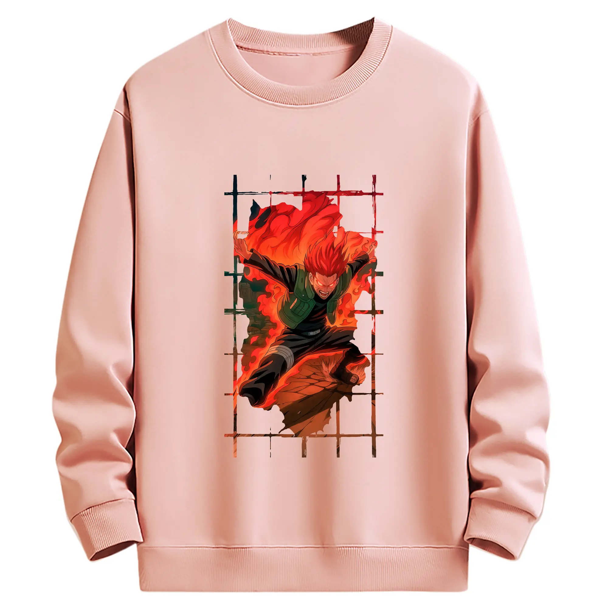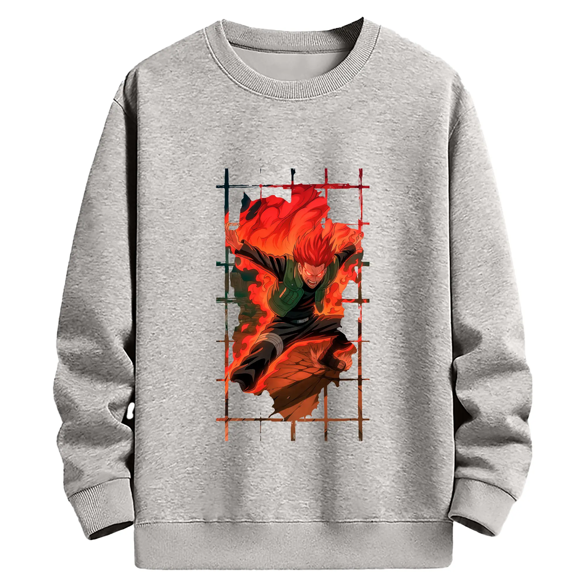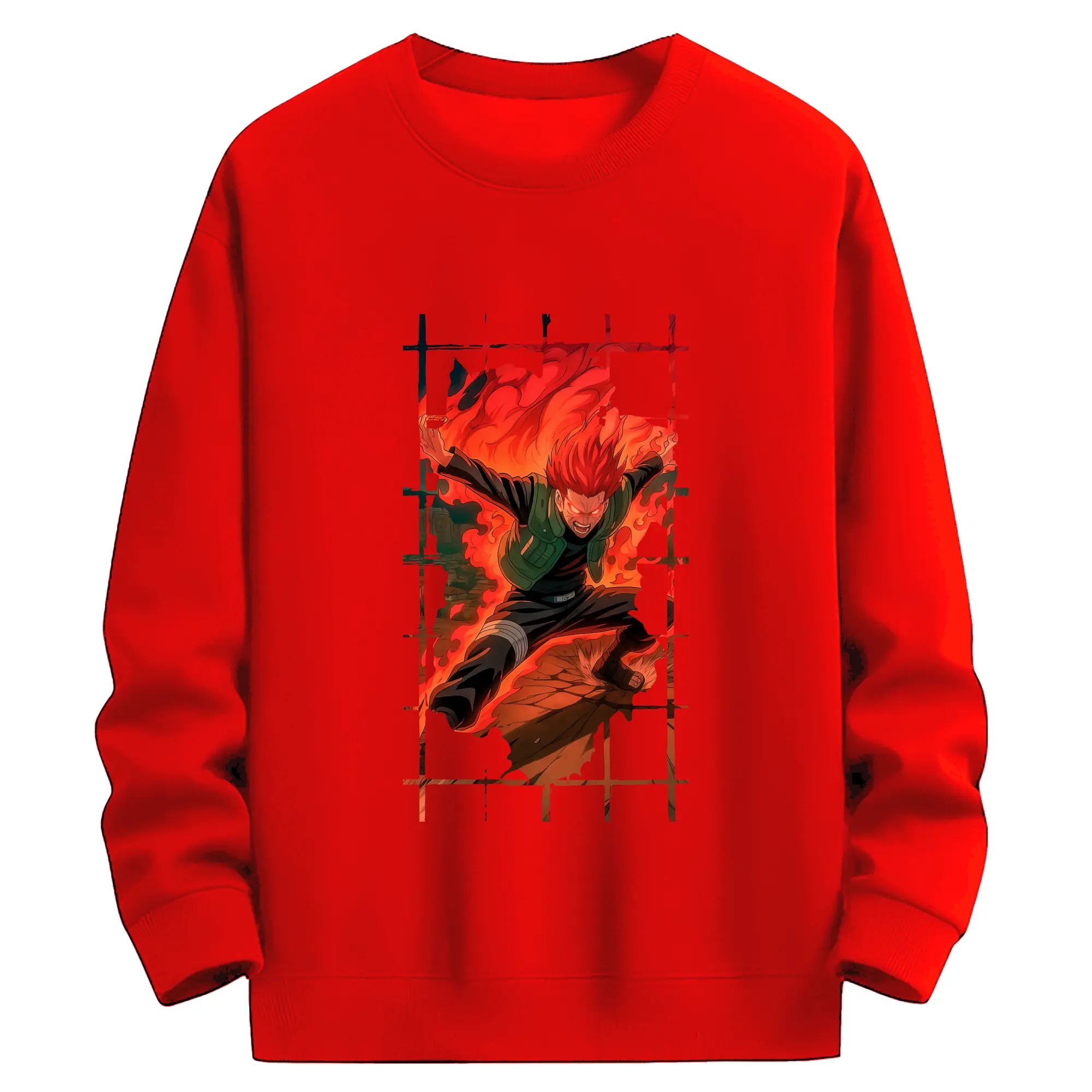 ナルト グッズ マイト・ガイ - 薄手 クルーネック スウェット 裏毛260g · ポリエステル 春秋向け カジュアル 男女兼用 · トレーナー デイリー スポーツ 散歩に最適