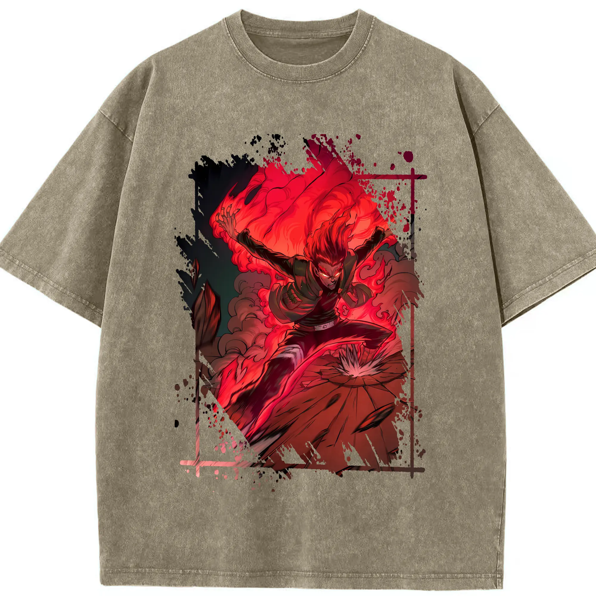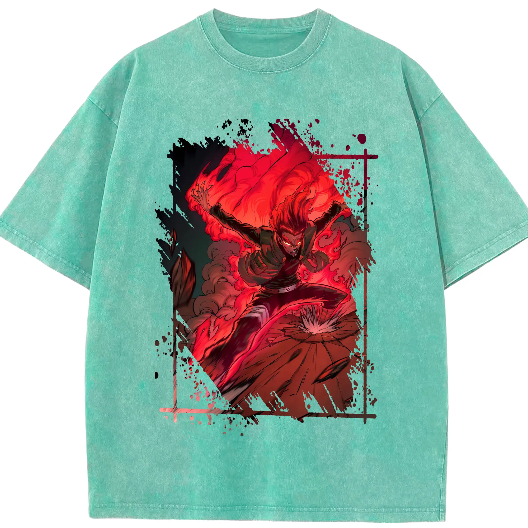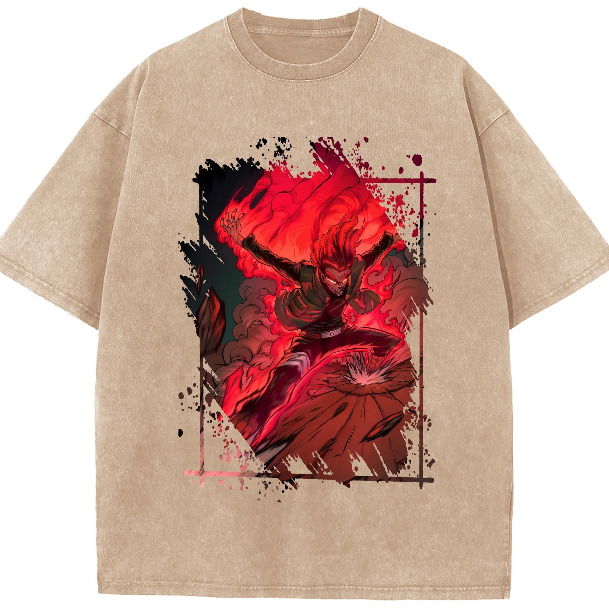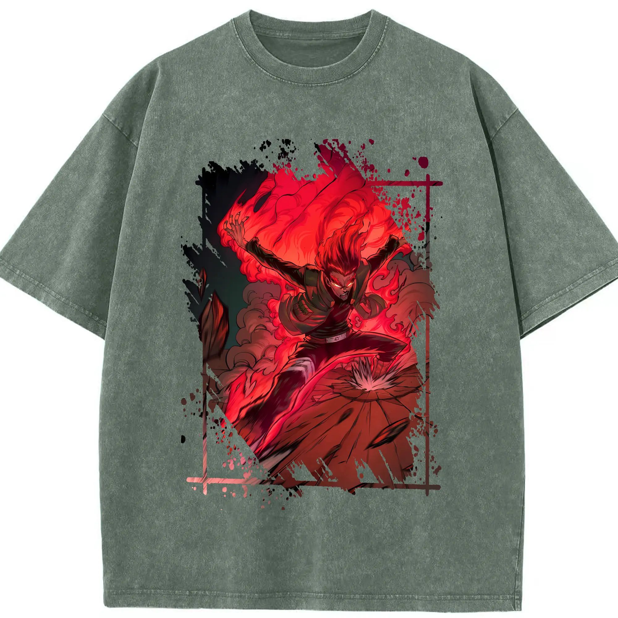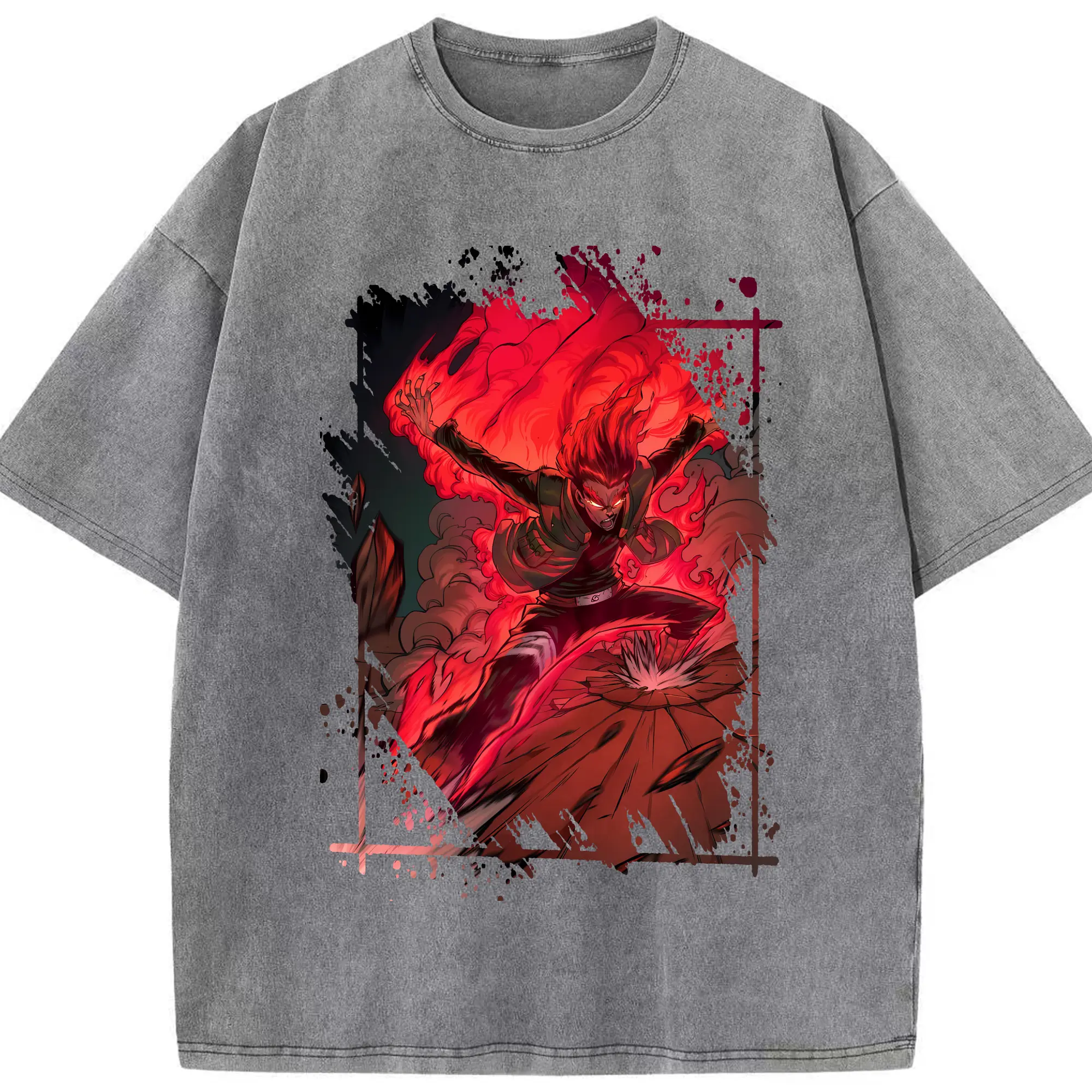 ナルト グッズ マイト・ガイ - 綿100% ヴィンテージ風 半袖Tシャツ ・ 背面プリント ・ 柔らか肌触り ・ 通気性 快適 ・ スポーツ カジュアル 外出用